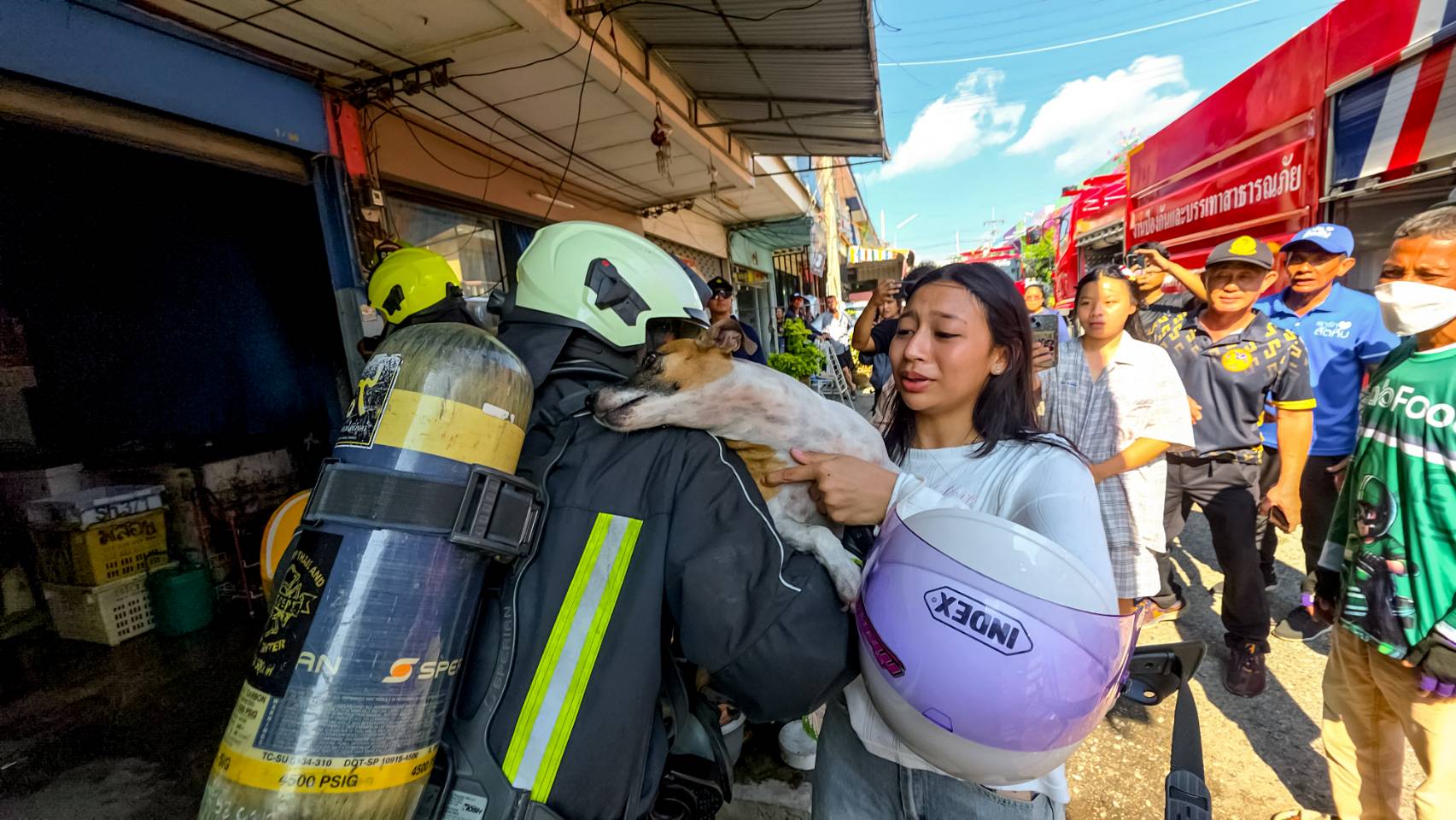 อย่างไรก็ตาม ได้รับรายงานจาก นางกมลวรรณ เข็งกรอก อายุ 60 ปี เพื่อนบ้านแจ้งว่า ภายในอาคารมีสุนัข เพศผู้ 2 ตัว ชื่อมูมู่ พันธุ์พุดเดิ้ล และชื่อคุกกี้ พันธุ์แจ็ครัสเซลล์ ซึ่งเจ้าของบ้านยืนยันว่า ยังอาศัยอยู่ในอาคาร เจ้าหน้าที่ดับเพลิงจึงนํากําลังกันออกค้นหาจนพบตัว และสามารถช่วยเหลือออกมาได้อย่างปลอดภัย ท่ามกลางความดีอกดีใจของผู้เป็นเพื่อนบ้าน และผู้อยู่ในเหตุการณ์