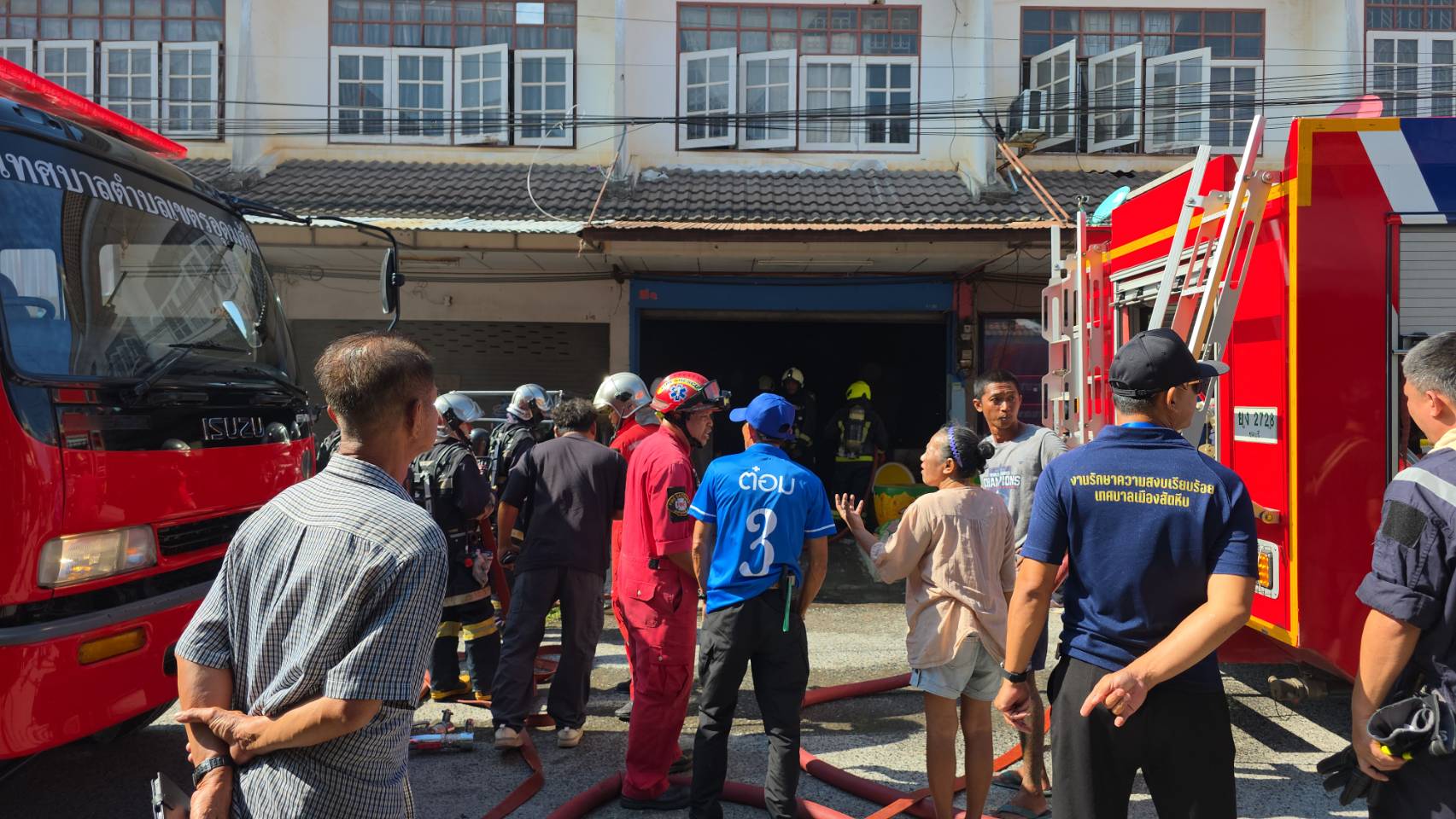 ที่เกิดเหตุเป็นอาคารพาณิชย์ 2 ชั้น เรียงติดกันเป็นแถว ห้องต้นเพลิงพบกลุ่มควันดำ กําลังพวยพุ่งออกมาจากช่องรับแสง ของประตูเหล็กม้วน ที่ถูกเลื่อนลงมาปิดหน้าตัวอาคาร และมีแม่กุญแจล็อกอยู่ภายนอก