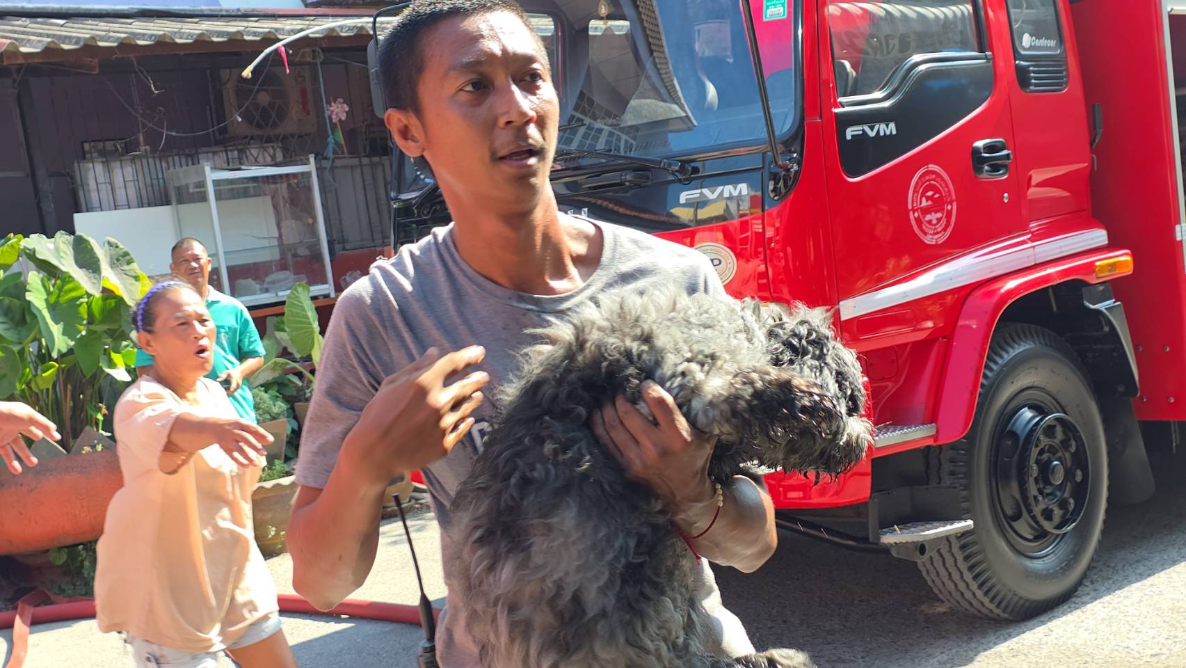 อย่างไรก็ตาม ได้รับรายงานจาก นางกมลวรรณ เข็งกรอก อายุ 60 ปี เพื่อนบ้านแจ้งว่า ภายในอาคารมีสุนัข เพศผู้ 2 ตัว ชื่อมูมู่ พันธุ์พุดเดิ้ล และชื่อคุกกี้ พันธุ์แจ็ครัสเซลล์ ซึ่งเจ้าของบ้านยืนยันว่า ยังอาศัยอยู่ในอาคาร เจ้าหน้าที่ดับเพลิงจึงนํากําลังกันออกค้นหาจนพบตัว และสามารถช่วยเหลือออกมาได้อย่างปลอดภัย ท่ามกลางความดีอกดีใจของผู้เป็นเพื่อนบ้าน และผู้อยู่ในเหตุการณ์