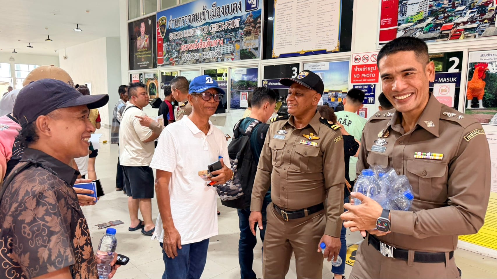12 เมษายน 2569 – ที่ ด่านพรมแดนเบตง อำเภอเบตง จังหวัดยะลา ซึ่งอยู่ตรงข้ามกับด่านบูกิตบือราปิต รัฐเปรัค ประเทศมาเลเซีย นักท่องเที่ยวชาวมาเลเซีย ต่างเดินทางเข้าประเทศไทยตั้งแต่ช่วงเช้าที่ผ่านมา ทำให้บรรยากาศคึกคัก ทั้งนักท่องเที่ยวและรถบัสทัวร์ รถส่วนบุคคล ที่ต่างทยอยเดินทางเข้ามาท่องเที่ยวเพื่อร่วมเล่นน้ำสงกรานต์ที่ อ.เบตง จ.ยะลา อย่างต่อเนื่อง โดยมี พ.ต.ท.กฤตกรอิชณน์ คงขำ สารวัตรด่านตรวจคนเข้าเมืองเบตง พร้อมด้วยเจ้าหน้าที่ตำรวจตรวจคนเข้าเมือง ตำรวจจิตอาสา ทหารป้องกันชายแดน ได้มอบน้ำดื่ม อำนวยความสะดวกให้กับนักท่องเที่ยว ที่เดินทางมายังด่านพรมแดนเบตงในช่วงเทศกาลสงกรานต์ พร้อมกำชับให้เจ้าหน้าที่เพิ่มความเข้มงวดในการตรวจสอบเอกสารหนังสือเดินทาง ตรวจสอบประวัติบุคคลอย่างรัดกุม และการเพิ่มกำลังเจ้าหน้าที่ตรวจคัดกรองนักท่องเที่ยวช่วงสงกรานต์อย่างเข้มงวด เนื่องจากมีนักท่องเที่ยวเดินทางเข้ามาท่องเที่ยวในช่วงสงกรานต์ประมาณ 3,000 – 5,000 คน ในวันนี้