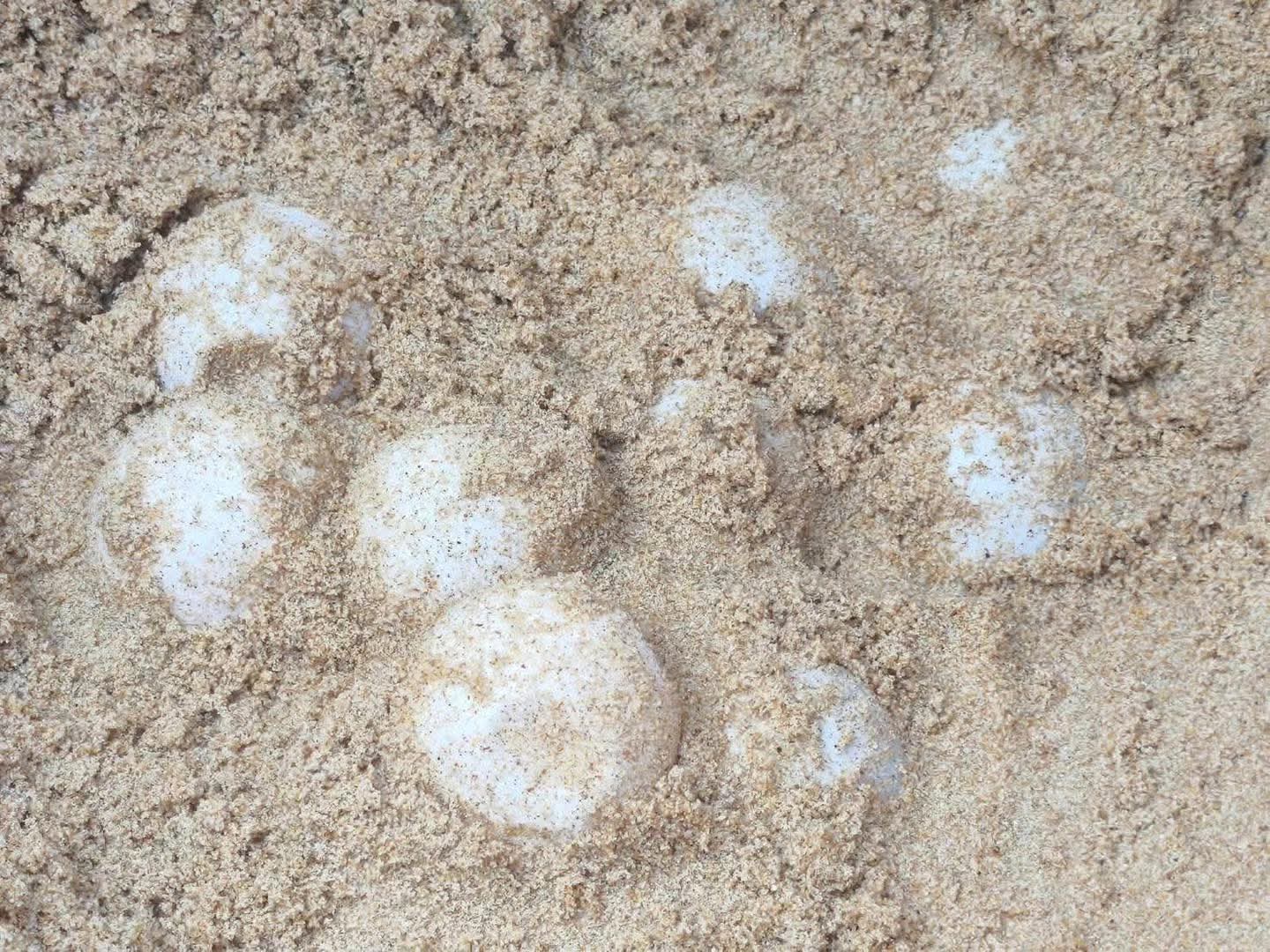จากการตรวจสอบพบไข่เต่ามะเฟืองรวม 98 ฟอง เป็นไข่สมบูรณ์ 85 ฟอง และไข่ลม 13 ฟอง โดยวัดขนาดแม่เต่าได้ความกว้างอกประมาณ 100 เซนติเมตร ความกว้างพาย 200 เซนติเมตร ขณะที่หลุมไข่ลึก 100 เซนติเมตร กว้าง 40 เซนติเมตร และไข่มีขนาดเฉลี่ย 4.68 เซนติเมตร