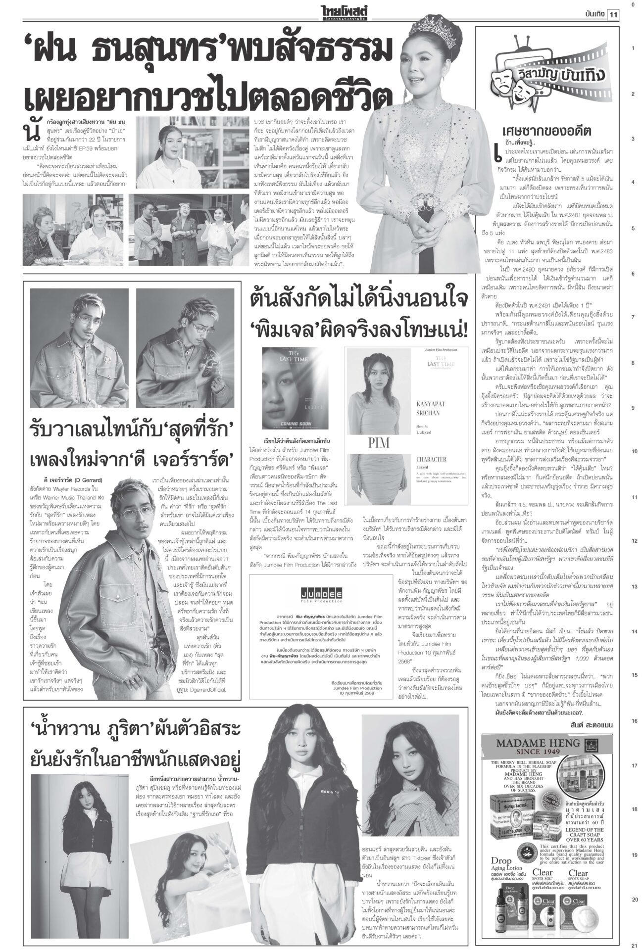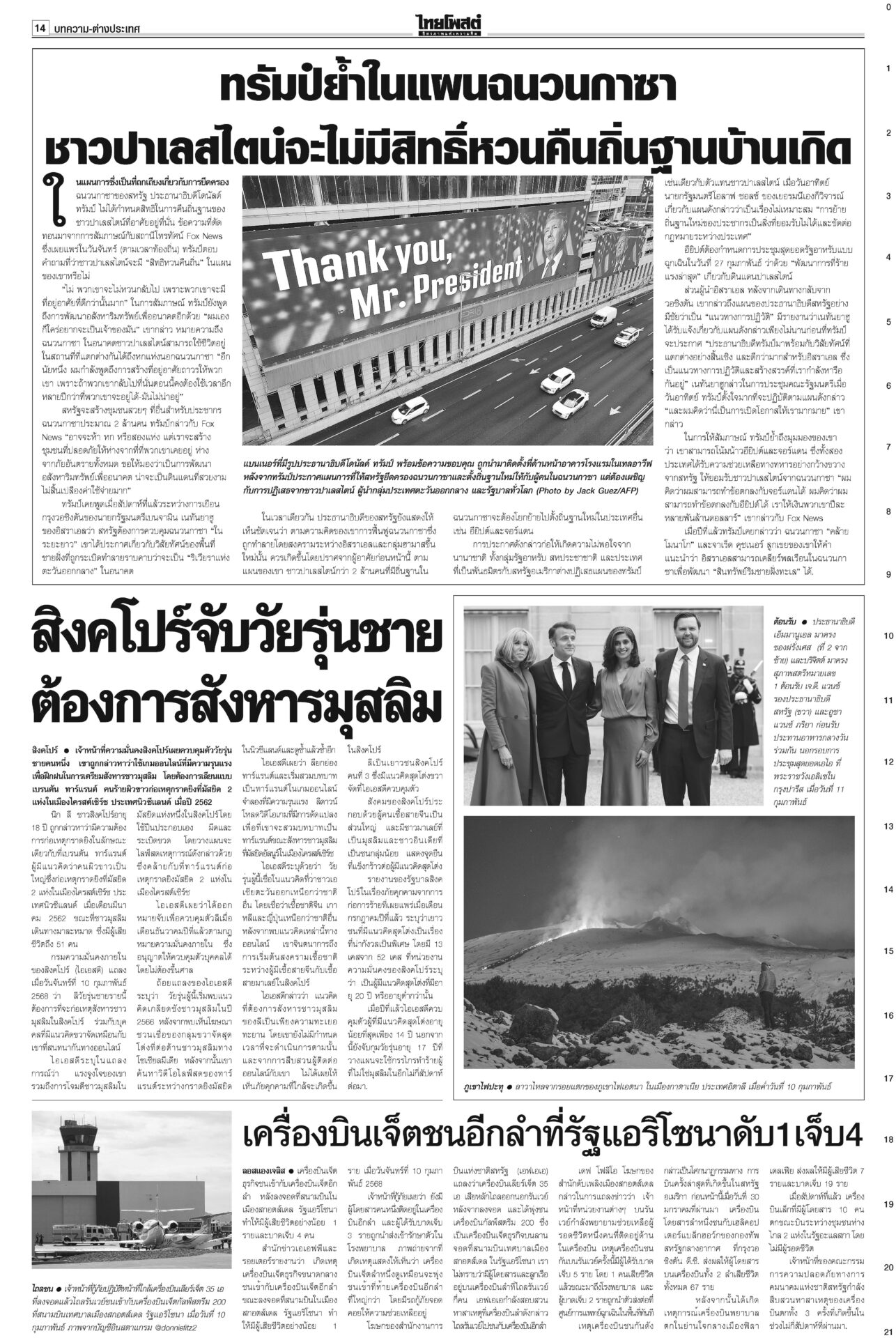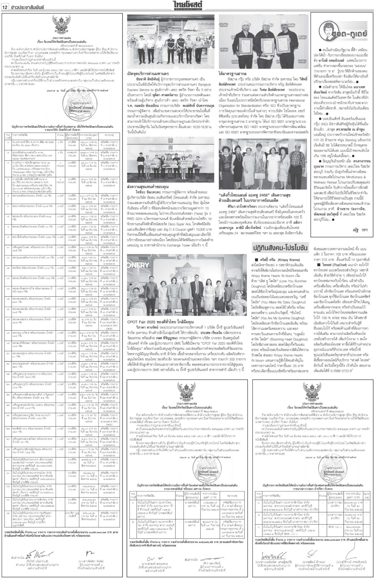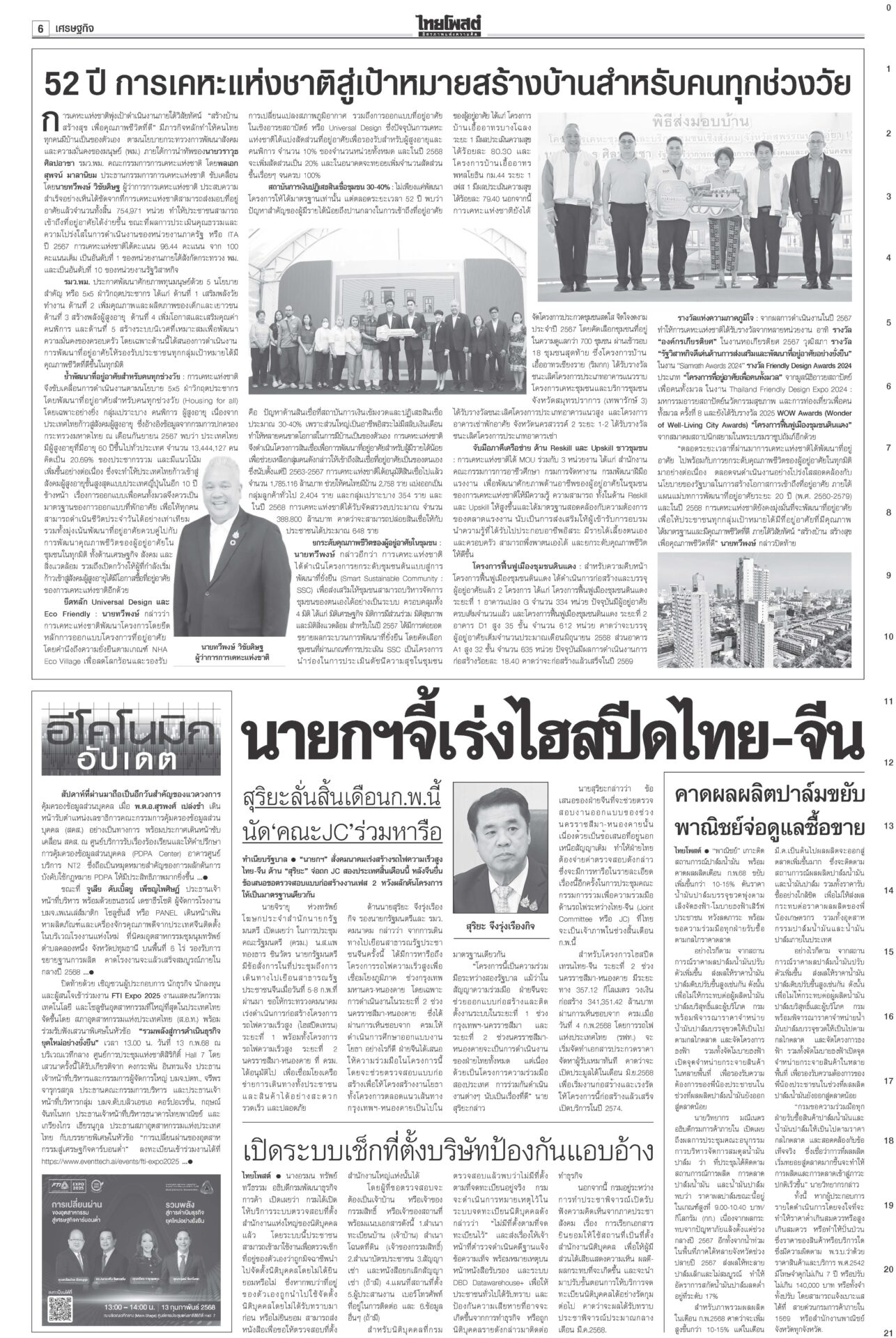 หนังสือพิมพ์ ฉบับวันที่ 12 กุมภาพันธ์ 2568ข่าวหน้าหนึ่งตอบซักฟอกทุกเรื่อง อิ๊งค์จ่อคุยพรรคร่วมสู้ศึกฝ่ายค้าน/แก้รธน.ส่อแท้ง“แพทองธาร” ลั่นพร้อมตอบทุกเรื่องในศึกซักฟอก “ทวี” ยกข้อกฎหมาย ป.ป.ช.ขู่หากอภิปรายพาดพิง “ทักษิณ” เท้งโวไม่กลัวถูกฟ้อง รอวัดใจ “เสรีพิศุทธ์” ให้ข้อมูลชั้น 14 ดัชนีCPIไทยร่วง เหลือ34คะแนน ชี้ปราบโกงเหลวป.ป.ช.เผยดัชนีการรับรู้การทุจริตปี 67 ไทยได้ 34 คะแนน อยู่ในอันดับ 107 ของโลก รั้งที่ 5 อาเซียน อึ้งต่ำสุดในรอบ 12 ปี ยืดถึง30เม.ย. ‘คุณสู้เราช่วย’ อุ้มลูกหนี้1.7ล.“พิชัย” แจงเงินหมื่นเฟส 3 ยังอยู่ระหว่างทบทวนระบบดิจิทัล ครม.ไฟเขียวขยายเวลา “คุณสู้ เราช่วย” ถึง 30 เม.ย. เมา24ชม.ไม่เว้นวันพระใหญ่มีการพนันถูกกฎหมายยังไม่พอ! นายกฯ สั่งทบทวนช่วงเวลาขายเครื่องดื่มแอลกอฮอล์-วันสำคัญทางพระพุทธศาสนา 'พิชัย'เปิดงาน'ชูใจ วัยเก๋า' ลดค่าครองชีพผู้สูงอายุ-ปชช.“พิชัย” เปิดงานจำหน่ายสินค้าราคาประหยัด ภายใต้โครงการ “ชูใจ วัยเก๋า” นำสินค้าอุปโภคบริโภค 10 หมวด กว่า 1,000 รายการ หมายจับหม่องชิตตู ฟัน‘บิ๊กตร.’ทุนเทา“นายกฯ อิ๊งค์” กำชับ ครม.จัดการแก๊งคอลเซ็นเตอร์เด็ดขาด ขอเวลา 2 อาทิตย์