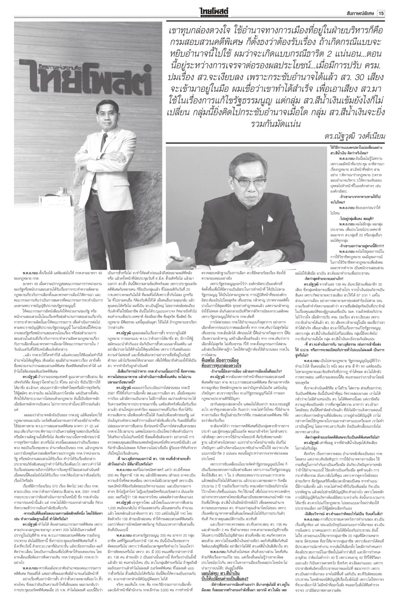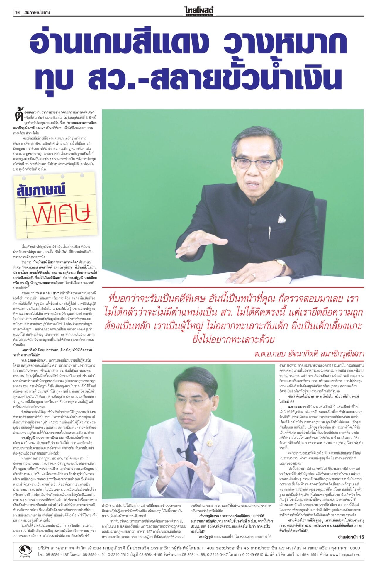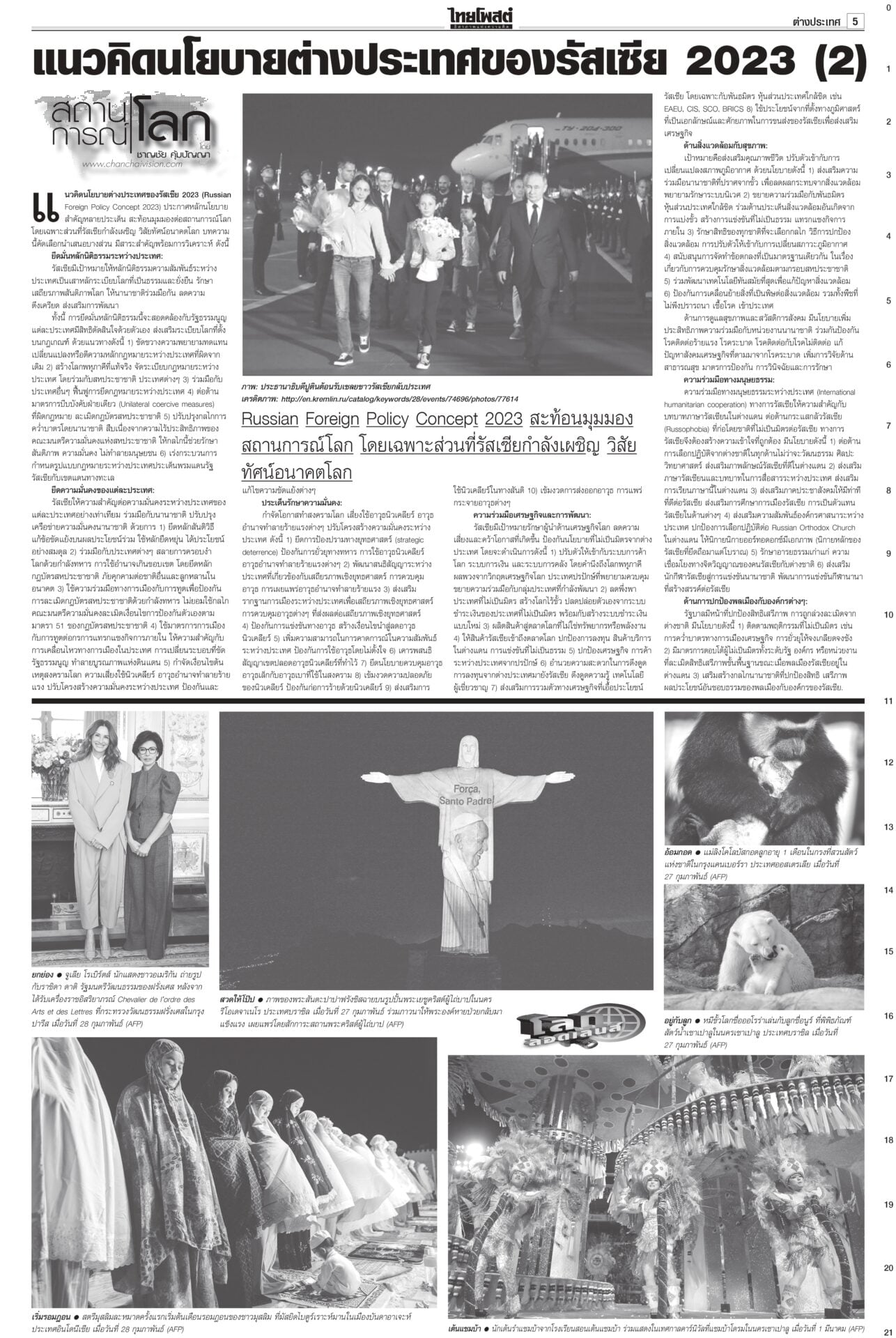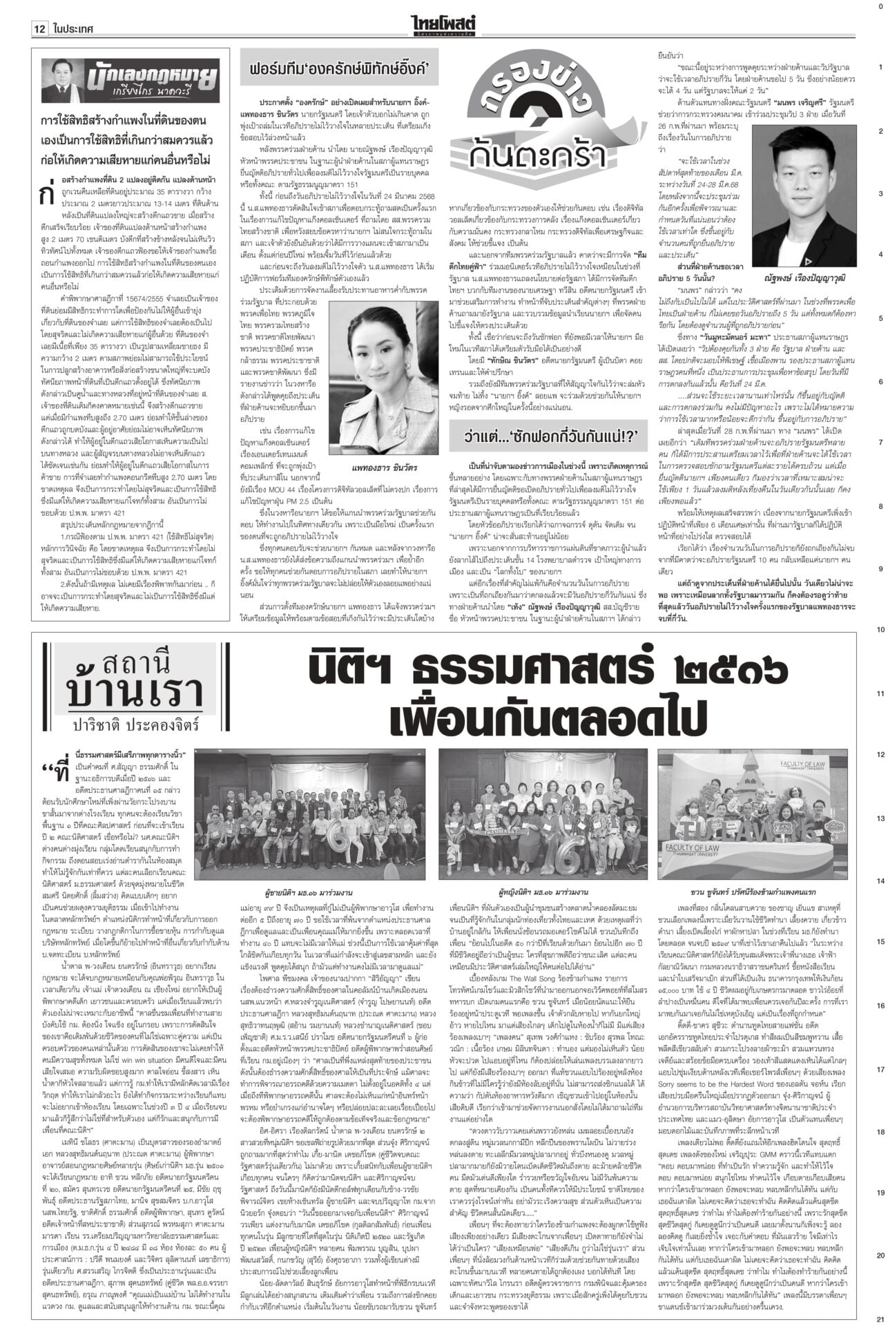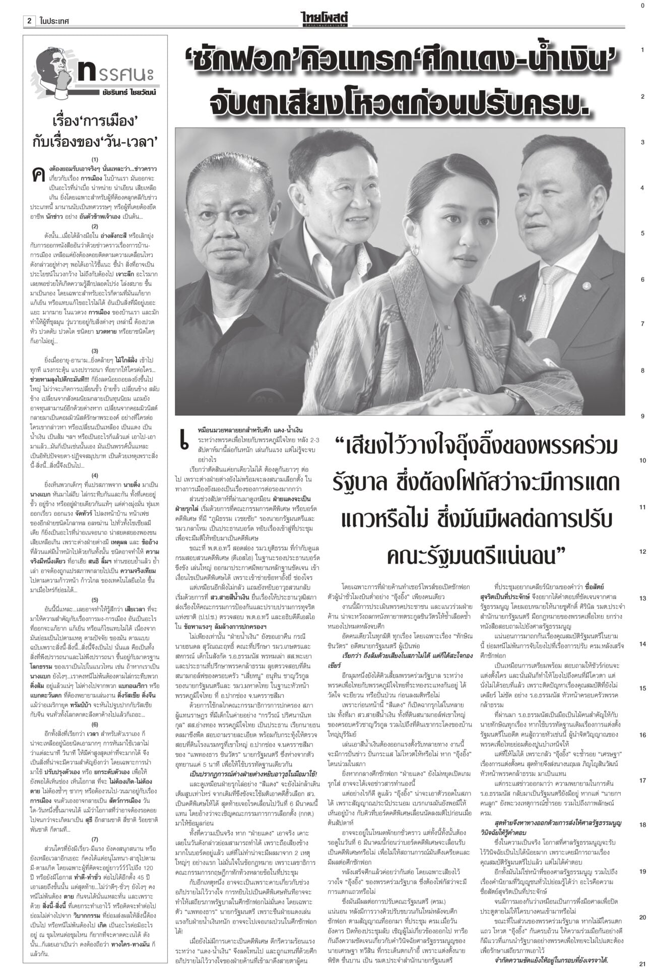 หนังสือพิมพ์ฉบับวันที่ 2 มีนาคม 2568ข่าวหน้าหนึ่งให้ซักฟอก 1 วัน พูดชื่อ ‘แม้ว’ ได้ เป็นพ่อนายกฯเพื่อไทยยันซักฟอกวันเดียวพอ เพราะอภิปรายนายกฯ คนเดียว “วิสุทธิ์” แนะใส่ให้เต็มที่ไม่ต้องขี่ม้าเลียบค่าย ไม่ถึงขั้นห้ามเอ่ยชื่อ “ทักษิณ” ถ้าบอกว่าเป็นพ่อของนายกฯ ไม่เป็นไร รู้แล้วผลงาน ‘อุ๊งอิ๊ง’ อืด! ‘ทักษิณ’ เฉลยเงินค้างท่อ“ทักษิณ” ยกคณะเยือนนครศรีฯ เป็นประธานพิธียกฉัตรพระประธานและทอดผ้าป่าสามัคคีสร้างอุโบสถ ประชาชนแห่ต้อนรับ บอกทำแต่งาน ได้ทำบุญบ้างสบายใจดี เซเลนสกีเผายูเครน แถลงข่าวมิติใหม่ซัดกับ ‘ทรัมป์’ นัวเนียตะเพิดพ้นทำ เนียบขาวมิติใหม่การแถลงข่าว “โดนัลด์ ทรัมป์” กับ “โวโลดิมีร์ เซเลนสกี” โต้เถียงกันดุเดือด จนผู้นำสหรัฐโกรธจัดและไล่ผู้นำยูเครนออกจากทำเนียบขาว ส่อแววล้มข้อตกลงสันติภาพรวมทั้งข้อตกลงการเข้าถึงแร่หายาก