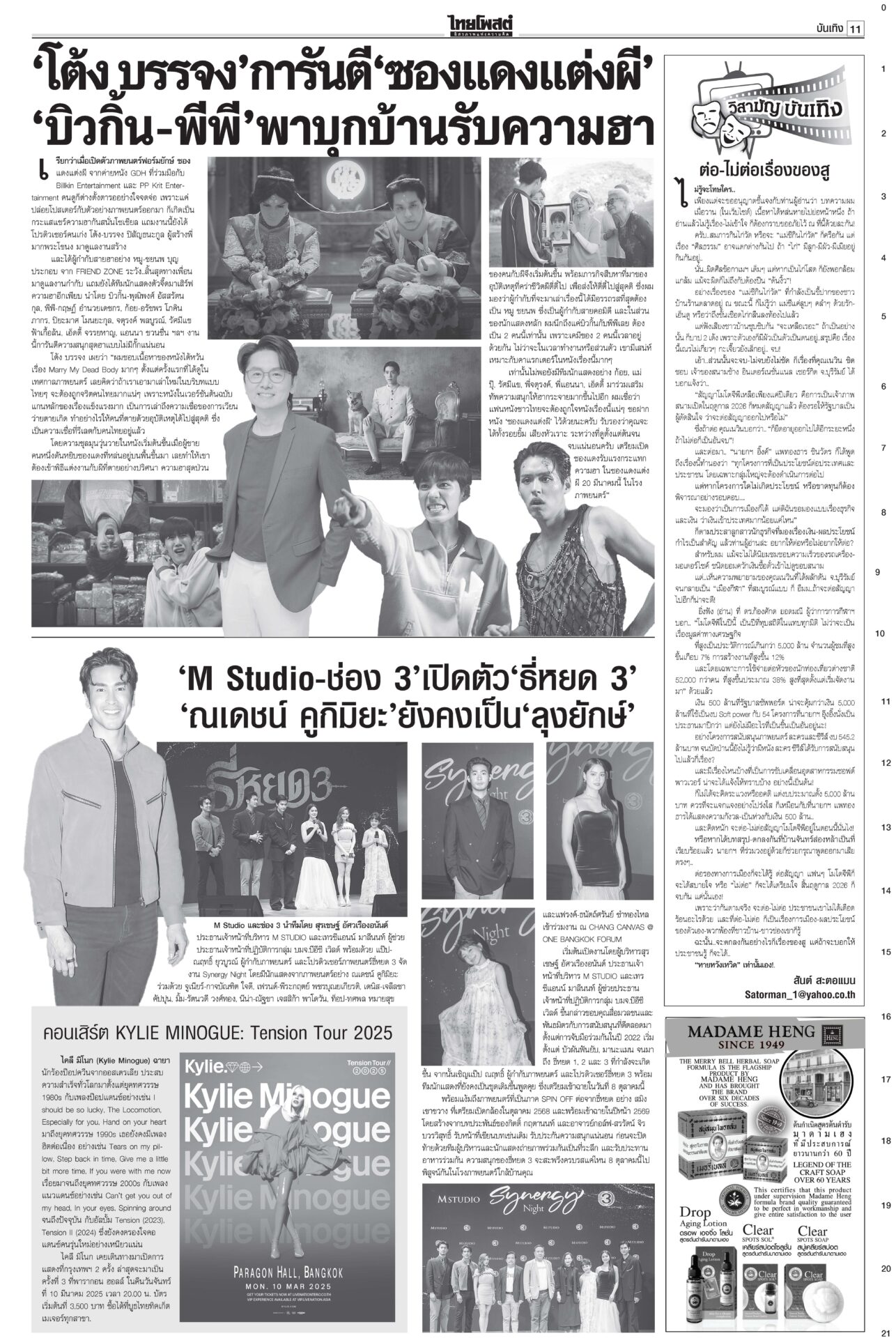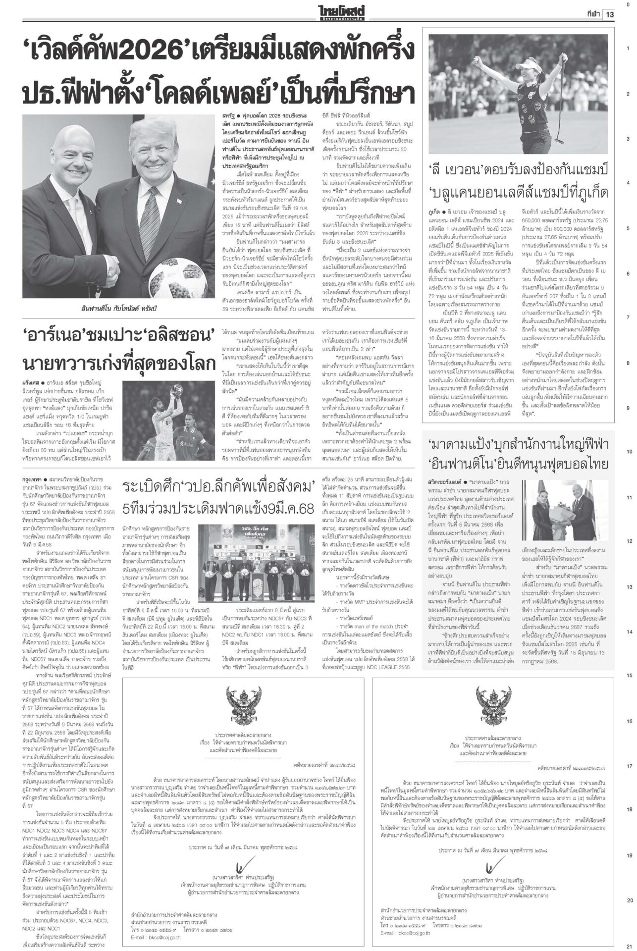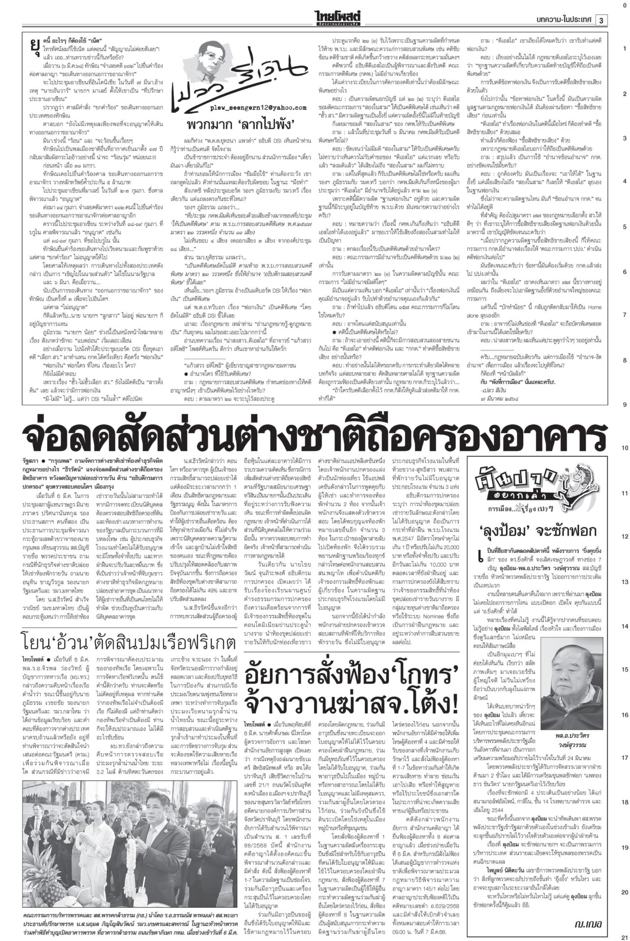 หนังสือพิมพ์ ฉบับวันที่ 7 มีนาคม 2568ข่าวหน้าหนึ่งDSIใช้อำนาจซ้อน! รับฟอกเงินฮั้วสว.เป็นคดีพิเศษ‘แก้วสรร’ชี้ต้องเริ่มที่กกต.บอร์ด กคพ.ไม่รับคดีฮั้วเลือก สว. ฐานความผิด “อั้งยี่-ซ่องโจร” เป็นคดีพิเศษ รุมสับ‘สปส.’ได้งบเยอะ แต่สิทธิตํ่ากว่าบัตรทองกมธ.สาธารณสุขรุมสับ “ประกันสังคม” ได้งบประมาณมากกว่ารายจ่ายต่อหัวของ ศาลเบรกพ่อนายกฯไปอินโด“ทักษิณ” ชวดบินร่วมถกอาเซียนอินโดฯ ศาลยกคำร้องชี้ไม่มีเหตุผลเพียงพอ จวก‘รมว.พณ.’ไร้นํ้ายา แนะปลูกกล้วยแทนข้าวดรามากระทู้ถามสด มีกิน มีใช้ มีเกียรติ มีศักดิ์ศรี ฝ่ายค้านถามเรื่องแก้ปัญหาราคาข้าว เปิดข้อมูลอุยกูร์ ประเทศที่3ขอตัว ไทยยันส่งให้จีน“โรม” เปิดข้อมูล ที่ประชุม สมช.เคาะส่งกลับชาว “อุยกูร์” ตามที่จีนขอตั้งแต่ 17 ม.ค.68