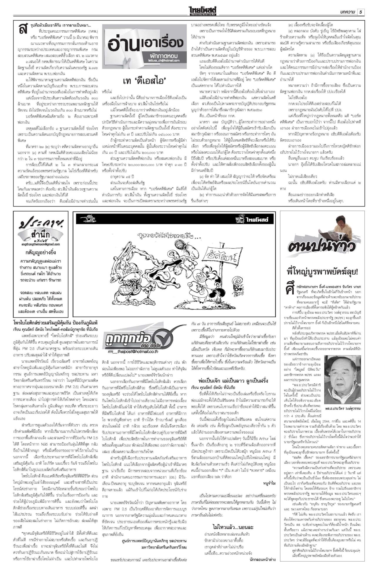 ฉบับวันที่ 7 มีนาคม 2568 7 มีนาคม 2568 เวลา 0:01 น. หนังสือพิมพ์ ฉบับวันที่ 7 มีนาคม 2568ข่าวหน้าหนึ่งDSIใช้อำนาจซ้อน! รับฟอกเงินฮั้วสว.เป็นคดีพิเศษ‘แก้วสรร’ชี้ต้องเริ่มที่กกต.บอร์ด กคพ.ไม่รับคดีฮั้วเลือก สว. ฐานความผิด “อั้งยี่-ซ่องโจร” เป็นคดีพิเศษ รุมสับ‘สปส.’ได้งบเยอะ แต่สิทธิตํ่ากว่าบัตรทองกมธ.สาธารณสุขรุมสับ “ประกันสังคม” ได้งบประมาณมากกว่ารายจ่ายต่อหัวของ ศาลเบรกพ่อนายกฯไปอินโด“ทักษิณ” ชวดบินร่วมถกอาเซียนอินโดฯ ศาลยกคำร้องชี้ไม่มีเหตุผลเพียงพอ จวก‘รมว.พณ.’ไร้นํ้ายา แนะปลูกกล้วยแทนข้าวดรามากระทู้ถามสด มีกิน มีใช้ มีเกียรติ มีศักดิ์ศรี ฝ่ายค้านถามเรื่องแก้ปัญหาราคาข้าว เปิดข้อมูลอุยกูร์ ประเทศที่3ขอตัว ไทยยันส่งให้จีน“โรม” เปิดข้อมูล ที่ประชุม สมช.เคาะส่งกลับชาว “อุยกูร์” ตามที่จีนขอตั้งแต่ 17 ม.ค.68 Tagsรายวันหนังสือพิมพ์ ข่าวที่เกี่ยวข้อง ฉบับวันที่ 7 ธันวาคม 2568 ฉบับวันที่ 6 ธันวาคม 2568 ฉบับวันที่ 5 ธันวาคม 2568 ฉบับวันที่ 4 ธันวาคม 2568 ฉบับวันที่ 3 ธันวาคม 2568 ฉบับวันที่ 2 ธันวาคม 2568 NEWS UPDATE 1:00 น. มะม่วงหิมพานต์กับปาฏิหาริย์เรื่องราวแห่งแรงใจจากบ้านหาดไก่ต้อย จังหวัดอุตรดิตถ์ 0:01 น. หาดใหญ่-สแกมเมอร์ทำรบ.'แต้มหล่น' 'อนุทิน'เปิดหน้าชนกู้เรตติ้ง 21:16 น. จนท.ปกครองเดินฝ่าดงหนาม 4 กม. จับหนุ่มซุกยาบ้าในรูปู 126 เม็ด 20:58 น. ชาวบ้านริมน้ำสาละวิน มึนข้อมูลราชการสุดสับสน ไม่แน่ใจปลา-พืชริมน้ำกินได้หรือไม่ 19:07 น. ลมหนาวมาอีกระลอก! กรมอุตุฯ พยากรณ์อากาศ 7 วันข้างหน้า อุณหภูมิจะลดลง 2-4 องศา
