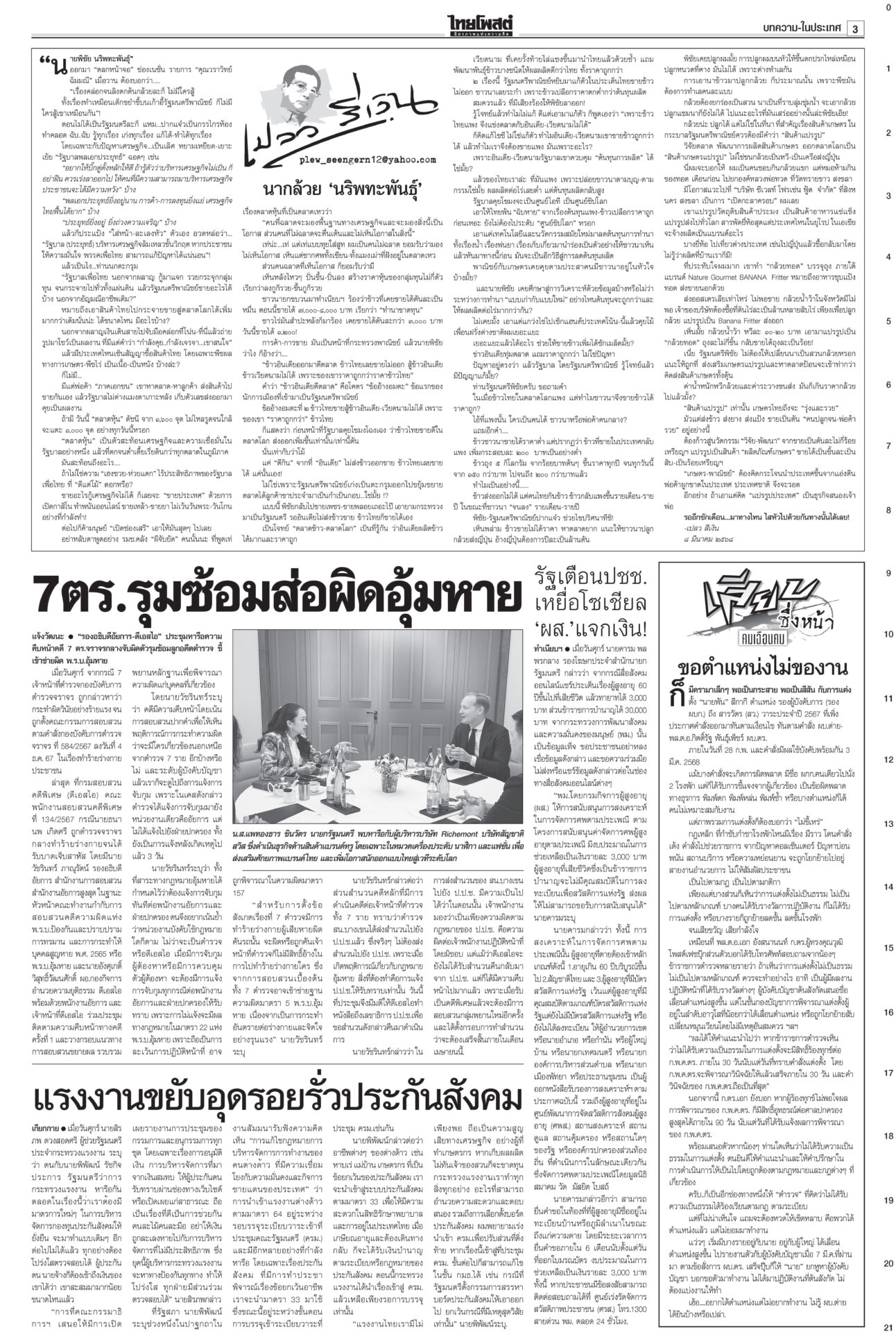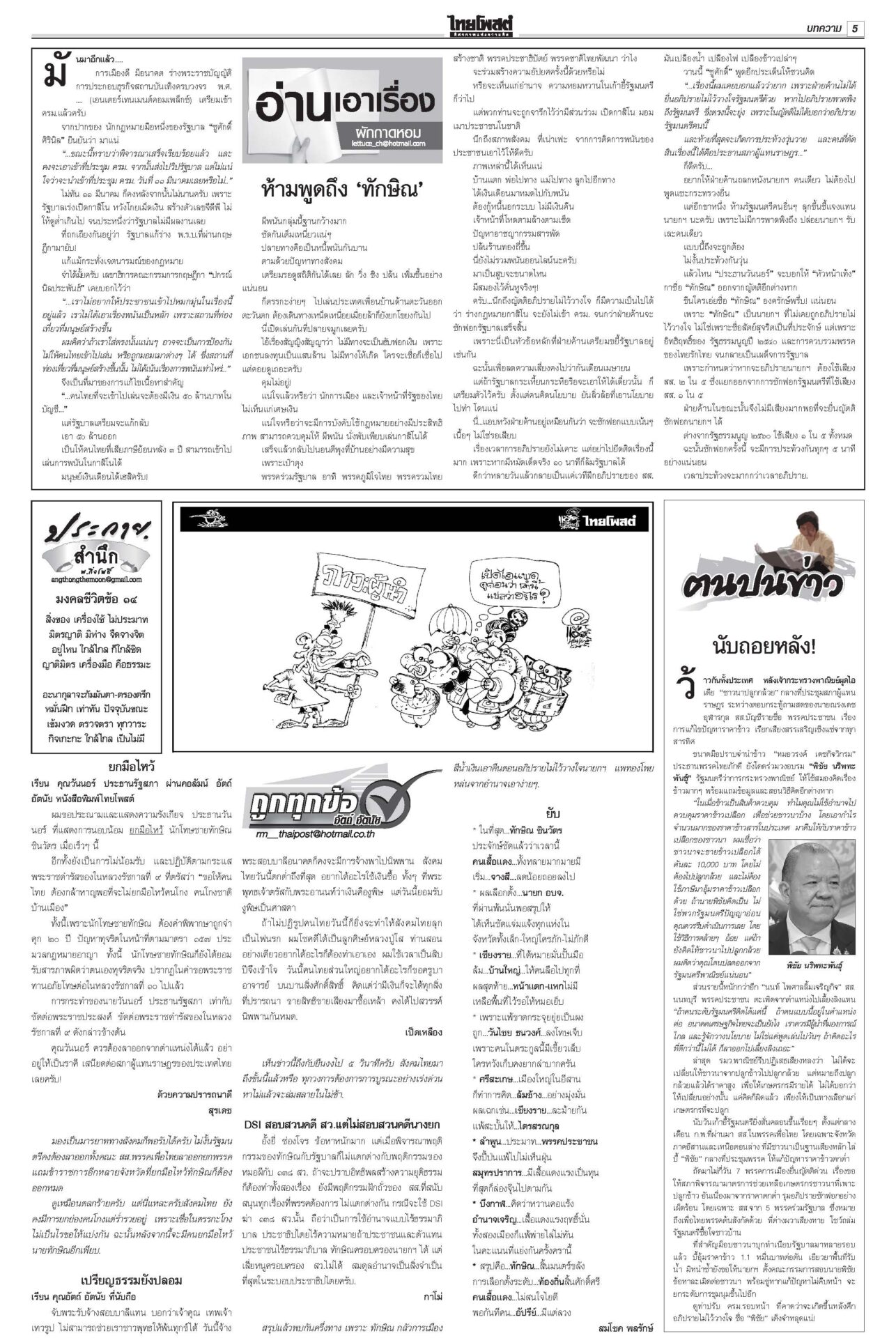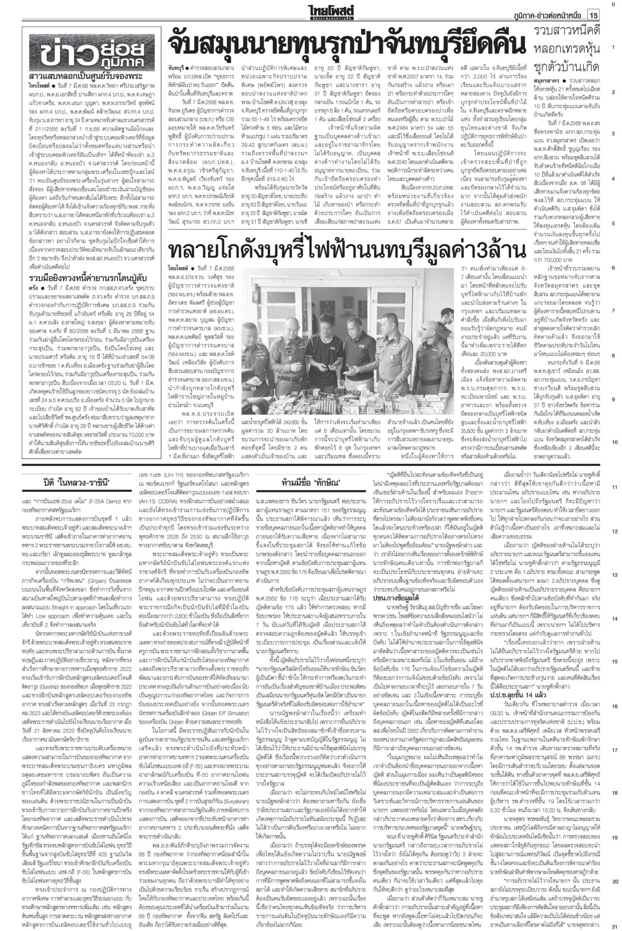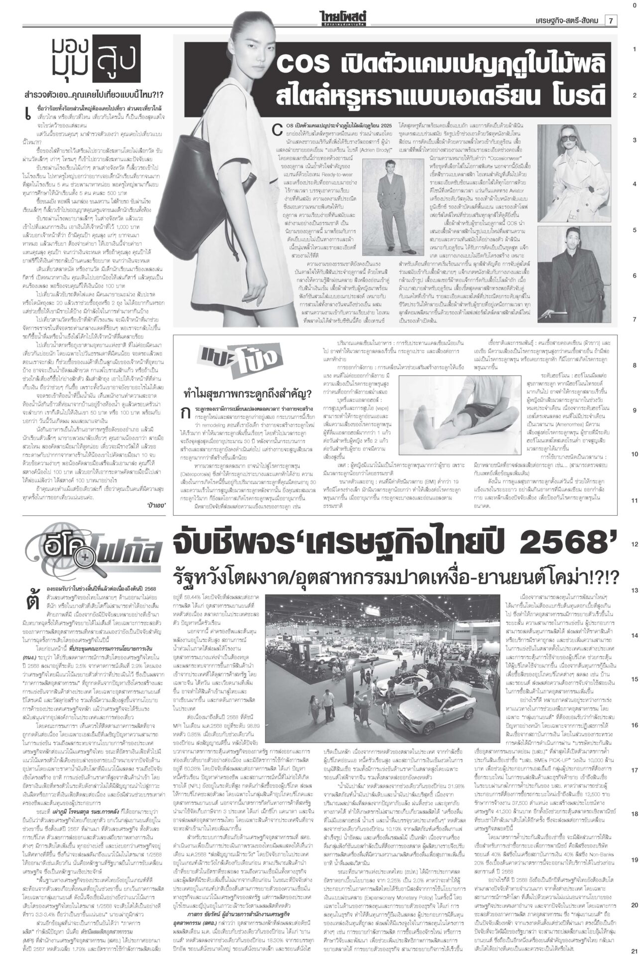 ฉบับวันที่ 8 มีนาคม 2568 8 มีนาคม 2568 เวลา 0:01 น. หนังสือพิมพ์ ฉบับวันที่ 8 มีนาคม 2568ข่าวหน้าหนึ่งห้ามมีชื่อ‘ทักษิณ’ ‘วันนอร์’บี้ฝ่ายค้านแก้ญัตติ/‘เท้ง’เมินชี้ปธ.สภาไร้อำนาจ!“วันนอร์” ทำหนังสือด่วนที่สุดถึง “ณัฐพงษ์” ให้แก้เนื้อหาญัตติซักฟอก ปีติ‘ในหลวง-ราชินี’เสด็จฯแอร์โชว์ในหลวง-พระราชินี เสด็จฯ ทอดพระเนตรการแสดงการบิน 10มี.ค.‘อุ๊งอิ๊ง’ เคาะหมื่นเฟส3 พ่วงดันกาสิโนเรื่องกล้วยๆ! “พิชัย” แจงวุ่นเปล่าให้ชาวนาเปลี่ยนไปปลูกกล้วย จบข่าว!ปิดฉากสุรเชชษฐ์ ชง‘บิ๊กต่าย’เซ็น‘ไล่ออก’ปิดฉากแมว 9 ชีวิต คณะกรรมการสอบวินัยเคาะแล้ว ชง “ผบ.ตร.” ไล่ออก “พล.ต.อ.สุรเชชษฐ์ หักพาล” งดบำเหน็จบำนาญ ปมเอี่ยวเว็บพนันออนไลน์ ขีดเส้น3เดือนสอบฟอกเงิน“ภูมิธรรม” ร่ายยาว แจง กคพ.รับคดีฮั้วเลือก สว.ตามพยานหลักฐาน-อำนาจดีเอสไอ Tagsรายวันหนังสือพิมพ์ ข่าวที่เกี่ยวข้อง ฉบับวันที่ 7 ธันวาคม 2568 ฉบับวันที่ 6 ธันวาคม 2568 ฉบับวันที่ 5 ธันวาคม 2568 ฉบับวันที่ 4 ธันวาคม 2568 ฉบับวันที่ 3 ธันวาคม 2568 ฉบับวันที่ 2 ธันวาคม 2568 NEWS UPDATE 1:00 น. มะม่วงหิมพานต์กับปาฏิหาริย์เรื่องราวแห่งแรงใจจากบ้านหาดไก่ต้อย จังหวัดอุตรดิตถ์ 0:01 น. หาดใหญ่-สแกมเมอร์ทำรบ.'แต้มหล่น' 'อนุทิน'เปิดหน้าชนกู้เรตติ้ง 21:16 น. จนท.ปกครองเดินฝ่าดงหนาม 4 กม. จับหนุ่มซุกยาบ้าในรูปู 126 เม็ด 20:58 น. ชาวบ้านริมน้ำสาละวิน มึนข้อมูลราชการสุดสับสน ไม่แน่ใจปลา-พืชริมน้ำกินได้หรือไม่ 19:07 น. ลมหนาวมาอีกระลอก! กรมอุตุฯ พยากรณ์อากาศ 7 วันข้างหน้า อุณหภูมิจะลดลง 2-4 องศา
