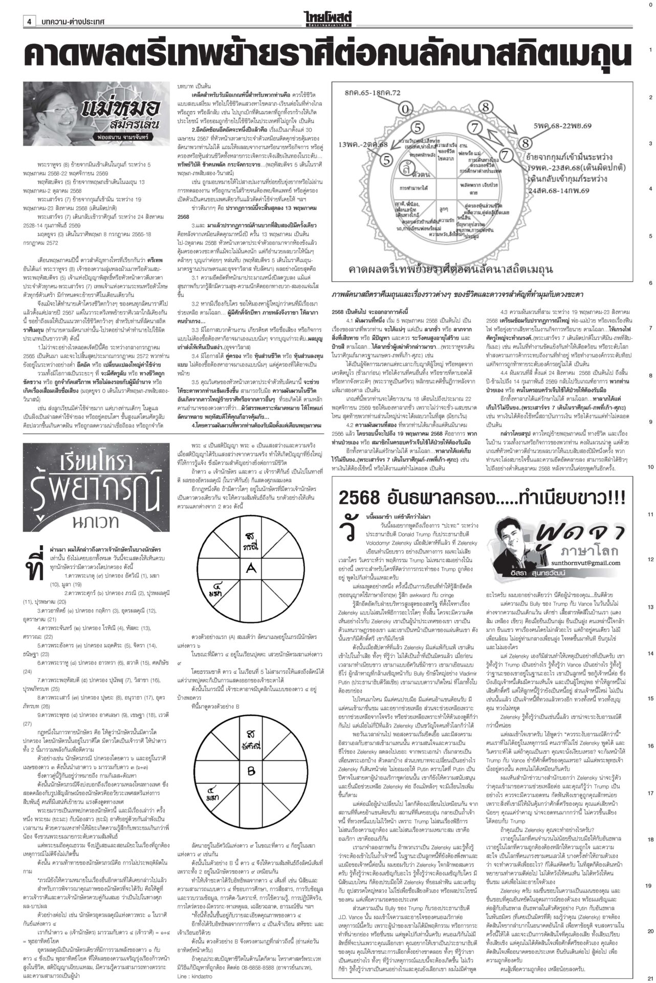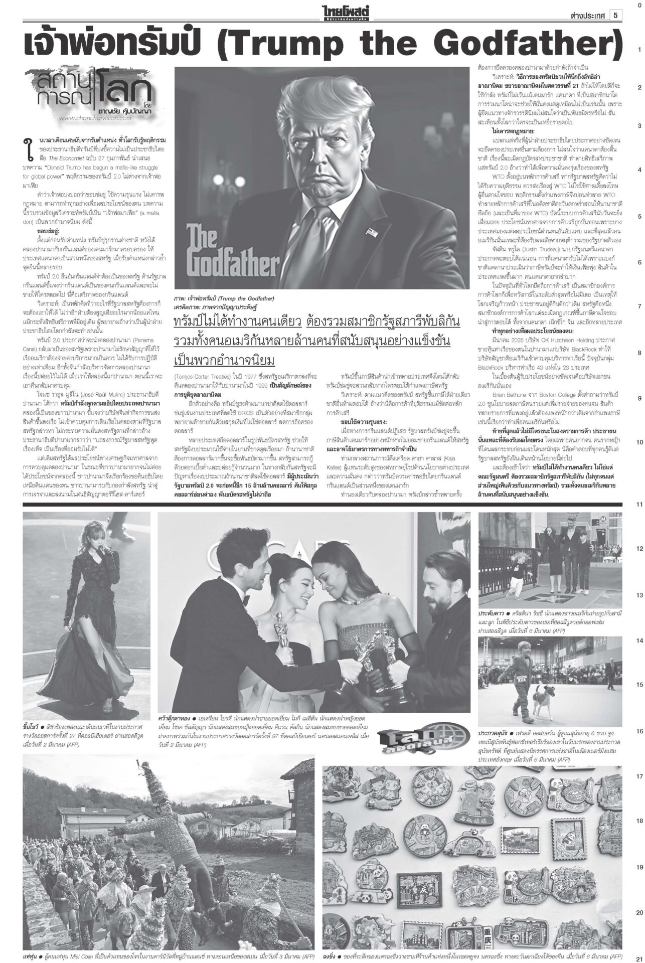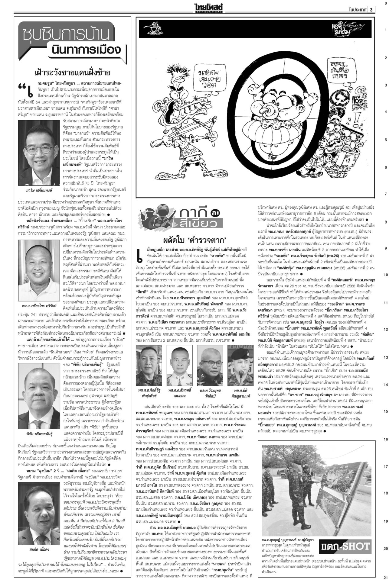 หนังสือพิมพ์ ฉบับวันที่ 9 มีนาคม 2568ข่าวหน้าหนึ่งบีบลบชื่อ‘ทักษิณ’! ‘วันนอร์’ขู่ไม่บรรจุญัตติซักฟอก/‘จตุพร’นัดไล่รัฐบาล11มี.ค.เดือด! “วันนอร์” ลั่น! หากฝ่ายค้านไม่แก้ญัตติซักฟอกตัดชื่อ “ทักษิณ” ออก ก็ไม่บรรจุวาระ ‘ทนาย’แย้ง‘ทวี’ ไร้เหตุ‘โจ้’ผูกคอ“ทวี” ยัน “ผกก.โจ้” ผูกคอเสียชีวิตหลังขังเดี่ยว พบรายงานเป็นผู้ป่วยจิตเวช ‘อิ๊งค์’บ่นสตรีสากล ถูกจ้องเรื่องส่วนตัวนายกฯ ปราศรัยวันสตรีสากล ยกย่องบทบาทสตรี ให้ไว‘ธงฟ้า’ภูเก็ตลดแหลก“พาณิชย์” ร่วมจัดงาน “ธงฟ้ากระตุ้นเศรษฐกิจจังหวัดภูเก็ต”