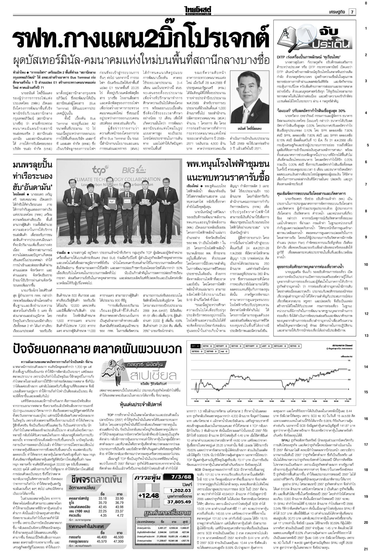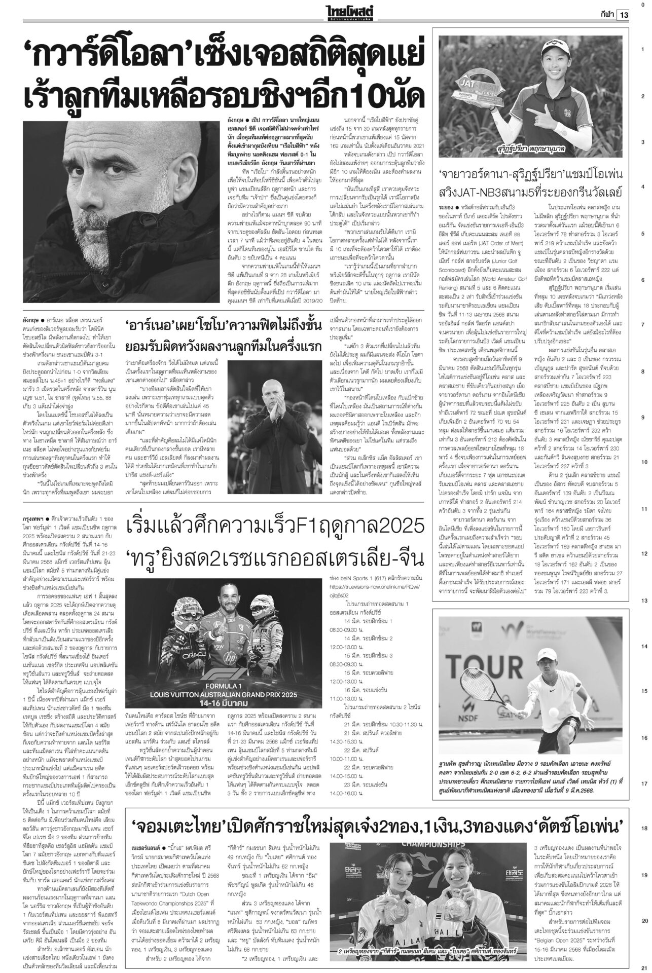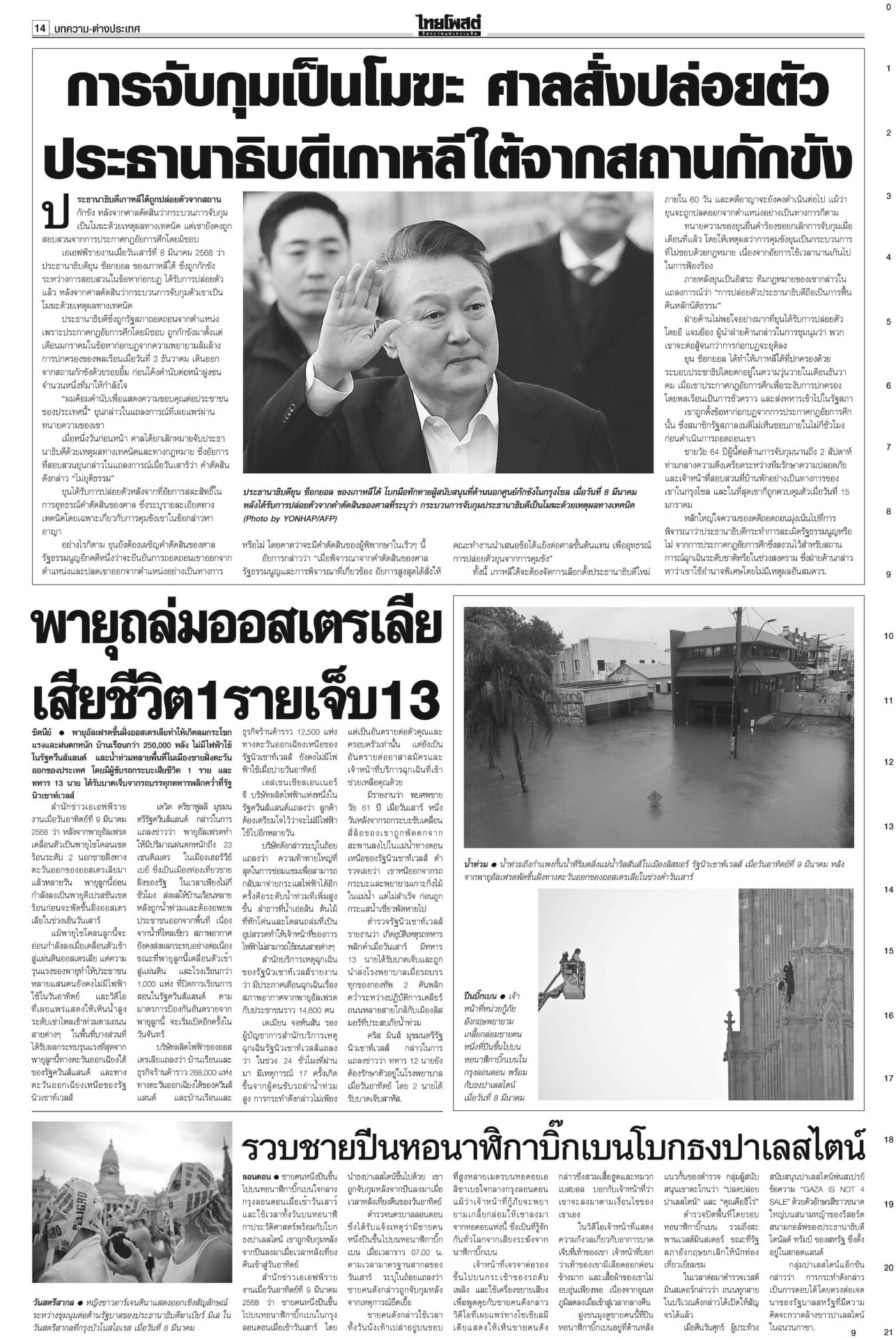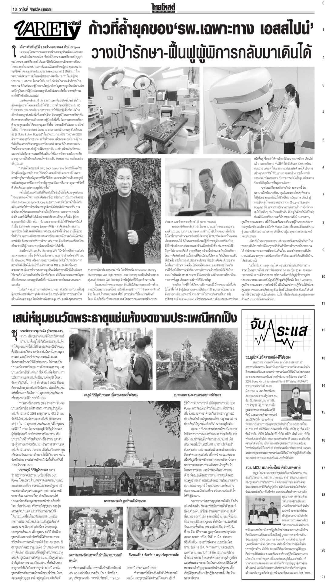 หนังสือพิมพ์ ฉบับวันที่ 10 มีนาคม 2568ข่าวหน้าหนึ่งลั่นไม่ตัดชื่อทักษิณ ปชน.ยันท่าที/‘วันนอร์’อ้างกลัวหางเลข/‘อุ๊งอิ๊ง’ปัดล็อบบี้“อิ๊งค์” แจงคุย ภท.เรื่องปกติ เล็งนัดรองนายกฯ พรรคอื่นคุยเพิ่ม ใต้เดือด!คาดตอบโต้พ่อนายกฯรอมฎอนเดือด! โจรใต้เหิมถล่มที่ว่าการอำเภอสุไหงโก-ลก ป่วนนราธิวาส-ปัตตานีหลายจุด ดับ 5 ราย ทลายเครือข่าย‘เสี่ยจิว’ ไอซ์1.5พันล.‘อาวุธ’อื้อ“อนุทิน” นำแถลงข่าวจับกุมเครือข่ายเสี่ยจิว พร้อมไอซ์ 1.5 ตัน มูลค่ากว่า 1.5 พันล้านบาท ‘อดุลย์’หนุนคุ้ย ฮั้วเลือกสภาสูง ชี้กกต.ผิด2เท่า!“อดุลย์” หนุนดำเนินคดีฮั้ว สว.ให้ถึงที่สุด ซัดบิดเบือนเจตนารมณ์ ครอบครัวโจ้เมินผลนิติฯ รอจุฬาฯชันสูตรรอบสองสถาบันนิติวิทยาศาสตร์เปิดผลผ่าชันสูตรอดีต “ผกก.โจ้” ชี้ให้น้ำหนักไปที่ขาดอากาศหายใจจากการผูกคอเสียชีวิต