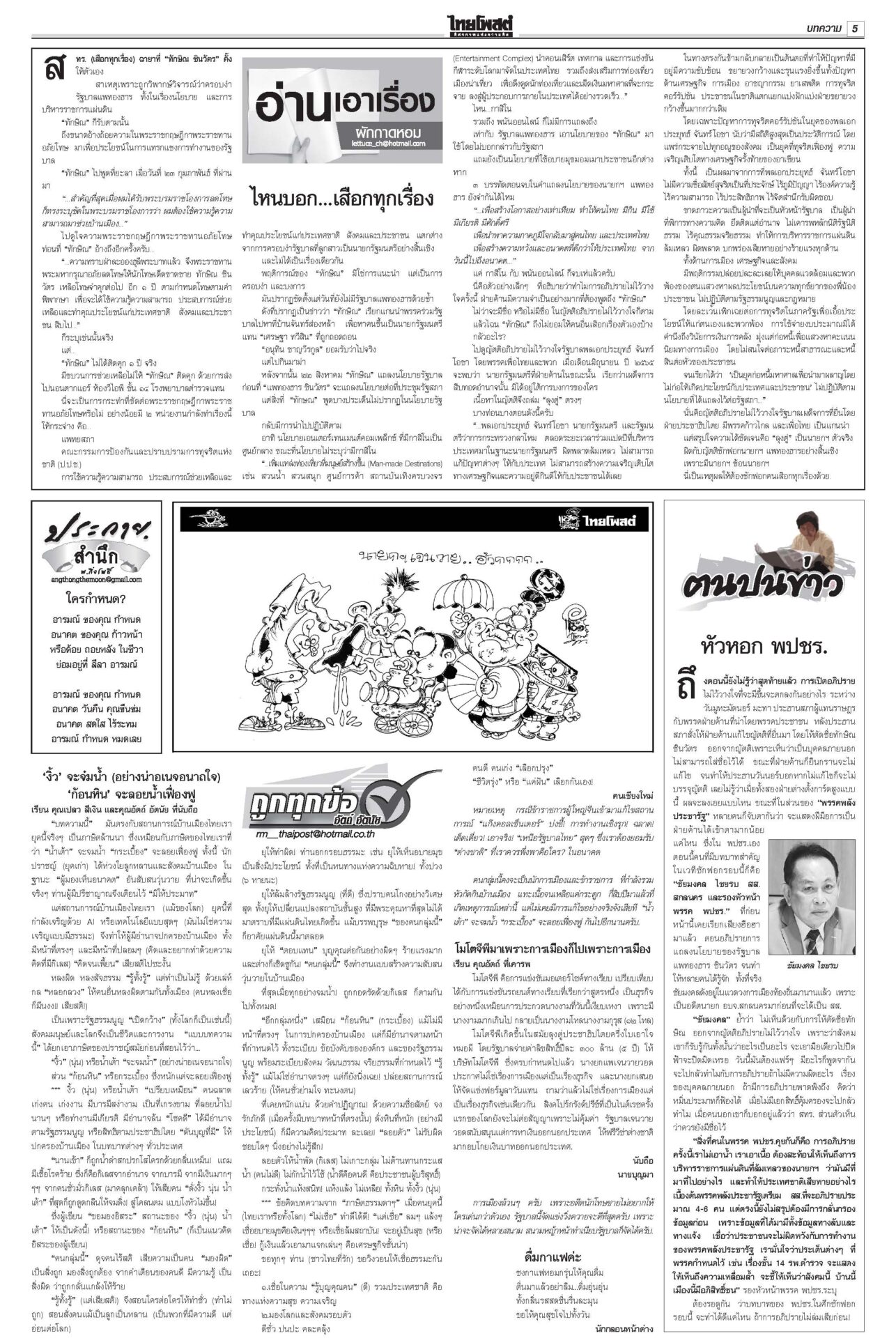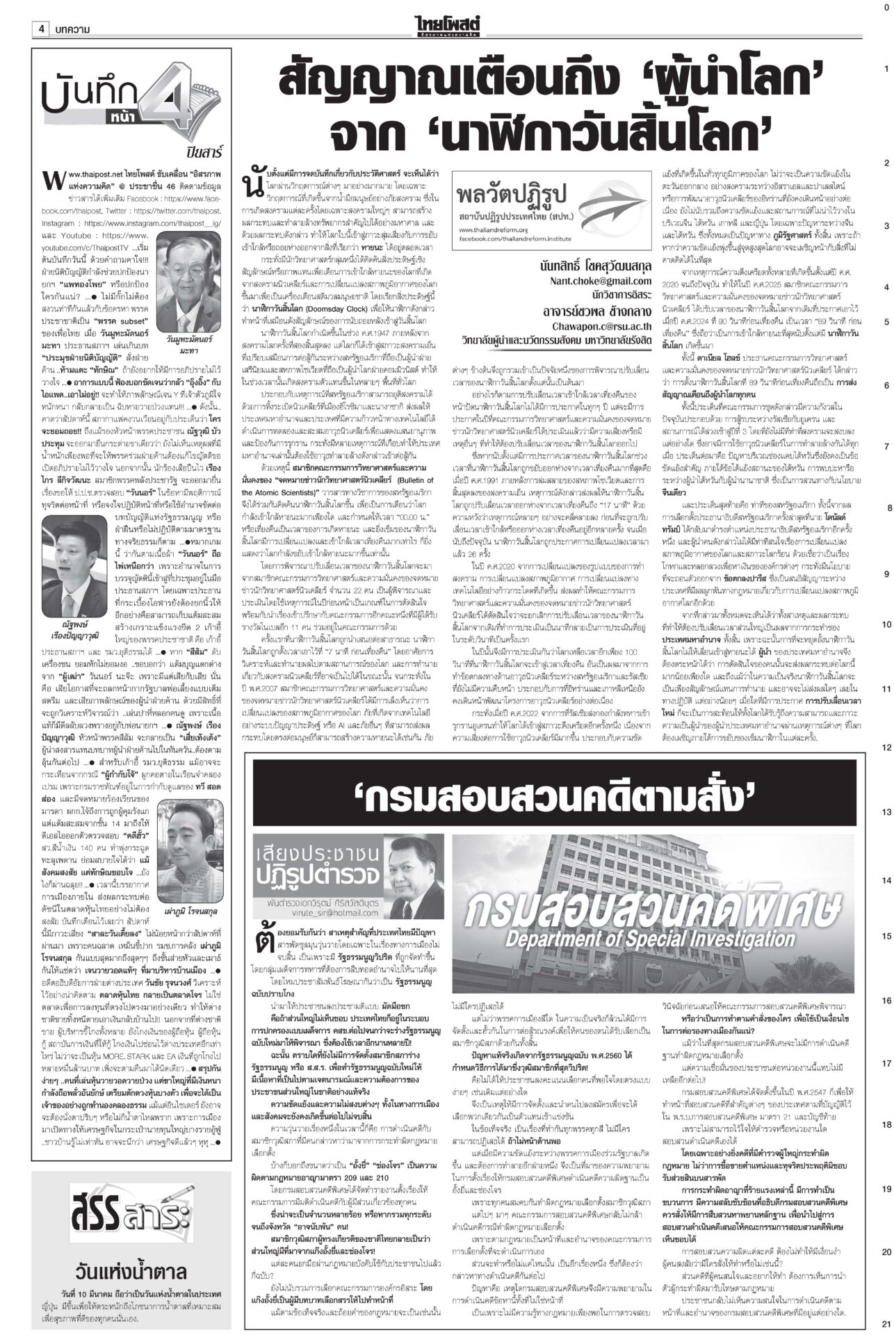 ฉบับวันที่ 10 มีนาคม 2568 10 มีนาคม 2568 เวลา 0:01 น. หนังสือพิมพ์ ฉบับวันที่ 10 มีนาคม 2568ข่าวหน้าหนึ่งลั่นไม่ตัดชื่อทักษิณ ปชน.ยันท่าที/‘วันนอร์’อ้างกลัวหางเลข/‘อุ๊งอิ๊ง’ปัดล็อบบี้“อิ๊งค์” แจงคุย ภท.เรื่องปกติ เล็งนัดรองนายกฯ พรรคอื่นคุยเพิ่ม ใต้เดือด!คาดตอบโต้พ่อนายกฯรอมฎอนเดือด! โจรใต้เหิมถล่มที่ว่าการอำเภอสุไหงโก-ลก ป่วนนราธิวาส-ปัตตานีหลายจุด ดับ 5 ราย ทลายเครือข่าย‘เสี่ยจิว’ ไอซ์1.5พันล.‘อาวุธ’อื้อ“อนุทิน” นำแถลงข่าวจับกุมเครือข่ายเสี่ยจิว พร้อมไอซ์ 1.5 ตัน มูลค่ากว่า 1.5 พันล้านบาท ‘อดุลย์’หนุนคุ้ย ฮั้วเลือกสภาสูง ชี้กกต.ผิด2เท่า!“อดุลย์” หนุนดำเนินคดีฮั้ว สว.ให้ถึงที่สุด ซัดบิดเบือนเจตนารมณ์ ครอบครัวโจ้เมินผลนิติฯ รอจุฬาฯชันสูตรรอบสองสถาบันนิติวิทยาศาสตร์เปิดผลผ่าชันสูตรอดีต “ผกก.โจ้” ชี้ให้น้ำหนักไปที่ขาดอากาศหายใจจากการผูกคอเสียชีวิต Tagsรายวันหนังสือพิมพ์ ข่าวที่เกี่ยวข้อง ฉบับวันที่ 7 ธันวาคม 2568 ฉบับวันที่ 6 ธันวาคม 2568 ฉบับวันที่ 5 ธันวาคม 2568 ฉบับวันที่ 4 ธันวาคม 2568 ฉบับวันที่ 3 ธันวาคม 2568 ฉบับวันที่ 2 ธันวาคม 2568 NEWS UPDATE 1:00 น. มะม่วงหิมพานต์กับปาฏิหาริย์เรื่องราวแห่งแรงใจจากบ้านหาดไก่ต้อย จังหวัดอุตรดิตถ์ 0:01 น. หาดใหญ่-สแกมเมอร์ทำรบ.'แต้มหล่น' 'อนุทิน'เปิดหน้าชนกู้เรตติ้ง 21:16 น. จนท.ปกครองเดินฝ่าดงหนาม 4 กม. จับหนุ่มซุกยาบ้าในรูปู 126 เม็ด 20:58 น. ชาวบ้านริมน้ำสาละวิน มึนข้อมูลราชการสุดสับสน ไม่แน่ใจปลา-พืชริมน้ำกินได้หรือไม่ 19:07 น. ลมหนาวมาอีกระลอก! กรมอุตุฯ พยากรณ์อากาศ 7 วันข้างหน้า อุณหภูมิจะลดลง 2-4 องศา