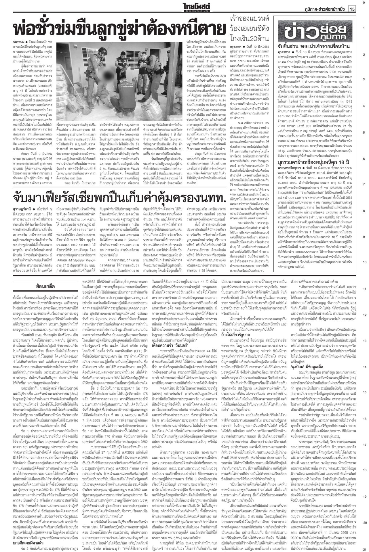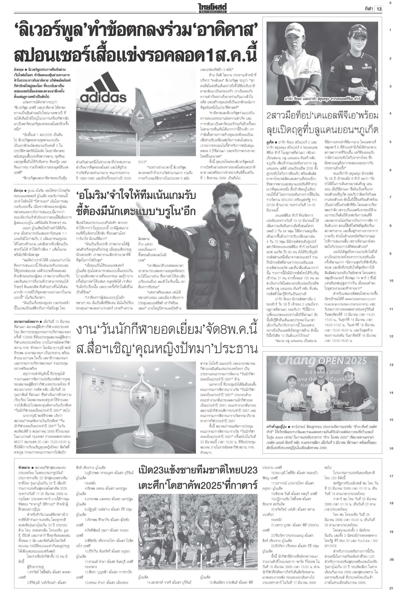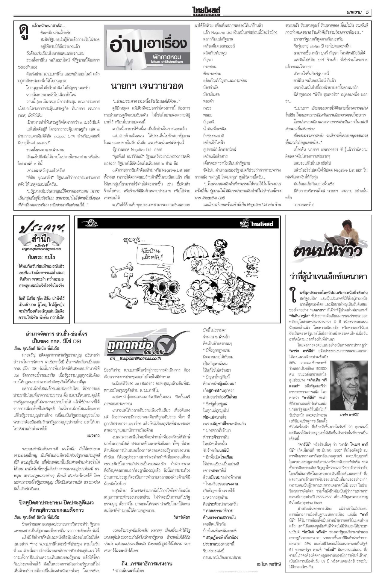 ฉบับวันที่ 11 มีนาคม 2568 11 มีนาคม 2568 เวลา 0:01 น. หนังสือพิมพ์ ฉบับวันที่ 11 มีนาคม 2568ข่าวหน้าหนึ่งย้อนเกล็ด‘วันนอร์’ เคยเสนอญัตติมีชื่อเอกชน พท.ลอยตัวให้ตกลงกันเอง“วันนอร์” ยกยุค “ชวน หลีกภัย” ก็เคยแก้ญัตติมาแล้วแม้ไม่เห็นด้วย แจกเงินหมื่นวัยรุ่นซื้อได้ทุกอย่างเฮ! กันทั้งประเทศ รัฐบาลไฟเขียวดิจิทัลวอลเล็ตกลุ่ม 16-20 ปี หัวละหมื่น 2.7 ล้านคน เด้ง‘ผู้คุมคุก’คู่กรณี‘อดีตผกก.โจ้’เด้ง “ผู้คุมคุกคลองเปรม” คู่กรณี “อดีต ผกก.โจ้” พ้นแดน-ห้ามเข้าเรือนจำ โจรใต้ป่วนอีกพุ่งเป้าอส. ‘บิ๊กอ้วน’มึนคุยไม่ถูกคน“ในหลวง-พระราชินี” พระราชทานตะกร้าสิ่งของแก่ญาติ จนท.กองอาสารักษาดินแดนที่เสียชีวิตในเหตุร้ายสุไหงโก-ลก โต้คำร้องค้างท่อ สว.จ่อยื่นปปช. ฟัน‘ทวี-ยุทธนา’กกต.โต้การพิจารณาสำนวนฮั้วเลือก สว. ค้างท่อ ขึ้นอยู่กับการพิจารณาของ “เลขาฯ แสวง” ไม่เป็นความจริง Tagsรายวันหนังสือพิมพ์ ข่าวที่เกี่ยวข้อง ฉบับวันที่ 7 ธันวาคม 2568 ฉบับวันที่ 6 ธันวาคม 2568 ฉบับวันที่ 5 ธันวาคม 2568 ฉบับวันที่ 4 ธันวาคม 2568 ฉบับวันที่ 3 ธันวาคม 2568 ฉบับวันที่ 2 ธันวาคม 2568 NEWS UPDATE 1:00 น. มะม่วงหิมพานต์กับปาฏิหาริย์เรื่องราวแห่งแรงใจจากบ้านหาดไก่ต้อย จังหวัดอุตรดิตถ์ 0:01 น. หาดใหญ่-สแกมเมอร์ทำรบ.'แต้มหล่น' 'อนุทิน'เปิดหน้าชนกู้เรตติ้ง 21:16 น. จนท.ปกครองเดินฝ่าดงหนาม 4 กม. จับหนุ่มซุกยาบ้าในรูปู 126 เม็ด 20:58 น. ชาวบ้านริมน้ำสาละวิน มึนข้อมูลราชการสุดสับสน ไม่แน่ใจปลา-พืชริมน้ำกินได้หรือไม่ 19:07 น. ลมหนาวมาอีกระลอก! กรมอุตุฯ พยากรณ์อากาศ 7 วันข้างหน้า อุณหภูมิจะลดลง 2-4 องศา