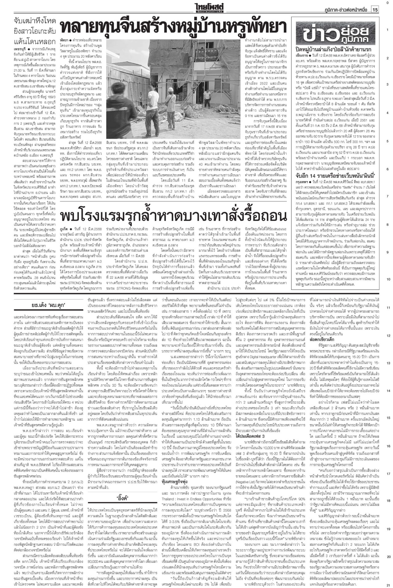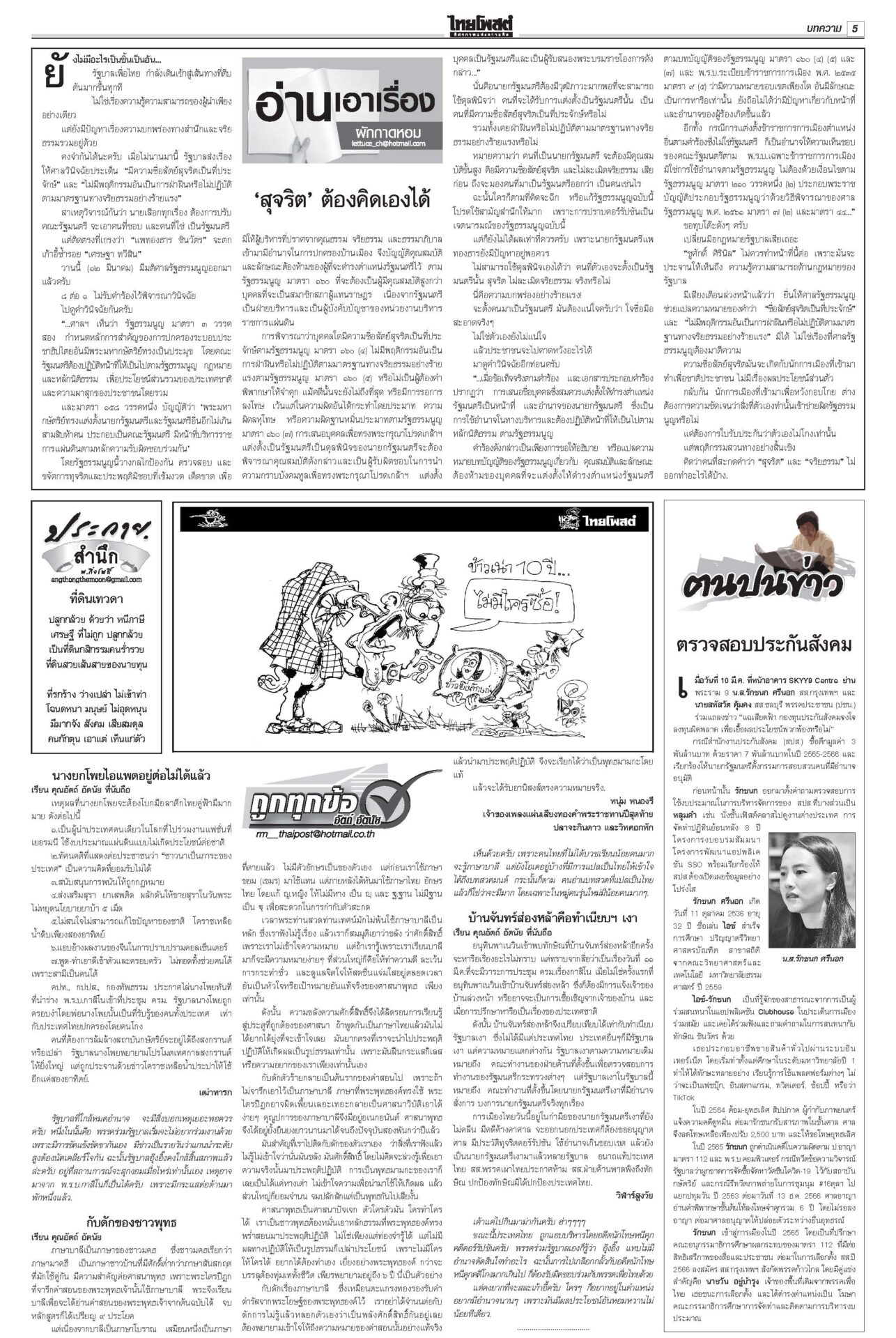 ฉบับวันที่ 13 มีนาคม 2568 13 มีนาคม 2568 เวลา 0:01 น. หนังสือพิมพ์ ฉบับวันที่ 13 มีนาคม 2568ข่าวหน้าหนึ่งหน้าที่นายกฯไม่ใช่ศาล ยกคำร้องตีความซื่อสัตย์ ญัตติซักฟอกจบสัปดาห์นี้ศาล รธน.มีมติ 8 ต่อ 1 ตีตกคำร้องรัฐบาลขอตีความนิยาม “ซื่อสัตย์สุจริตเป็นที่ประจักษ์” เหตุไม่เข้าหลักเกณฑ์ รู้ตัวการโกงยา จ่อรวบยกแก๊ง จับซ่อมบัสทิพย์“ภูมิธรรม” ย้ำสิ้นเดือนนี้ออกหมายจับขบวนการทุจริตยา รพ.ทหารผ่านศึก ‘อิ๊งค์’ตีปี๊บลงทุนกระฉูด เฟส3หมดท่าคุมซื้อเหล้านายกฯ ตีปี๊บเศรษฐกิจไทยพุ่งกระฉูด ทุบสถิติใหม่ยอดรับส่งเสริมลงทุนทะลุ 1.13 ล้านล้านบาท 3เดือนแจ้งข้อหาคดี‘ฮั้วสว.’เดือด! “ฉัตรวรรษ” นำทีม 81 สว.ยื่น ป.ป.ช.สอบ “ทวี-ยุทธนา” ผิด ม.157 ยธ.เด้ง‘ผบ.คุก’ ไขคราบเลือดโจ้ พฐ.เช็กวงจรปิดเด้ง “รรท.ผบ.คุกคลองเปรม” ตั้งรองอธิบดีราชทัณฑ์ปฏิบัติหน้าที่แทน Tagsรายวันหนังสือพิมพ์ ข่าวที่เกี่ยวข้อง ฉบับวันที่ 7 ธันวาคม 2568 ฉบับวันที่ 6 ธันวาคม 2568 ฉบับวันที่ 5 ธันวาคม 2568 ฉบับวันที่ 4 ธันวาคม 2568 ฉบับวันที่ 3 ธันวาคม 2568 ฉบับวันที่ 2 ธันวาคม 2568 NEWS UPDATE 1:00 น. มะม่วงหิมพานต์กับปาฏิหาริย์เรื่องราวแห่งแรงใจจากบ้านหาดไก่ต้อย จังหวัดอุตรดิตถ์ 0:01 น. หาดใหญ่-สแกมเมอร์ทำรบ.'แต้มหล่น' 'อนุทิน'เปิดหน้าชนกู้เรตติ้ง 21:16 น. จนท.ปกครองเดินฝ่าดงหนาม 4 กม. จับหนุ่มซุกยาบ้าในรูปู 126 เม็ด 20:58 น. ชาวบ้านริมน้ำสาละวิน มึนข้อมูลราชการสุดสับสน ไม่แน่ใจปลา-พืชริมน้ำกินได้หรือไม่ 19:07 น. ลมหนาวมาอีกระลอก! กรมอุตุฯ พยากรณ์อากาศ 7 วันข้างหน้า อุณหภูมิจะลดลง 2-4 องศา