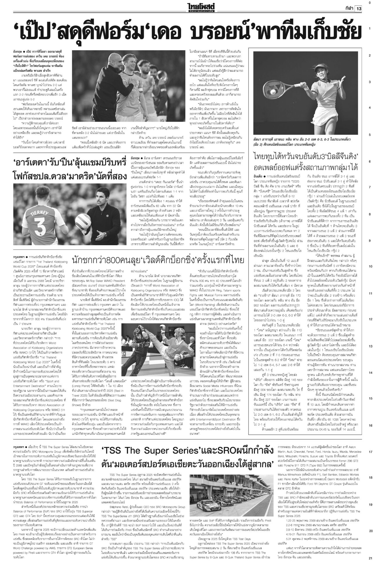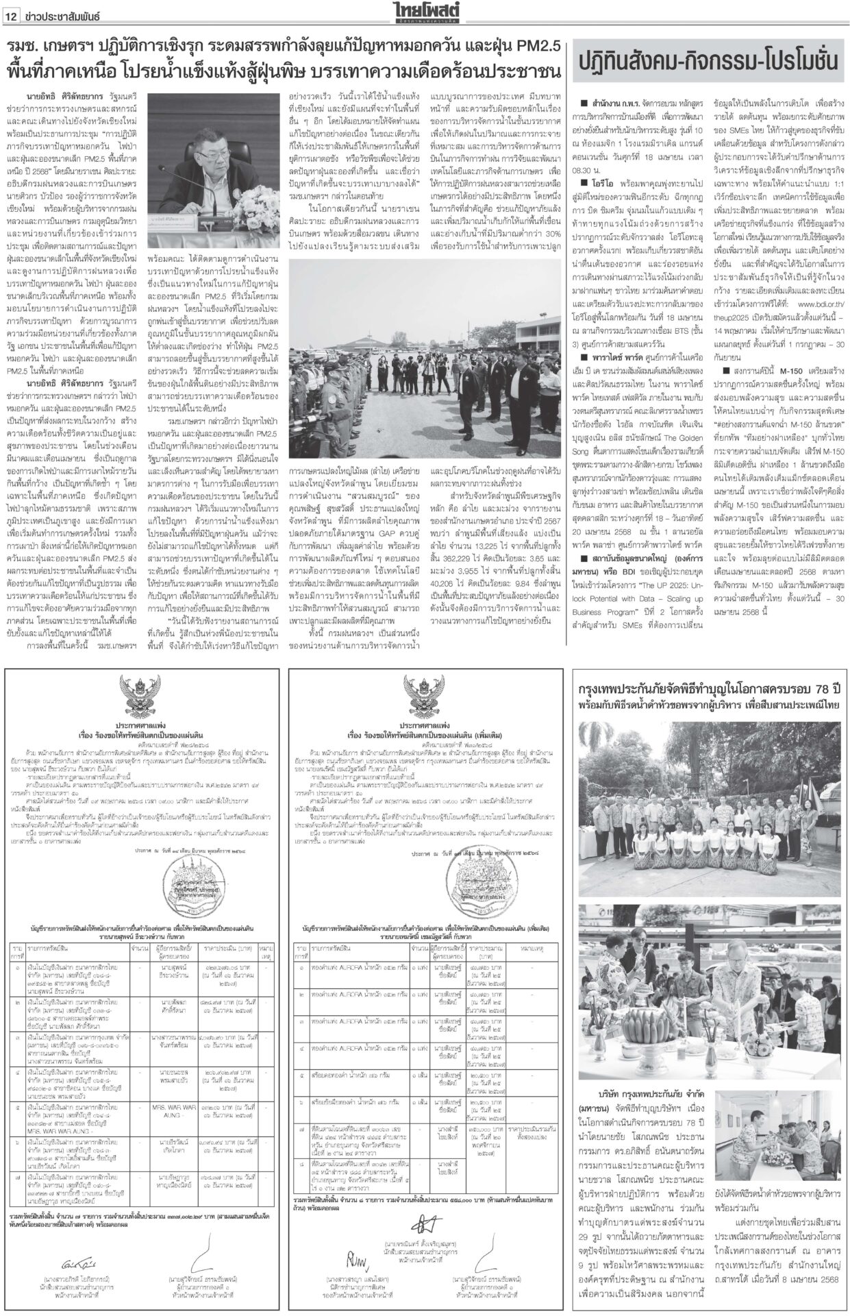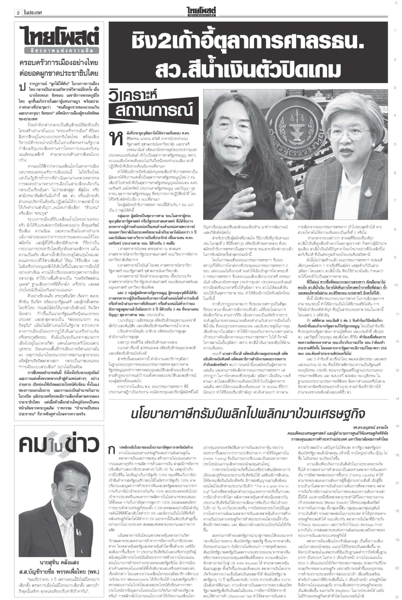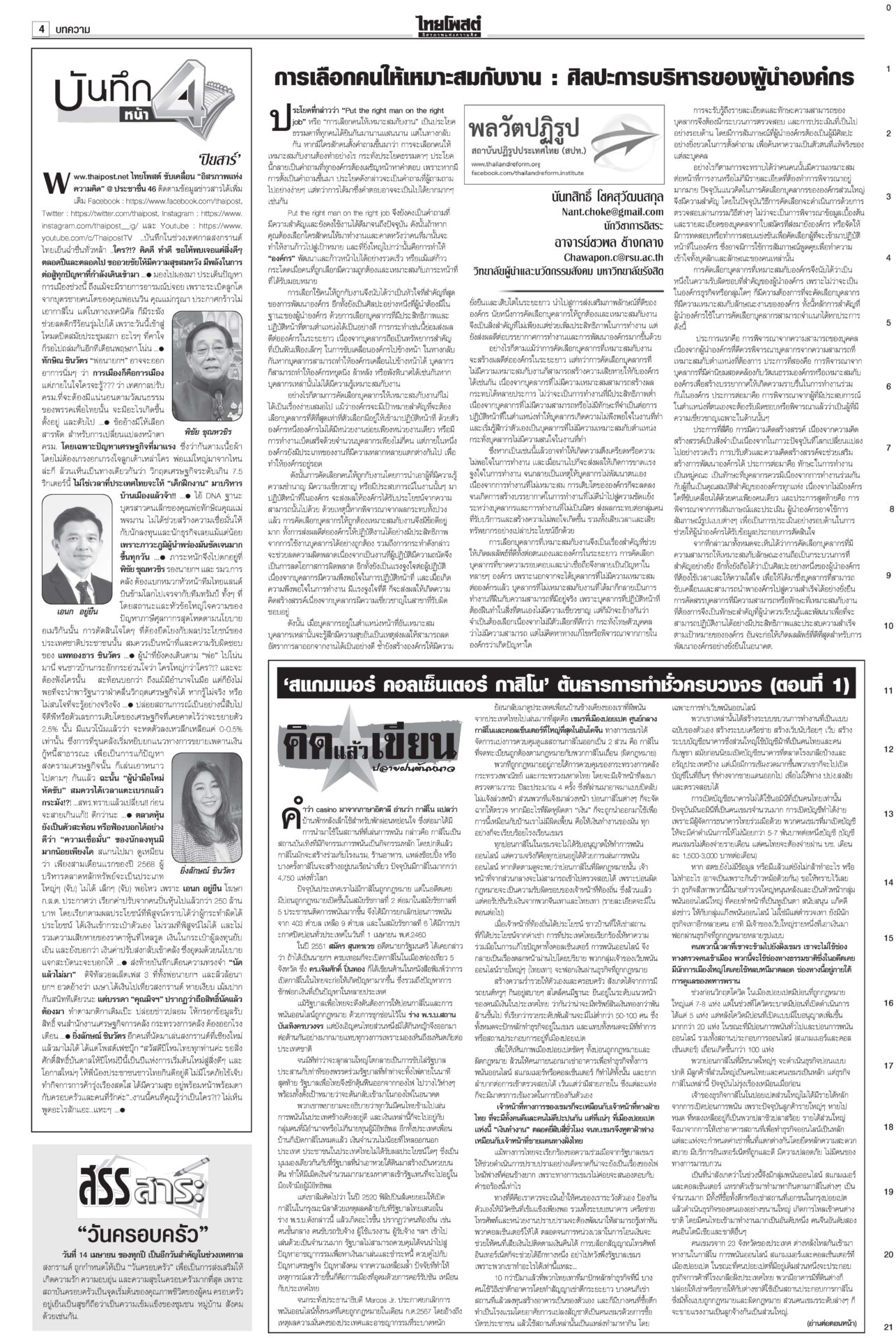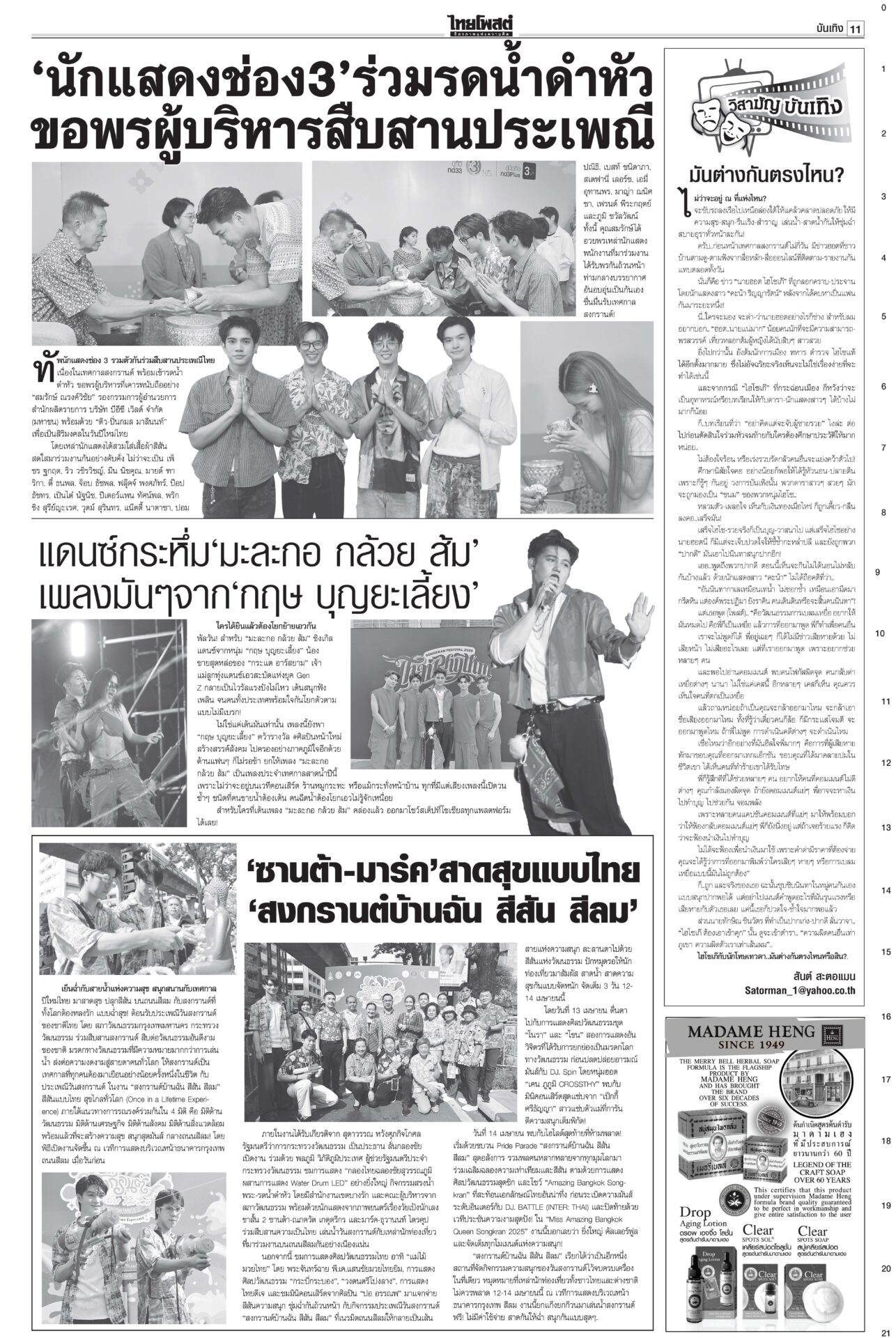 หนังสือพิมพ์ ฉบับวันที่ 14 เมษายน 2568ข่าวหน้าหนึ่งลั่น!กาสิโนไม่มีถอย สทร.ชี้แค่ชะลอฟังปชช./สว.ปูดยกที่ดินริมนํ้าให้ต่างชาติเปิดบ่อนกาสิโน “ทักษิณ” ไม่ถอย อ้างเป็นสิ่งที่เป็นประโยชน์กับบ้านเมือง จวกพวกบิดเบือน ทักษิณฟุ้งรอจังหวะคุยทรัมป์“ทักษิณ” บอกคุยคนรอบตัว “ทรัมป์” แล้ว วอนอย่ากีดกันการค้าประเทศกำลังพัฒนา ‘แม้ว’แนะรวมเป็นหนึ่ง ปูขออยู่พร้อมครอบครัวนายกฯ อิ๊งค์กล่าวอวยพรเนื่องในโอกาสสงกรานต์ ขอให้ทุกคนมีความสุข ‘สงกรานต์’ดุดับ59ราย คดีเมาแล้วขับเกินพัน!2 วันอันตรายดับรับสงกรานต์ 59 ราย เจ็บ 458 คน กทม.แชมป์ “ทวี” ขึงขังกำชับใช้กฎหมายเข้มข้น กรมคุมประพฤติเผยมีคดีกว่า 1,037 คดี 17วันสตง.ถล่ม ยังไร้ปาฏิหาริย์ ‘กทม.’ลุยรื้อต่อ17 วัน สตง.ไร้ปาฏิหาริย์เพิ่ม กทม.สรุปยอดเสียชีวิต 37 ราย อยู่ระหว่างค้นหาอีก 57 ราย