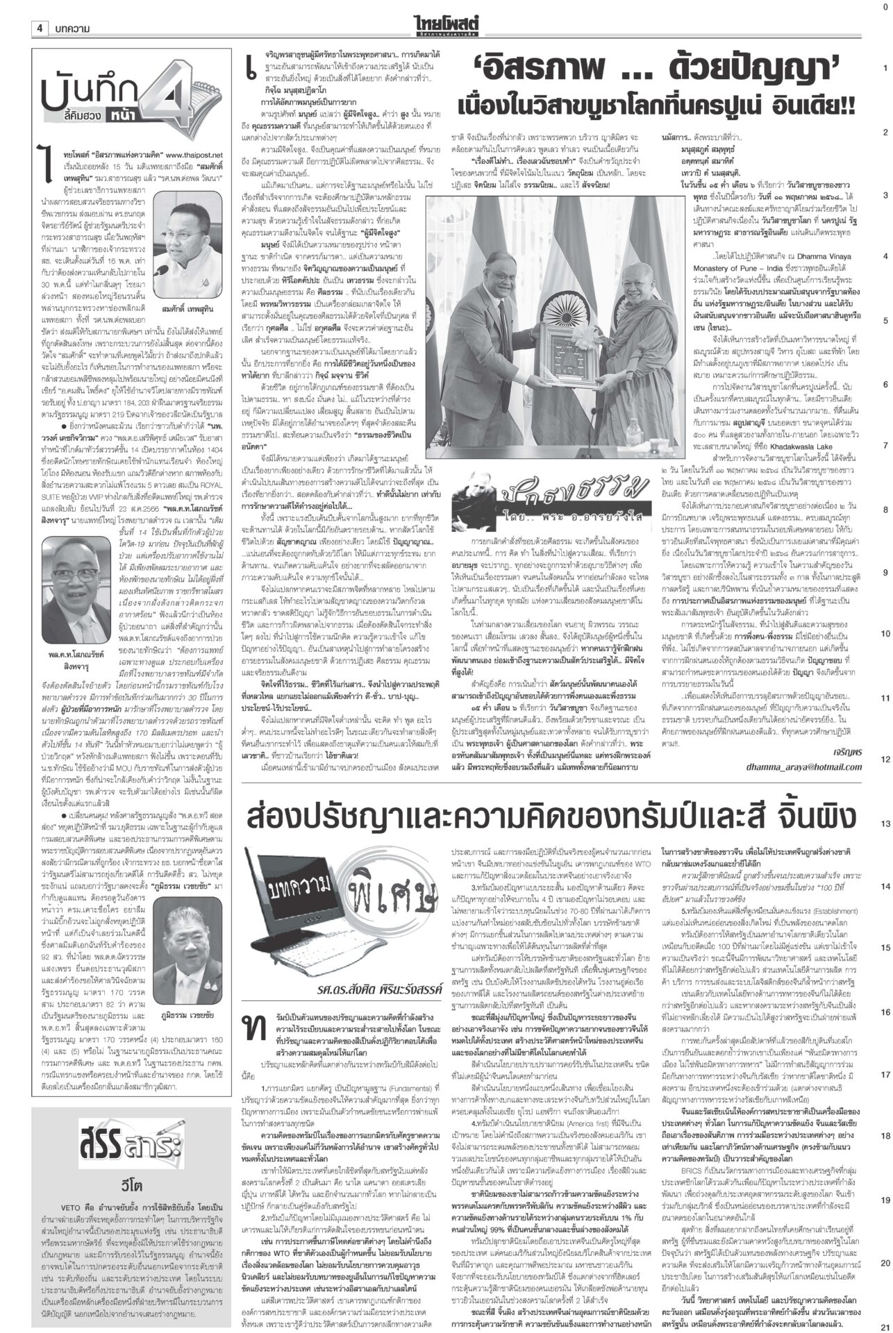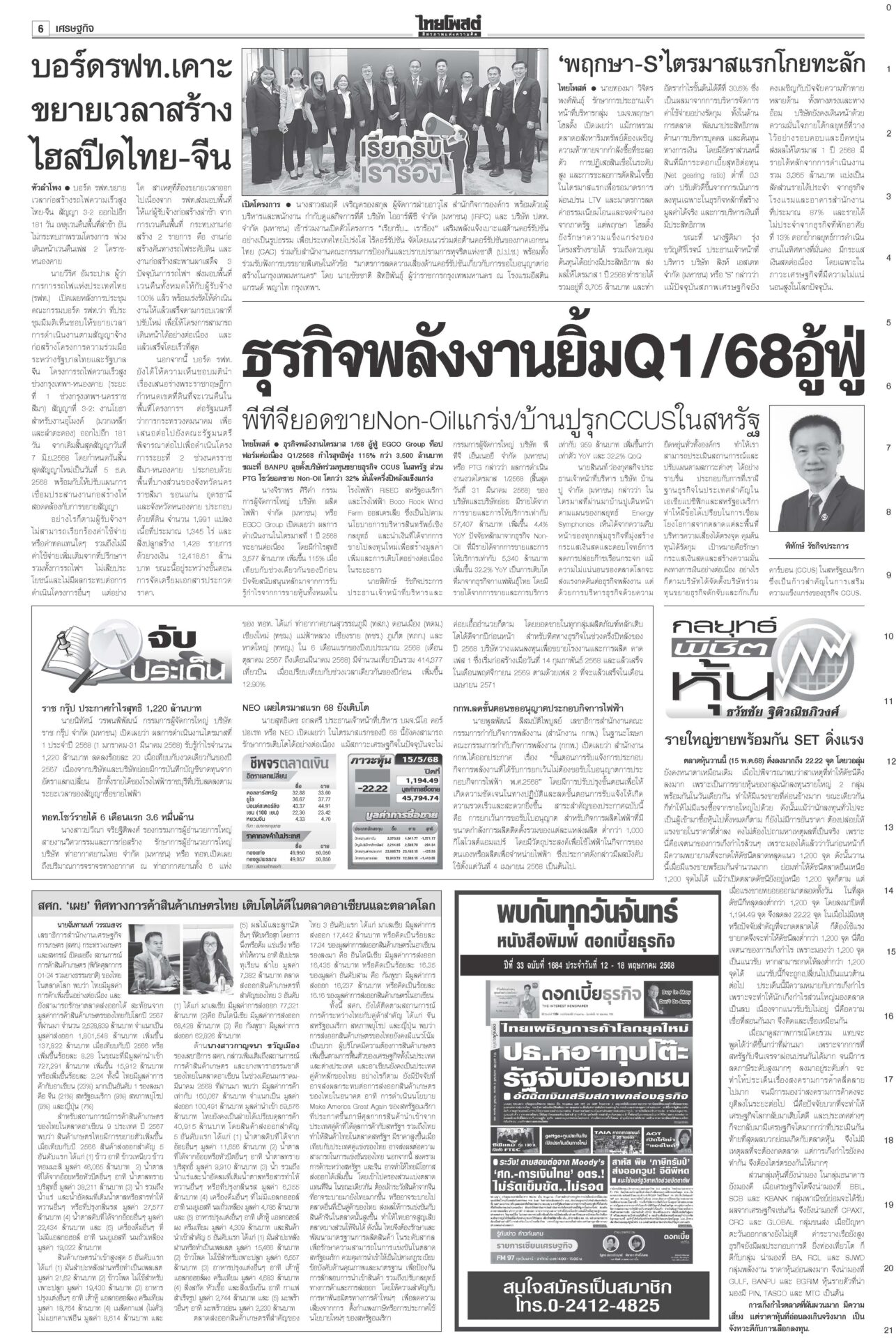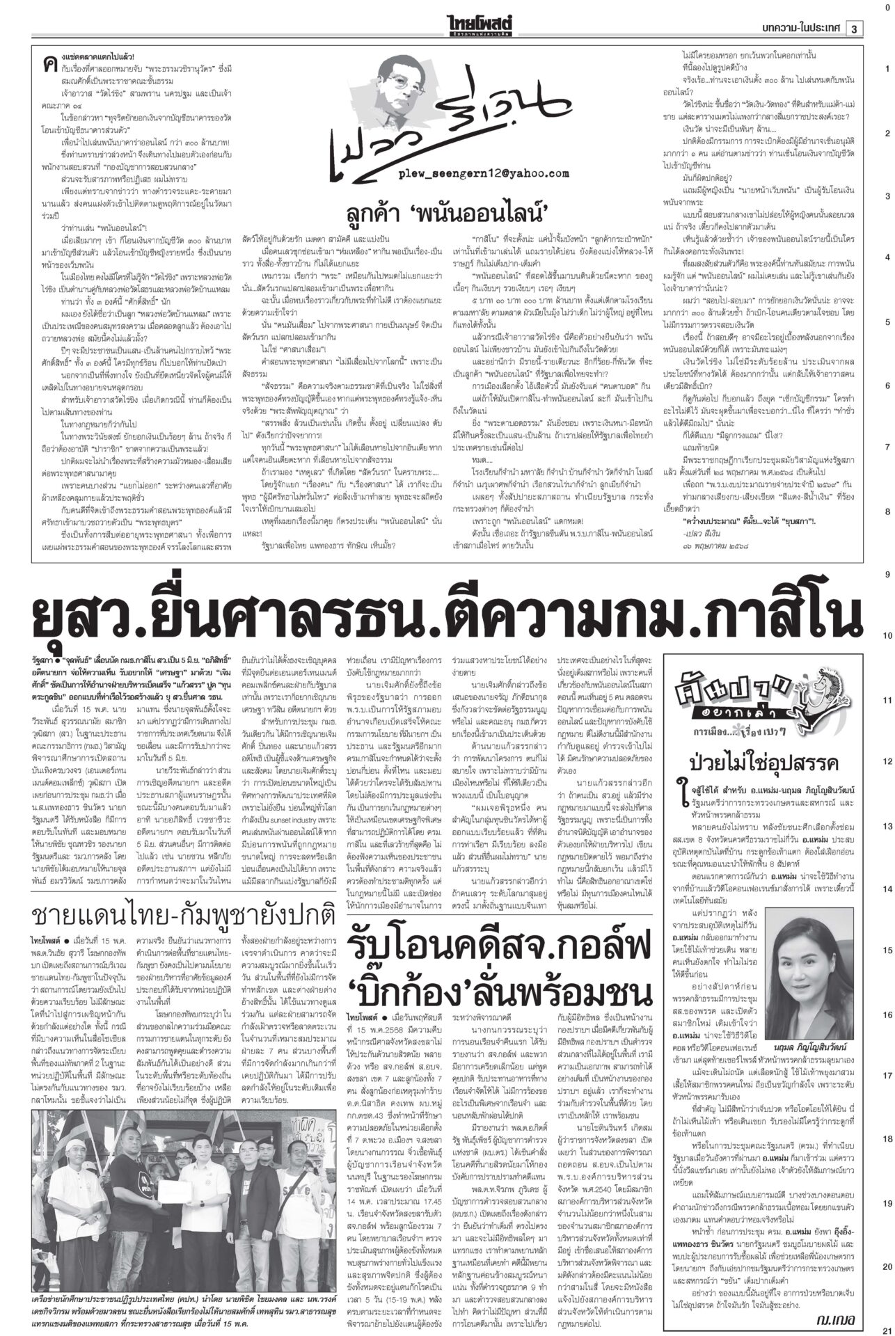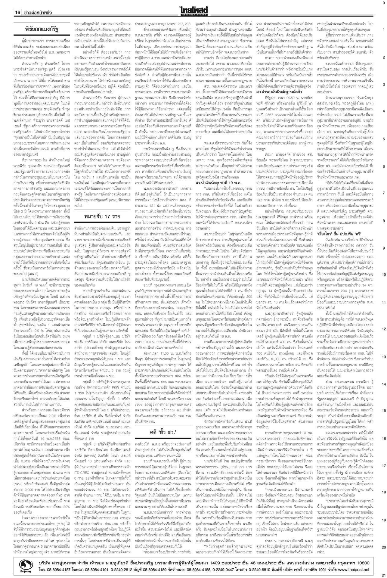 หนังสือพิมพ์ ฉบับวันที่ 16 พฤษภาคม 2568ข่าวหน้าหนึ่งคดี‘ฮั้วสว.’ไม่สะดุด DSIลุยสอบฟอกเงิน-อั้งยี่ ดาบสองชงป.ป.ช.ฟัน‘ทวี’“นายกฯ อิ๊งค์” ปัดคุมดีเอสไอเอง รอ ครม.เคาะตัวแทนทวี “โฆษกดีเอสไอ” ลั่นคดีฮั้ว สว.ไม่สะดุด เดินหน้าสอบฟอกเงิน-อังยี่ตาม กม. ขวาง‘สมศักดิ์’วีโตมติแพทยสภาขวาง “สมศักดิ์” วีโตมติแพทยสภา “วรงค์” เชื่อมีเกมดิสเครดิตแพทยสภา หมายจับ17รายเอี่ยวตึกสตง.ออกหมายจับ 17 ราย วิศวกร-ผู้ควบคุมงาน-กิจการร่วมค้า เอี่ยวคดี “ตึก สตง.ถล่ม” พิชัยถกแบงก์รัฐ ศก.ฟุบหนัก2ปี จ่ออัดซอฟต์โลน“อิ๊งค์” บอกยังไม่ยกเลิก “เงินหมื่นเฟส 3” อ้างเวลานี้ต้องกระตุ้นเศรษฐกิจทั้งหมด เตือนคลังติดคุก หนุน‘G-Token’ แฉเอื้อบิตคอยน์“ธีระชัย” จี้รัฐหยุดตีความกฎหมายสร้างความชอบธรรมออก “จีโทเคน” ชี้ไม่ตรงเจตนารมณ์ พ.ร.บ.หนี้
