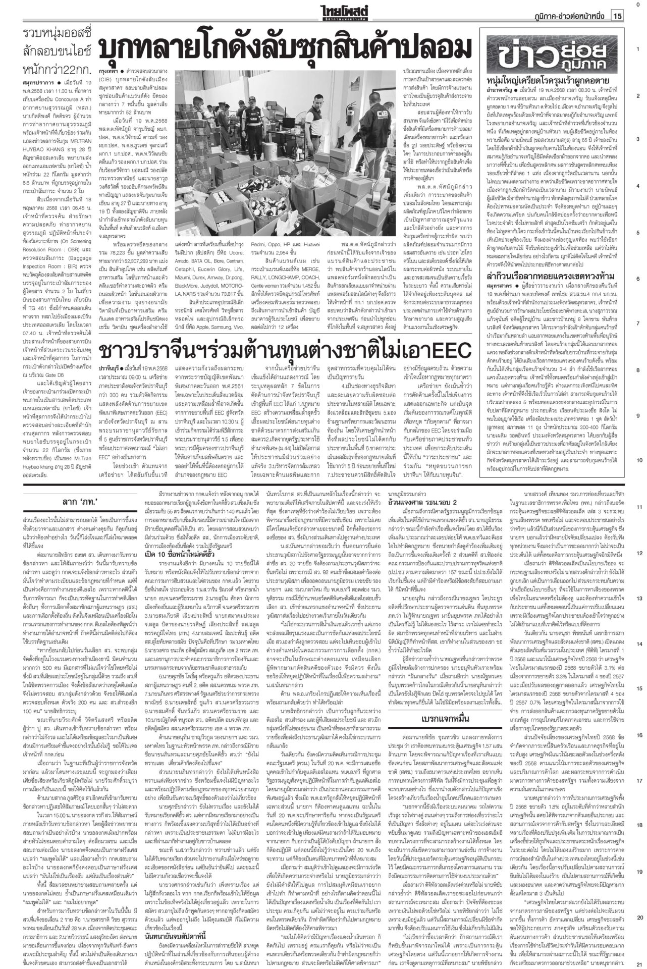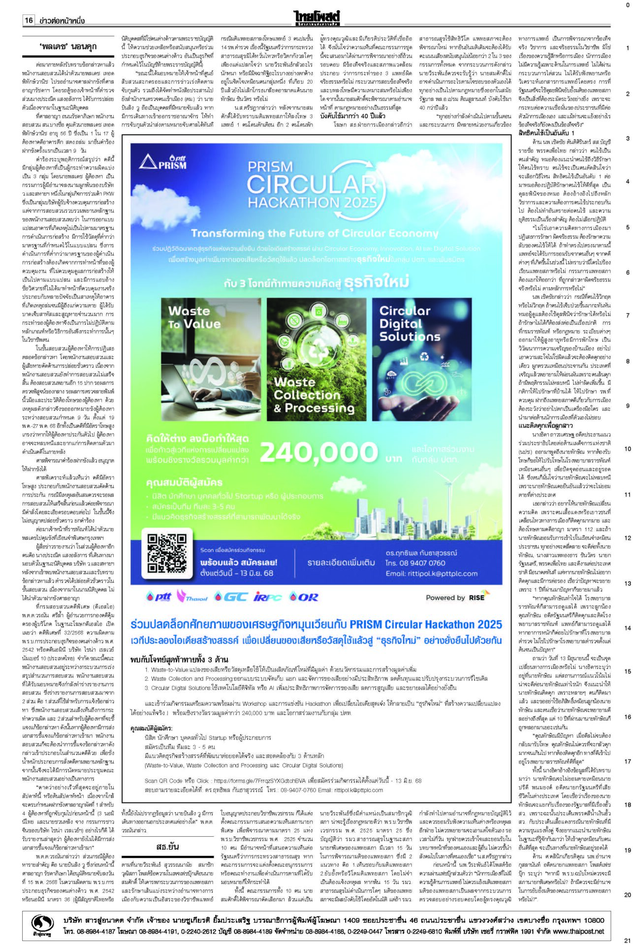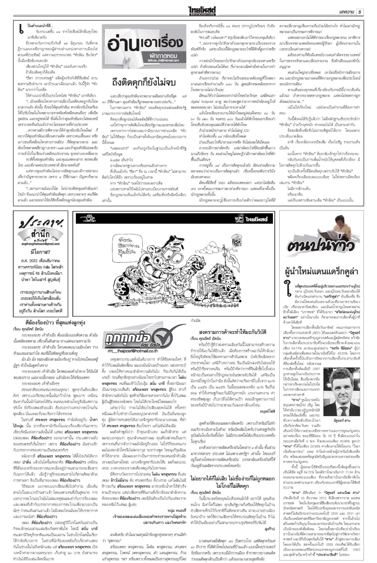 หนังสือพิมพ์ ฉบับวันที่ 20 พฤษภาคม 2568ข่าวหน้าหนึ่งลาก‘ภท.’เอี่ยวฮั้วสว. ปูด10ชื่อทั้งรมช.พณ.-อดีตสส./สีน้ำเงินชงคุ้ยตัวสำรองด้วยสภาสูงเรียงหน้าเข้ารับทราบข้อหาจาก กกต.คดีฮั้ว ลั่นไร้กังวลพร้อมชี้แจง “สิทธิกร” ข้องใจดีเอสไอ ต่อไปการเลือกตั้งทุกแบบมีอำนาจตรวจสอบ เบรกแจกหมื่นเฟส3ใช้กระตุ้นศก.นายกฯ ถกบอร์ดกระตุ้น ศก. ยอมรับภาษีสหรัฐฯ กระทบทั่วโลก “รมว.คลัง” ยอมรับต้องทบทวนงบดิจิทัลวอลเล็ต 1.57 แสนล้านบาท ‘พลเดช’นอนคุก ล่าตัว‘บินลิง วู’ เชื่อมโยงไชน่าฯศาลอาญาไม่ให้ประกัน “พลเดช” กก.บริษัท ว.และสหายฯ หนึ่งในก๊วนผู้ต้องหาเอี่ยวตึก สตง.ถล่ม สธ.ยันวีโตแพทยสภาได้ ‘ธิดา’จี้แม้วติดคุกเพื่อลูก“สมศักดิ์” เผยได้รับหนังสือขอความเป็นธรรมแพทย์ รพ.ตร.แล้ว ส่ง คกก.ตรวจสอบ “โฆษก สธ.” โต้ “สว.วีระพันธ์” ‘อนุทิน’มั่นใจรบ.อยู่ครบเทอม“อนุทิน” คัมแบ็กทํางานวันแรกหลังเปลี่ยนเลนส์ตา ยัน ภท.แพ็กกับทุกพรรค