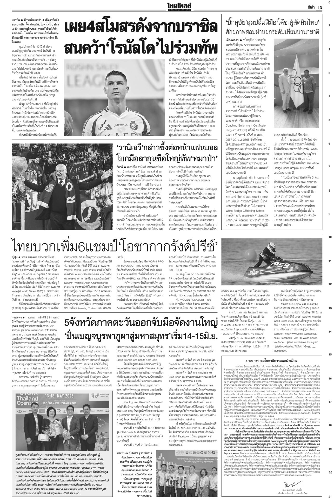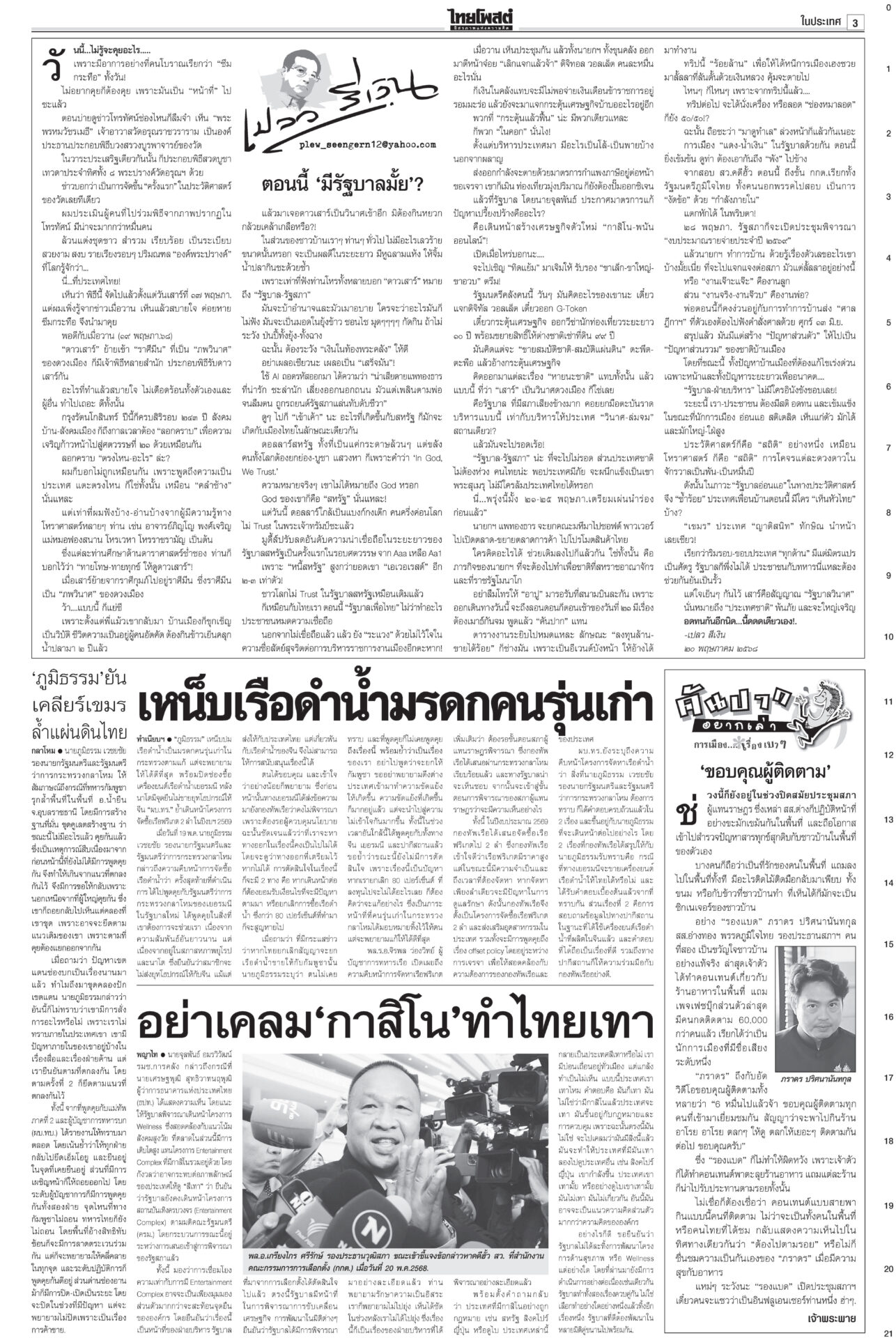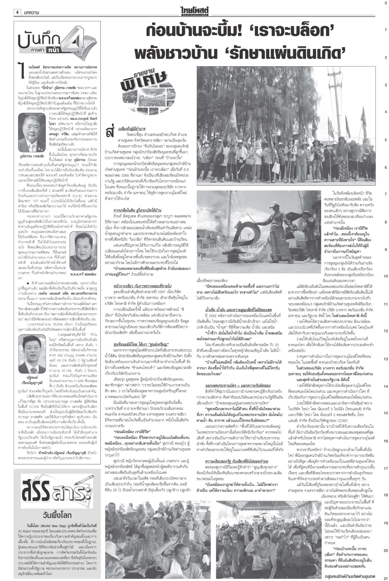 ฉบับวันที่ 20 พฤษภาคม 2568 20 พฤษภาคม 2568 เวลา 0:01 น. หนังสือพิมพ์ ฉบับวันที่ 20 พฤษภาคม 2568ข่าวหน้าหนึ่งลาก‘ภท.’เอี่ยวฮั้วสว. ปูด10ชื่อทั้งรมช.พณ.-อดีตสส./สีน้ำเงินชงคุ้ยตัวสำรองด้วยสภาสูงเรียงหน้าเข้ารับทราบข้อหาจาก กกต.คดีฮั้ว ลั่นไร้กังวลพร้อมชี้แจง “สิทธิกร” ข้องใจดีเอสไอ ต่อไปการเลือกตั้งทุกแบบมีอำนาจตรวจสอบ เบรกแจกหมื่นเฟส3ใช้กระตุ้นศก.นายกฯ ถกบอร์ดกระตุ้น ศก. ยอมรับภาษีสหรัฐฯ กระทบทั่วโลก “รมว.คลัง” ยอมรับต้องทบทวนงบดิจิทัลวอลเล็ต 1.57 แสนล้านบาท ‘พลเดช’นอนคุก ล่าตัว‘บินลิง วู’ เชื่อมโยงไชน่าฯศาลอาญาไม่ให้ประกัน “พลเดช” กก.บริษัท ว.และสหายฯ หนึ่งในก๊วนผู้ต้องหาเอี่ยวตึก สตง.ถล่ม สธ.ยันวีโตแพทยสภาได้ ‘ธิดา’จี้แม้วติดคุกเพื่อลูก“สมศักดิ์” เผยได้รับหนังสือขอความเป็นธรรมแพทย์ รพ.ตร.แล้ว ส่ง คกก.ตรวจสอบ “โฆษก สธ.” โต้ “สว.วีระพันธ์” ‘อนุทิน’มั่นใจรบ.อยู่ครบเทอม“อนุทิน” คัมแบ็กทํางานวันแรกหลังเปลี่ยนเลนส์ตา ยัน ภท.แพ็กกับทุกพรรค Tagsรายวันหนังสือพิมพ์ ข่าวที่เกี่ยวข้อง ฉบับวันที่ 6 ธันวาคม 2568 ฉบับวันที่ 5 ธันวาคม 2568 ฉบับวันที่ 4 ธันวาคม 2568 ฉบับวันที่ 3 ธันวาคม 2568 ฉบับวันที่ 2 ธันวาคม 2568 ฉบับวันที่ 1 ธันวาคม 2568 NEWS UPDATE 21:16 น. จนท.ปกครองเดินฝ่าดงหนาม 4 กม. จับหนุ่มซุกยาบ้าในรูปู 126 เม็ด 20:58 น. ชาวบ้านริมน้ำสาละวิน มึนข้อมูลราชการสุดสับสน ไม่แน่ใจปลา-พืชริมน้ำกินได้หรือไม่ 19:07 น. ลมหนาวมาอีกระลอก! กรมอุตุฯ พยากรณ์อากาศ 7 วันข้างหน้า อุณหภูมิจะลดลง 2-4 องศา 19:05 น. ภัยพิบัติสแกมเมอร์ | ห้องข่าวไทยโพสต์สุดสัปดาห์ 18:49 น. 'GULF-AIS'บอลไทยเพื่อคนไทย ร่วมหนุน'เกษตรศาสตร์ FC' สู้ศึกT2ยกกีฬาคู่การศึกษา