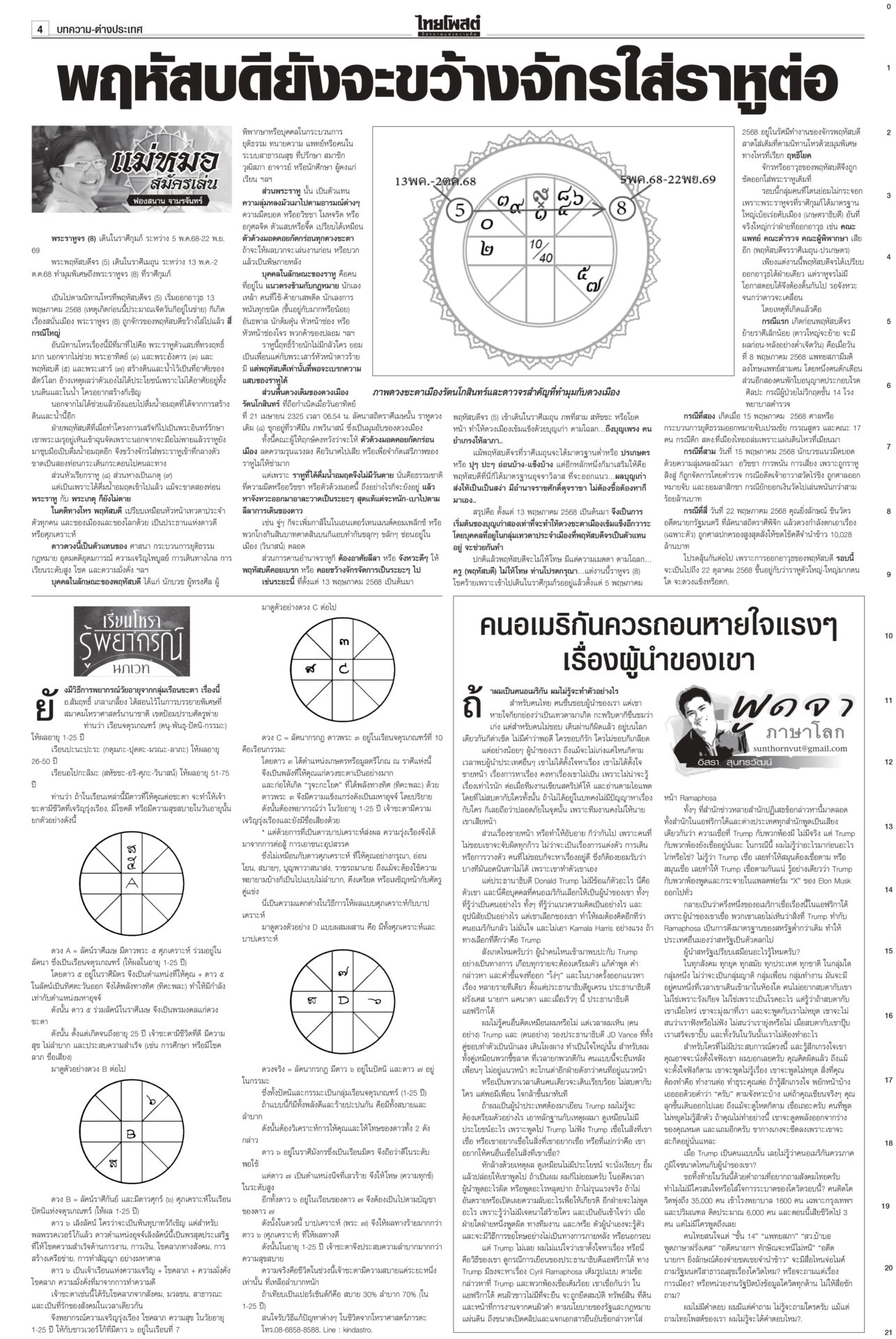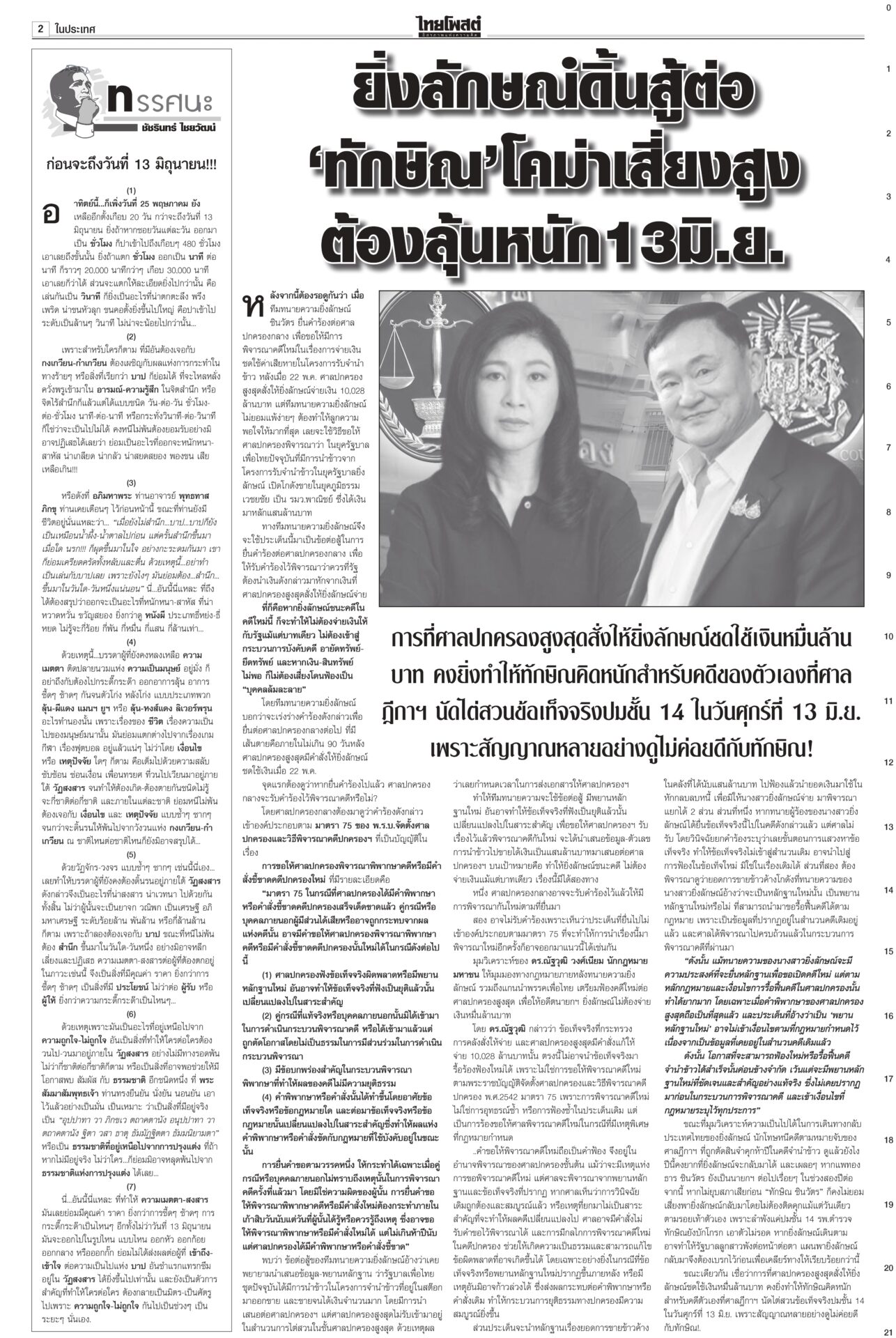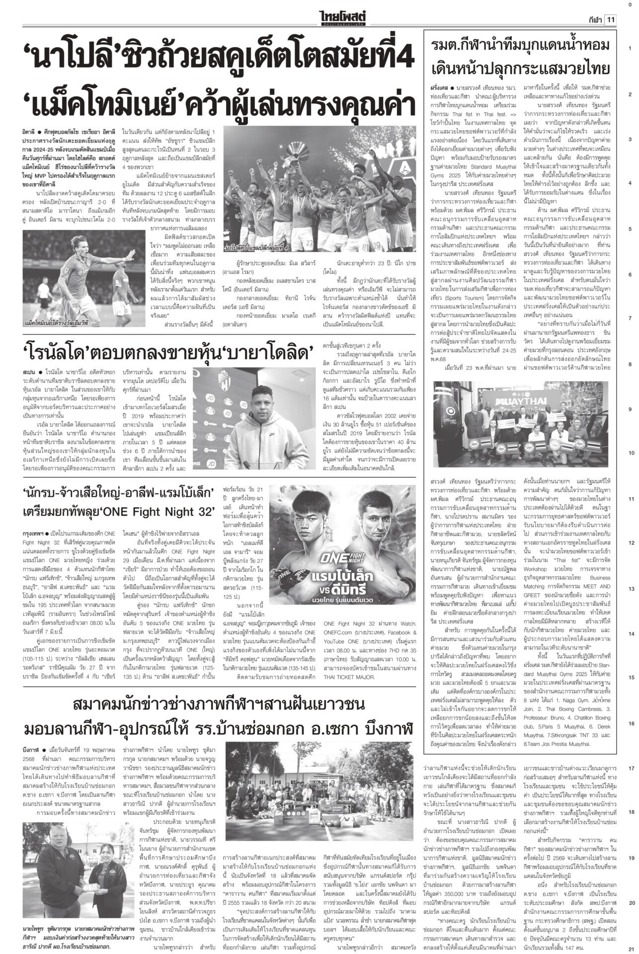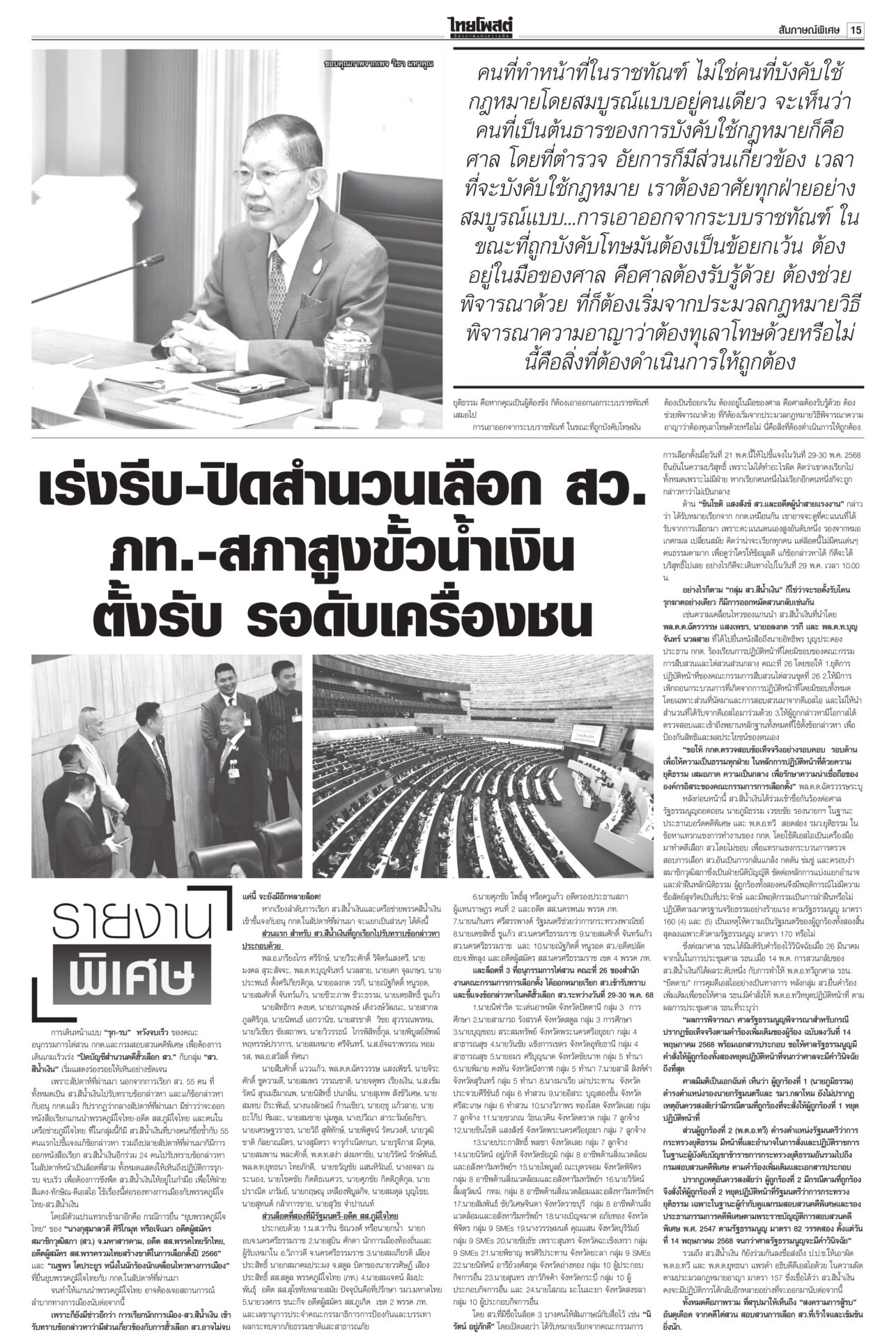 หนังสือพิมพ์ฉบับวันที่ 25 พฤษภาคม 2568ข่าวหน้าหนึ่งใช้‘AI’ย้ำจำนำข้าว ‘กรณ์’ถามDeepSeekประกันราคาดีกว่า / พท.อ้างChatGPT ‘ปู’ ไม่ผิด“หมอวรงค์” อบรม “อุ๊งอิ๊ง” กับทนาย ชี้ศาลให้ “ยิ่งลักษณ์” ชดใช้เพราะมีการทุจริตข้าวจีทูจี แฉใช้เงิน 8 แสนล้านล้วนกู้มาแล้วใช้ภาษีประชาชนจ่าย “สมชาย” แฉศรีธนญชัยทางกฎหมาย ‘อิ๊งค์’ ไปมาเลเซีย ถก ‘ผู้นำอาเซียน’ ขับเคลื่อนอนาคตนายกฯ อิ๊งค์บินไปมาเลเซีย ร่วมประชุมสุดยอดผู้นำอาเซียน ครั้งที่ 46 จับมือแก้ปัญหา รับรองวิสัยทัศน์ประชาคมอาเซียน ปี ค.ศ.2045 ใช้ขับเคลื่อนประชาคมอาเซียนในอีก ส้มเจอช่องเขย่ารัฐบาลพรรคประชาชนล็อกเป้า อภิปรายงบปี 69 ทุกกระทรวง เชื่้อถก 4 วันมันหยด เพราะพรรคร่วมรัฐบาลเองก็เริ่มมีความสั่นคลอนและมีปัญหากระทบกระทั่งกันบ้างแล้ว แฉรัฐบาลซ่อนงบทำ ‘ภูมิธรรม’บินลงใต้ สัญญาดูแลทุกคน“ภูมิธรรม” ลงใต้ ให้กำลังใจชาวบ้าน ยันจะคุ้มครองดูแลประชาชนในพื้นที่อย่างดีที่สุดไม่ว่าจะนับถือศาสนาใดก็ตาม กองทัพภาค 4 จัดอบรมฝึกทบทวนทักษะการใช้อาวุธให้กับสมาชิก