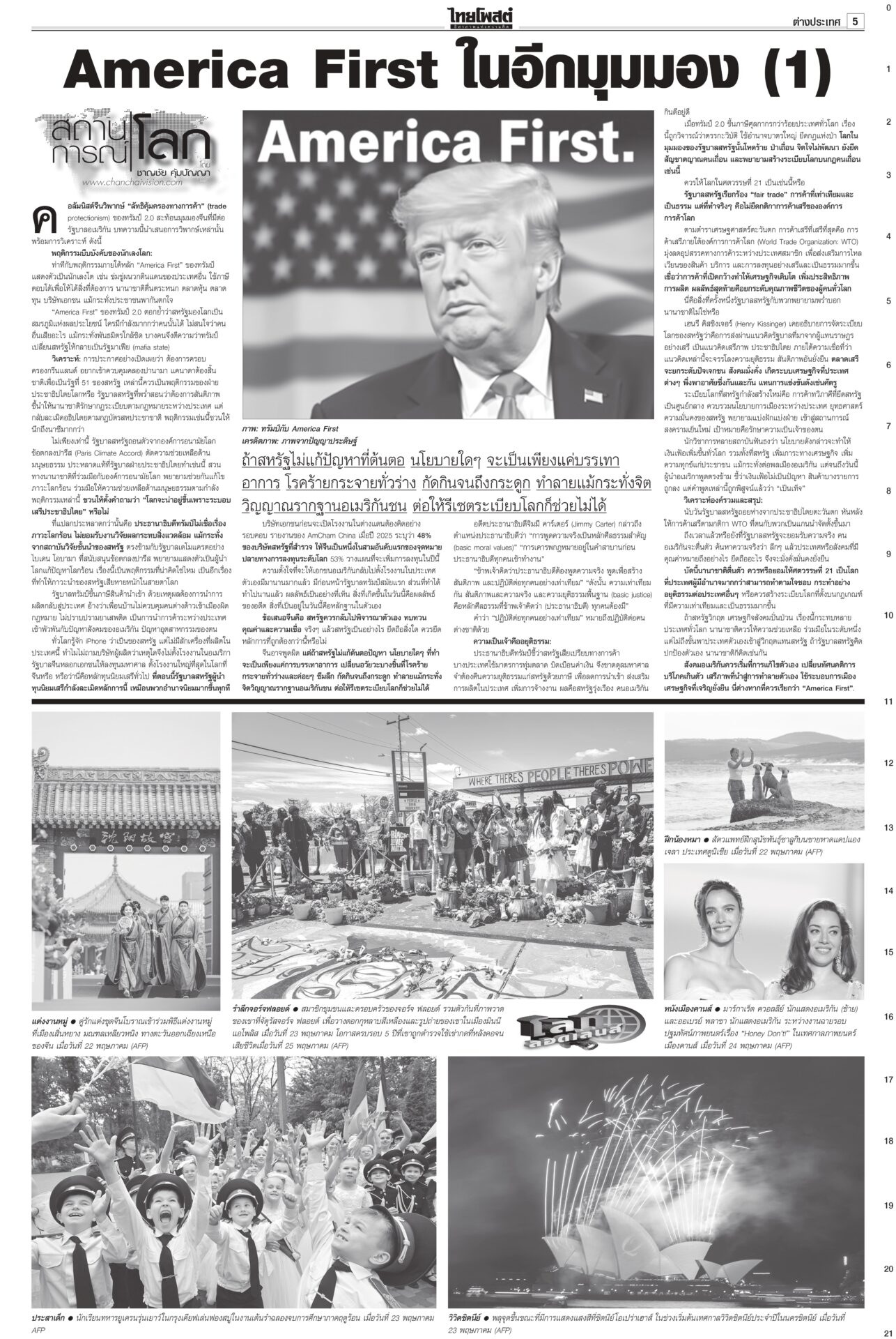 ฉบับวันที่ 25 พฤษภาคม 2568 25 พฤษภาคม 2568 เวลา 0:01 น. หนังสือพิมพ์ฉบับวันที่ 25 พฤษภาคม 2568ข่าวหน้าหนึ่งใช้‘AI’ย้ำจำนำข้าว ‘กรณ์’ถามDeepSeekประกันราคาดีกว่า / พท.อ้างChatGPT ‘ปู’ ไม่ผิด“หมอวรงค์” อบรม “อุ๊งอิ๊ง” กับทนาย ชี้ศาลให้ “ยิ่งลักษณ์” ชดใช้เพราะมีการทุจริตข้าวจีทูจี แฉใช้เงิน 8 แสนล้านล้วนกู้มาแล้วใช้ภาษีประชาชนจ่าย “สมชาย” แฉศรีธนญชัยทางกฎหมาย ‘อิ๊งค์’ ไปมาเลเซีย ถก ‘ผู้นำอาเซียน’ ขับเคลื่อนอนาคตนายกฯ อิ๊งค์บินไปมาเลเซีย ร่วมประชุมสุดยอดผู้นำอาเซียน ครั้งที่ 46 จับมือแก้ปัญหา รับรองวิสัยทัศน์ประชาคมอาเซียน ปี ค.ศ.2045 ใช้ขับเคลื่อนประชาคมอาเซียนในอีก ส้มเจอช่องเขย่ารัฐบาลพรรคประชาชนล็อกเป้า อภิปรายงบปี 69 ทุกกระทรวง เชื่้อถก 4 วันมันหยด เพราะพรรคร่วมรัฐบาลเองก็เริ่มมีความสั่นคลอนและมีปัญหากระทบกระทั่งกันบ้างแล้ว แฉรัฐบาลซ่อนงบทำ ‘ภูมิธรรม’บินลงใต้ สัญญาดูแลทุกคน“ภูมิธรรม” ลงใต้ ให้กำลังใจชาวบ้าน ยันจะคุ้มครองดูแลประชาชนในพื้นที่อย่างดีที่สุดไม่ว่าจะนับถือศาสนาใดก็ตาม กองทัพภาค 4 จัดอบรมฝึกทบทวนทักษะการใช้อาวุธให้กับสมาชิก Tagsรายวันหนังสือพิมพ์ ข่าวที่เกี่ยวข้อง ฉบับวันที่ 6 ธันวาคม 2568 ฉบับวันที่ 5 ธันวาคม 2568 ฉบับวันที่ 4 ธันวาคม 2568 ฉบับวันที่ 3 ธันวาคม 2568 ฉบับวันที่ 2 ธันวาคม 2568 ฉบับวันที่ 1 ธันวาคม 2568 NEWS UPDATE 21:16 น. จนท.ปกครองเดินฝ่าดงหนาม 4 กม. จับหนุ่มซุกยาบ้าในรูปู 126 เม็ด 20:58 น. ชาวบ้านริมน้ำสาละวิน มึนข้อมูลราชการสุดสับสน ไม่แน่ใจปลา-พืชริมน้ำกินได้หรือไม่ 19:07 น. ลมหนาวมาอีกระลอก! กรมอุตุฯ พยากรณ์อากาศ 7 วันข้างหน้า อุณหภูมิจะลดลง 2-4 องศา 19:05 น. ภัยพิบัติสแกมเมอร์ | ห้องข่าวไทยโพสต์สุดสัปดาห์ 18:49 น. 'GULF-AIS'บอลไทยเพื่อคนไทย ร่วมหนุน'เกษตรศาสตร์ FC' สู้ศึกT2ยกกีฬาคู่การศึกษา
