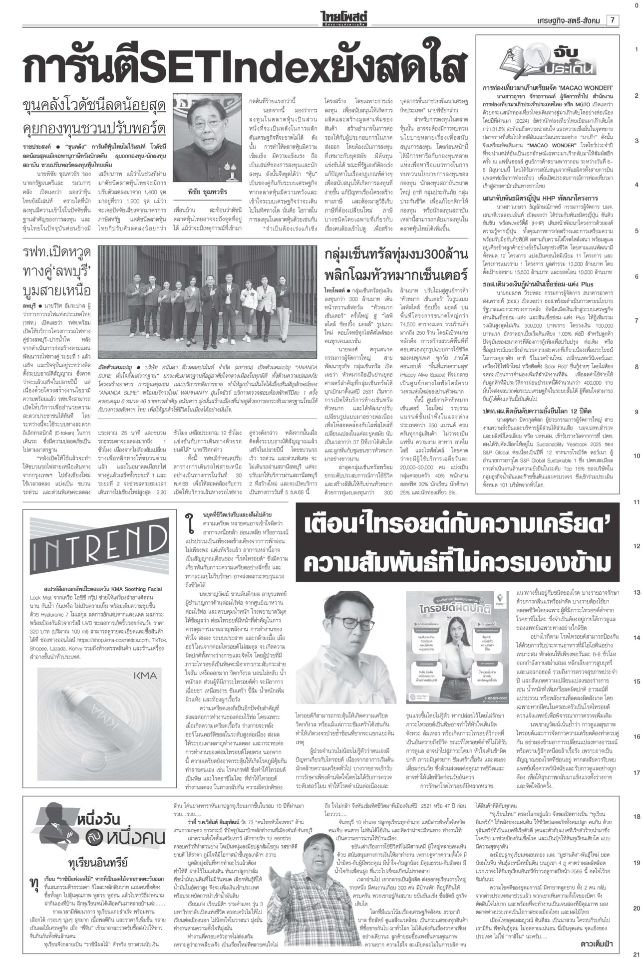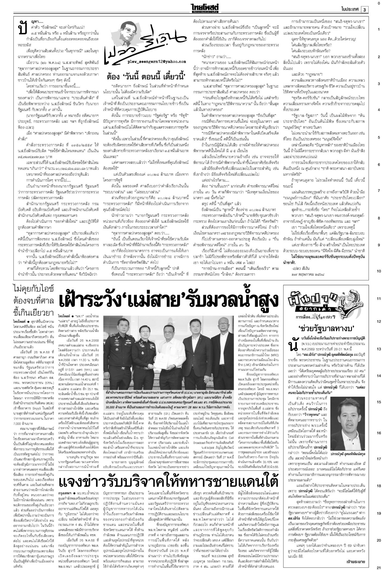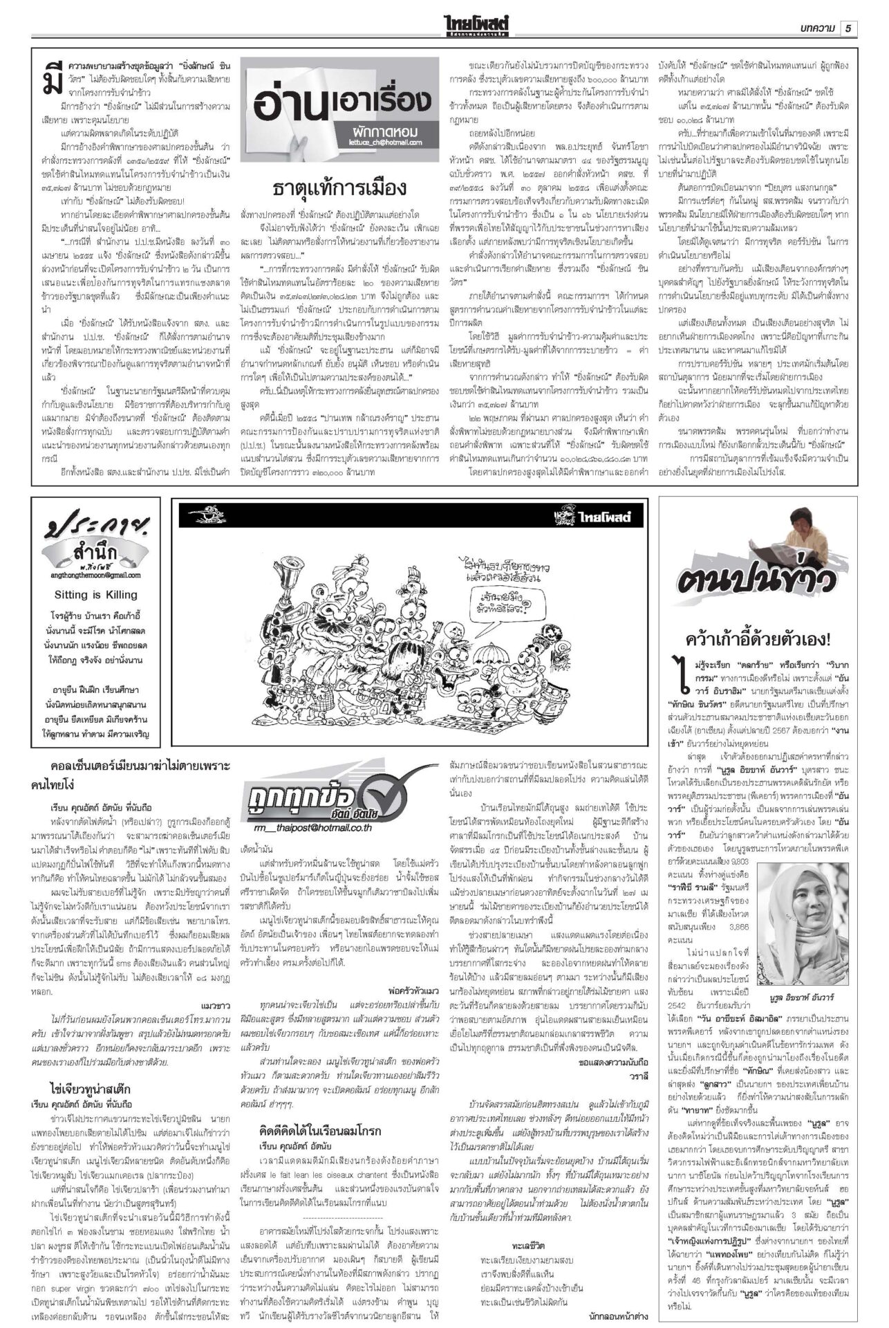 หนังสือพิมพ์ ฉบับวันที่ 27 พฤษภาคม 2568ข่าวหน้าหนึ่งวัดใจ‘สมศักดิ์’วีโต 10อรหันต์ชงให้เคาะ27พค./ยึดทรัพย์‘ปู’ศาลชี้ไปตามกันเอง“อนุทิน” บอกเป็นเรื่องดี “สนธิ-จตุพร” หันมาจับมือร่วมกัน “วิสุทธิ์” ไม่ให้ค่า ปฏิญญากัวลาลัมเปอร์สู้ทรัมป์นายกฯ พร้อมผู้นำอาเซียนลงนาม “ปฏิญญากรุงกัวลาลัมเปอร์ว่าด้วยอาเซียน 2045 ส่งฟ้อง5ผตห. นอมินี บ.ไชน่า ไล่บี้17บริษัท“ดีเอสไอ” สรุปสำนวนคดีนอมินี ไชน่า เรลเวย์ฯ ส่งฟ้อง 5 ผู้ต้องหาฮั้วประมูลตึก สตง.ถล่ม พร้อมขยายผลสอบ 17 บริษัทเอี่ยวเจ้าหน้าที่รัฐ ภท.โยงณฐพรพันฟอกเงิน ‘กุสุมาลวตี’ยื่นสอบ‘อนุทิน’“อนุทิน” เผยฟ้อง “กุสุมาลวตี” เรื่องอยู่ในศาลแล้ว ตอนนี้ขอเงียบ ปชน.จัด50ขุนพลชำแหละงบประธานวิปรัฐบาลยัน 314 เสียงพรรคร่วม รบ.ไม่แตก ลั่น! พร้อมโหวตผ่าน “งบปี 69”