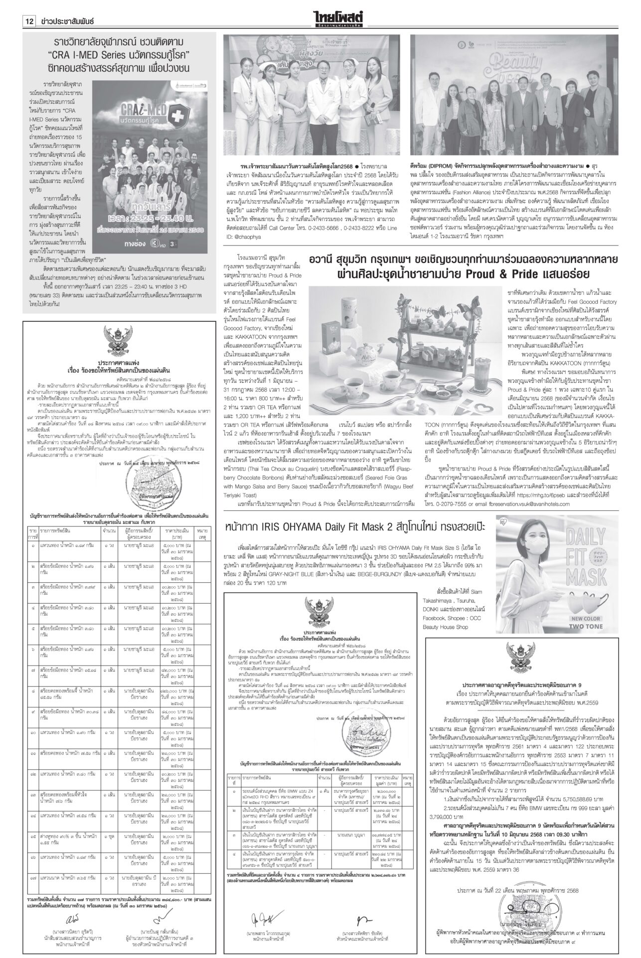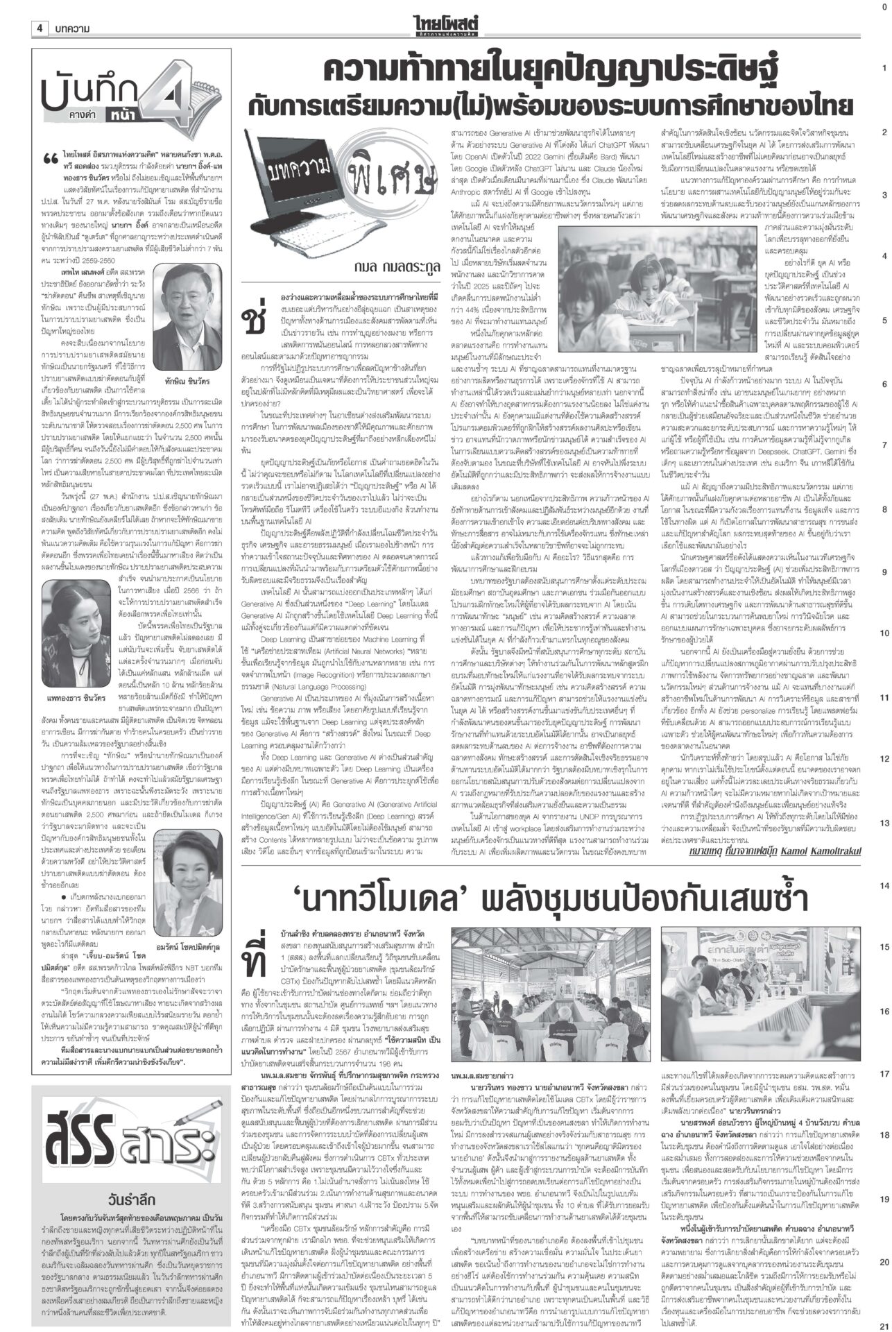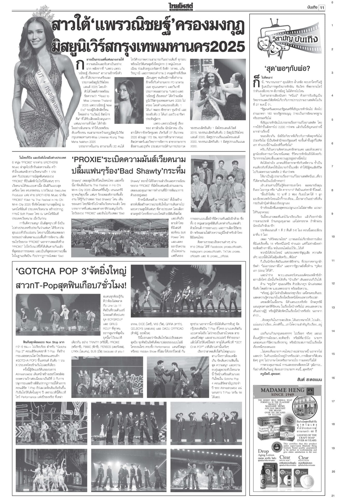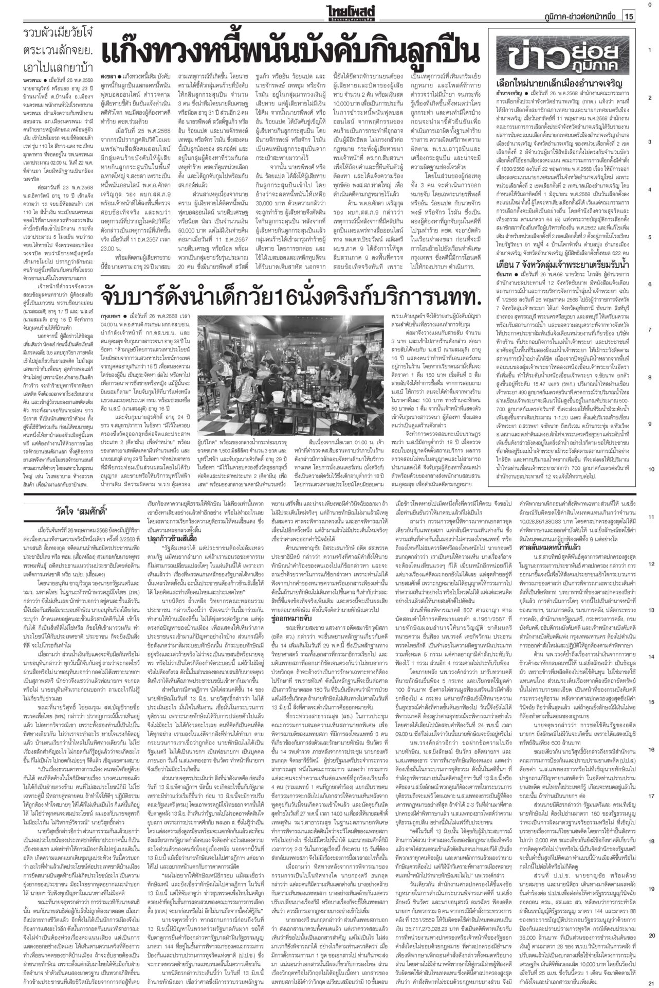 หนังสือพิมพ์ ฉบับวันที่ 27 พฤษภาคม 2568ข่าวหน้าหนึ่งวัดใจ‘สมศักดิ์’วีโต 10อรหันต์ชงให้เคาะ27พค./ยึดทรัพย์‘ปู’ศาลชี้ไปตามกันเอง“อนุทิน” บอกเป็นเรื่องดี “สนธิ-จตุพร” หันมาจับมือร่วมกัน “วิสุทธิ์” ไม่ให้ค่า ปฏิญญากัวลาลัมเปอร์สู้ทรัมป์นายกฯ พร้อมผู้นำอาเซียนลงนาม “ปฏิญญากรุงกัวลาลัมเปอร์ว่าด้วยอาเซียน 2045 ส่งฟ้อง5ผตห. นอมินี บ.ไชน่า ไล่บี้17บริษัท“ดีเอสไอ” สรุปสำนวนคดีนอมินี ไชน่า เรลเวย์ฯ ส่งฟ้อง 5 ผู้ต้องหาฮั้วประมูลตึก สตง.ถล่ม พร้อมขยายผลสอบ 17 บริษัทเอี่ยวเจ้าหน้าที่รัฐ ภท.โยงณฐพรพันฟอกเงิน ‘กุสุมาลวตี’ยื่นสอบ‘อนุทิน’“อนุทิน” เผยฟ้อง “กุสุมาลวตี” เรื่องอยู่ในศาลแล้ว ตอนนี้ขอเงียบ ปชน.จัด50ขุนพลชำแหละงบประธานวิปรัฐบาลยัน 314 เสียงพรรคร่วม รบ.ไม่แตก ลั่น! พร้อมโหวตผ่าน “งบปี 69”