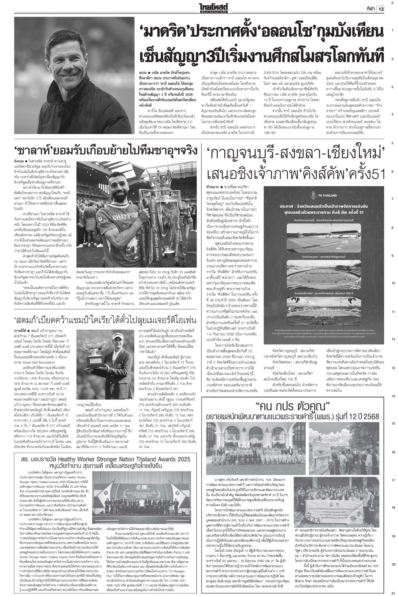 ฉบับวันที่ 27 พฤษภาคม 2568 27 พฤษภาคม 2568 เวลา 0:01 น. หนังสือพิมพ์ ฉบับวันที่ 27 พฤษภาคม 2568ข่าวหน้าหนึ่งวัดใจ‘สมศักดิ์’วีโต 10อรหันต์ชงให้เคาะ27พค./ยึดทรัพย์‘ปู’ศาลชี้ไปตามกันเอง“อนุทิน” บอกเป็นเรื่องดี “สนธิ-จตุพร” หันมาจับมือร่วมกัน “วิสุทธิ์” ไม่ให้ค่า ปฏิญญากัวลาลัมเปอร์สู้ทรัมป์นายกฯ พร้อมผู้นำอาเซียนลงนาม “ปฏิญญากรุงกัวลาลัมเปอร์ว่าด้วยอาเซียน 2045 ส่งฟ้อง5ผตห. นอมินี บ.ไชน่า ไล่บี้17บริษัท“ดีเอสไอ” สรุปสำนวนคดีนอมินี ไชน่า เรลเวย์ฯ ส่งฟ้อง 5 ผู้ต้องหาฮั้วประมูลตึก สตง.ถล่ม พร้อมขยายผลสอบ 17 บริษัทเอี่ยวเจ้าหน้าที่รัฐ ภท.โยงณฐพรพันฟอกเงิน ‘กุสุมาลวตี’ยื่นสอบ‘อนุทิน’“อนุทิน” เผยฟ้อง “กุสุมาลวตี” เรื่องอยู่ในศาลแล้ว ตอนนี้ขอเงียบ ปชน.จัด50ขุนพลชำแหละงบประธานวิปรัฐบาลยัน 314 เสียงพรรคร่วม รบ.ไม่แตก ลั่น! พร้อมโหวตผ่าน “งบปี 69” Tagsรายวันหนังสือพิมพ์ ข่าวที่เกี่ยวข้อง ฉบับวันที่ 6 ธันวาคม 2568 ฉบับวันที่ 5 ธันวาคม 2568 ฉบับวันที่ 4 ธันวาคม 2568 ฉบับวันที่ 3 ธันวาคม 2568 ฉบับวันที่ 2 ธันวาคม 2568 ฉบับวันที่ 1 ธันวาคม 2568 NEWS UPDATE 21:16 น. จนท.ปกครองเดินฝ่าดงหนาม 4 กม. จับหนุ่มซุกยาบ้าในรูปู 126 เม็ด 20:58 น. ชาวบ้านริมน้ำสาละวิน มึนข้อมูลราชการสุดสับสน ไม่แน่ใจปลา-พืชริมน้ำกินได้หรือไม่ 19:07 น. ลมหนาวมาอีกระลอก! กรมอุตุฯ พยากรณ์อากาศ 7 วันข้างหน้า อุณหภูมิจะลดลง 2-4 องศา 19:05 น. ภัยพิบัติสแกมเมอร์ | ห้องข่าวไทยโพสต์สุดสัปดาห์ 18:49 น. 'GULF-AIS'บอลไทยเพื่อคนไทย ร่วมหนุน'เกษตรศาสตร์ FC' สู้ศึกT2ยกกีฬาคู่การศึกษา
