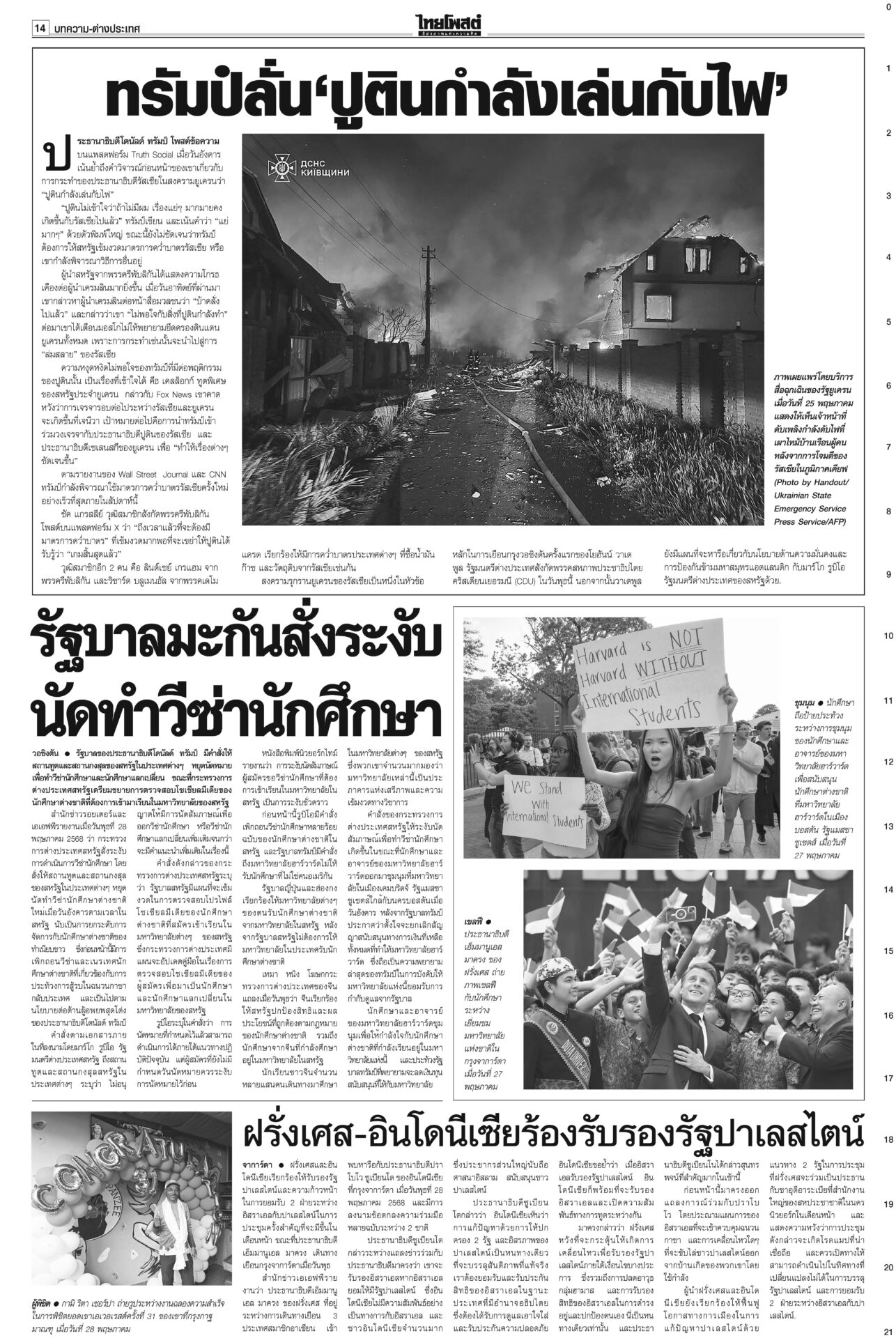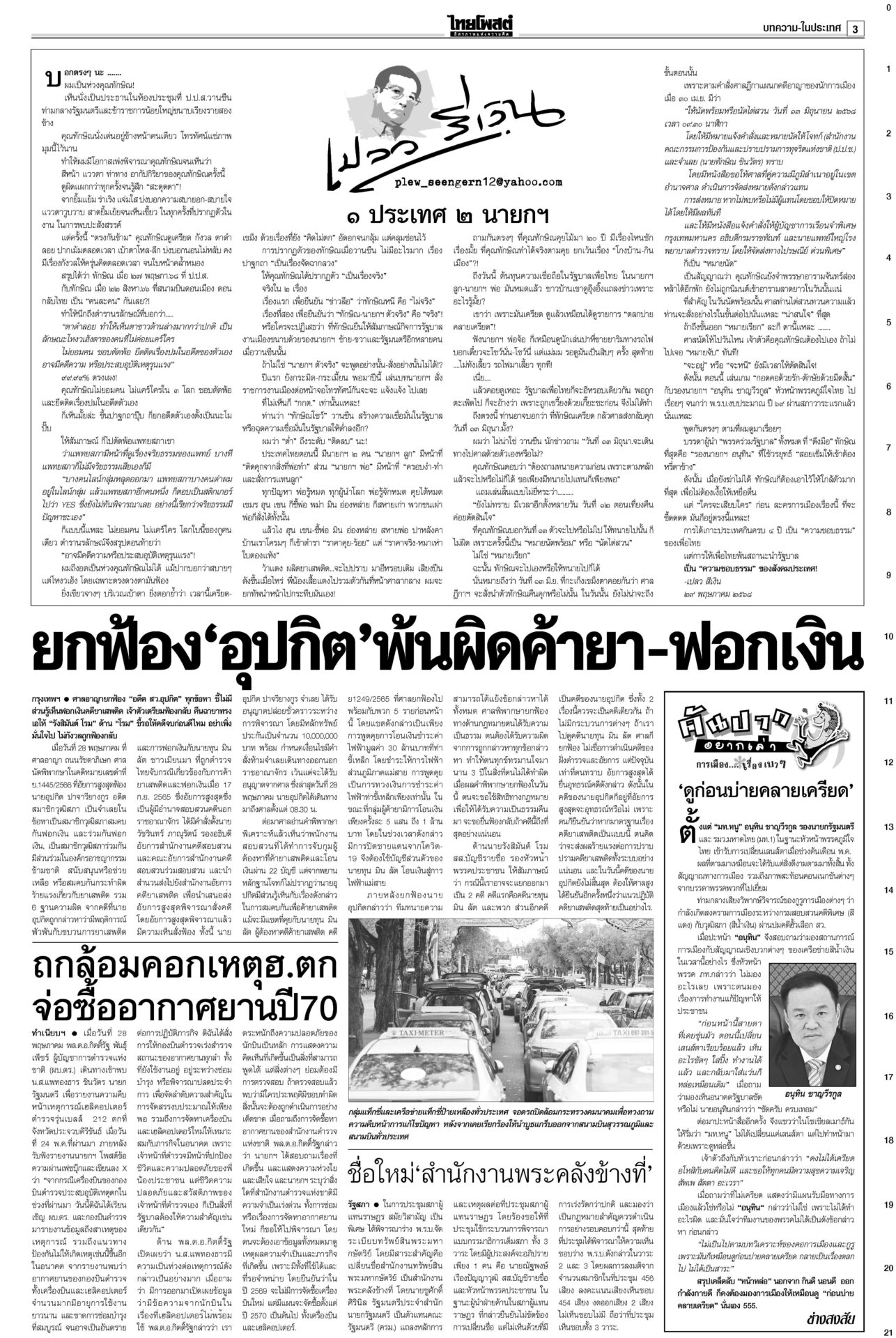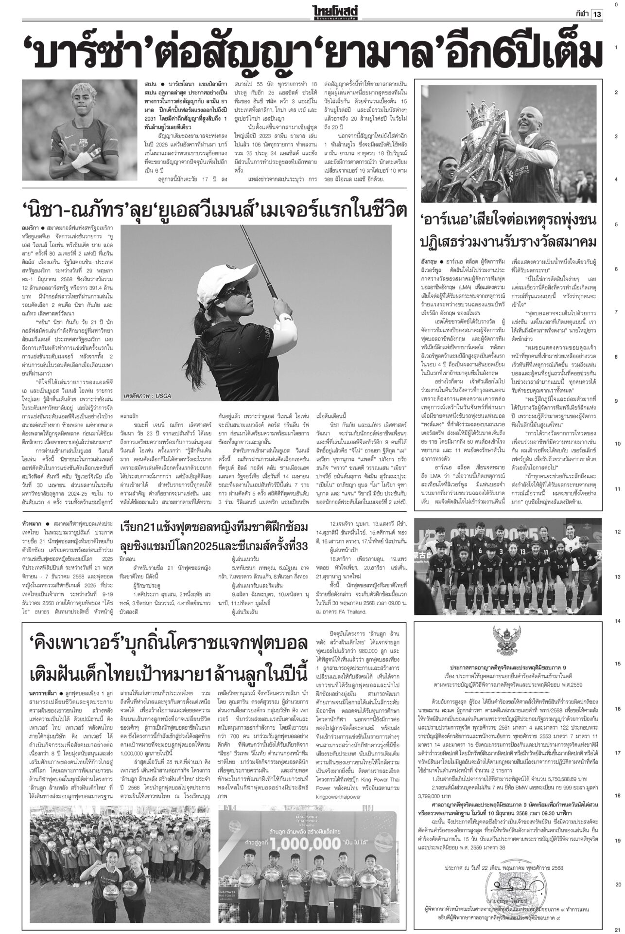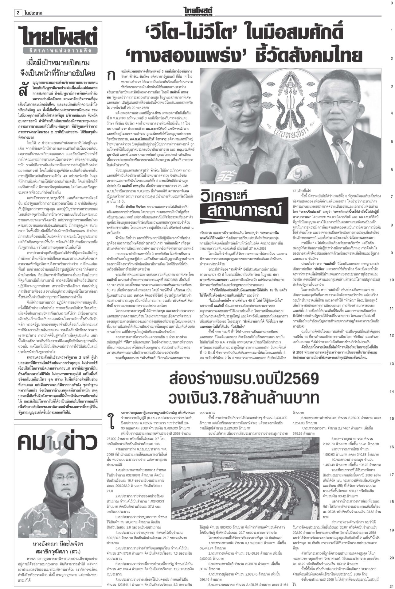 หนังสือพิมพ์ ฉบับวันที่ 29 พฤษภาคม 2568ข่าวหน้าหนึ่งฮือ!เซฟแพทยสภา หมอทั่วปท.หนุนมติฟันชั้น14/หอบหลักฐานยื่นศาลมัดแม้วศึกชั้น 14 ระอุ! ฮือทั้งประเทศให้กำลังใจ “แพทยสภา” แพทยสมาคมฯ-อาจารย์หมอศิริราช-รามาฯ-จุฬาฯ-เชียงใหม่ ถล่มงบ69ไร้ทิศทางพาชาติพังประเดิมถกร่าง พ.ร.บ.งบฯ 69 วงเงิน 3.78 ล้านล้านบาท “นายกฯ อิ๊งค์” ชี้นโยบายการค้าโลกทำแบกความเสี่ยงเพิ่ม ภท.แจงกกต.ป้องลูกเนวิน ชงญัตติขวาง‘สภาน้ำเงิน’ล็อต 2 คดีฮั้วยกโขยงเข้าแจง กกต. “นภินทร” โดดป้องลูกชายเนวิน อิ๊งค์คุยฮุนมาเนต เร่งเคลียร์ขัดแย้ง เหตุปะทะช่องบกเกิดเหตุปะทะพื้นที่อ้างสิทธิช่องบกอุบลฯ “ภูมิธรรม” แจงทหารกัมพูชาละเมิดรอบสอง