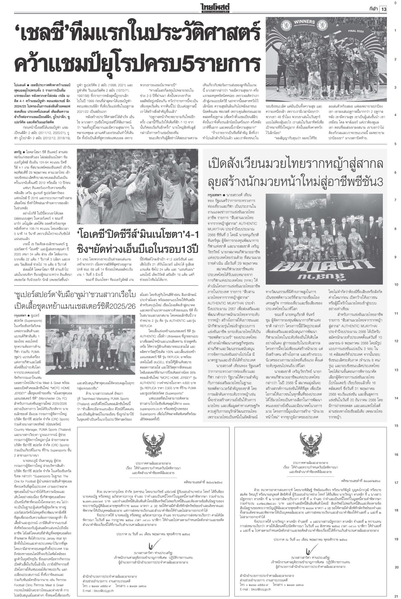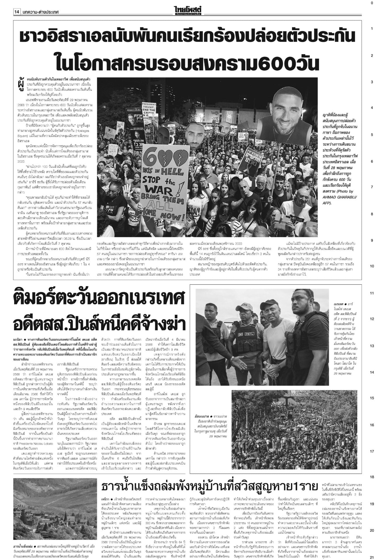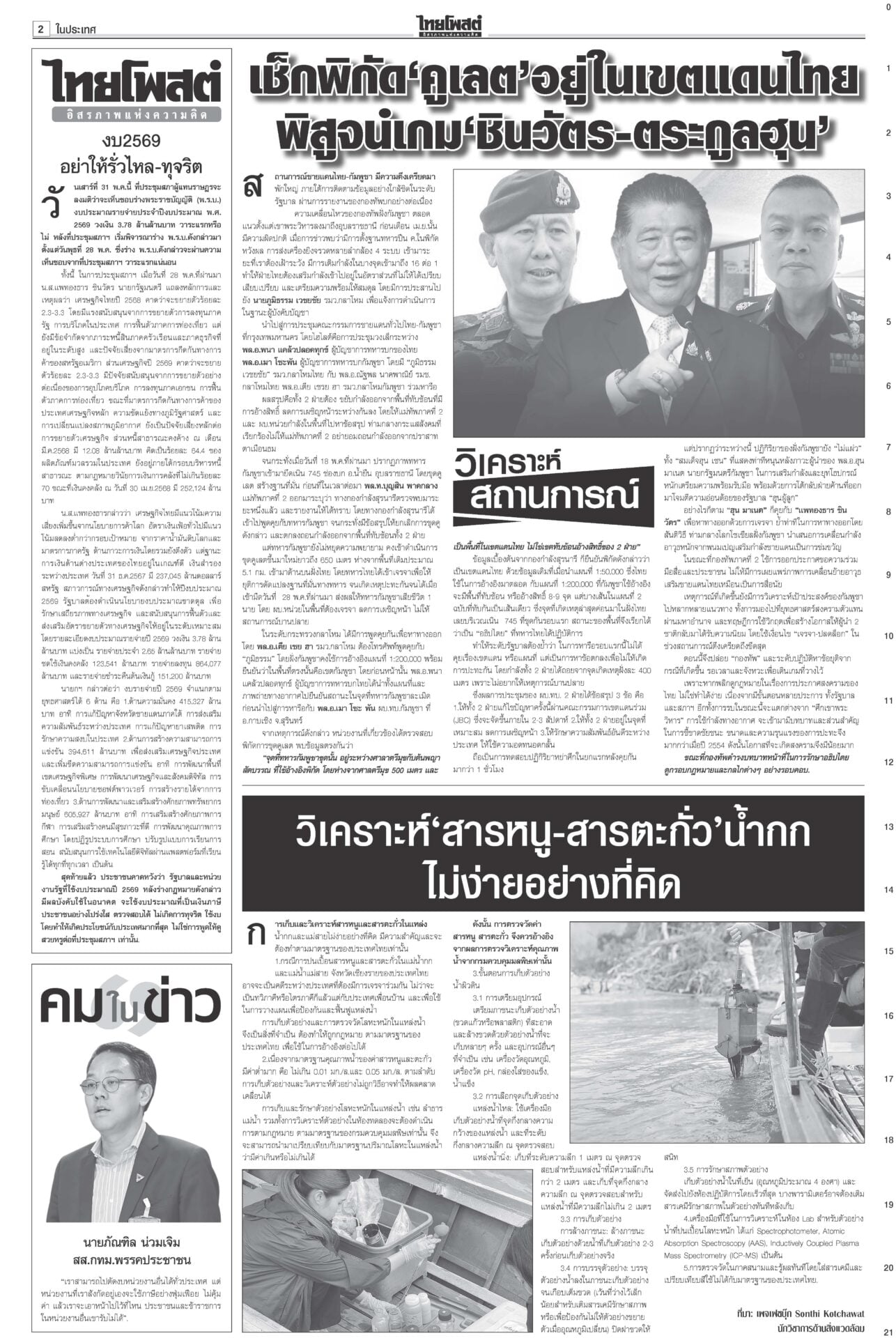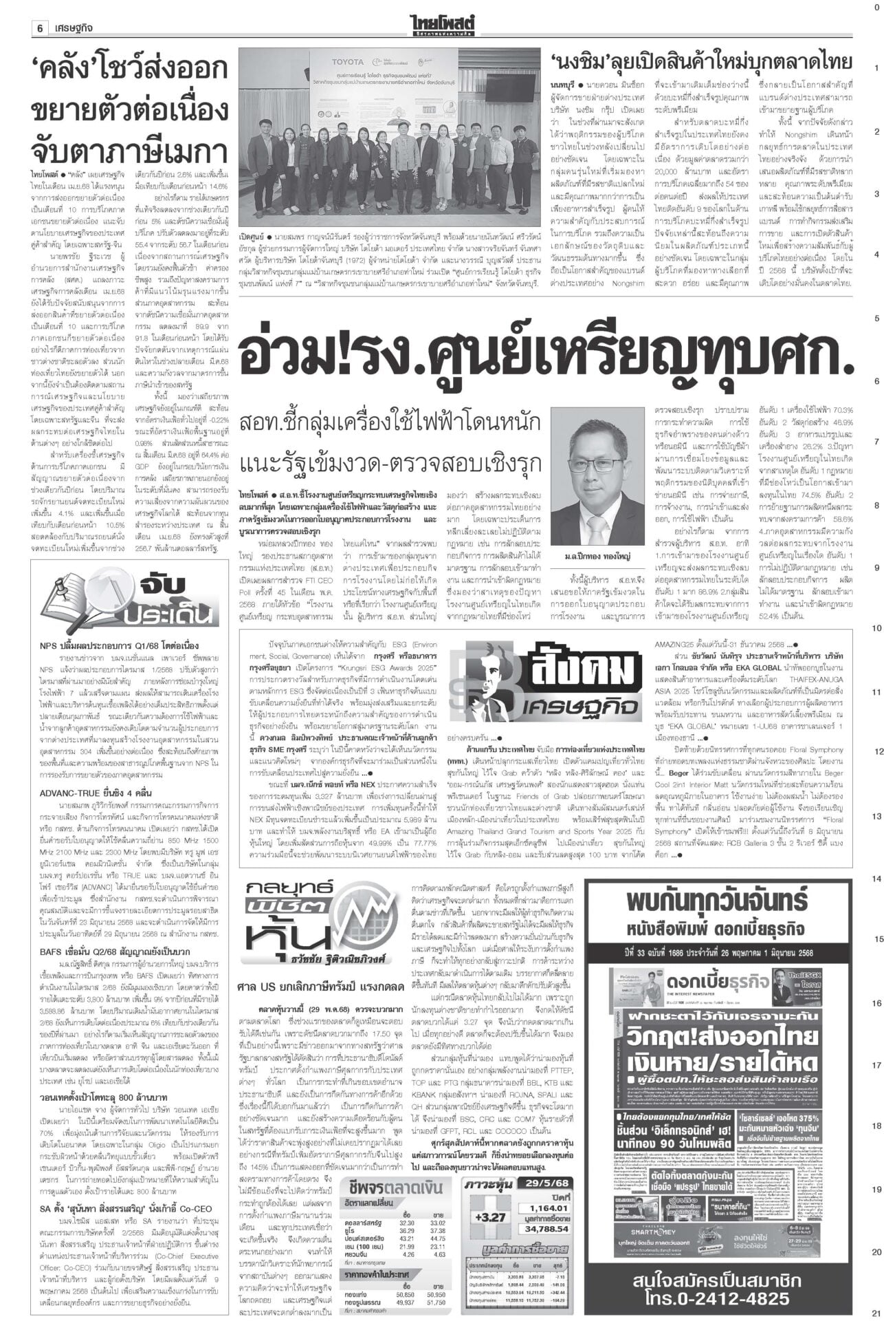 หนังสือพิมพ์ ฉบับวันที่ 30 พฤษภาคม 2568ข่าวหน้าหนึ่งวีโต!อุ้ม‘นายใหญ่’ ‘สมศักดิ์’นัดแจงที่ทำเนียบ ชงใบเสร็จรพ.มัดป่วยทิพย์“สมศักดิ์” วีโตมติแพทยสภาลงโทษ 3 หมอรักษา “ทักษิณ” ชั้น 14 แยกประเด็นเป็นรายบุคคล เจ้าตัวขอชี้แจง 30 พ.ค.นี้ที่ทำเนียบฯ สับเละงบสภา/พ.โยกเงินให้พวกอภิปรายงบ 69 วันที่สองเริ่มเดือด! “ปชน.” ดาหน้าสับเละ “ไอติม” ฟัด “พิเชษฐ์” ปมงบปรับปรุงรัฐสภา ซัดงบกลางแจงไม่เคลียร์ ‘ไทย-กัมพูชา’สงบศึก! ‘ฮุนเซน’ขึงขังพร้อมรบผบ.ทบ.ไทย-กัมพูชาถกหารือข้อยุติเหตุปะทะทหารไทย-ทหารกัมพูชาชายแดนช่องบก 3 ข้อ ‘ณฐพร’ขยี้‘ภท.’ ยื่นอัยการเพิ่ม ฮั้วสว.-ล้มล้าง“สว.ล็อต 3” เลื่อน กกต.รับทราบข้อกล่าวหาไป 5 มิ.ย. “ณฐพร” ศาลสั่งระงับภาษีทรัมป์ ชี้ใช้อำนาจเกินขอบเขตศาลการค้าของสหรัฐระงับการบังคับใช้ภาษีศุลกากรครั้งใหญ่ของ “โดนัลด์ ทรัมป์”