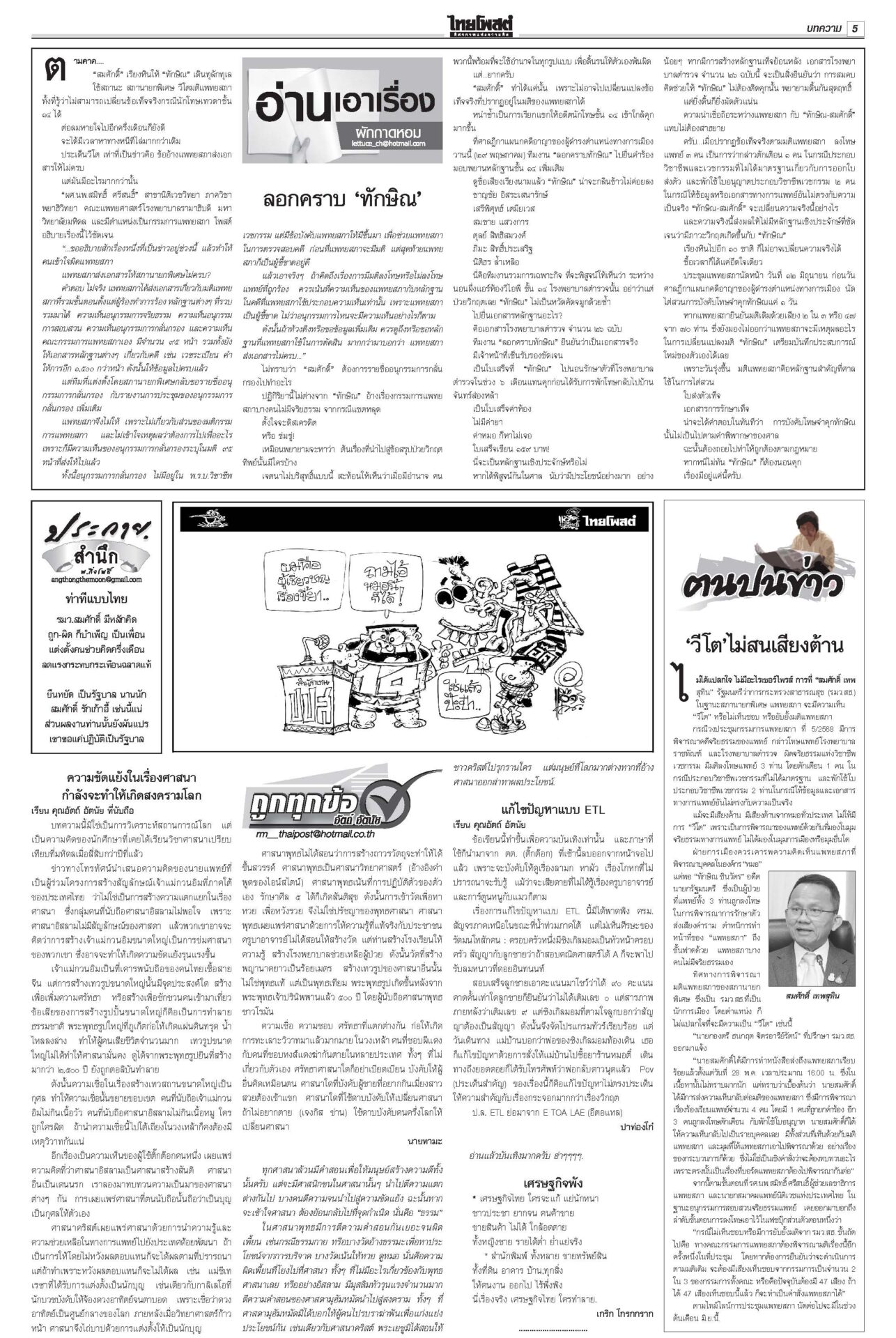 ฉบับวันที่ 30 พฤษภาคม 2568 30 พฤษภาคม 2568 เวลา 0:01 น. หนังสือพิมพ์ ฉบับวันที่ 30 พฤษภาคม 2568ข่าวหน้าหนึ่งวีโต!อุ้ม‘นายใหญ่’ ‘สมศักดิ์’นัดแจงที่ทำเนียบ ชงใบเสร็จรพ.มัดป่วยทิพย์“สมศักดิ์” วีโตมติแพทยสภาลงโทษ 3 หมอรักษา “ทักษิณ” ชั้น 14 แยกประเด็นเป็นรายบุคคล เจ้าตัวขอชี้แจง 30 พ.ค.นี้ที่ทำเนียบฯ สับเละงบสภา/พ.โยกเงินให้พวกอภิปรายงบ 69 วันที่สองเริ่มเดือด! “ปชน.” ดาหน้าสับเละ “ไอติม” ฟัด “พิเชษฐ์” ปมงบปรับปรุงรัฐสภา ซัดงบกลางแจงไม่เคลียร์ ‘ไทย-กัมพูชา’สงบศึก! ‘ฮุนเซน’ขึงขังพร้อมรบผบ.ทบ.ไทย-กัมพูชาถกหารือข้อยุติเหตุปะทะทหารไทย-ทหารกัมพูชาชายแดนช่องบก 3 ข้อ ‘ณฐพร’ขยี้‘ภท.’ ยื่นอัยการเพิ่ม ฮั้วสว.-ล้มล้าง“สว.ล็อต 3” เลื่อน กกต.รับทราบข้อกล่าวหาไป 5 มิ.ย. “ณฐพร” ศาลสั่งระงับภาษีทรัมป์ ชี้ใช้อำนาจเกินขอบเขตศาลการค้าของสหรัฐระงับการบังคับใช้ภาษีศุลกากรครั้งใหญ่ของ “โดนัลด์ ทรัมป์” Tagsรายวันหนังสือพิมพ์ ข่าวที่เกี่ยวข้อง ฉบับวันที่ 6 ธันวาคม 2568 ฉบับวันที่ 5 ธันวาคม 2568 ฉบับวันที่ 4 ธันวาคม 2568 ฉบับวันที่ 3 ธันวาคม 2568 ฉบับวันที่ 2 ธันวาคม 2568 ฉบับวันที่ 1 ธันวาคม 2568 NEWS UPDATE 21:16 น. จนท.ปกครองเดินฝ่าดงหนาม 4 กม. จับหนุ่มซุกยาบ้าในรูปู 126 เม็ด 20:58 น. ชาวบ้านริมน้ำสาละวิน มึนข้อมูลราชการสุดสับสน ไม่แน่ใจปลา-พืชริมน้ำกินได้หรือไม่ 19:07 น. ลมหนาวมาอีกระลอก! กรมอุตุฯ พยากรณ์อากาศ 7 วันข้างหน้า อุณหภูมิจะลดลง 2-4 องศา 19:05 น. ภัยพิบัติสแกมเมอร์ | ห้องข่าวไทยโพสต์สุดสัปดาห์ 18:49 น. 'GULF-AIS'บอลไทยเพื่อคนไทย ร่วมหนุน'เกษตรศาสตร์ FC' สู้ศึกT2ยกกีฬาคู่การศึกษา