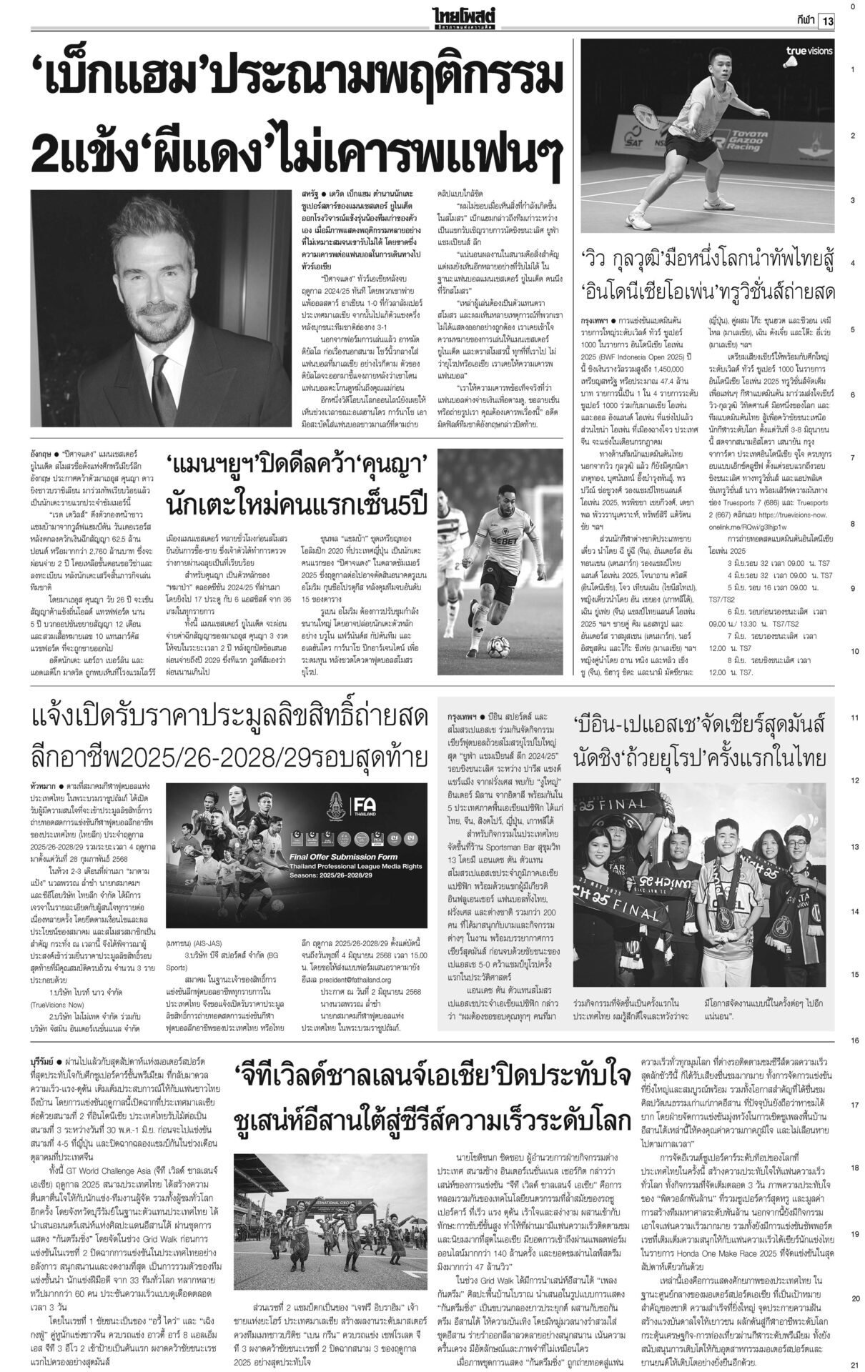 หนังสือพิมพ์ ฉบับวันที่ 3 มิถุนายน 2568ข่าวหน้าหนึ่งลากไทยขึ้นศาลโลก ‘เพื่อนสทร.’ปลุกยึดดินแดน ขู่จะกลายเป็น‘ฉนวนกาซา’เพื่อนซี้ทักษิณฉวยโอกาส! “ฮุน เซน” ปลุกยึดดินแดนไปจากไทย เชิญร่วมกิจกรรมเฉลิมพระเกียรติฯโปรดเกล้าฯ พระราชทาน “เหรียญราชรุจิทอง” แก่สมเด็จพระนางเจ้าฯ สธ.โวยปลุกผี‘ระบอบทักษิณ’โฆษก สธ.โทษฝ่ายตรงข้ามปลุกผี “ระบอบทักษิณ” เหมือนปี 49 ทำให้แพทยสภาแปดเปื้อนกลิ่นคาวทางการเมือง เฮ้งท้ารทสช.ขับออก/ชงประเสริฐมท.1“รทสช.” ยังระอุ “สุชาติ” ท้าขับออก พิสูจน์ว่าจะมีกี่คนที่ตามไปอยู่โอกาสใหม่ ใต้ระอุบึ้ม!ปลิดชีพ‘ร.ท.’ รู้ทุกการเคลื่อนไหวจนท.ใต้ระอุรายวัน คนร้ายฝังระเบิด 20 กก.ใต้ถนนปลิดชีพ “ผบ.ร้อย ทพ.4214”