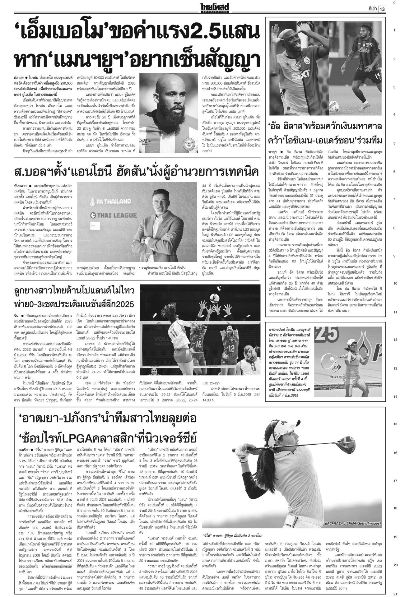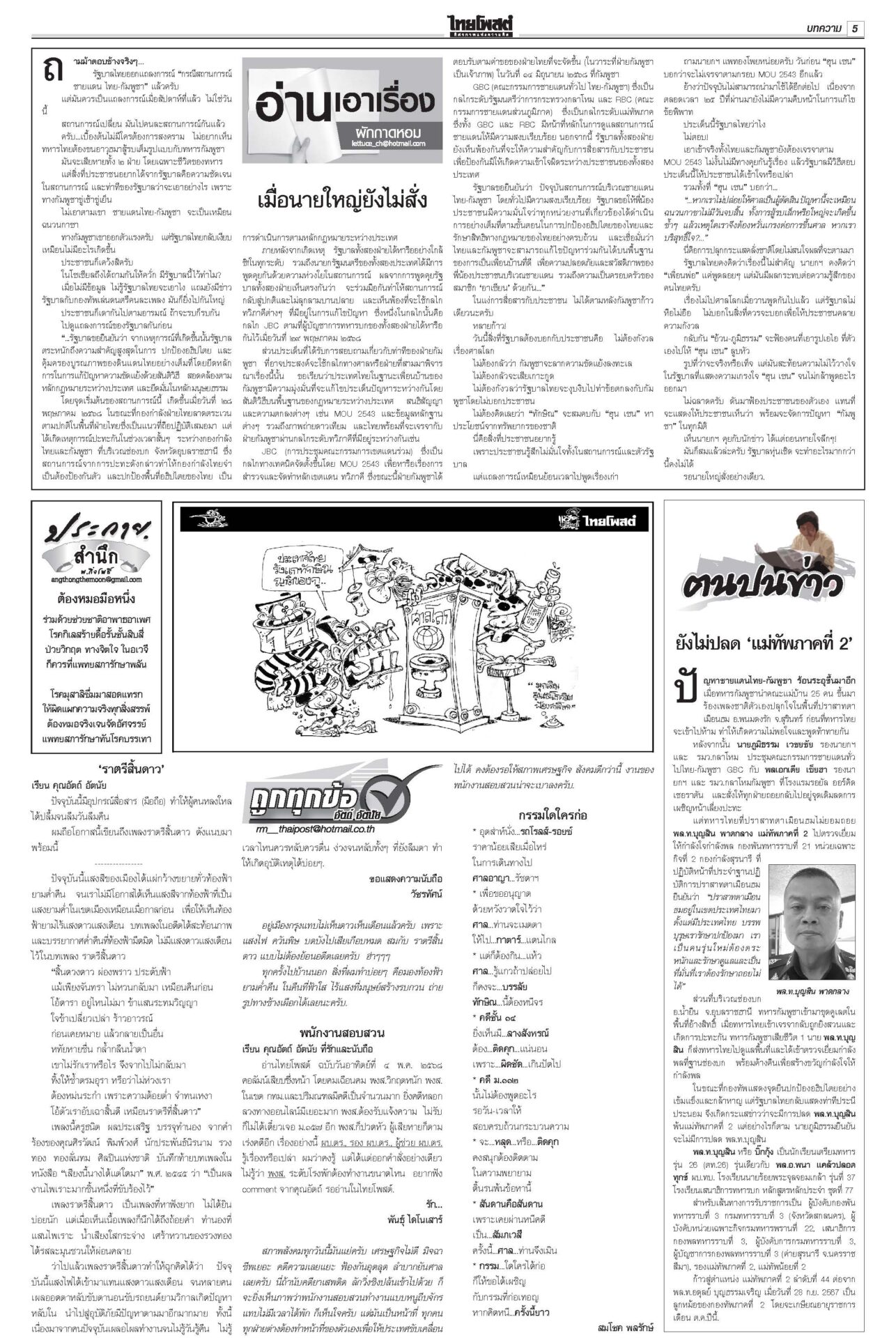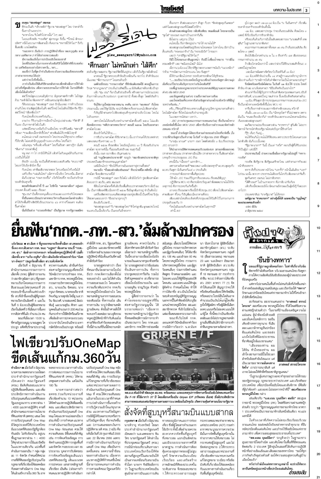 หนังสือพิมพ์ ฉบับวันที่ 5 มิถุนายน 2568ข่าวหน้าหนึ่งรักสงบรบไม่ขลาด รัฐบาลขึงขังทำเต็มที่ป้องอธิปไตยไทย/ทอ.ลุยซื้อกริพเพน“รัฐบาล” ออกแถลงการณ์ครั้งแรก ปมชายแดน “ไทย-กัมพูชา” ขอ ปชช.มั่นใจรัฐยึดหลักสันติวิธี-กม.ระหว่าง ปท อิ๊งค์คิดสูตรปรับครม.ปรับ ครม.ฝุ่นตลบ “นายกฯ อิ๊งค์” แย้มกำลังคิดอยู่ปรับแบบไหนแล้วดีขึ้น DSIส่งปปช.ฟัน70ราย ฮั้วประมูลตึกสตง.ถล่มดีเอสไอเผยขบวนการฮั้วประมูลสัญญา สตง. ล็อกสเปก-ปลอมเอกสารบุคลากร เปิด7แคนดิเดต ชิง‘ผู้ว่าธปท.’ ‘วิทัย-ก้อย’เต็งคลังเผยมี 7 แคนดิเดตชิง “ผู้ว่าฯ แบงก์ชาติ” ตรวจคุณสอบสมบัติ 2 สัปดาห์ สภาสูงจวก‘รมว.สธ.’ ทำลายวิชาชีพแพทย์“กมธ.สธ.” สว.ซัด “สมศักดิ์” วีโตมติแพทยสภา ได้รับเกียรตินั่งสภานายกพิเศษ