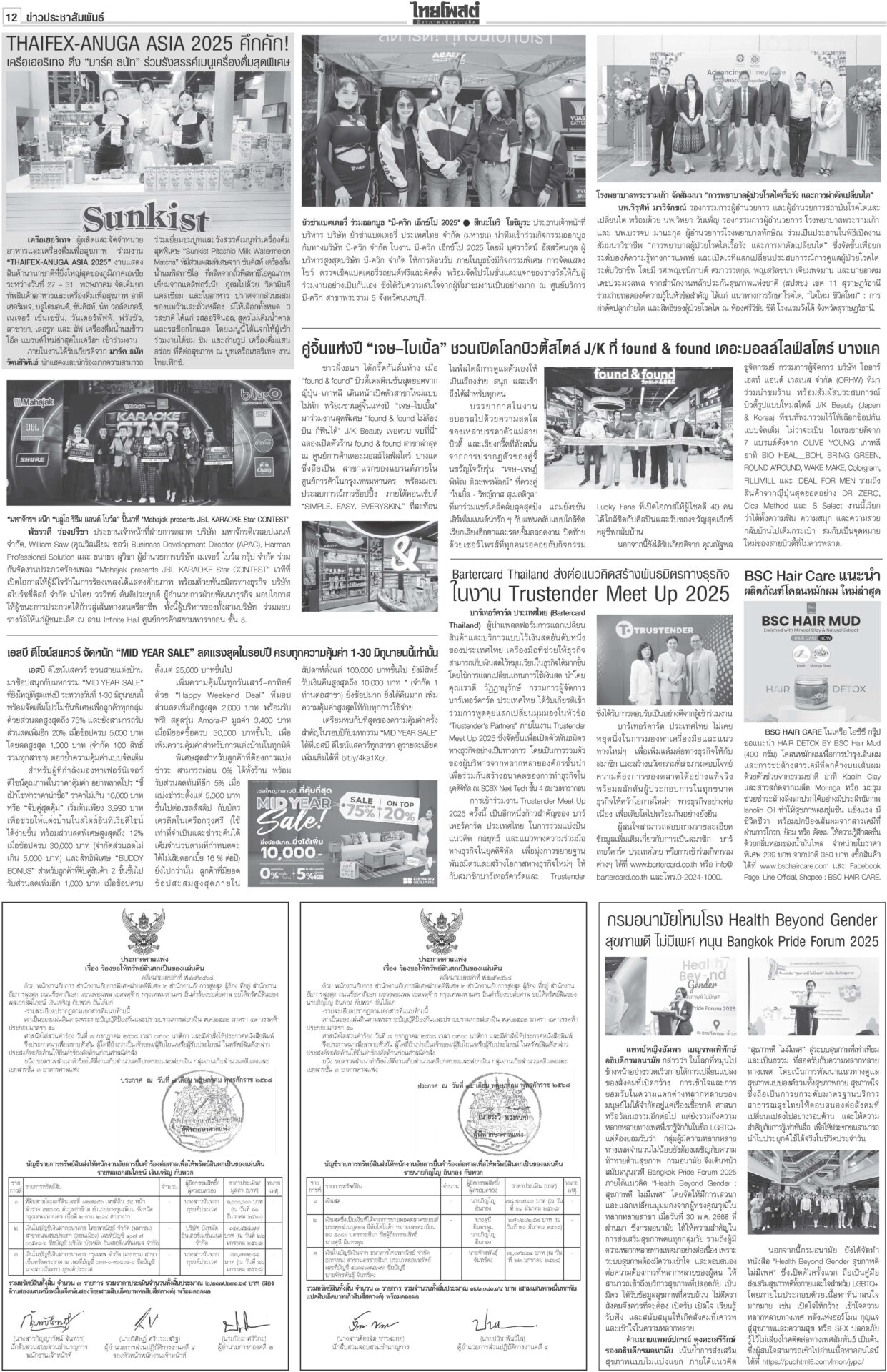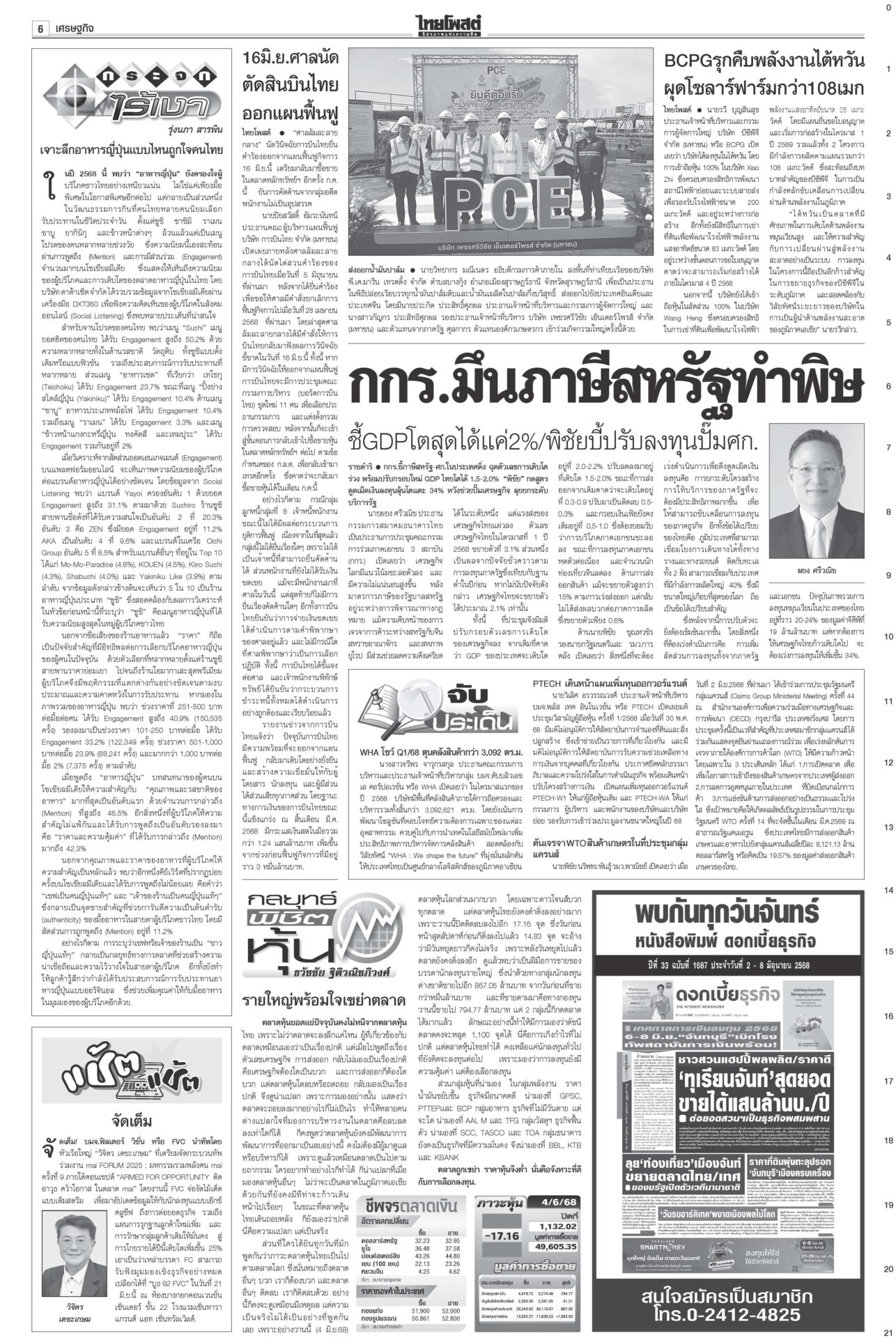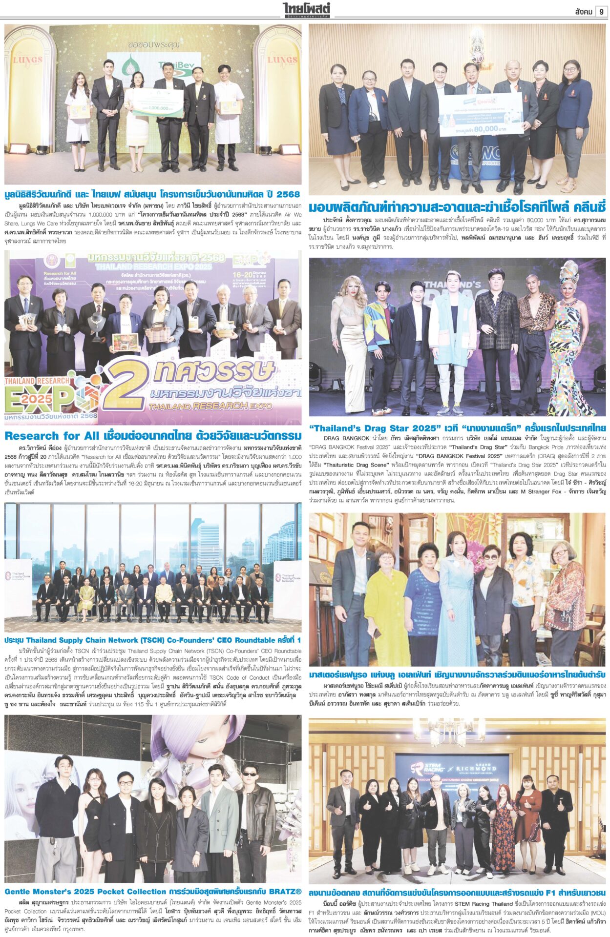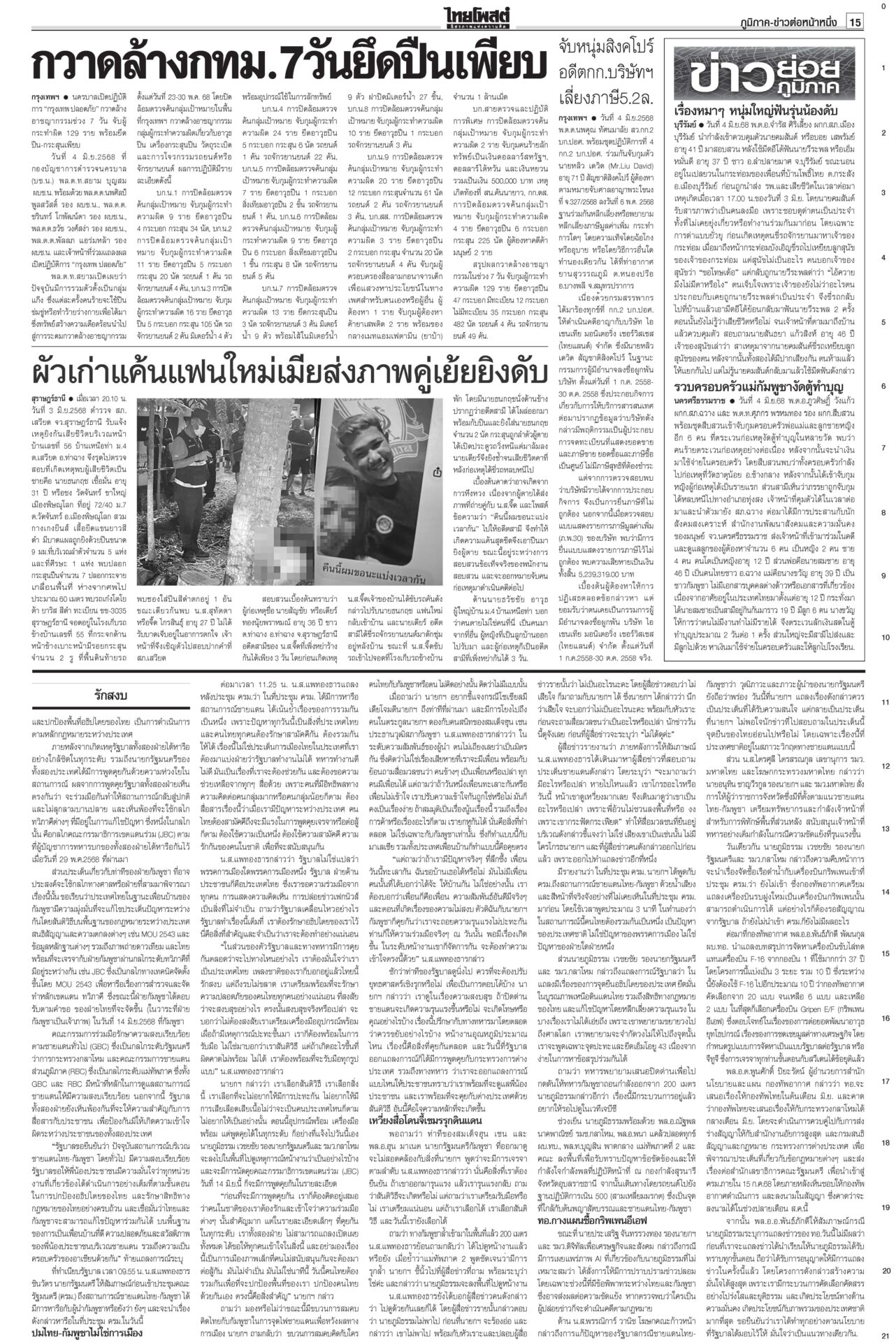 หนังสือพิมพ์ ฉบับวันที่ 5 มิถุนายน 2568ข่าวหน้าหนึ่งรักสงบรบไม่ขลาด รัฐบาลขึงขังทำเต็มที่ป้องอธิปไตยไทย/ทอ.ลุยซื้อกริพเพน“รัฐบาล” ออกแถลงการณ์ครั้งแรก ปมชายแดน “ไทย-กัมพูชา” ขอ ปชช.มั่นใจรัฐยึดหลักสันติวิธี-กม.ระหว่าง ปท อิ๊งค์คิดสูตรปรับครม.ปรับ ครม.ฝุ่นตลบ “นายกฯ อิ๊งค์” แย้มกำลังคิดอยู่ปรับแบบไหนแล้วดีขึ้น DSIส่งปปช.ฟัน70ราย ฮั้วประมูลตึกสตง.ถล่มดีเอสไอเผยขบวนการฮั้วประมูลสัญญา สตง. ล็อกสเปก-ปลอมเอกสารบุคลากร เปิด7แคนดิเดต ชิง‘ผู้ว่าธปท.’ ‘วิทัย-ก้อย’เต็งคลังเผยมี 7 แคนดิเดตชิง “ผู้ว่าฯ แบงก์ชาติ” ตรวจคุณสอบสมบัติ 2 สัปดาห์ สภาสูงจวก‘รมว.สธ.’ ทำลายวิชาชีพแพทย์“กมธ.สธ.” สว.ซัด “สมศักดิ์” วีโตมติแพทยสภา ได้รับเกียรตินั่งสภานายกพิเศษ
