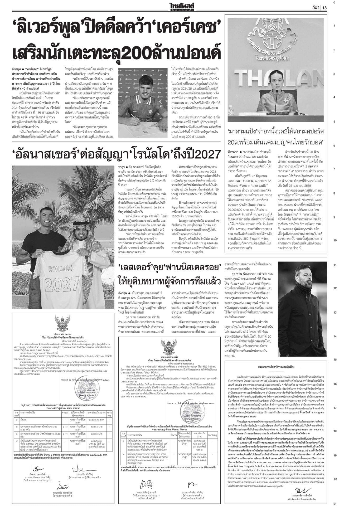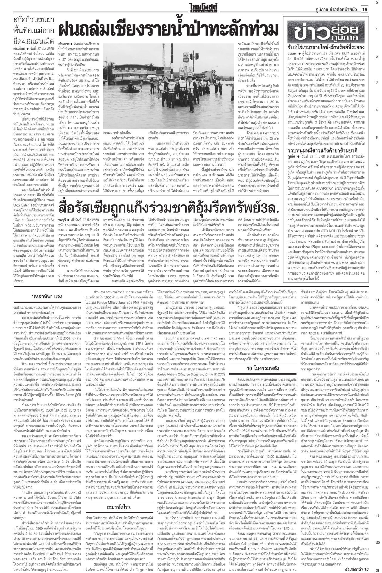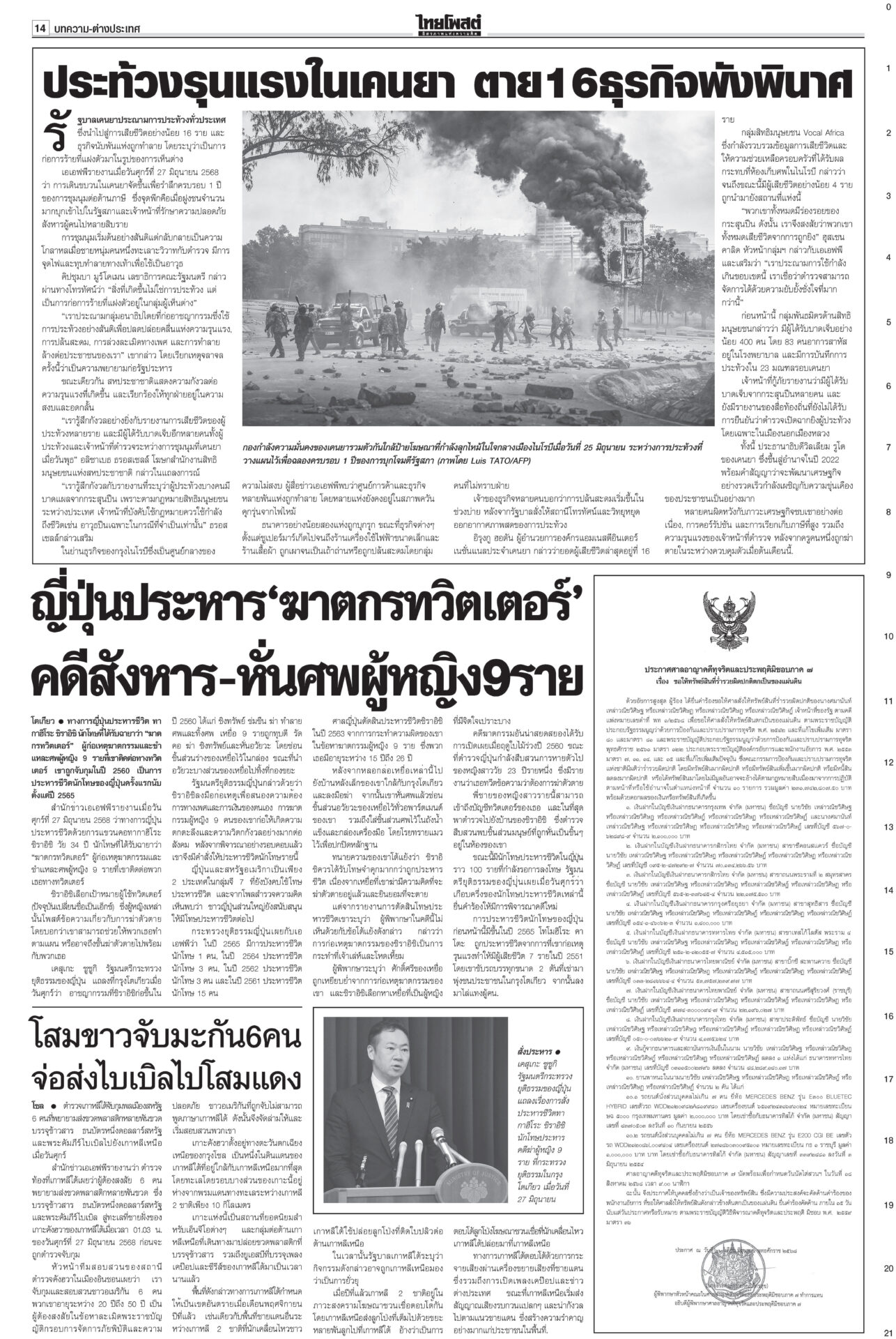 หนังสือพิมพ์ ฉบับวันที่ 28 มิถุนายน 2568ข่าวหน้าหนึ่งสางแค้นตระกูลชิน! ฮุนเซนร่ายยาว จัดหนัก‘แม้ว-ปู’ ‘อิ๊งค์’คุยมาครง“ฮุน เซน” แฉ “เพื่อนแม้ว” ป่วยทิพย์ เพื่อหลบเลี่ยงข้อกฎหมาย ‘อุ๊งอิ๊ง’แก้เกมหยุดปฏิบัติหน้าที่ควบ‘วธ.’หึ่ง “แพทองธาร” ทูลเกล้าฯ ถวายโผ ครม.แล้ว “พ่อมดดำ” นั่ง รมต.สำนักนายกฯ เขมรซัดไทยต้นตอแก๊งคอล“ฮุน เซน” พ้อกัมพูชาเป็นเหยื่อของการฉ้อโกงออนไลน์ที่ผ่านมาทางไทย วอนอย่าโยนผิดเขมร “ภูมิธรรม” นายกฯตื่นบึ้มแหล่งเที่ยว ภูมิธรรมบอกยังไร้ปัญหา“อุ๊งอิ๊ง” เรียก “ผบ.ตร.-ผบช.ทท.” รายงานเหตุเตรียมป่วนบึ้มภูเก็ต-พังงา 10โมงรวมพลังปกป้องอธิปไตย“คณะรวมพลังแผ่นดิน” พร้อมชุมนุมใหญ่สำแดงพลังปกป้องแผ่นดิน ‘เหล่าทัพ’แจง ช็อปชื้อ‘อาวุธ’ งบประมาณ69ผบ.เหล่าทัพตบเท้าชี้แจงงบปี 2569 “ผบ.ทอ.” ยึดสมุดปกขาว เผยกริพเพนจ่อเข้า ครม.