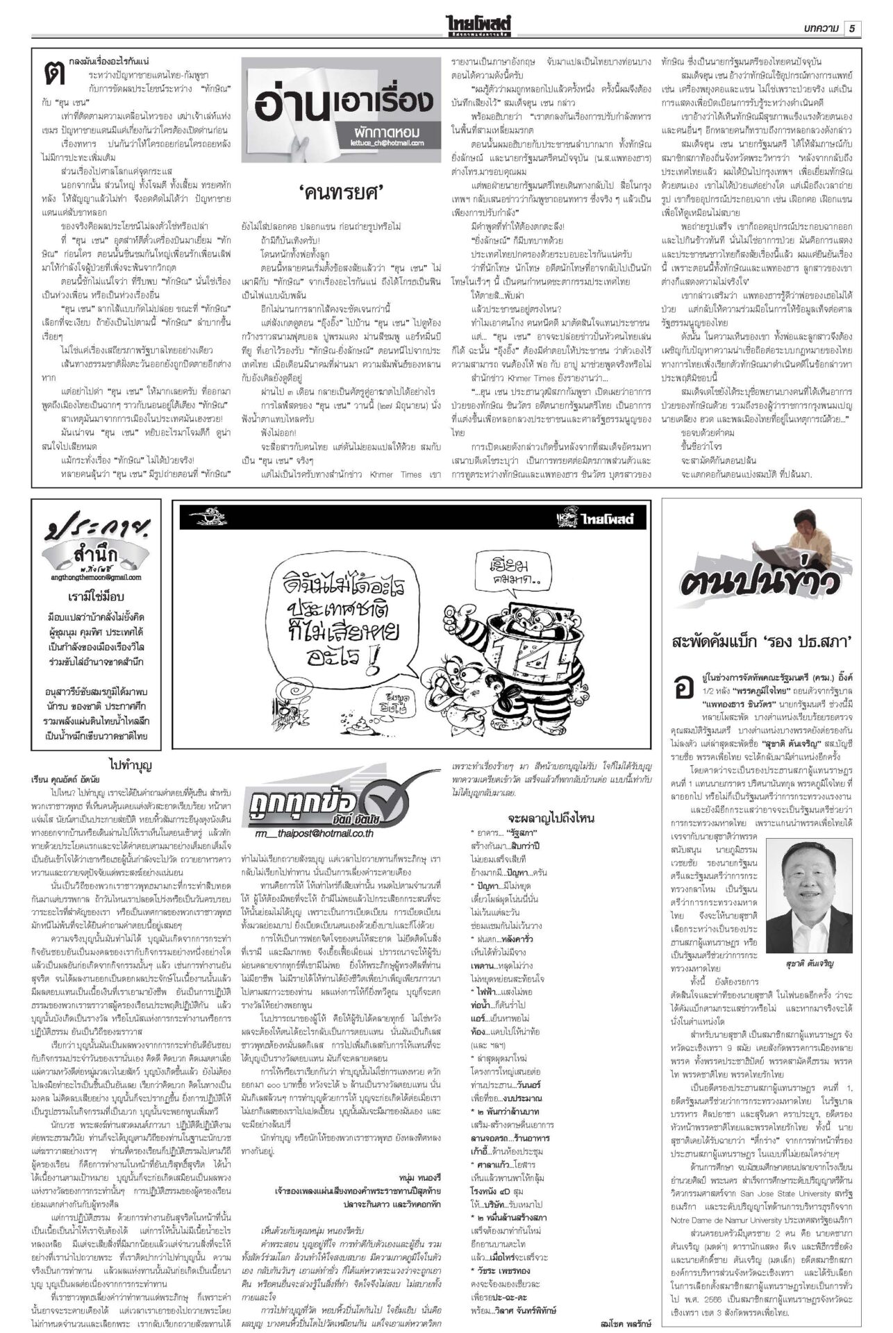 ฉบับวันที่ 28 มิถุนายน 2568 28 มิถุนายน 2568 เวลา 0:01 น. หนังสือพิมพ์ ฉบับวันที่ 28 มิถุนายน 2568ข่าวหน้าหนึ่งสางแค้นตระกูลชิน! ฮุนเซนร่ายยาว จัดหนัก‘แม้ว-ปู’ ‘อิ๊งค์’คุยมาครง“ฮุน เซน” แฉ “เพื่อนแม้ว” ป่วยทิพย์ เพื่อหลบเลี่ยงข้อกฎหมาย ‘อุ๊งอิ๊ง’แก้เกมหยุดปฏิบัติหน้าที่ควบ‘วธ.’หึ่ง “แพทองธาร” ทูลเกล้าฯ ถวายโผ ครม.แล้ว “พ่อมดดำ” นั่ง รมต.สำนักนายกฯ เขมรซัดไทยต้นตอแก๊งคอล“ฮุน เซน” พ้อกัมพูชาเป็นเหยื่อของการฉ้อโกงออนไลน์ที่ผ่านมาทางไทย วอนอย่าโยนผิดเขมร “ภูมิธรรม” นายกฯตื่นบึ้มแหล่งเที่ยว ภูมิธรรมบอกยังไร้ปัญหา“อุ๊งอิ๊ง” เรียก “ผบ.ตร.-ผบช.ทท.” รายงานเหตุเตรียมป่วนบึ้มภูเก็ต-พังงา 10โมงรวมพลังปกป้องอธิปไตย“คณะรวมพลังแผ่นดิน” พร้อมชุมนุมใหญ่สำแดงพลังปกป้องแผ่นดิน ‘เหล่าทัพ’แจง ช็อปชื้อ‘อาวุธ’ งบประมาณ69ผบ.เหล่าทัพตบเท้าชี้แจงงบปี 2569 “ผบ.ทอ.” ยึดสมุดปกขาว เผยกริพเพนจ่อเข้า ครม. Tagsรายวันหนังสือพิมพ์ ข่าวที่เกี่ยวข้อง ฉบับวันที่ 6 ธันวาคม 2568 ฉบับวันที่ 5 ธันวาคม 2568 ฉบับวันที่ 4 ธันวาคม 2568 ฉบับวันที่ 3 ธันวาคม 2568 ฉบับวันที่ 2 ธันวาคม 2568 ฉบับวันที่ 1 ธันวาคม 2568 NEWS UPDATE 17:08 น. นายกฯ ขอให้ชาวสตูลมั่นใจรัฐบาลไม่ทอดทิ้ง เร่งแก้ปัญหาน้ำท่วม ช่วยเยียวยาให้เร็วที่สุด 16:05 น. 'อนุทิน' ลงพื้นที่สตูล สั่งนายก อบจ. ทำประชาพิจารณ์รื้อประตูระบายน้ำ ถ้าไม่มีประโยชน์ก็เอาออก 15:55 น. 'แบล็ตเตอร์' แขวะ 'อินฟานติโน' ทำตัวสนิท 'ทรัมป์' จนเกินงาม 15:52 น. พระราชินี ทรงแข่งเรือใบรอบชิงชนะเลิศ ทำให้เรือวายุมีคะแนนดีที่สุดในการแข่งขัน 15:45 น. ‘มาดามหยก’ ลั่นพร้อมสู้เลือกตั้ง 69 ดันก้าวอิสระหวังปาร์ตี้ลิสต์ 10-15 ที่นั่ง