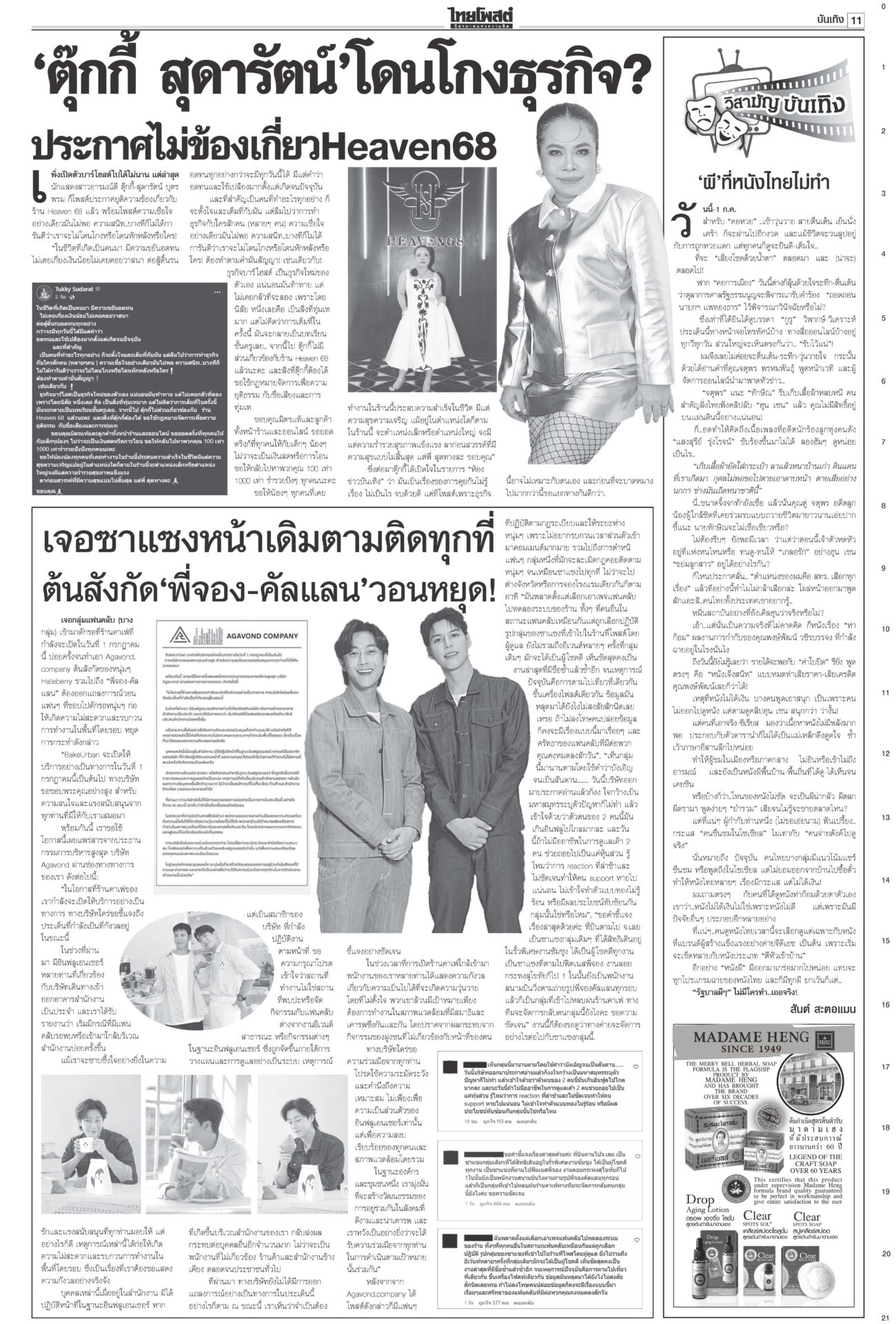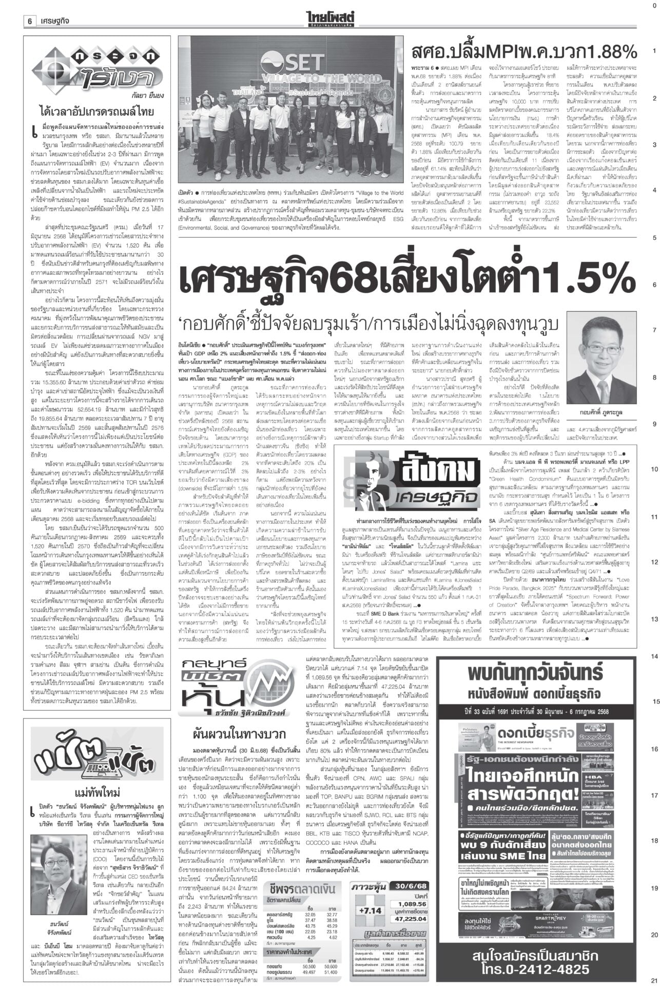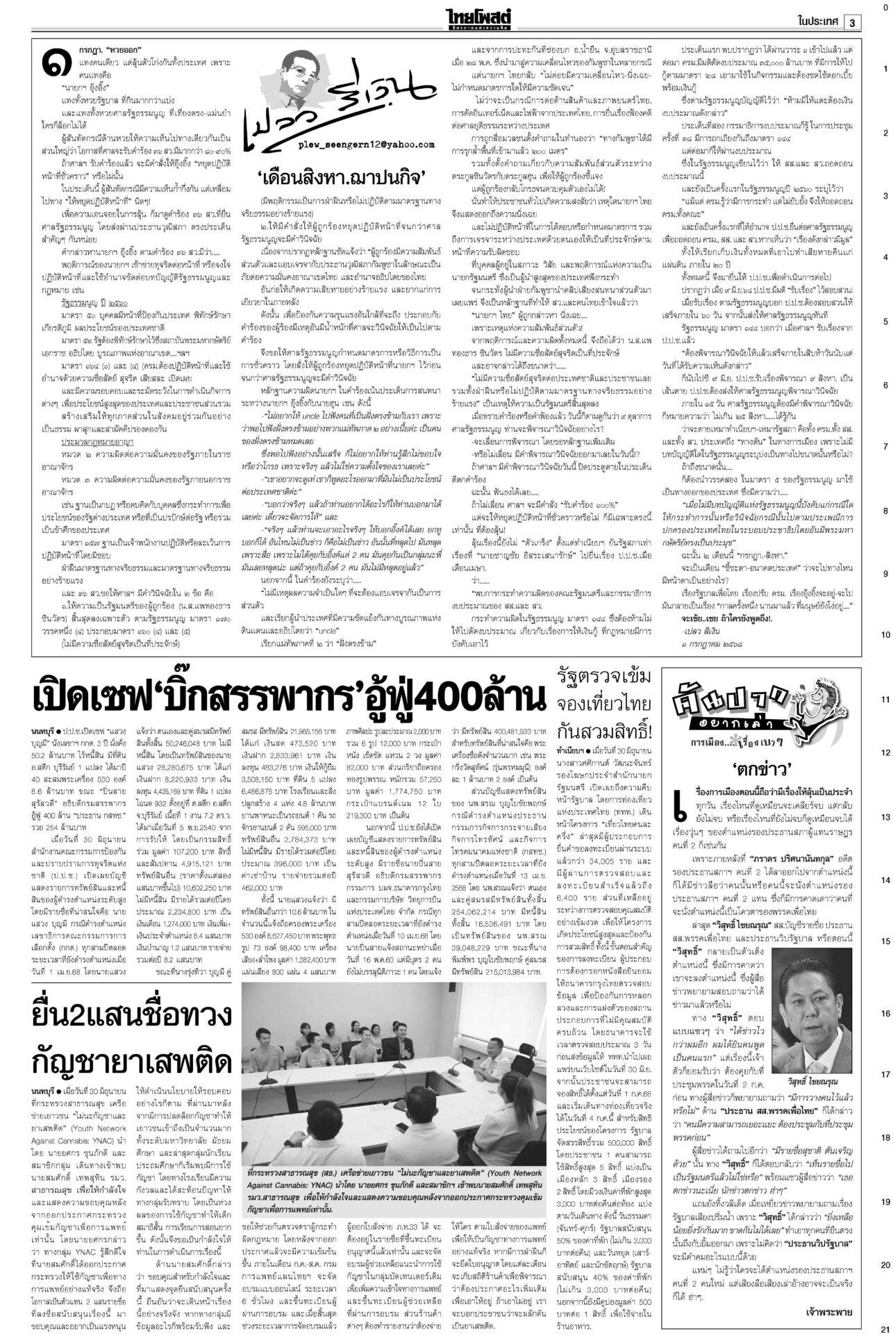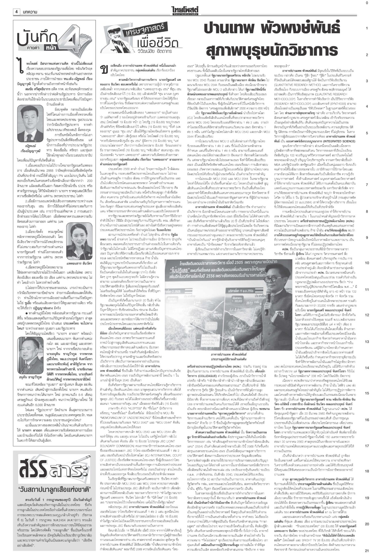 หนังสือพิมพ์ ฉบับวันที่ 1 กรกฎาคม 2568ข่าวหน้าหนึ่งลุ้นศาลชี้คลิปลุงฮุน ‘อิ๊งค์’นัดครม.มอนิเตอร์ เล็งใช้‘ประยุทธ์โมเดล’“แพทองธาร” ระทึก! ลุ้นศาลรัฐธรรมนูญเคาะคดี “คลิปลุงฮุน” พ่วงสั่งหยุดปฏิบัติหน้าที่หรือไม่ ลากไส้ปชต.ปลอม อ้วนเช็กแถวทหาร“จตุพร” ลากไส้นักประชาธิปไตยจอมปลอมตระบัดสัตย์ เกลียดนักรัฐประหารแต่จับมือกันตั้งรัฐบาลข้ามขั้ว อังเคิลบ้าจี้ผวาเสียดินแดนให้สนธิ“ฮุน เซน” บ้าจี้! ผวาเสียดินแดนให้ “สนธิ” เรียกร้องความสามัคคีของชาวกัมพูชา พิชัยบินถกสหรัฐ มั่นใจทำดีที่สุด! หวังวิน-วิน2ฝ่ายนายกฯ หวัง “พิชัย” ยกทีมเจรจากำแพงภาษีทรัมป์ได้ข้อสรุป เปิดผลสอบตึกสตง.ถล่ม! เหตุออกแบบ-ก่อสร้างมั่วนายกฯ แถลงผลสืบสวนสาเหตุตึก สตง.ถล่ม พบข้อบกพร่อง “การออกแบบ-วิธีก่อสร้าง”