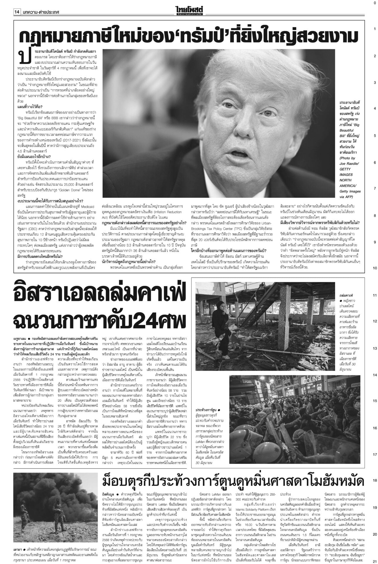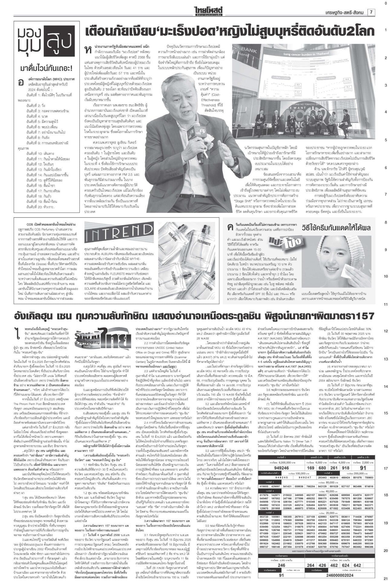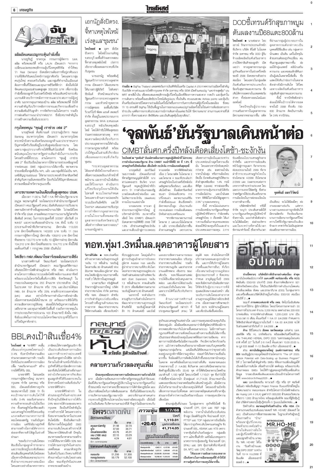 ฉบับวันที่ 2 กรกฎาคม 2568 2 กรกฎาคม 2568 เวลา 0:01 น. หนังสือพิมพ์ ฉบับวันที่ 2 กรกฎาคม 2568ข่าวหน้าหนึ่ง‘อิ๊งค์’ลาทำเนียบฯ ศาลสั่งหยุดหน้าที่/ครม.ใหม่ถวายสัตย์3ก.ค.9 ต่อ 0 มติตุลาการศาลรัฐธรรมนูญรับไต่สวนคลิปลุงฮุน พ่วงมติ 7:2 ให้ “แพทองธาร” หยุดปฏิบัติหน้าที่นายกฯ ทันที ‘ทักษิณ’ชิ่งสื่อฟังคดี112สืบพยานคดี 112 “ทักษิณ” วันแรกราบรื่น ทนายบอกเจ้าตัวไม่เครียดและไม่หนักใจ รวมพลังแผ่นดินจัดใหญ่ส.ค.“รวมพลังแผ่นดิน” เผยยอดบริจาคก่อนปิดบัญชีทะลุ 30 ล้านบาท หักค่าใช้จ่ายการชุมนุมรวม 2 ล้าน ประเดิมขึ้นค่าแรง400 เคาะคุณสู้เราช่วยเฟส2ครม.เคาะ “คุณสู้ เราช่วย” เฟส 2 เปิดลงทะเบียนถึง 30 ก.ย.68 ปักธงอุ้มลูกหนี้เพิ่ม 2 ล้านบัญชี ตีตกยื่นยุบภท. อ้วน-ทวีลุ้นต่อ จุ้นสอบฮั้วสว.ศาล รธน.ตีตกคำร้อง “ณฐพร” ฟ้อง กกต.เอื้อ “ภท.-เนวิน” ฮั้วเลือก สว. ส่วนคดี สว.ฟ้อง “ภูมิธรรม-ทวี” Tagsรายวันหนังสือพิมพ์ ข่าวที่เกี่ยวข้อง ฉบับวันที่ 6 ธันวาคม 2568 ฉบับวันที่ 5 ธันวาคม 2568 ฉบับวันที่ 4 ธันวาคม 2568 ฉบับวันที่ 3 ธันวาคม 2568 ฉบับวันที่ 2 ธันวาคม 2568 ฉบับวันที่ 1 ธันวาคม 2568 NEWS UPDATE 0:42 น. 'DUMB.RONG' ค่าย 'tiny' ส่งซิงเกิล 'SUNRISE' พร้อม MV สุดปั่น 0:37 น. 'เบนท์ กิตติธัช' จาก 'Kicks Records' ปล่อย 'กาฬสินธุ์ บลูส์' แนวดนตรีใหม่ที่โตขึ้น 18:43 น. ในหลวง พระราชินี ทรงบำเพ็ญพระราชกุศลทักษิณานุปทาน เนื่องในวันคล้ายวันพระบรมราชสมภพ รัชกาลที่ 9 18:12 น. เริ่มแล้ว Cat Expo Thailand 2025 วันแรก 'ทาสแมว' แห่ร่วมงานคึกคักคาดเม็ดเงินสะพัด 120 ล้านบาท 18:06 น. กรมอุตุฯ เผยพายุลูกใหม่กำลังก่อตัวบริเวณทะเลจีนใต้ตอนกลาง