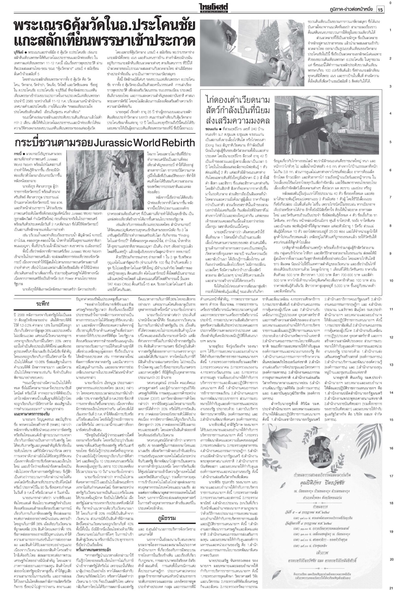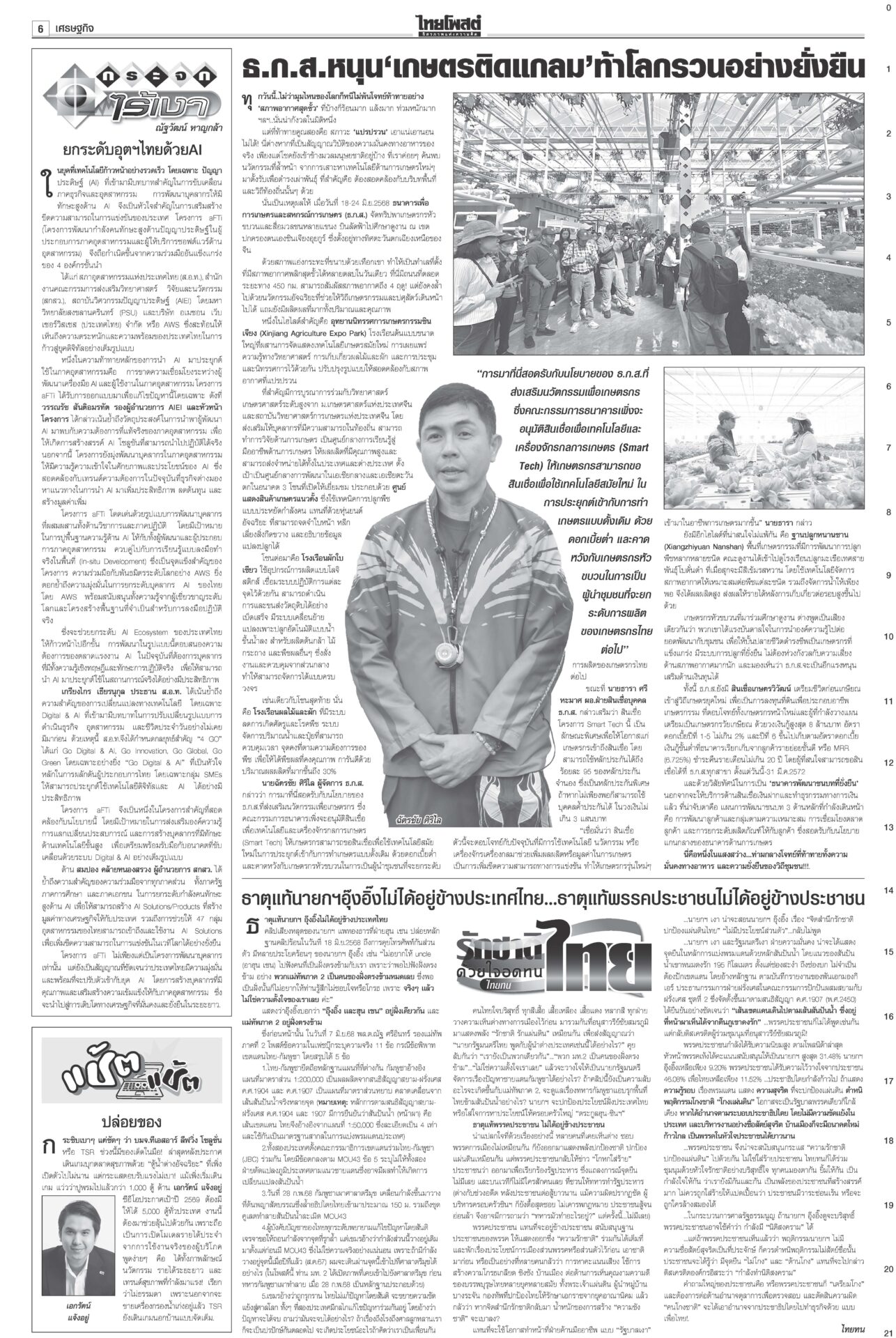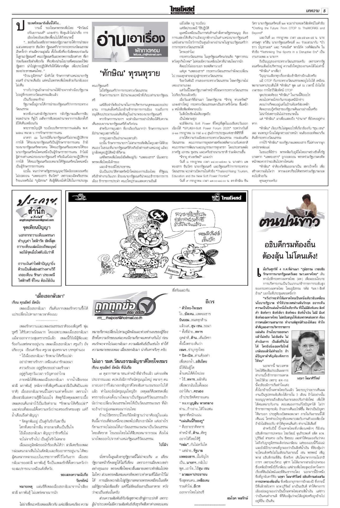 ฉบับวันที่ 7 กรกฎาคม 2568 7 กรกฎาคม 2568 เวลา 0:01 น. หนังสือพิมพ์ ฉบับวันที่ 7 กรกฎาคม 2568ข่าวหน้าหนึ่งไล่บี้รมต.ปาร์ตี้ลิสต์ สส.อีสานบีบไขก๊อก‘บัญชีรายชื่อ’/‘ชัยเกษม’โวฟิตเปรี๊ยะ“มือกฎหมาย รบ.” ลั่น การเมืองยังไม่ถึงทางตัน มั่นใจ “นายกฯ อิ๊งค์” แจงศาล รธน.ได้ ไม่เชื่อดีล “ปชน-ภท.” หนุน “อนุทิน” เป็นนายกฯ ‘บัวแก้ว’โต้เขมร โพลซัด‘ฮุนเซน’บัวแก้วโต้เขมรละเมิด MOU 43 ลั่นไทยยึดมั่นพันธกรณีอย่างเคร่งครัด ภูมิธรรมลงนาม แบ่งอำนาจดูแล ‘พท.’คุมเรียบวุธ“ภูมิธรรม” แบ่งงาน “รองนายกฯ-รมต.ประจำสำนักฯ” ค่ายเพื่อไทยยึดเรียบทั้งความมั่นคง-เศรษฐกิจ-สังคม ระทึก!ทรัมป์ส่งจม.ภาษีถึง12ปท.ระทึก! ประธานาธิบดีทรัมป์ลงนามในจดหมายถึง 12 ประเทศเรื่องภาษีแล้ว ปูนบำเหน็จชั้น14สองหมอใหญ่ได้ดีวิจารณ์สนั่น! สองหมอใหญ่คดีป่วยทิพย์ได้ดี ติดบัญชีเลื่อนตำแหน่งสูงขึ้น Tagsรายวันหนังสือพิมพ์ ข่าวที่เกี่ยวข้อง ฉบับวันที่ 6 ธันวาคม 2568 ฉบับวันที่ 5 ธันวาคม 2568 ฉบับวันที่ 4 ธันวาคม 2568 ฉบับวันที่ 3 ธันวาคม 2568 ฉบับวันที่ 2 ธันวาคม 2568 ฉบับวันที่ 1 ธันวาคม 2568 NEWS UPDATE 0:42 น. 'DUMB.RONG' ค่าย 'tiny' ส่งซิงเกิล 'SUNRISE' พร้อม MV สุดปั่น 0:37 น. 'เบนท์ กิตติธัช' จาก 'Kicks Records' ปล่อย 'กาฬสินธุ์ บลูส์' แนวดนตรีใหม่ที่โตขึ้น 18:43 น. ในหลวง พระราชินี ทรงบำเพ็ญพระราชกุศลทักษิณานุปทาน เนื่องในวันคล้ายวันพระบรมราชสมภพ รัชกาลที่ 9 18:12 น. เริ่มแล้ว Cat Expo Thailand 2025 วันแรก 'ทาสแมว' แห่ร่วมงานคึกคักคาดเม็ดเงินสะพัด 120 ล้านบาท 18:06 น. กรมอุตุฯ เผยพายุลูกใหม่กำลังก่อตัวบริเวณทะเลจีนใต้ตอนกลาง