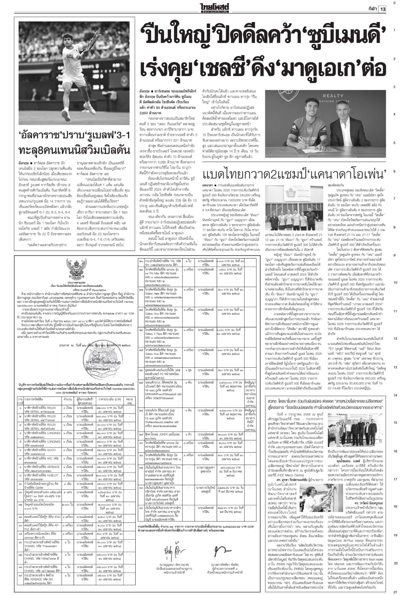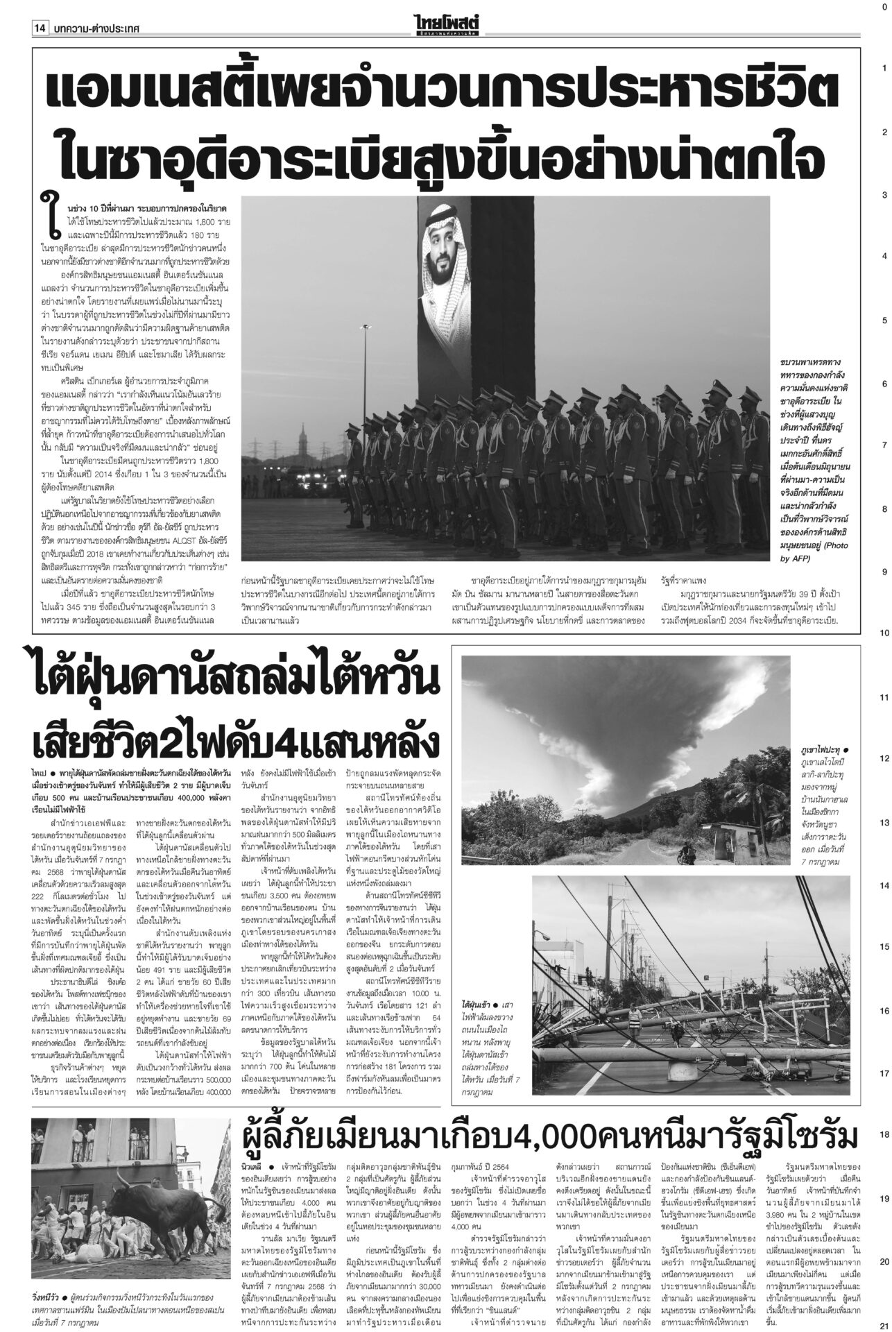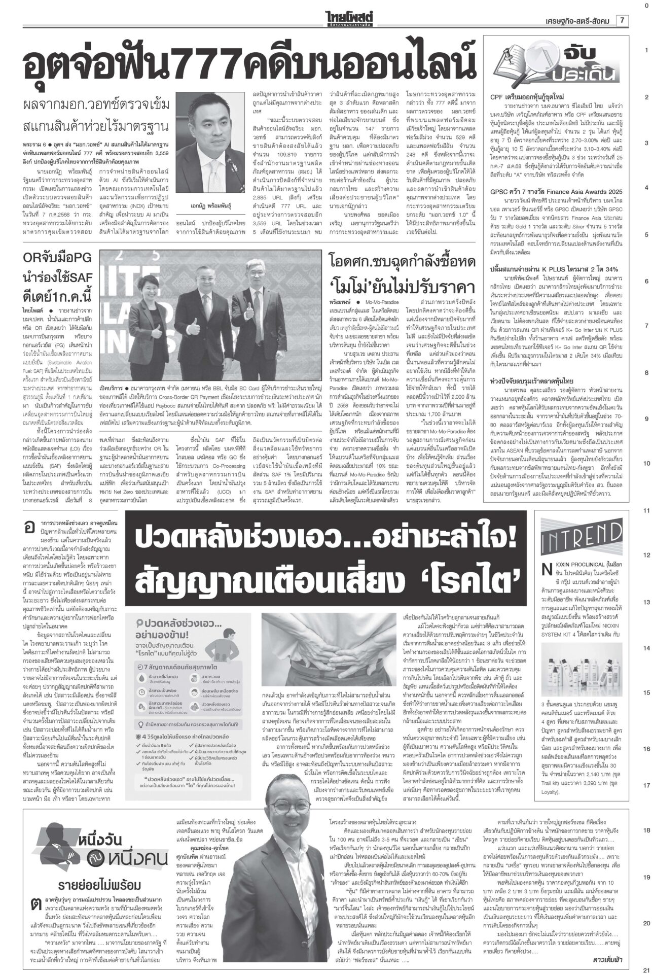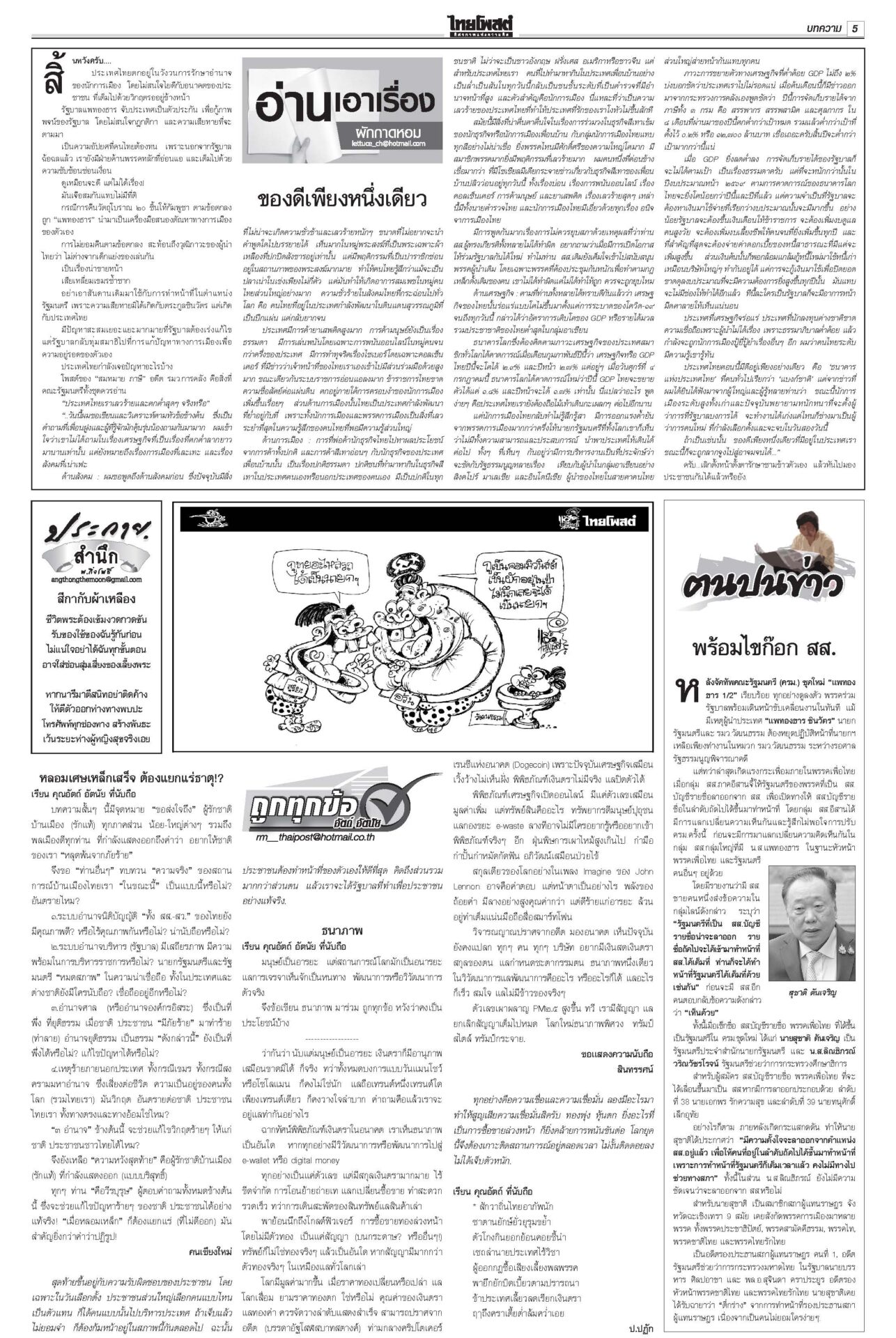 ฉบับวันที่ 8 กรกฎาคม 2568 8 กรกฎาคม 2568 เวลา 0:01 น. หนังสือพิมพ์ ฉบับวันที่ 8 กรกฎาคม 2568ข่าวหน้าหนึ่งกฤษฎีกาขวางยุบสภา รักษาการนายกฯไร้อำนาจ พท.โวมี‘ชัยเกษม’ขึ้นแทน“ภูมิธรรม” ยอมรับ “เลขาฯ กฤษฎีกา” แจงครม. “รักษาการนายกฯ” จ่อลดภาษีนำเข้า0%ให้สหรัฐ“พิชัย” รับเตรียมลดภาษีนำเข้าให้สหรัฐฯ เหลือ 0% หลายรายการ แต่ยันไม่ได้ให้ทั้งหมด ถอนร่างพ.ร.บ.กาสิโน ไฟเขียวถก‘กม.นิรโทษ’วิปรัฐบาลไฟเขียวร่าง พ.ร.บ.สร้างเสริมสังคมสันติสุข จ่อเข้าสภาคิวแรกพุธนี้ กต.แจงสมาชิกUNสู้เขมร ปลดล็อกแรงงานอยู่ยาว“ศบ.ทก.” ปลดล็อกปัญหาแรงงานต่างด้าวใบอนุญาตหมดอายุ ‘ตุลย์’ค้านผบ.ตร. ปูนบำเหน็จ2นพ. จี้ตั้งกก.ฟันวินัย“หมอตุลย์” บุก ตร.ยื่นหนังสือ ผบ.ตร. ค้านเลื่อนตำแหน่ง 2 นายแพทย์ตำรวจ Tagsรายวันหนังสือพิมพ์ ข่าวที่เกี่ยวข้อง ฉบับวันที่ 6 ธันวาคม 2568 ฉบับวันที่ 5 ธันวาคม 2568 ฉบับวันที่ 4 ธันวาคม 2568 ฉบับวันที่ 3 ธันวาคม 2568 ฉบับวันที่ 2 ธันวาคม 2568 ฉบับวันที่ 1 ธันวาคม 2568 NEWS UPDATE 0:42 น. 'DUMB.RONG' ค่าย 'tiny' ส่งซิงเกิล 'SUNRISE' พร้อม MV สุดปั่น 0:37 น. 'เบนท์ กิตติธัช' จาก 'Kicks Records' ปล่อย 'กาฬสินธุ์ บลูส์' แนวดนตรีใหม่ที่โตขึ้น 18:43 น. ในหลวง พระราชินี ทรงบำเพ็ญพระราชกุศลทักษิณานุปทาน เนื่องในวันคล้ายวันพระบรมราชสมภพ รัชกาลที่ 9 18:12 น. เริ่มแล้ว Cat Expo Thailand 2025 วันแรก 'ทาสแมว' แห่ร่วมงานคึกคักคาดเม็ดเงินสะพัด 120 ล้านบาท 18:06 น. กรมอุตุฯ เผยพายุลูกใหม่กำลังก่อตัวบริเวณทะเลจีนใต้ตอนกลาง