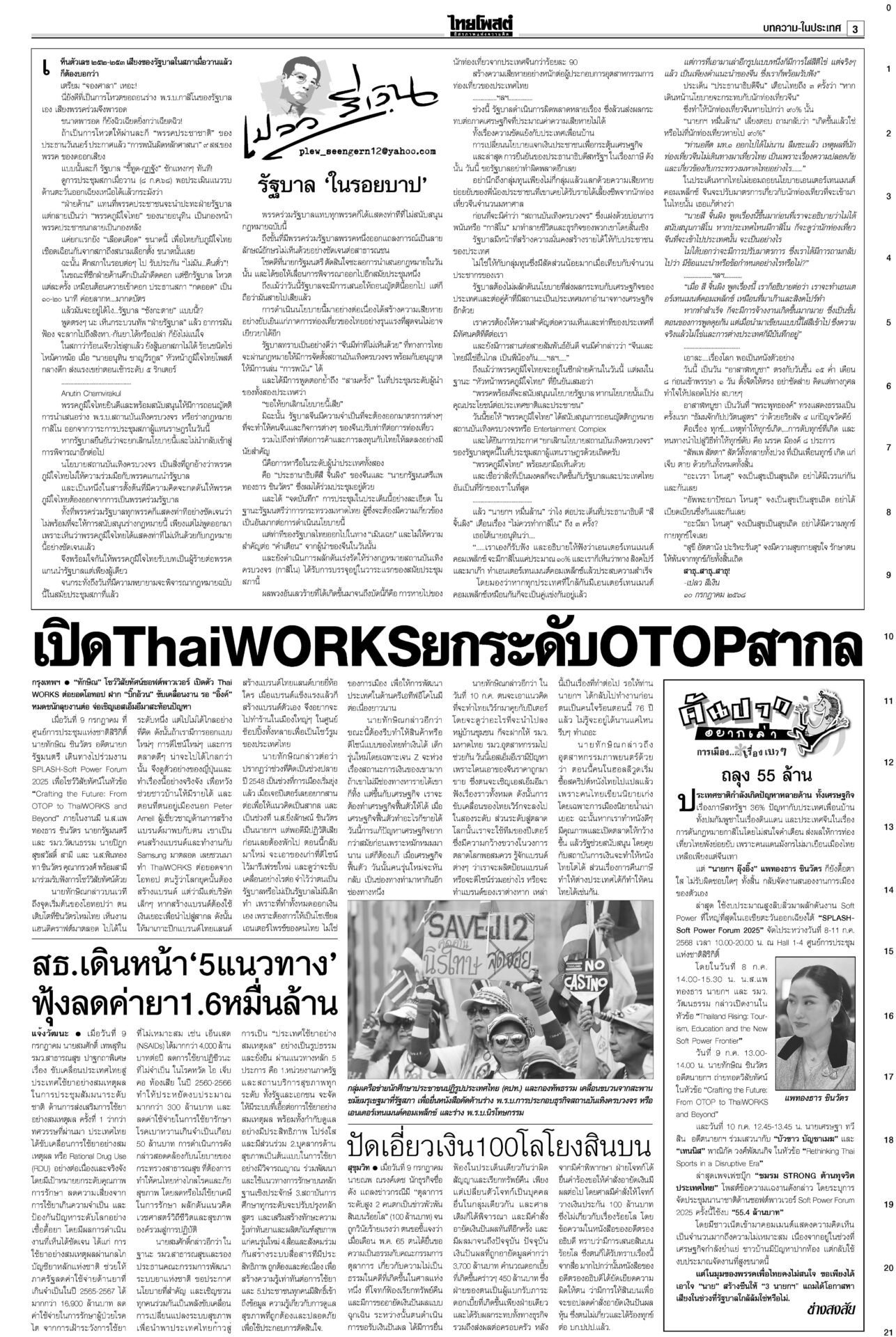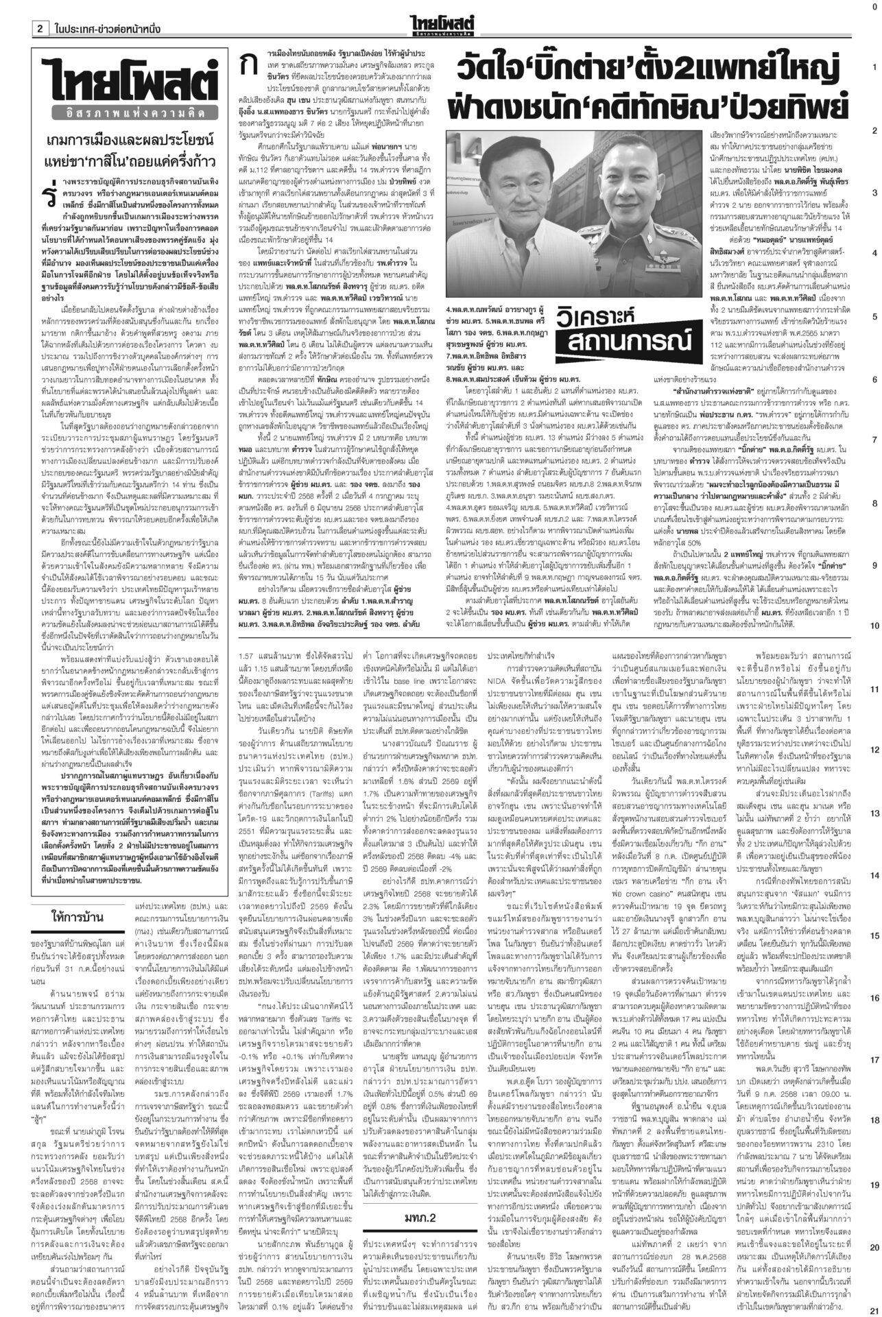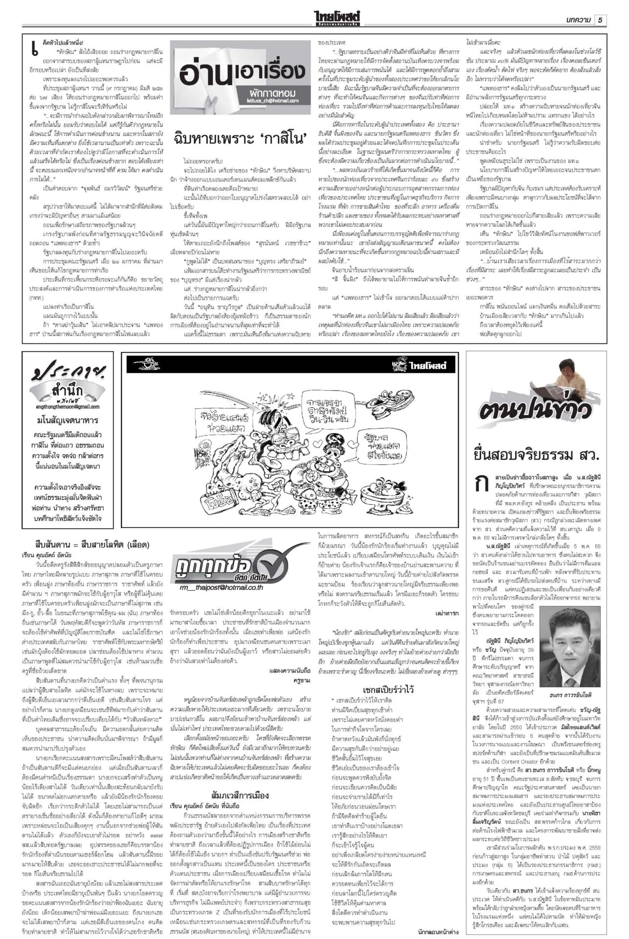 ฉบับวันที่ 10 กรกฎาคม 2568 10 กรกฎาคม 2568 เวลา 0:01 น. หนังสือพิมพ์ ฉบับวันที่ 10 กรกฎาคม 2568ข่าวหน้าหนึ่งแม้วช็อกเล่ห์ฮุนเซน ตั้งใจอัดคลิปลูกบริสุทธิ์ อิ๊งค์-อนุทินซัดกันเดือด“นายกฯ อิ๊งค์” สวน “อนุทิน” ใส่สีตีไข่ ปมหา “สี จิ้นผิง” เตือนรัฐบาลดัน กม.กาสิโน กระทบนักท่องเที่ยวจีนไม่มาไทย ให้การบ้านเอกชนรับมือภาษี“อิ๊งค์” เชื่อ “ภาษีทรัมป์” ยังมีโอกาส “พิชัย” แจกการบ้านภาคธุรกิจประเมินผลกระทบ 5กม.นิรโทษกรรมค้างเติ่งสภาเปิดฉากถกร่าง กม.นิรโทษกรรม 5 ฉบับรวด “ภูมิใจไทย” ปิดประตูไม่หนุนนิรโทษฯ 112 มทภ.2ลั่นดีขึ้น ไทยกระสุนพอ เขมรอุ้มก๊กอาน“ฮุน เซน” โพสต์ถี่ยิบ ยกนิด้าโพล เพ้อหนักอ้างสิ่งที่กลัวที่สุดคือคนไทย “รักฮุน เซน” แต่จะทำให้ตัวเองเป็นคนทรยศต่อเขมร Tagsรายวันหนังสือพิมพ์ ข่าวที่เกี่ยวข้อง ฉบับวันที่ 6 ธันวาคม 2568 ฉบับวันที่ 5 ธันวาคม 2568 ฉบับวันที่ 4 ธันวาคม 2568 ฉบับวันที่ 3 ธันวาคม 2568 ฉบับวันที่ 2 ธันวาคม 2568 ฉบับวันที่ 1 ธันวาคม 2568 NEWS UPDATE 0:42 น. 'DUMB.RONG' ค่าย 'tiny' ส่งซิงเกิล 'SUNRISE' พร้อม MV สุดปั่น 0:37 น. 'เบนท์ กิตติธัช' จาก 'Kicks Records' ปล่อย 'กาฬสินธุ์ บลูส์' แนวดนตรีใหม่ที่โตขึ้น 18:43 น. ในหลวง พระราชินี ทรงบำเพ็ญพระราชกุศลทักษิณานุปทาน เนื่องในวันคล้ายวันพระบรมราชสมภพ รัชกาลที่ 9 18:12 น. เริ่มแล้ว Cat Expo Thailand 2025 วันแรก 'ทาสแมว' แห่ร่วมงานคึกคักคาดเม็ดเงินสะพัด 120 ล้านบาท 18:06 น. กรมอุตุฯ เผยพายุลูกใหม่กำลังก่อตัวบริเวณทะเลจีนใต้ตอนกลาง