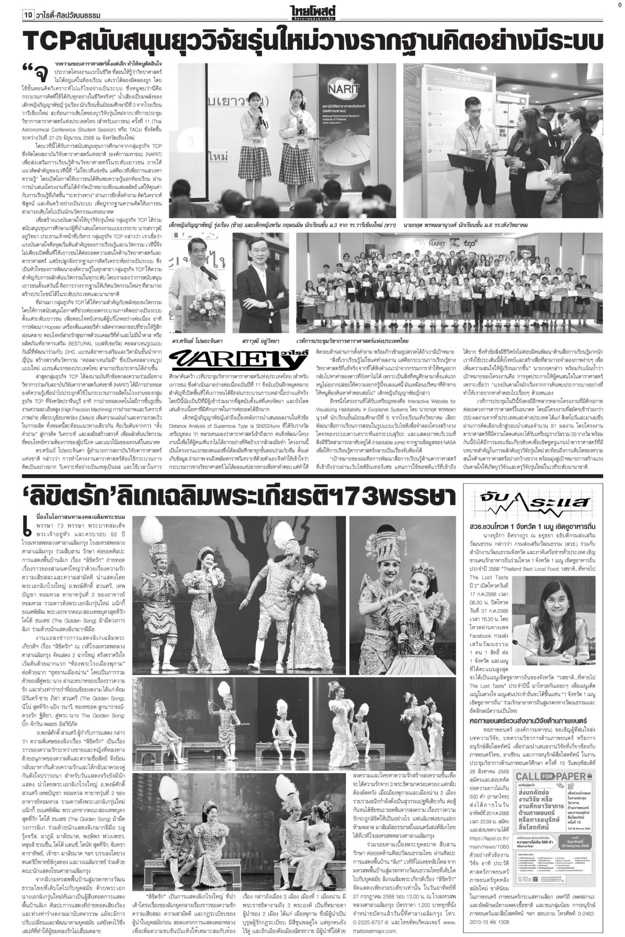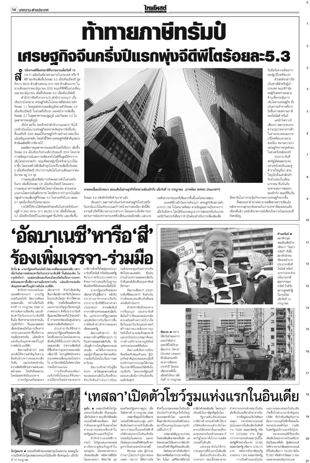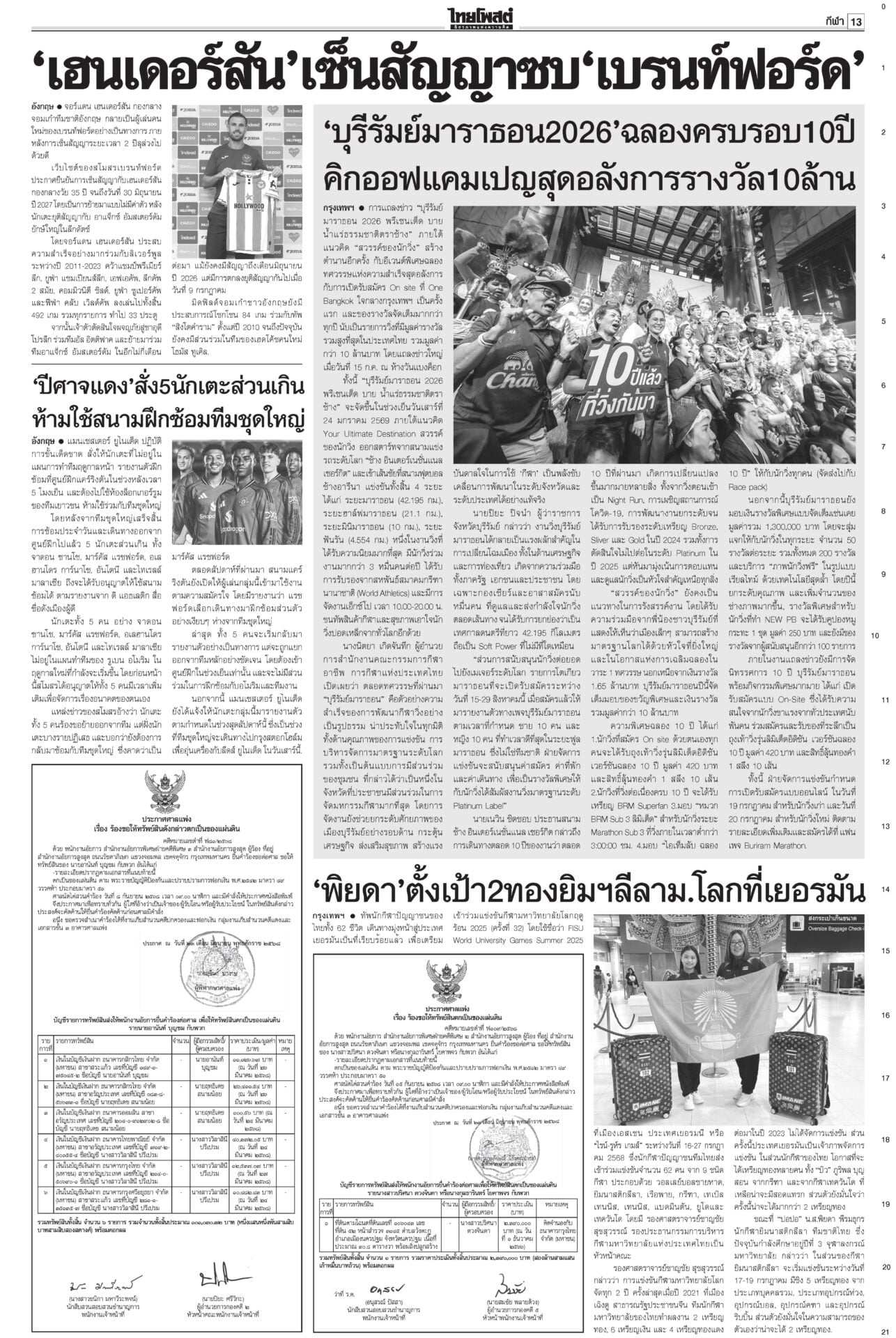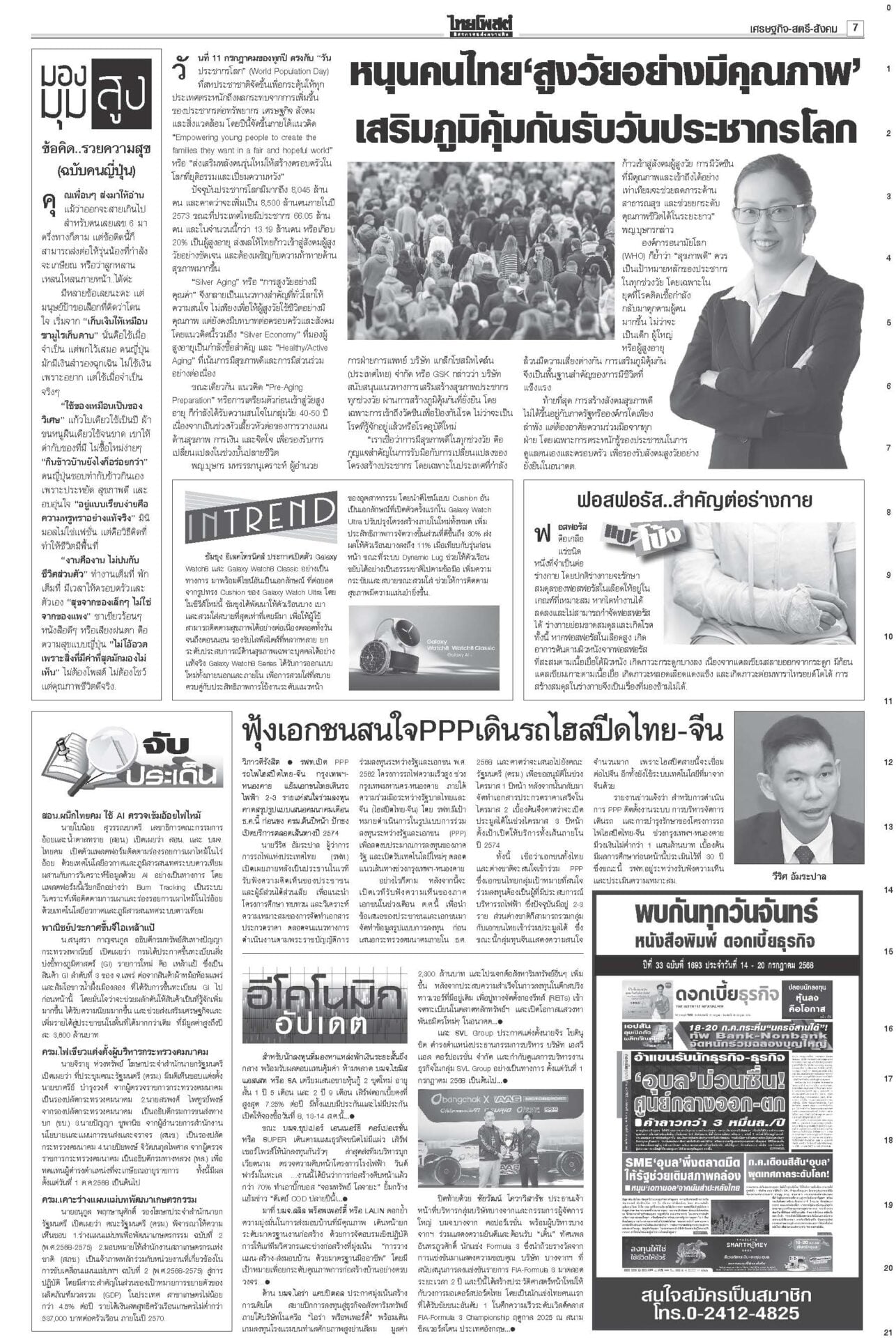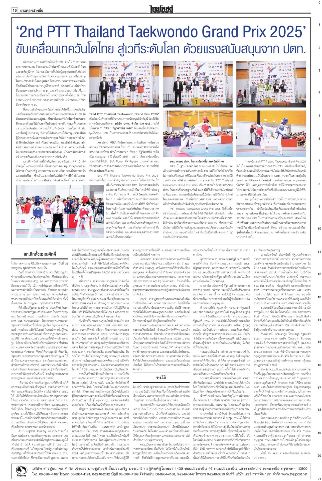 หนังสือพิมพ์ ฉบับวันที่ 16 กรกฎาคม 2568ข่าวหน้าหนึ่งคดีชั้น14ใกล้น็อก! ซัก6บิ๊กราชทัณฑ์มัดทักษิณ/หนูปัดปั่นวาทกรรมขายชาติศาลไต่สวนนัดที่ 4 ซัก 6 ผู้บริหารราชทัณฑ์พยานคดีทักษิณชั้น 14 นัดหน้าถึงคิวแพทย์ใหญ่ ตร. “หมอวรงค์” ชี้ยิ่งเบิกความยิ่งมัด เชื่อแทบจะน็อกแล้ว เขมรป่วนเช็กกำลังไทยอุ๊งอิ๊งรูดซิปปากไม่พูดเรื่องกัมพูชา “หมอมิ้ง” เผยนายกฯ ยื่นขอขยายเวลาแจงศาลรัฐธรรมนูญแล้ว รบ.โต้สหรัฐใช้ฐานทัพ เลื่อนเคาะ‘ผู้ว่าธปท.’รัฐบาลเรียงหน้าโต้ ปมให้สหรัฐใช้ฐานทัพเรือละมุแลกภาษีทรัมป์ “ภูมิธรรม” ของขึ้น ยกเลิกตั้งสมณศักดิ์81รูป แจ้ง3ข้อหาหนักสีกากอล์ฟโปรดเกล้าฯ ยกเลิกประกาศสถาปนาสมณศักดิ์และพระราชทานสัญญาบัตรตั้งสมณศักดิ์ รวม 81 รูป รฟท.เปิด3ทาง ทวงเขากระโดง ภท.เมินฮั้วสว.“ภูมิธรรม” ขึงขังเอาจริงเขากระโดง-อัลไพน์ หวังสร้างความกระจ่าง “เดชอิศม์”