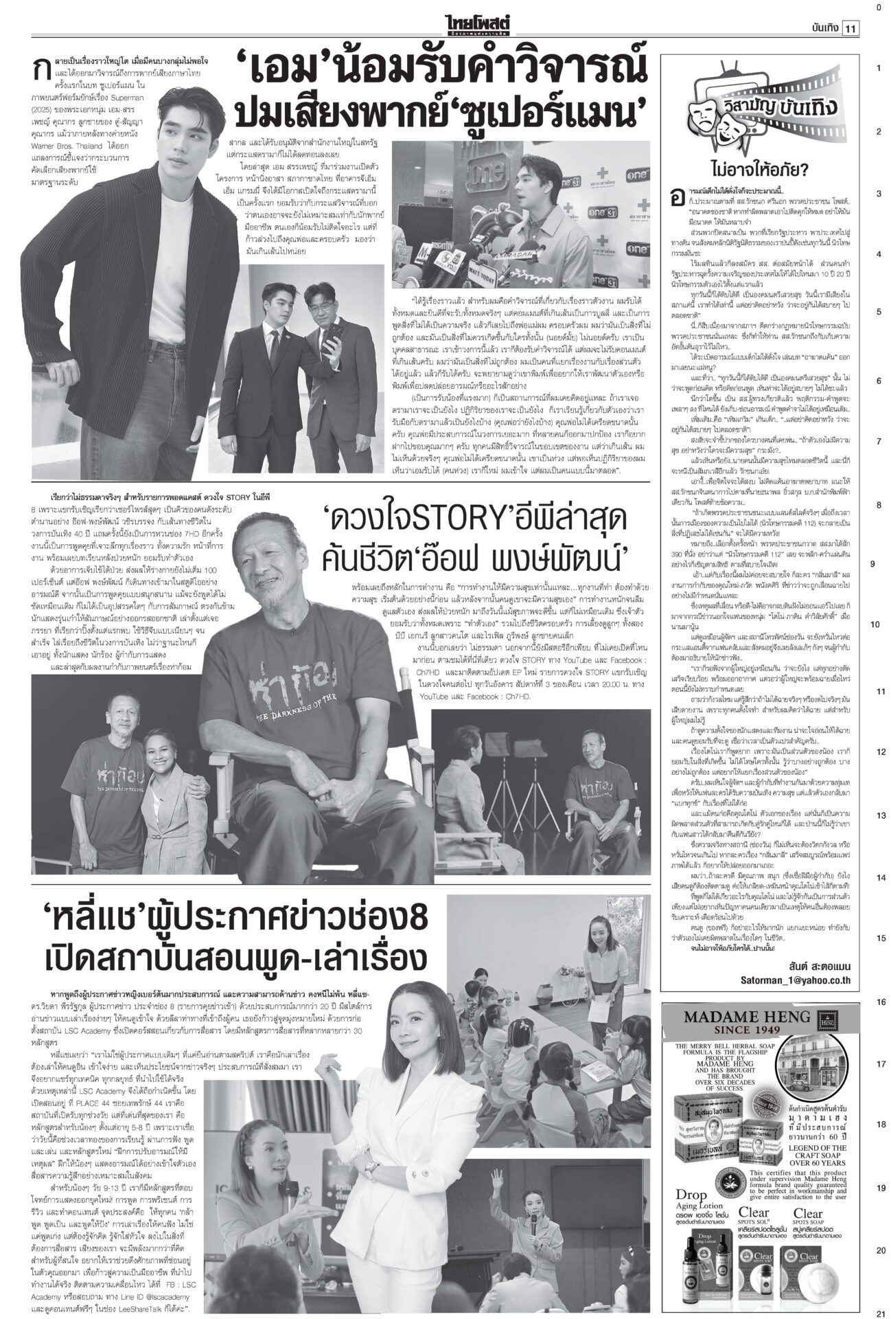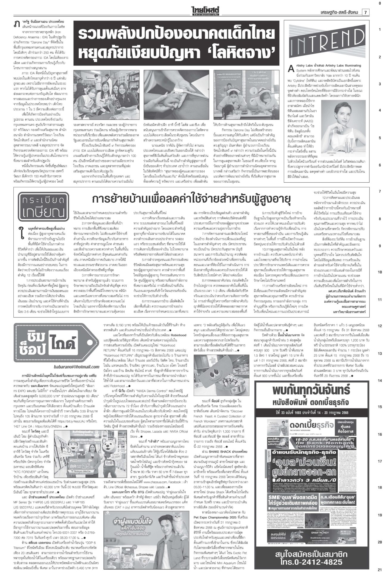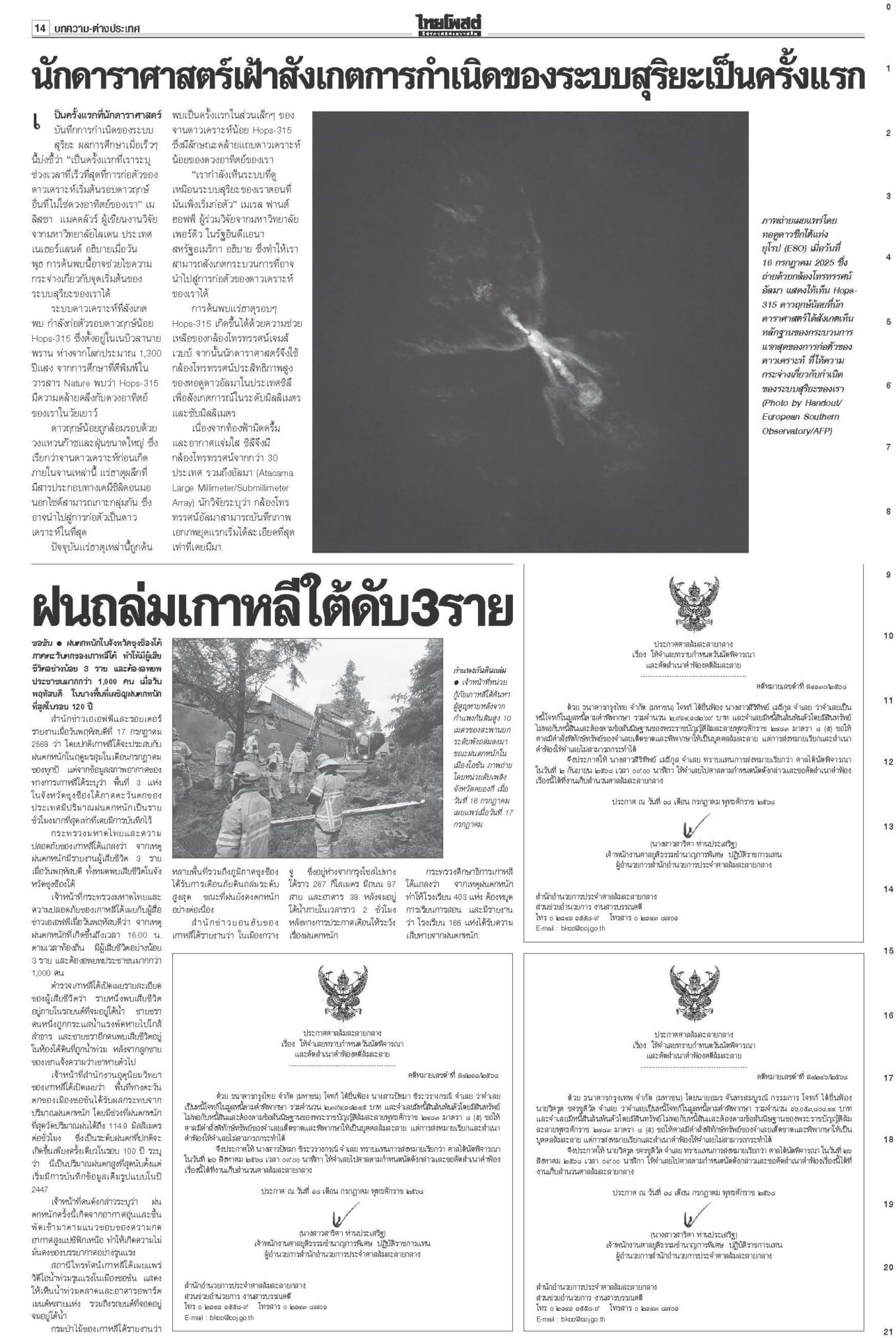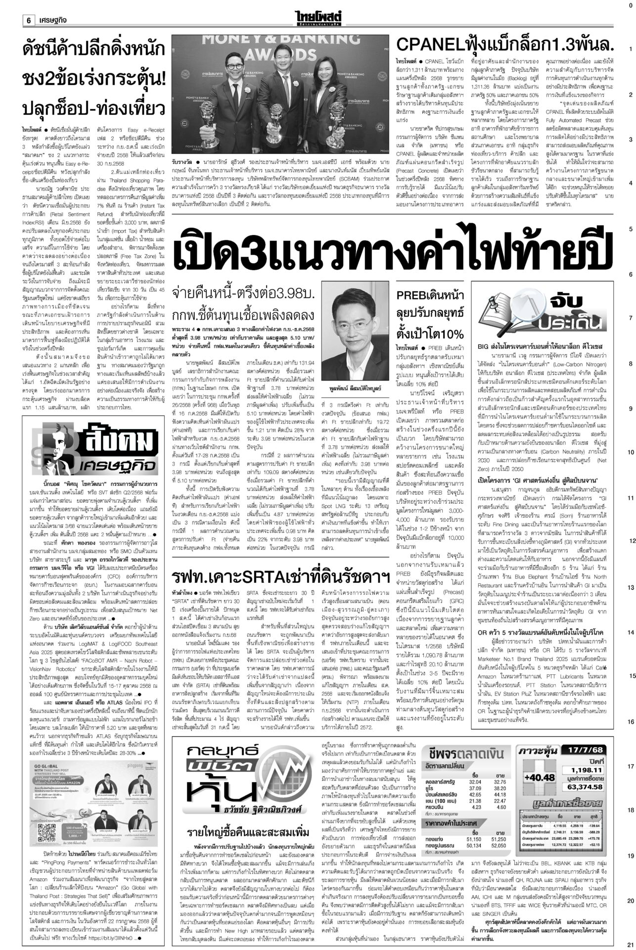 หนังสือพิมพ์ ฉบับวันที่ 18 กรกฎาคม 2568ข่าวหน้าหนึ่งเขมรวางระเบิดใหม่ ทหารไทยเจ็บ3ละเมิด‘อนุสัญญาออตตาวา’กห.จ่อประท้วง“มทภ.2” สั่งดูแลสิทธิ-สวัสดิการ ปูนบำเหน็จทหารเหยียบกับระเบิดข้อเท้าขาด เลื่อนยศ “สิบเอก” รับบำนาญ-เงินช่วยเหลือกว่าล้านบาท แม้วตัดงบกองทัพ ขุดคลองถมทะเล“ทักษิณ” ควง “นายกฯ อิ๊งค์” ออกงานเสวนา โชว์ไอเดียพลิกเกม ศก.สู่อนาคต พระสังฆราชรับสั่งสังคายนากม.สงฆ์“ภูมิธรรม” เผย “สมเด็จพระสังฆราช” รับสั่งสังคายนากฎหมายสงฆ์ ม.144เริ่มบรรเลง ศาลนัดฟันพิเชษฐ์ แปรงบ69ลงพื้นที่“พิเชษฐ์-รอง ปธ.สภาฯ” ระทึก! ศาล รธน.นัดชี้ชะตา 1 ส.ค. ปมแปรงบฯ 69 ปชน.แค้น!ไม่นิรโทษคดี112 คปท.โต้พรรคส้มยุทะลุธง“พรรคส้ม” โวย พท.คว่ำร่างนิรโทษกรรมภาค ปชช. “เท้ง” ซัดยกมติพรรคร่วมฯ