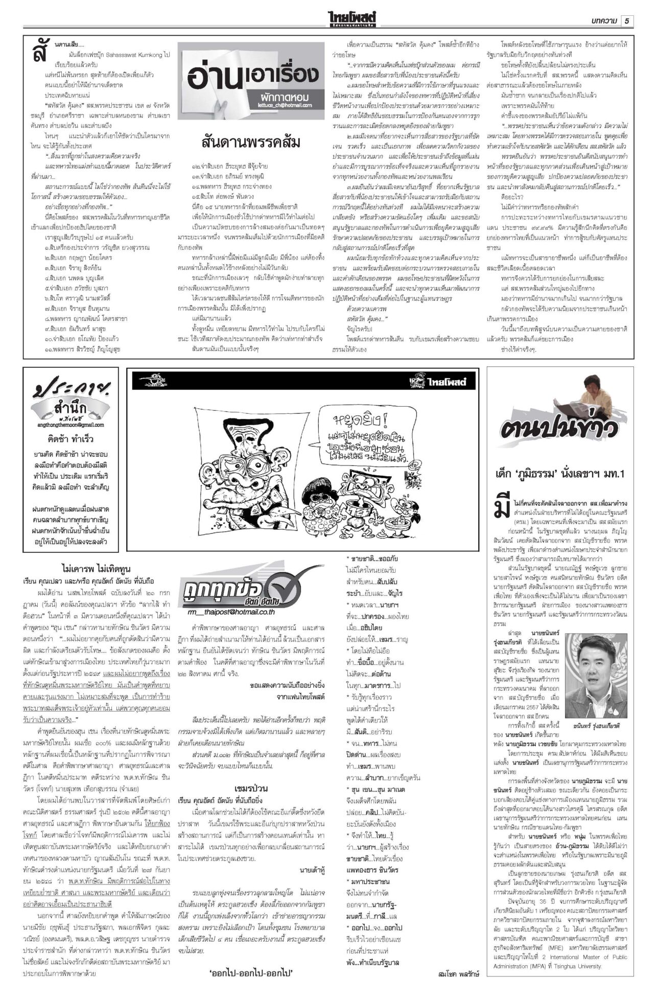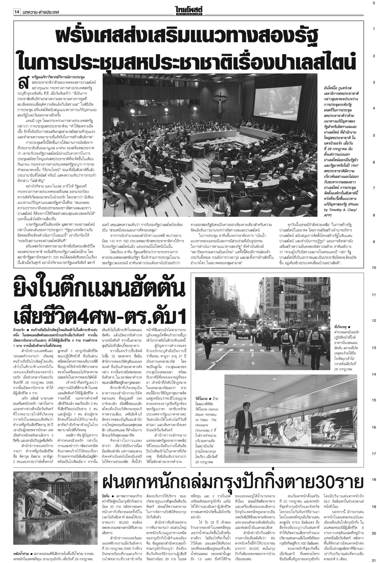 ฉบับวันที่ 30 กรกฎาคม 2568 30 กรกฎาคม 2568 เวลา 0:01 น. หนังสือพิมพ์ ฉบับวันที่ 30 กรกฎาคม 2568ข่าวหน้าหนึ่ง7ข้อตกลงหย่าศึก แม่ทัพ2ฝ่ายเห็นพ้อง/ไทยประท้วงเขมรละเมิดยิงถึงเช้าสันดานเขมร “ฮุน เซน” โพสต์เชลียร์ทรัมป์ออกนอกหน้า แต่คล้อยหลังทหารกัมพูชาละเมิดข้อตกลงยิงถล่มไทยหลายจุด เพิ่มงบฉุกเฉินจ.ชายแดน100ล.“พิชัย” เร่งเข็นมาตรการช่วยเหลือประชาชน-ผู้ประกอบการที่ได้รับผลกระทบจากเหตุการณ์สู้รบชายแดนไทย-กัมพูชา สภาสูงถกลับชงรัฐบาล ปชน.โร่ตบปากสส.ถ่อย“วุฒิสภา” ถกญัตติลับ เยียวยาประชาชนได้รับความเดือดร้อนสู้รบไทย-กัมพูชา กกต.ห่วงปชช. เลื่อนเลือกตั้ง ซ่อมศรีสะเกษกกต.มีมติเลื่อนการเลือกตั้งซ่อม สส.เขต 5 จ.ศรีสะเกษ วันที่ 10 ส.ค. คลังชี้ทุบศก.หมื่นล้าน หั่นภาษีทรัมป์ทัน1ส.ค.“พิชัย” ประเมินเหตุขัดแย้งชายแดนไทย-กัมพูชากระทบเศรษฐกิจหมื่นล้านบาท Tagsรายวันหนังสือพิมพ์ ข่าวที่เกี่ยวข้อง ฉบับวันที่ 14 ธันวาคม 2568 ฉบับวันที่ 14 ธันวาคม 2568 ฉบับวันที่ 13 ธันวาคม 2568 ฉบับวันที่ 12 ธันวาคม 2568 ฉบับวันที่ 11 ธันวาคม 2568 ฉบับวันที่ 10 ธันวาคม 2568 ฉบับวันที่ 9 ธันวาคม 2568 NEWS UPDATE 7:41 น. เคล็ดลับความสำเร็จของ ‘ลีโอนาร์โด ดิคาปริโอ’ ในฮอลลีวูด 7:34 น. ทภ.2 เผยแนวรบยังตึงเครียด ‘ศึกตาควาย’ ยังไม่จบ 7:25 น. 8 จังหวัดภาคใต้รับมือฝนตกหนักด้านไทยตอนบนอากาศเย็น 7:09 น. 'สว.ก๊อง' เปิดตัวว่าที่ผู้สมัครสส.เพื่อไทย 10 เขตเชียงใหม่ 6:31 น. รัฐบาลทหารเมียนมาปฏิเสธโจมตีโรงพยาบาลยะไข่เพื่อสังหารพลเรือน