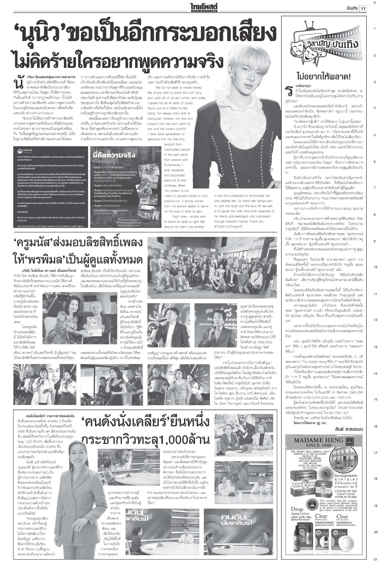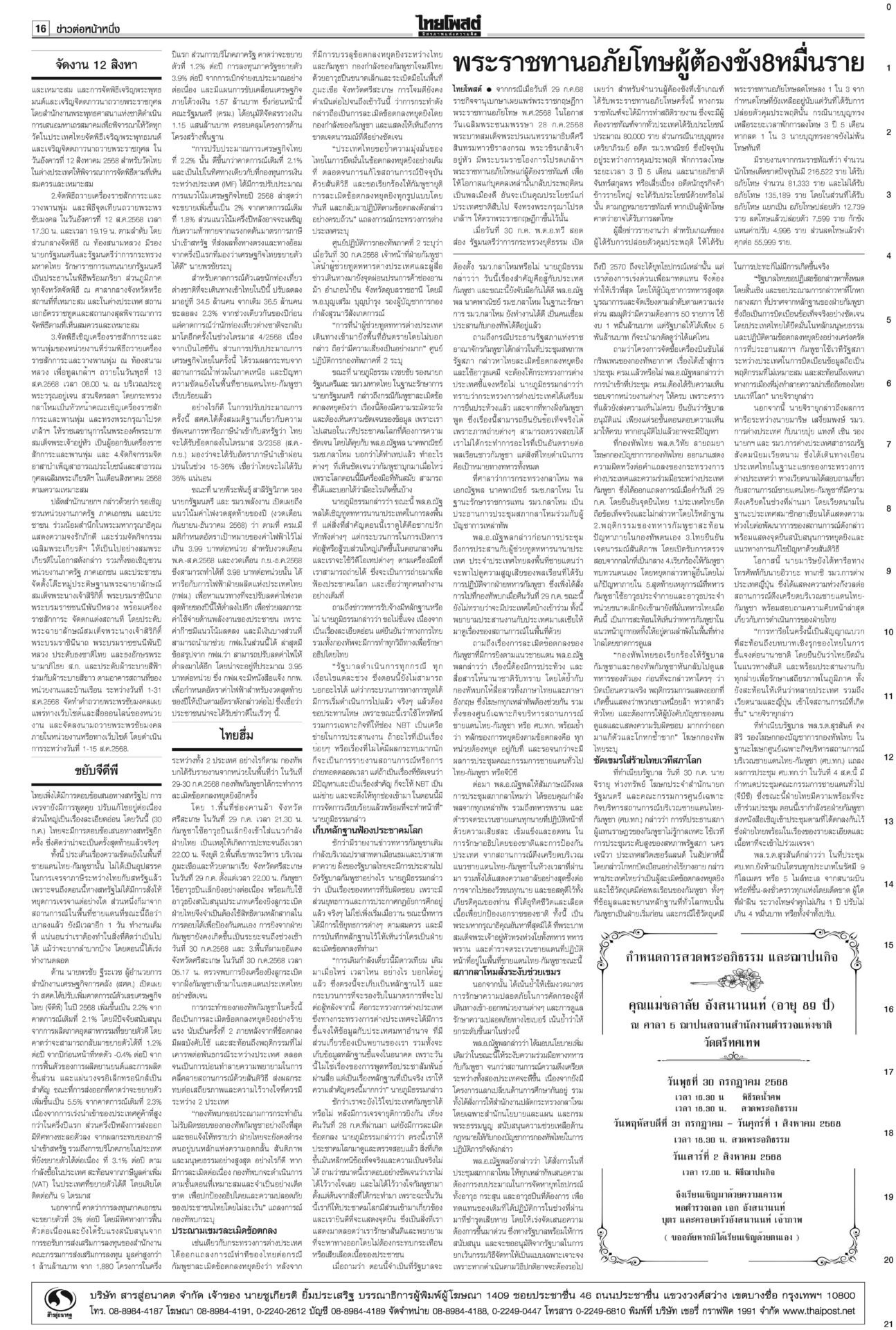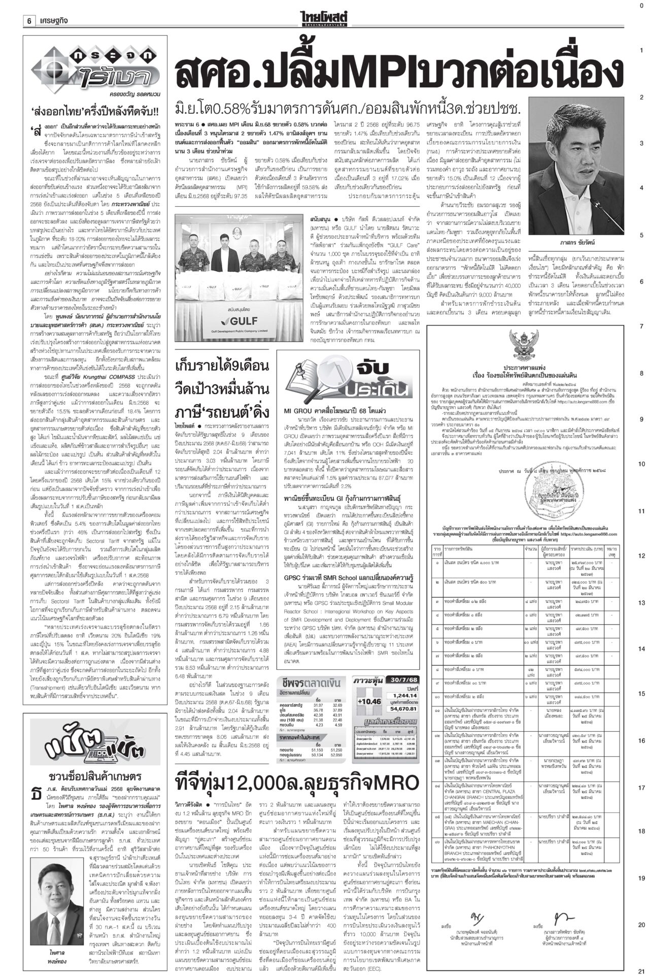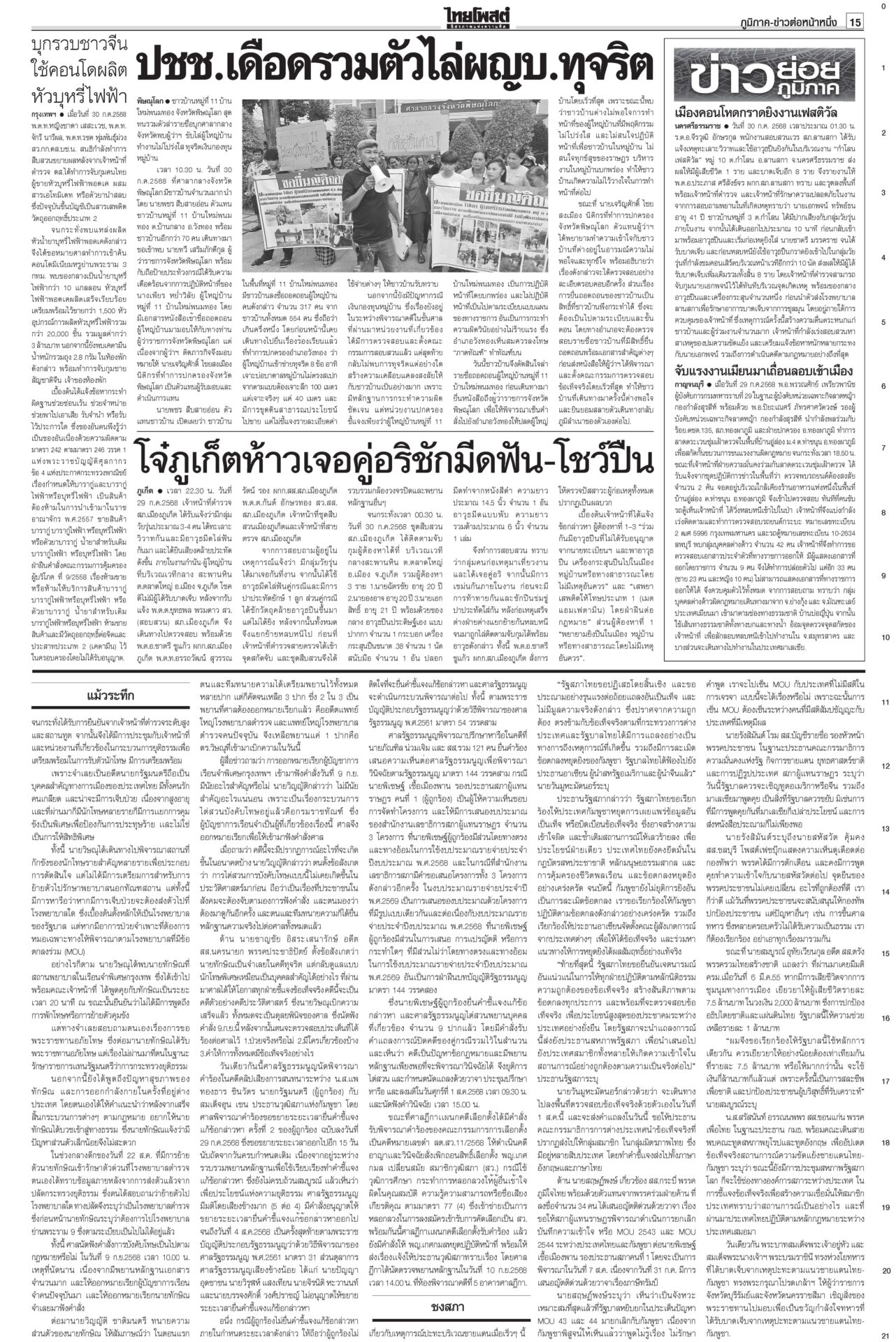 หนังสือพิมพ์ ฉบับวันที่ 31 กรกฎาคม 2568ข่าวหน้าหนึ่งไทยฮึ่มตัดหางเขมร เบรกช่วยทางทหารสั่งเก็บหลักฐานฟ้องโลกไม่หยุดยิง“กต.-กองทัพบก” ออกแถลงการณ์ประณาม “กัมพูชา” แม้วระทึก9ก.ย.ปิดฉากชั้น14ระทึก! คดีชั้น 14 ศาลฎีกาฯ นัดฟังคำสั่ง 9 กันยายน ออกหมายเรียก “ทักษิณ” ให้ไปศาลด้วย “วิษณุ” ขึ้นเบิกความ ชงสภาเลิกMOU43-44 แจง‘IPU’กัมพูชาละเมิดสภาไทยเปิดแนวรบเขมร “วันนอร์” ประณามประธานสภากัมพูชาบิดเบือนข้อมูลข้อเท็จจริง จัดงาน12สิงหา เฉลิมพระเกียรติ ‘พระพันปีหลวง’รัฐบาลเตรียมจัดงานเฉลิมพระเกียรติ สมเด็จพระบรมราชชนนีพันปีหลวง 12 ส.ค. ขยับจีดีพีโต2.2% รับครึ่งปีหลังแผ่ว ข่าวดีค่าไฟลดอีก“พิชัย” รับเศรษฐกิจไทยครึ่งปีหลังแผ่ว รัฐเตรียมงบประมาณเยียวยาเต็มสูบ