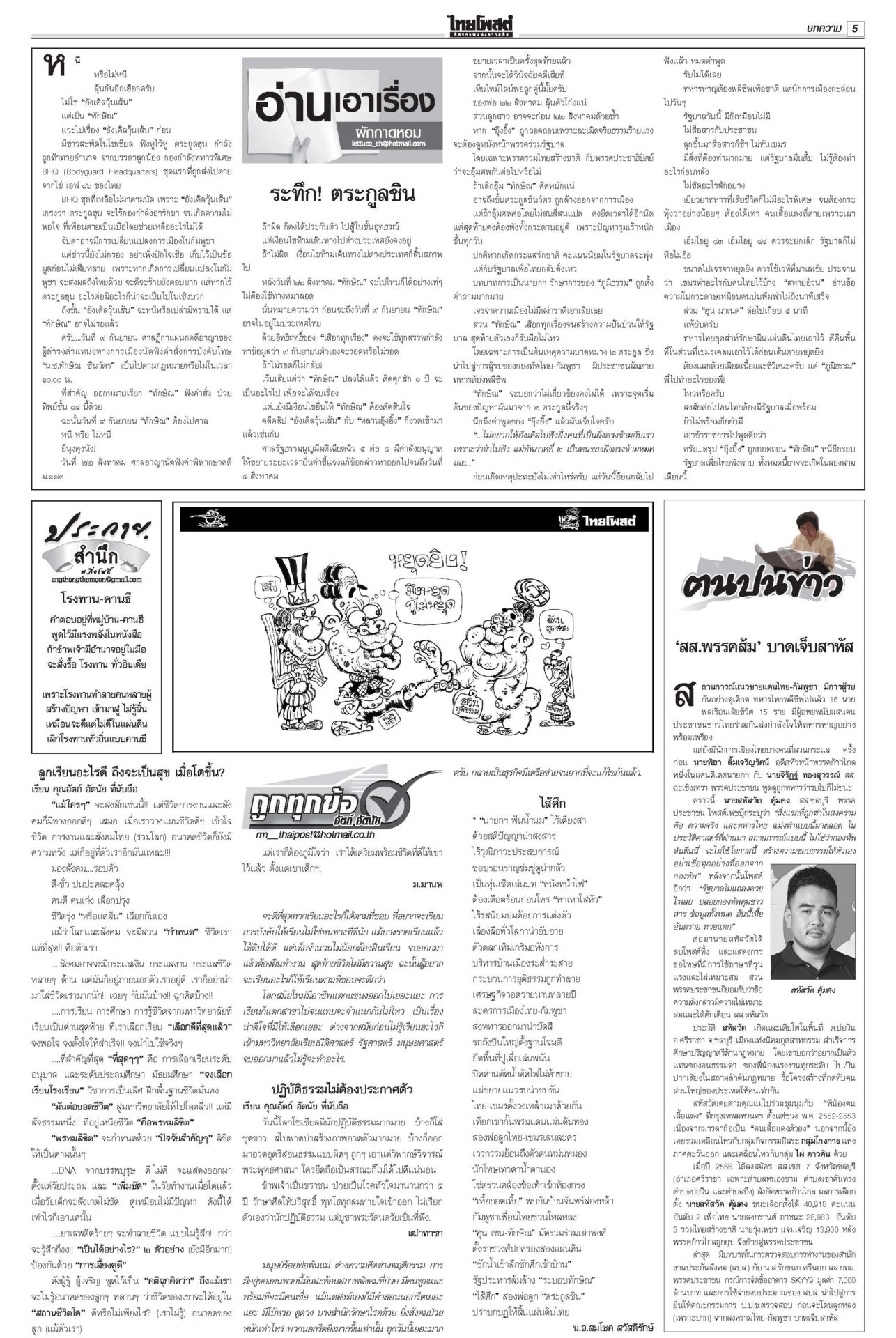 ฉบับวันที่ 31 กรกฎาคม 2568 31 กรกฎาคม 2568 เวลา 0:01 น. หนังสือพิมพ์ ฉบับวันที่ 31 กรกฎาคม 2568ข่าวหน้าหนึ่งไทยฮึ่มตัดหางเขมร เบรกช่วยทางทหารสั่งเก็บหลักฐานฟ้องโลกไม่หยุดยิง“กต.-กองทัพบก” ออกแถลงการณ์ประณาม “กัมพูชา” แม้วระทึก9ก.ย.ปิดฉากชั้น14ระทึก! คดีชั้น 14 ศาลฎีกาฯ นัดฟังคำสั่ง 9 กันยายน ออกหมายเรียก “ทักษิณ” ให้ไปศาลด้วย “วิษณุ” ขึ้นเบิกความ ชงสภาเลิกMOU43-44 แจง‘IPU’กัมพูชาละเมิดสภาไทยเปิดแนวรบเขมร “วันนอร์” ประณามประธานสภากัมพูชาบิดเบือนข้อมูลข้อเท็จจริง จัดงาน12สิงหา เฉลิมพระเกียรติ ‘พระพันปีหลวง’รัฐบาลเตรียมจัดงานเฉลิมพระเกียรติ สมเด็จพระบรมราชชนนีพันปีหลวง 12 ส.ค. ขยับจีดีพีโต2.2% รับครึ่งปีหลังแผ่ว ข่าวดีค่าไฟลดอีก“พิชัย” รับเศรษฐกิจไทยครึ่งปีหลังแผ่ว รัฐเตรียมงบประมาณเยียวยาเต็มสูบ Tagsรายวันหนังสือพิมพ์ ข่าวที่เกี่ยวข้อง ฉบับวันที่ 14 ธันวาคม 2568 ฉบับวันที่ 14 ธันวาคม 2568 ฉบับวันที่ 13 ธันวาคม 2568 ฉบับวันที่ 12 ธันวาคม 2568 ฉบับวันที่ 11 ธันวาคม 2568 ฉบับวันที่ 10 ธันวาคม 2568 ฉบับวันที่ 9 ธันวาคม 2568 NEWS UPDATE 7:41 น. เคล็ดลับความสำเร็จของ ‘ลีโอนาร์โด ดิคาปริโอ’ ในฮอลลีวูด 7:34 น. ทภ.2 เผยแนวรบยังตึงเครียด ‘ศึกตาควาย’ ยังไม่จบ 7:25 น. 8 จังหวัดภาคใต้รับมือฝนตกหนักด้านไทยตอนบนอากาศเย็น 7:09 น. 'สว.ก๊อง' เปิดตัวว่าที่ผู้สมัครสส.เพื่อไทย 10 เขตเชียงใหม่ 6:31 น. รัฐบาลทหารเมียนมาปฏิเสธโจมตีโรงพยาบาลยะไข่เพื่อสังหารพลเรือน