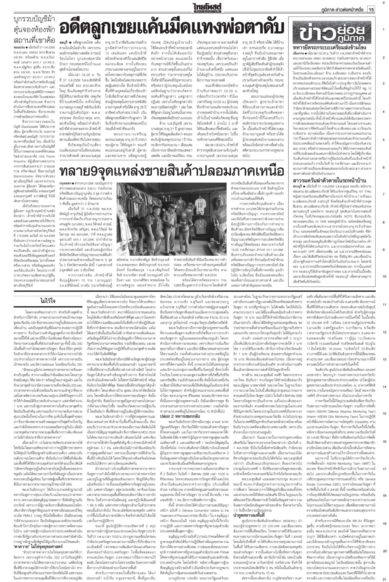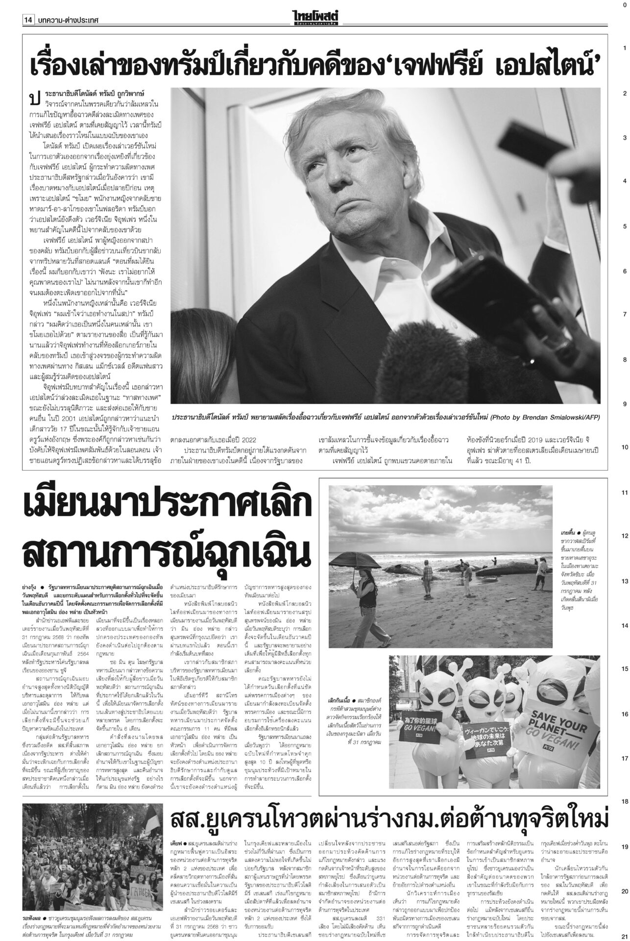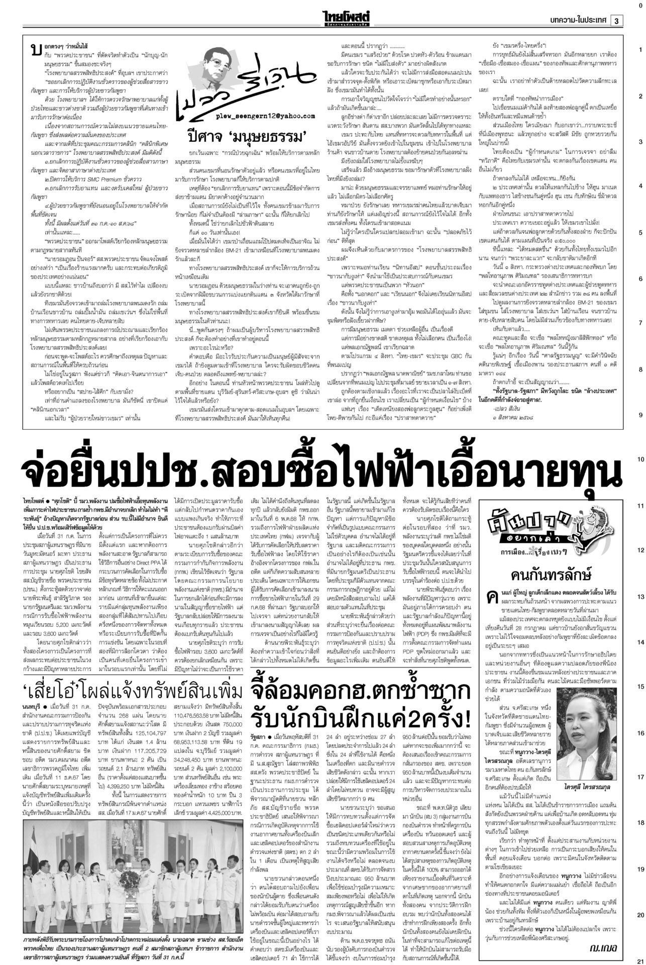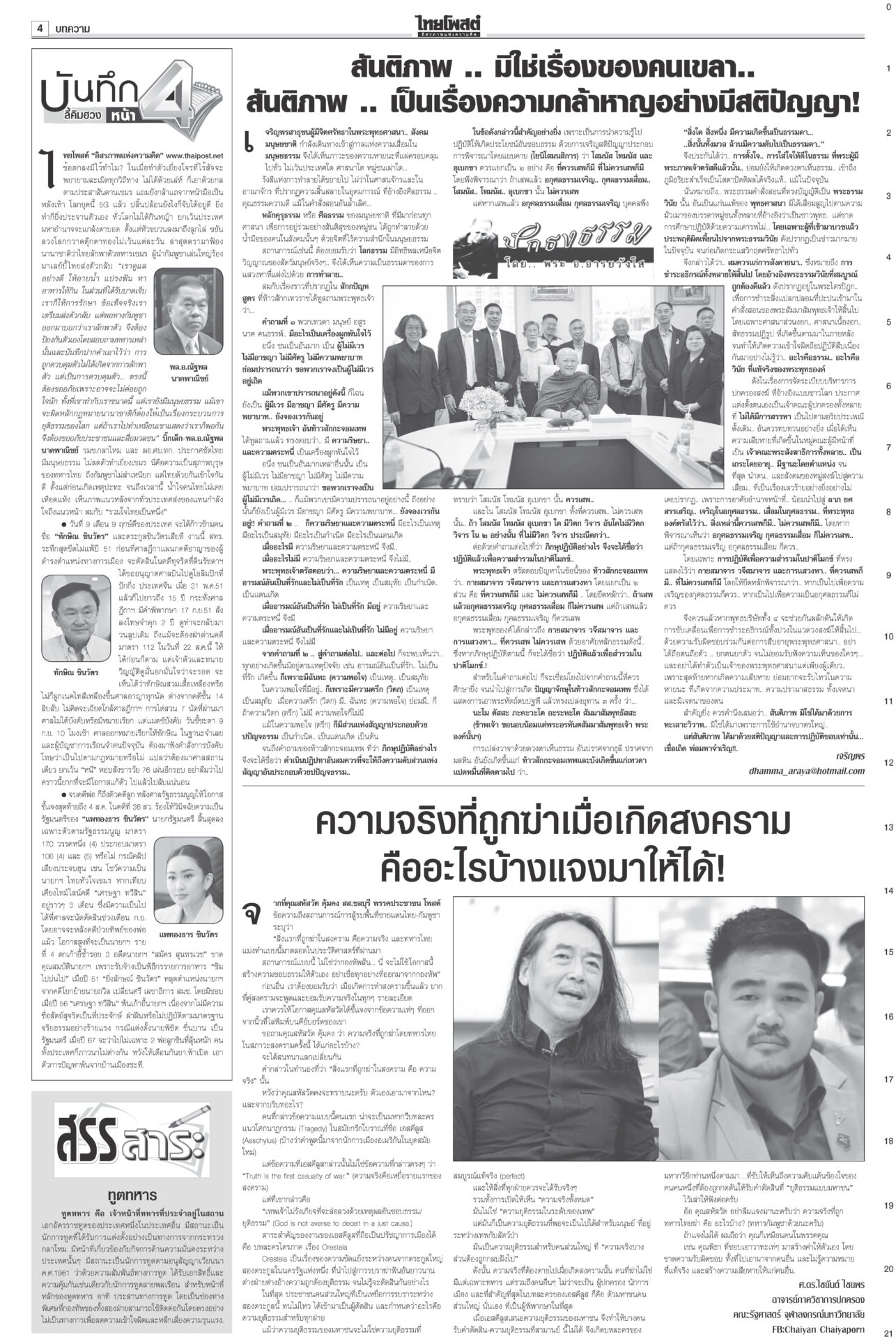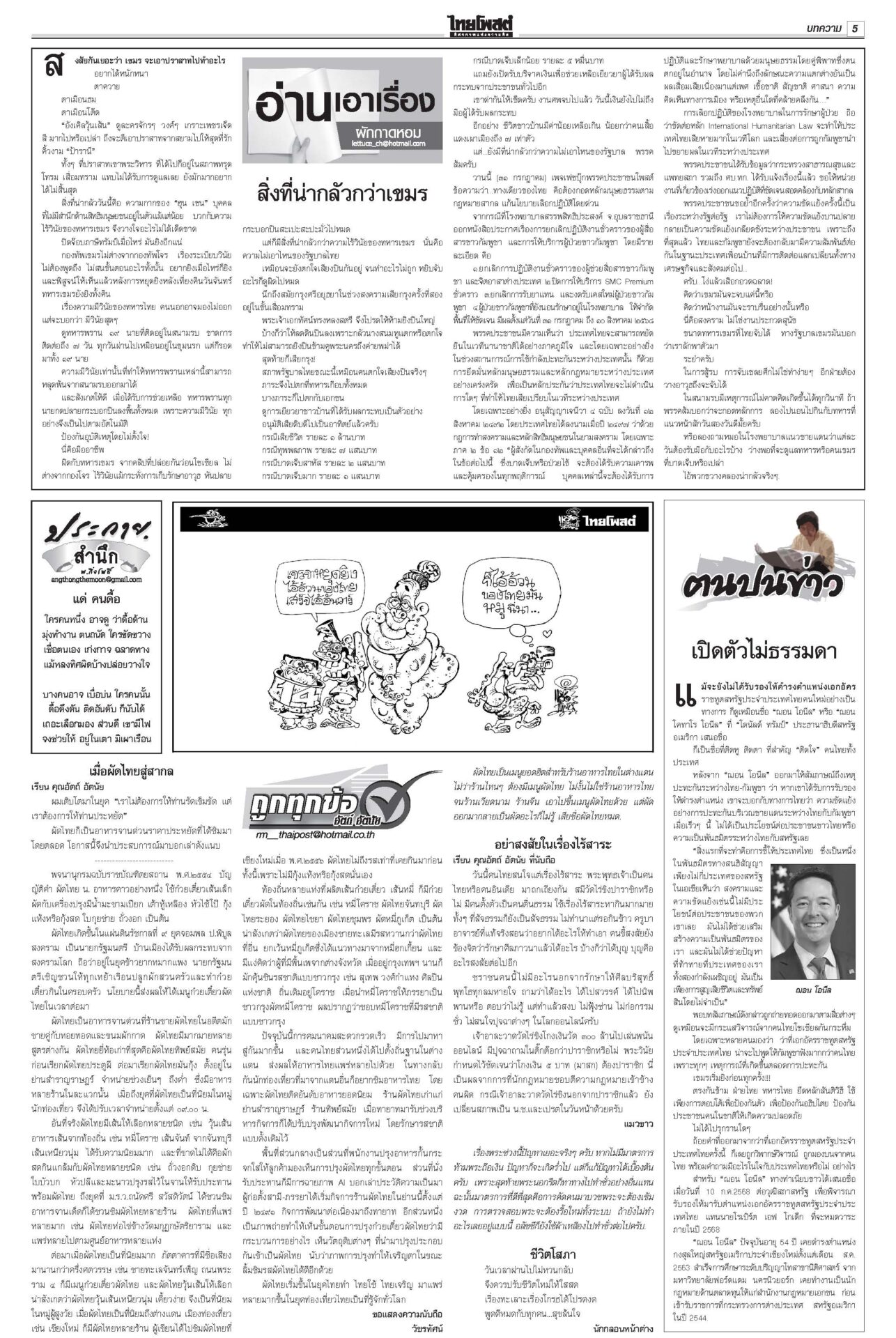 ฉบับวันที่ 1 สิงหาคม 2568 1 สิงหาคม 2568 เวลา 0:01 น. หนังสือพิมพ์ ฉบับวันที่ 1 สิงหาคม 2568ข่าวหน้าหนึ่งไม่ไว้ใจสันดานเขมร กห.ขอถกGBCที่มาเลย์-ส่งกลับ2เชลย/ตรึงกำลัง‘ตาควาย’ทบ.แจงทหารไทยยึดปราสาทตาควายไม่ 100% ไม่ใช่ตัวชี้วัดแพ้ชนะ พรรคส้มตำหนิรพ. งดรับผู้ป่วยกัมพูชาพรรคประชาชนโชว์หล่อ พูดหรูอีกแล้ว! ยกอนุสัญญาเจนีวาว่าด้วยหลักสิทธิมนุษยชนในยามสงคราม มท.1คาดโทษเยียวยาล่าช้ากรมสมเด็จพระเทพรัตนราชสุดาฯ พระราชทานพระราชทรัพย์ส่วนพระองค์ ฟุ้งมีข่าวดีเจรจาภาษีทรัมป์“ภูมิธรรม” มั่นใจผลเจรจาภาษีสหรัฐออกมาดี หลัง “ทรัมป์” พอใจชื่นชมไทย ‘พท.’กัดฟันลุ้นคดี‘แม้ว’ ฉลาดบี้รบ.ประชุมสภา“ภูมิธรรม” ลั่น “รัฐบาล-เพื่อไทย” ไม่เสียขวัญหลังศาลฎีกาฯ จ่อตัดสินคดีชั้น 14 Tagsรายวันหนังสือพิมพ์ ข่าวที่เกี่ยวข้อง ฉบับวันที่ 14 ธันวาคม 2568 ฉบับวันที่ 14 ธันวาคม 2568 ฉบับวันที่ 13 ธันวาคม 2568 ฉบับวันที่ 12 ธันวาคม 2568 ฉบับวันที่ 11 ธันวาคม 2568 ฉบับวันที่ 10 ธันวาคม 2568 ฉบับวันที่ 9 ธันวาคม 2568 NEWS UPDATE 7:41 น. เคล็ดลับความสำเร็จของ ‘ลีโอนาร์โด ดิคาปริโอ’ ในฮอลลีวูด 7:34 น. ทภ.2 เผยแนวรบยังตึงเครียด ‘ศึกตาควาย’ ยังไม่จบ 7:25 น. 8 จังหวัดภาคใต้รับมือฝนตกหนักด้านไทยตอนบนอากาศเย็น 7:09 น. 'สว.ก๊อง' เปิดตัวว่าที่ผู้สมัครสส.เพื่อไทย 10 เขตเชียงใหม่ 6:31 น. รัฐบาลทหารเมียนมาปฏิเสธโจมตีโรงพยาบาลยะไข่เพื่อสังหารพลเรือน