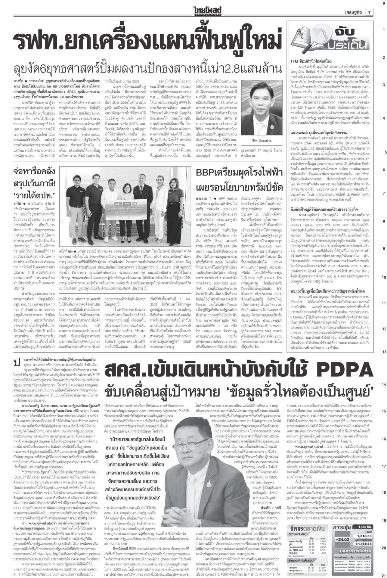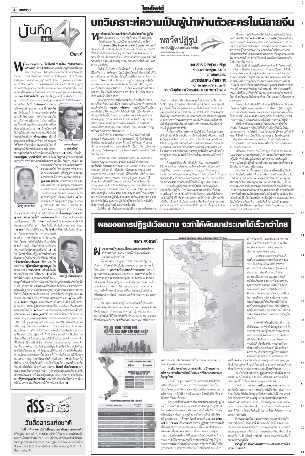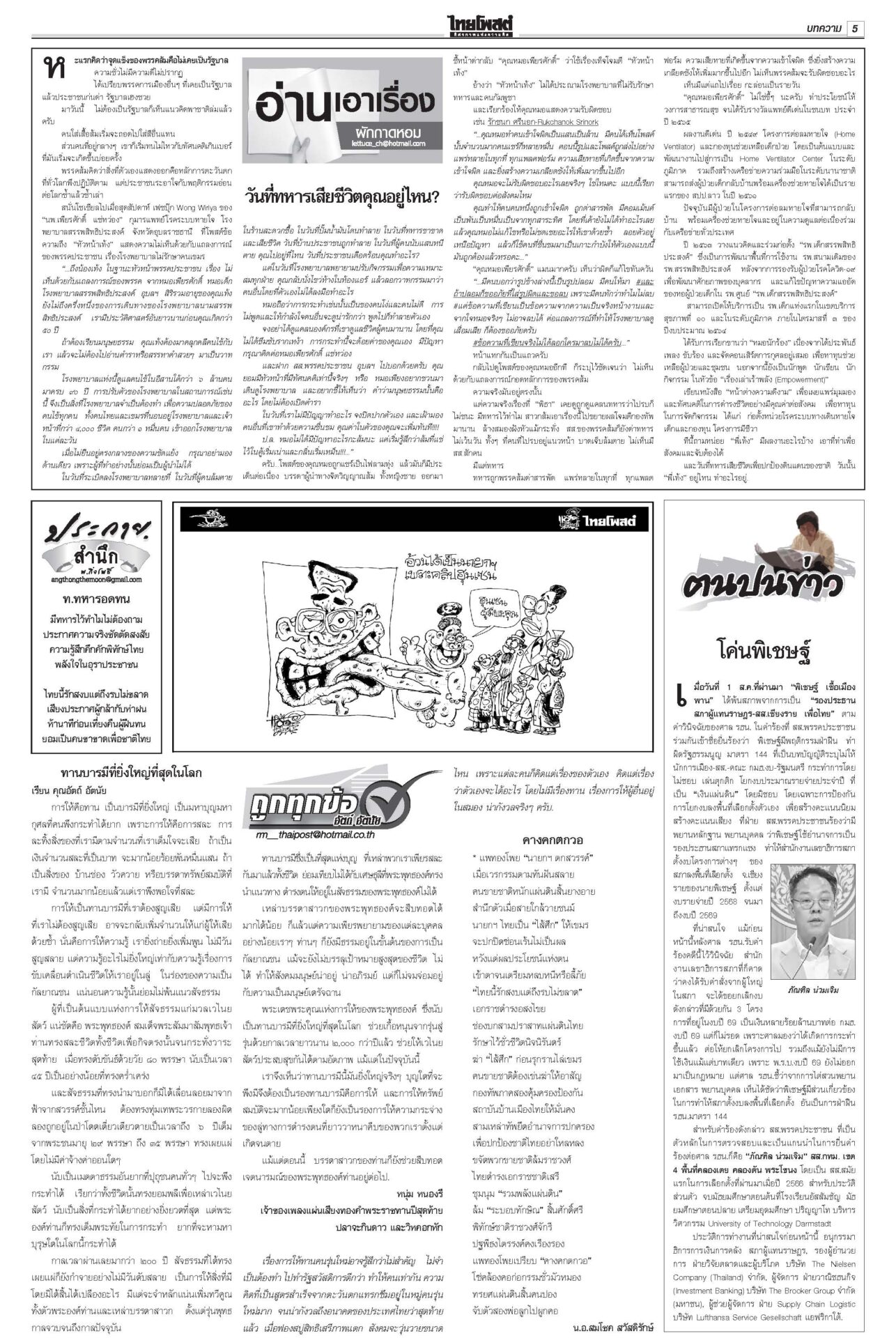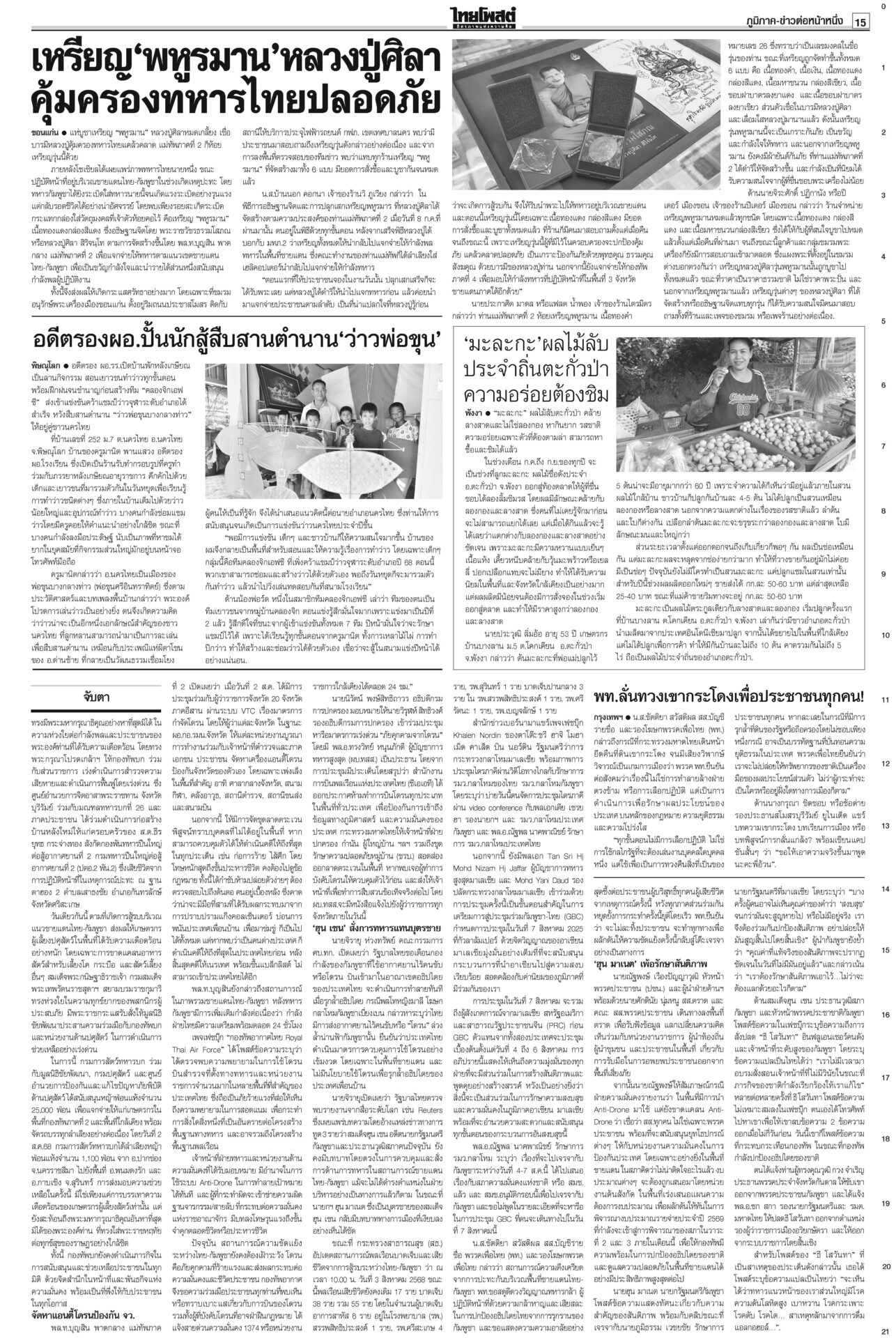 ฉบับวันที่ 4 สิงหาคม 2568 4 สิงหาคม 2568 เวลา 0:01 น. หนังสือพิมพ์ ฉบับวันที่ 4 สิงหาคม 2568ข่าวหน้าหนึ่งจับตาประเดิมจีบีซี! ‘บิ๊กเล็ก’อุบเงียบกรอบเจรจา/20จว.อีสานเกาะติด‘โดรน’“ในหลวง-พระราชินี” พระราชทานดอกไม้และตะกร้าสิ่งของเยี่ยมกำลังพลที่ได้รับบาดเจ็บจากสถานการณ์ชายแดนไทย-กัมพูชา คะแนนนิยมอุ๊งอิ๊งดิ่งเหวที่สุด“เพื่อไทย” ปรามม็อบเคลื่อนไหวรับผิดชอบสังคม อย่าซ้ำเติมสถานการณ์ โวภาษี19%ทำค่าไฟถูก! เตือนสินค้าจีนจ่อทะลัก“เพื่อไทย” ตีปี๊บผลงานปิดดีลภาษีสหรัฐ 19% ชี้ยังแข่งขันได้ในเวทีโลก Tagsรายวันหนังสือพิมพ์ ข่าวที่เกี่ยวข้อง ฉบับวันที่ 9 ธันวาคม 2568 ฉบับวันที่ 8 ธันวาคม 2568 ฉบับวันที่ 7 ธันวาคม 2568 ฉบับวันที่ 6 ธันวาคม 2568 ฉบับวันที่ 5 ธันวาคม 2568 ฉบับวันที่ 4 ธันวาคม 2568 NEWS UPDATE 0:01 น. ข้ามเส้นแดง“เผด็จศึกฮุน เซน” “เจ็บต้องจบ”ก่อนถูกห้ามมวย 23:52 น. แผ่นดินไหวขนาด 7.6 นอกชายฝั่งญี่ปุ่น เตือนภัยสึนามิ 21:00 น. ก.พ.ค.ตร. มีมติเอกฉันท์ ยืนไล่ออก ‘บิ๊กโจ๊ก’ กับพวก 21:00 น. 'วิปรัฐบาล' ไฟเขียวประชุมร่วมรัฐสภา ถกแก้ รธน. เพิ่มอีก 1 วัน ให้จบวาระ 2 20:36 น. ในหลวง พระราชินี ทรงบำเพ็ญพระราชกุศลอุทิศถวาย ร.6 และ ร.7