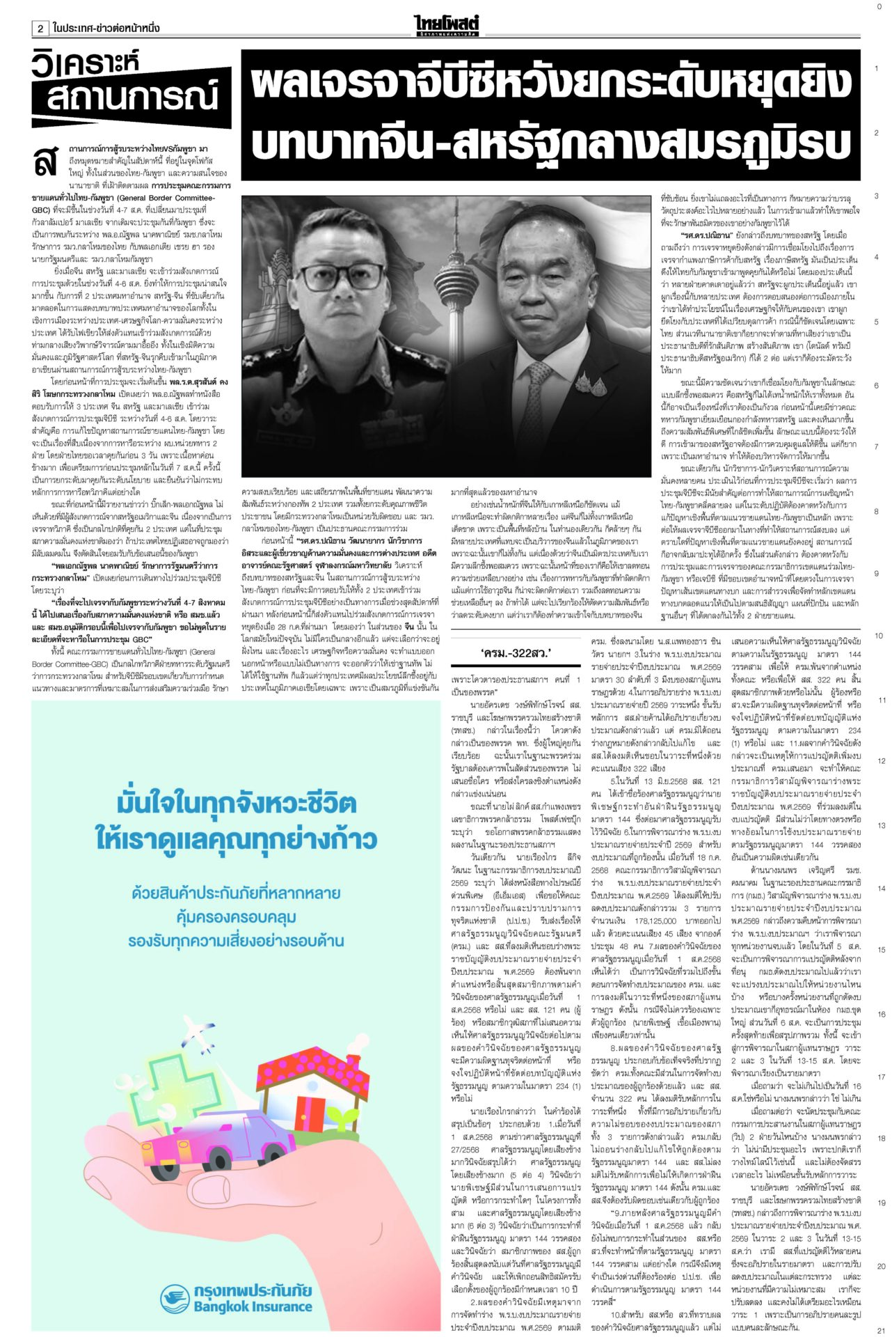 จับตาประเดิมจีบีซี! ‘บิ๊กเล็ก’อุบเงียบกรอบเจรจา/20จว.อีสานเกาะติด‘โดรน’“ในหลวง-พระราชินี” พระราชทานดอกไม้และตะกร้าสิ่งของเยี่ยมกำลังพลที่ได้รับบาดเจ็บจากสถานการณ์ชายแดนไทย-กัมพูชา