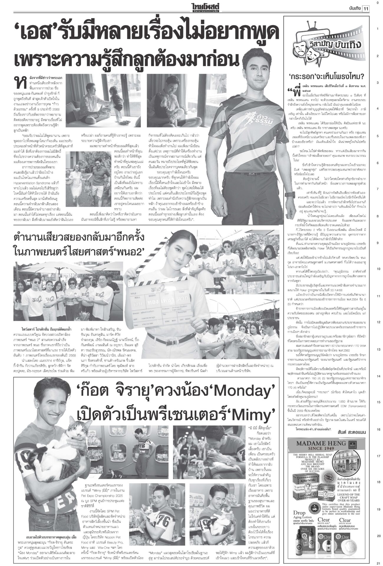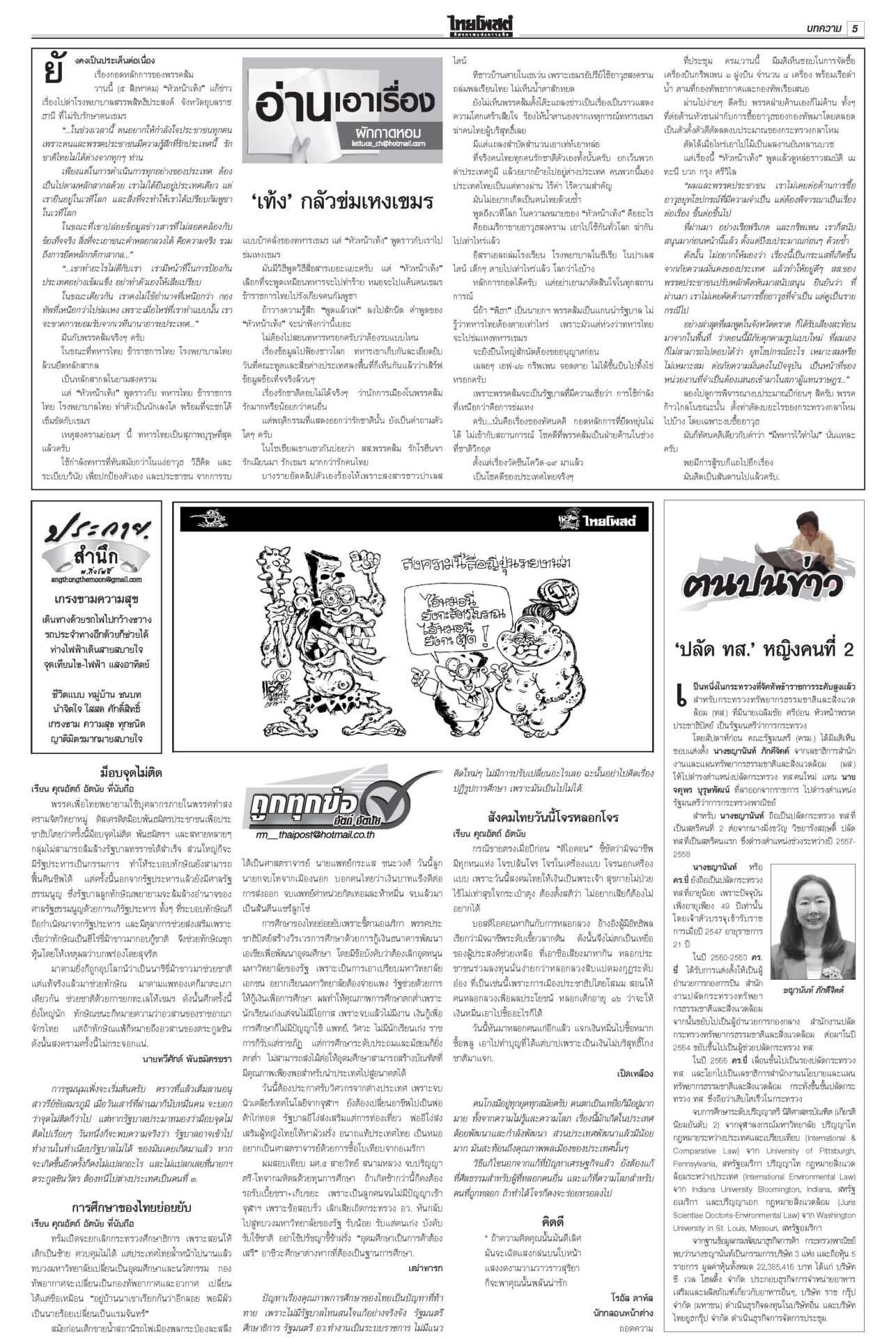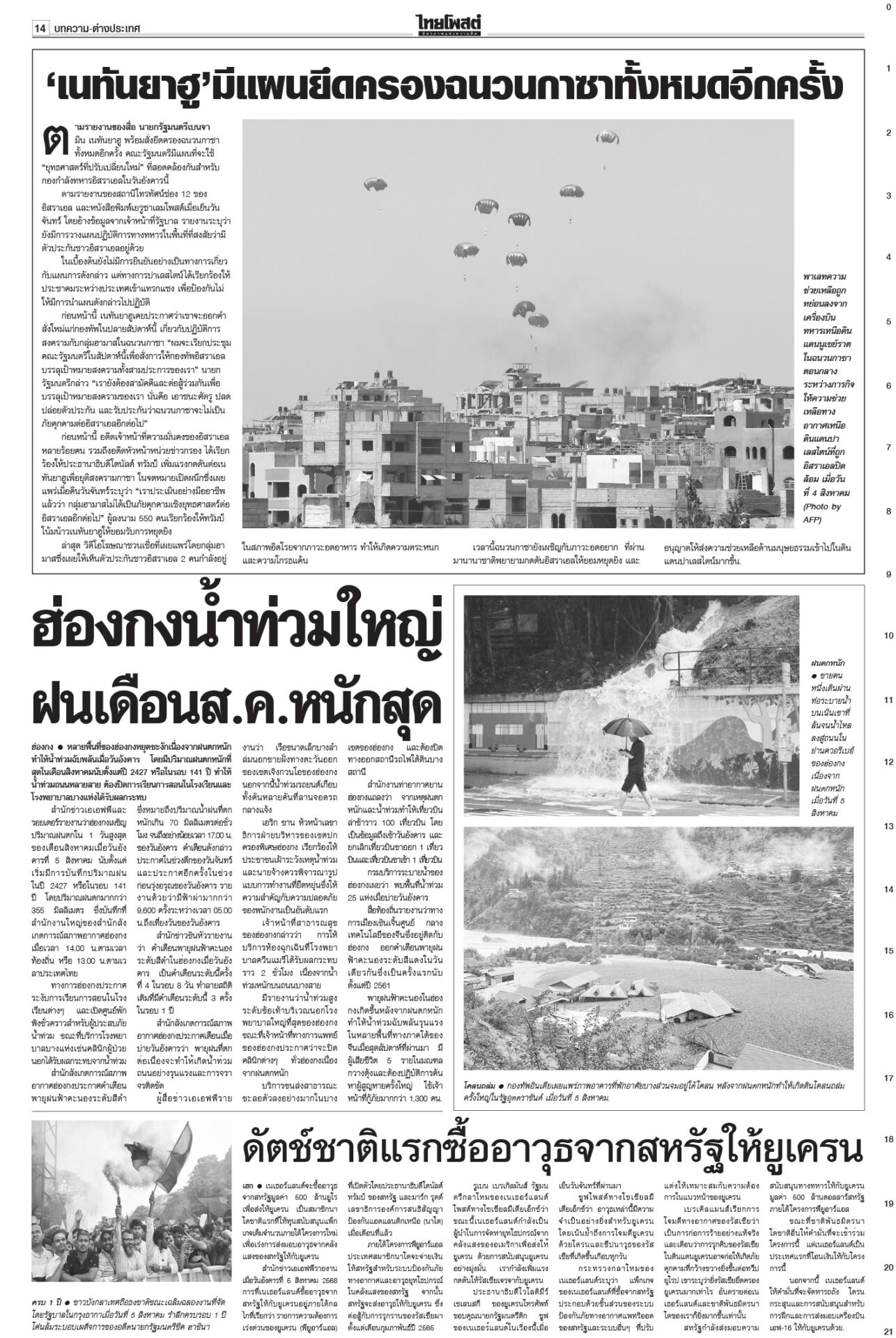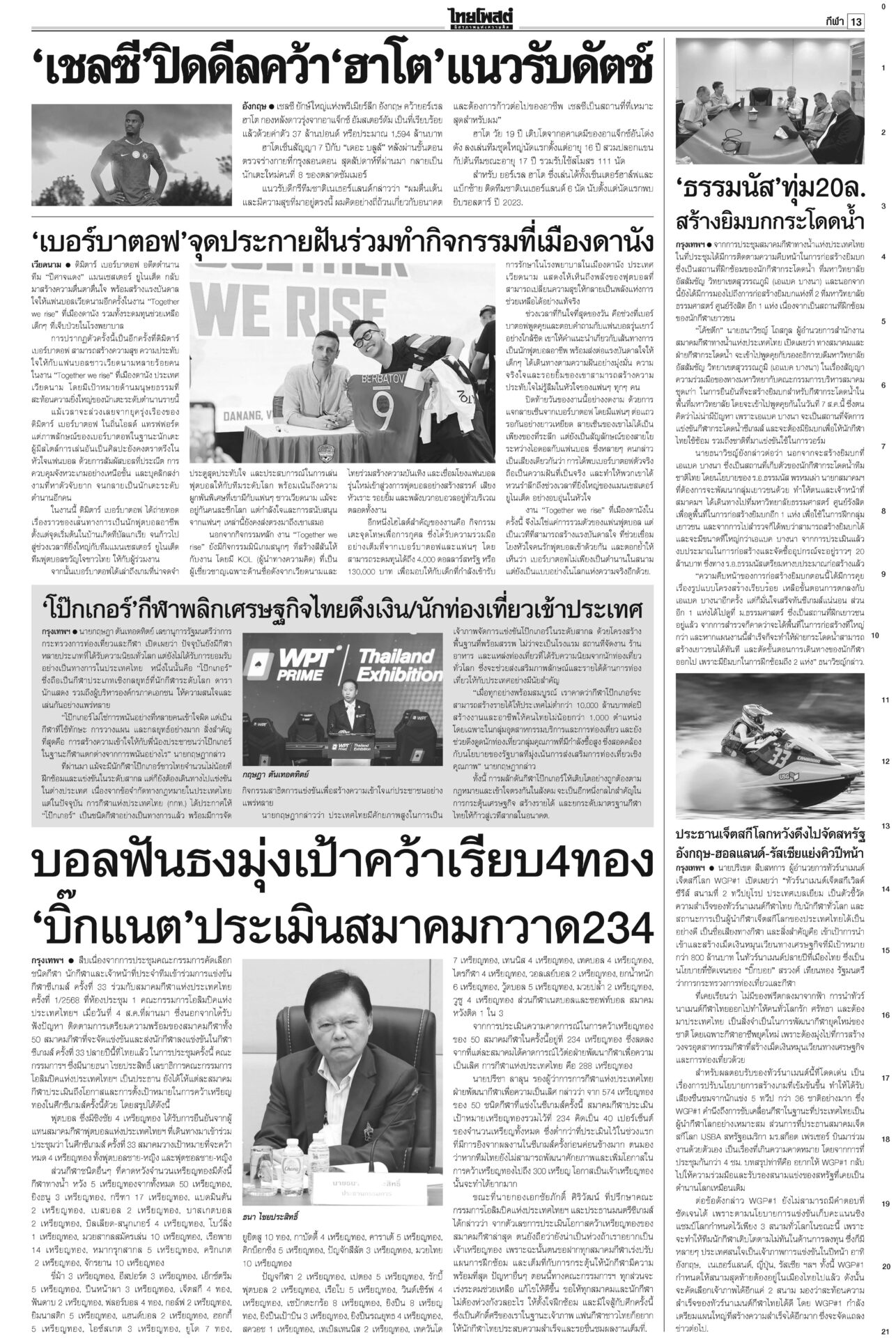 หนังสือพิมพ์ ฉบับวันที่ 6 สิงหาคม 2568ข่าวหน้าหนึ่งฟ้องเขมรฆ่าคนไทย ครม.สั่งฟันอาญา-แพ่ง/ไฟเขียวกริพเพน-เรือดำน้ำเสริมทัพ“ครม.” ไฟเขียวซื้อเครื่องบินขับไล่กริพเพน 1 ฝูงบิน 4 เครื่อง พร้อมเรือดำน้ำ ไชยารองปธ.สภา พท.โร่เคลียร์‘กธ.’“วันนอร์” ชี้สมาชิกทุกคนมีสิทธิ์เสนอชื่อคนชิงเก้าอี้รอง ปธ.สภาฯ คนที่ 1 ตร.ล้างลานวัด จับพระนอกรีต ไล่สึก‘154รูป’ตำรวจเปิดปฏิบัติการ “ทำนุบำรุงพระพุทธศาสนา” ลุยค้น 181 เป้าหมาย ขจรเกียรติลุยเขากระโดง ขยี้น้ำเงิน!เด้งปลัดจับกังมท.ดัน “ขจรเกียรติ” ผวจ.ฉะเชิงเทรา รับเผือกร้อนนั่งอธิบดีกรมที่ดิน เคาะ1.85หมื่นล.สู้ภาษีทรัมป์“ภูมิธรรม” ฟุ้งภาษีสหรัฐ 19% ทำไทยมีศักยภาพแข่งขันในเวทีโลก