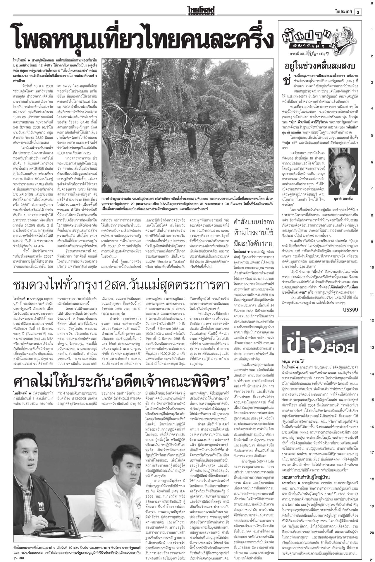 ฉบับวันที่ 11 สิงหาคม 2568 11 สิงหาคม 2568 เวลา 0:01 น. หนังสือพิมพ์ ฉบับวันที่ 11 สิงหาคม 2568ข่าวหน้าหนึ่งกัมพูชาสังเวย3พัน มทภ.2เผยจ่อปิดตาเมือน ลั่นทวงปราสาทตาควาย“วุ้นเส้น” จิบกาแฟ STARBUCKS แบรนด์ดังอเมริกา หวาน 0% เพื่อไทยแบะท่า ยันไม่รื้อ-ทุบทิ้ง สนามช้าง-บ้าน“เพื่อไทย” โต้กลั่นแกล้งการเมือง อ้างสางปัญหาเขากระโดงหมักหมม 20 ปี ผลพวง‘ปะทะ’ กมธ.เทใจหนุน งบจัดหาอาวุธ!“ดนุพร” ชวนประชาชนติดตามถกงบ 2569 วาระ 2-3 ในวันที่ 13-15 ส.ค.นี้ พ่อลูกชินวัตรรอดยาก! คลิปเสียงลุง-ป่วยทิพย์โฆษกเพื่อไทยยันไม่มีการคุยเรื่อง “แพทองธาร” ชิงลาออกก่อนศาลตัดสิน Tagsรายวันหนังสือพิมพ์ ข่าวที่เกี่ยวข้อง ฉบับวันที่ 6 ธันวาคม 2568 ฉบับวันที่ 5 ธันวาคม 2568 ฉบับวันที่ 4 ธันวาคม 2568 ฉบับวันที่ 3 ธันวาคม 2568 ฉบับวันที่ 2 ธันวาคม 2568 ฉบับวันที่ 1 ธันวาคม 2568 NEWS UPDATE 19:07 น. ลมหนาวมาอีกระลอก! กรมอุตุฯ พยากรณ์อากาศ 7 วันข้างหน้า อุณหภูมิจะลดลง 2-4 องศา 19:05 น. ภัยพิบัติสแกมเมอร์ | ห้องข่าวไทยโพสต์สุดสัปดาห์ 18:49 น. 'GULF-AIS'บอลไทยเพื่อคนไทย ร่วมหนุน'เกษตรศาสตร์ FC' สู้ศึกT2ยกกีฬาคู่การศึกษา 18:34 น. 'LPGA'จัดโปรแอมฉลอง75ปี ระดมทุน2.5 ล้านเหรียญสหรัฐ ขับเคลื่อนพลังเด็กหญิง-สตรี 18:22 น. ดีเอสไอ เรียกสอบปากคำ ทนายดังเมืองปากน้ำ ตัวกลางประสานคดีผู้ต้องหาชาวจีนเพียบ