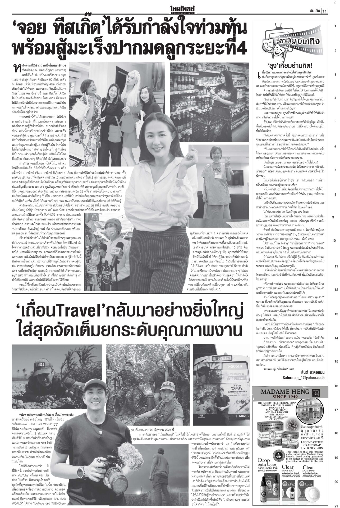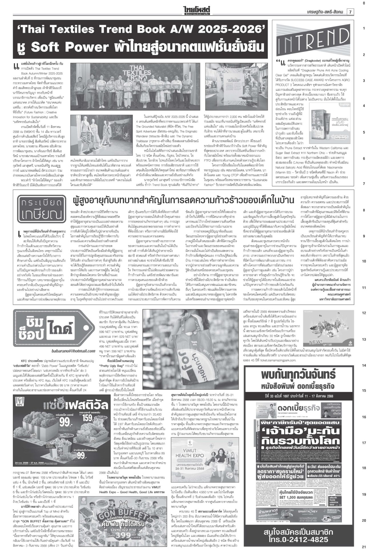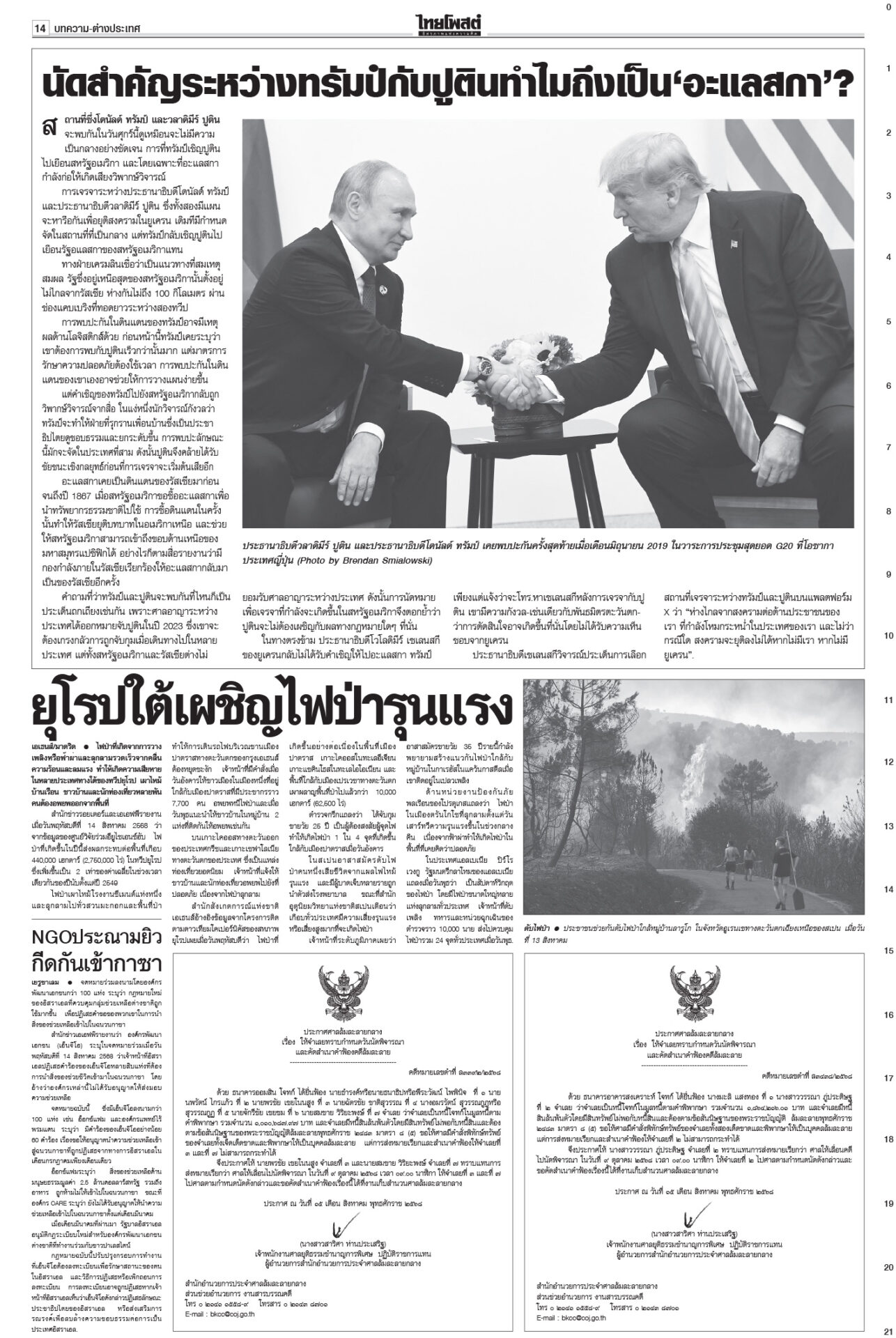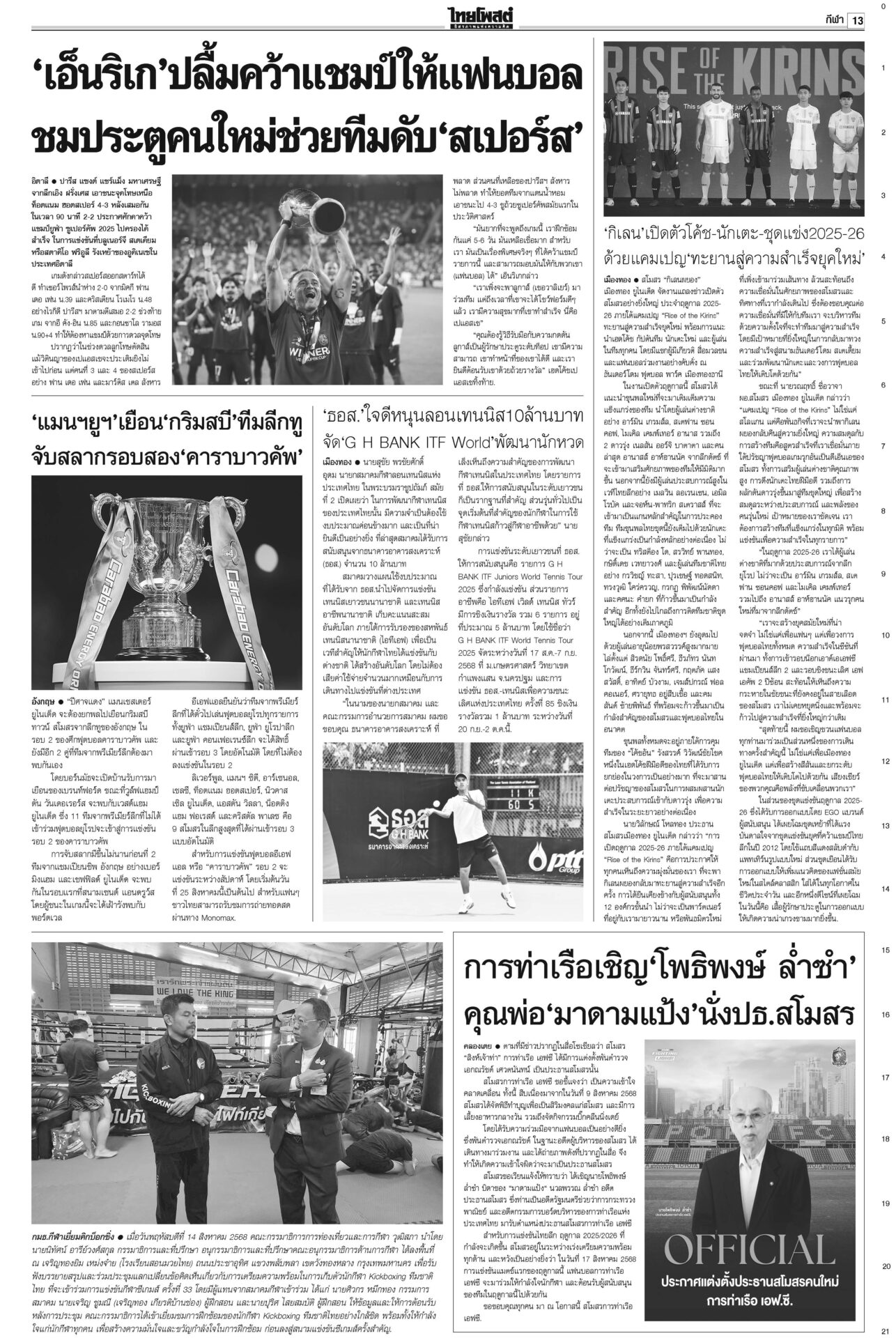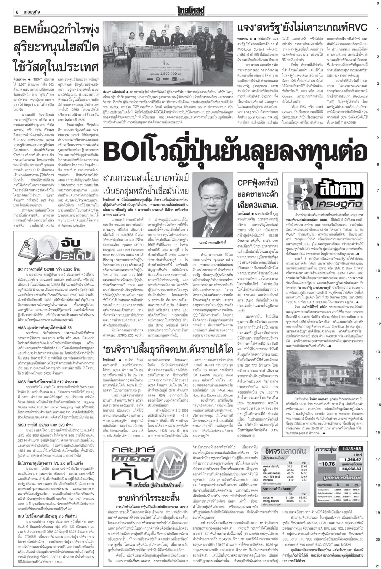 หนังสือพิมพ์ ฉบับวันที่ 15 สิงหาคม 2568ข่าวหน้าหนึ่ง‘ในหลวง’จอมทัพไทย ทรงห่วงใยศึก‘ไทย-กัมพูชา’ ‘มทภ.2’ถวายรายงานทุกวัน“ภูมิธรรม” รอ “สมช.” ประชุมประเมินยุบ “ศบ.ทก.” สัปดาห์หน้า ยันไร้ปัญหากับกองทัพ ชำแหละงบไม่ตอบโจทย์ แฉซื้อเสียงโหวต10กิโล!ถกงบ 69 วันที่ 2 “สส.ปชน.” ชำแหละงบ ก.เกษตรฯ ทำโครงการตลาดกลางที่ จ.พะเยาส่อผูกขาด ฉะ “ล้งแห่งชาติ” ‘อิ๊งค์’ดิ้นแจงคลิปเทคนิคเจรจา“อิ๊งค์” ยิ้มแย้มเข้าสภา บอก 21 ส.ค. นัดไต่สวนคดีคลิปเสียงตรงวันเกิดพอดี อ้าง‘เขากระโดง’เรื่องใหญ่ ชงDSIสอบโฉนด999แปลง“ภูมิธรรม” โต้ “ภูมิใจไทย” ยัน “ดีเอสไอ” เดินหน้าคดีบริษัท “รมว.อว.” แบงก์รัฐพาเหรด ลดดอกเบี้ยเงินกู้ เริ่มตั้งแต่15ส.ค.“แบงก์รัฐ” พาเหรดประกาศลดอัตราดอกเบี้ยเงินกู้ลง 0.25% ต่อปี