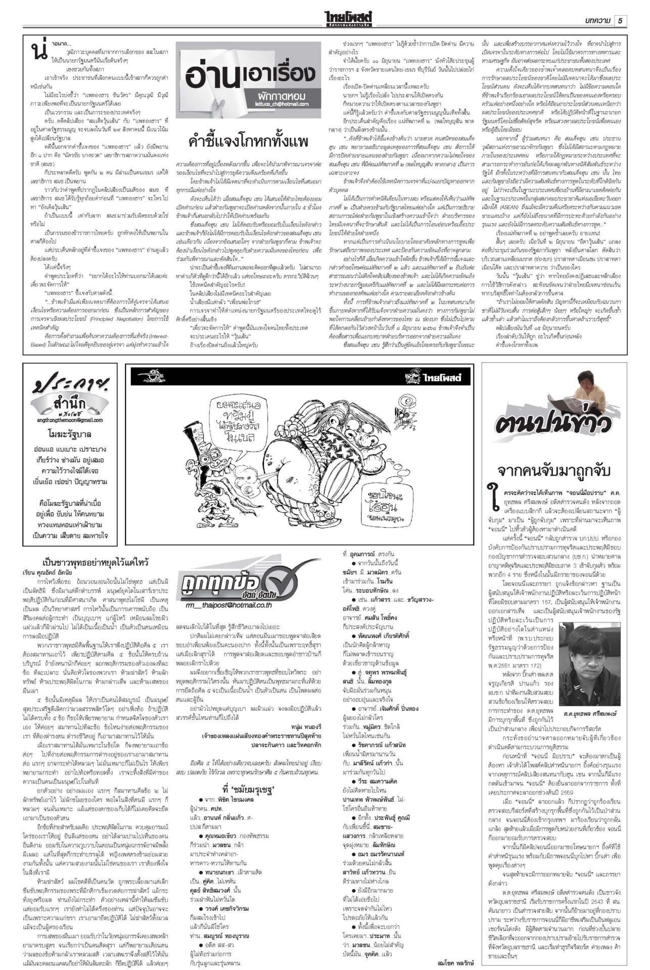 ฉบับวันที่ 15 สิงหาคม 2568 15 สิงหาคม 2568 เวลา 0:01 น. หนังสือพิมพ์ ฉบับวันที่ 15 สิงหาคม 2568ข่าวหน้าหนึ่ง‘ในหลวง’จอมทัพไทย ทรงห่วงใยศึก‘ไทย-กัมพูชา’ ‘มทภ.2’ถวายรายงานทุกวัน“ภูมิธรรม” รอ “สมช.” ประชุมประเมินยุบ “ศบ.ทก.” สัปดาห์หน้า ยันไร้ปัญหากับกองทัพ ชำแหละงบไม่ตอบโจทย์ แฉซื้อเสียงโหวต10กิโล!ถกงบ 69 วันที่ 2 “สส.ปชน.” ชำแหละงบ ก.เกษตรฯ ทำโครงการตลาดกลางที่ จ.พะเยาส่อผูกขาด ฉะ “ล้งแห่งชาติ” ‘อิ๊งค์’ดิ้นแจงคลิปเทคนิคเจรจา“อิ๊งค์” ยิ้มแย้มเข้าสภา บอก 21 ส.ค. นัดไต่สวนคดีคลิปเสียงตรงวันเกิดพอดี อ้าง‘เขากระโดง’เรื่องใหญ่ ชงDSIสอบโฉนด999แปลง“ภูมิธรรม” โต้ “ภูมิใจไทย” ยัน “ดีเอสไอ” เดินหน้าคดีบริษัท “รมว.อว.” แบงก์รัฐพาเหรด ลดดอกเบี้ยเงินกู้ เริ่มตั้งแต่15ส.ค.“แบงก์รัฐ” พาเหรดประกาศลดอัตราดอกเบี้ยเงินกู้ลง 0.25% ต่อปี Tagsรายวันหนังสือพิมพ์ ข่าวที่เกี่ยวข้อง ฉบับวันที่ 6 ธันวาคม 2568 ฉบับวันที่ 5 ธันวาคม 2568 ฉบับวันที่ 4 ธันวาคม 2568 ฉบับวันที่ 3 ธันวาคม 2568 ฉบับวันที่ 2 ธันวาคม 2568 ฉบับวันที่ 1 ธันวาคม 2568 NEWS UPDATE 8:30 น. นายกฯ ปฏิเสธตอบปมนายก อบจ.สงขลาด้อยค่า อส.-คนไทยบาดเจ็บสู้รบเมียนมา 8:14 น. 'อนุทิน' ยกคณะบินหาดใหญ่ บิ๊กคลีนนิ่งหลังน้ำลด เยี่ยมผู้ประสบอุทกภัย-มอบถุงยังชีพชาวสตูล 8:03 น. เทพไท ซัดตรง 'พท.-ภท.' ตอบโต้กันยึด 'มท.' แค่แก้เกี้ยวการเมือง แท้จริงหวังนำไปใช้เลือกตั้งทั้งคู่ 7:48 น. ในหลวงพระราชทานเงินฟื้นฟูน้ำท่วมแก่ ผอ.โรงพยาบาลหาดใหญ่ 7:40 น. ลัคนามังกรกับลีลาสำคัญของชีวิตปี2569