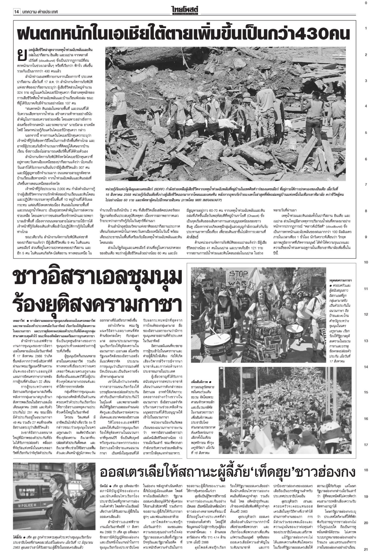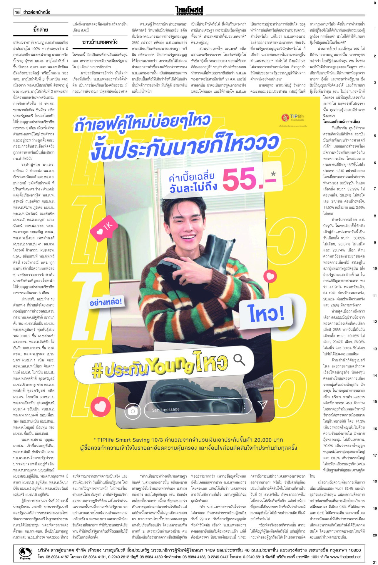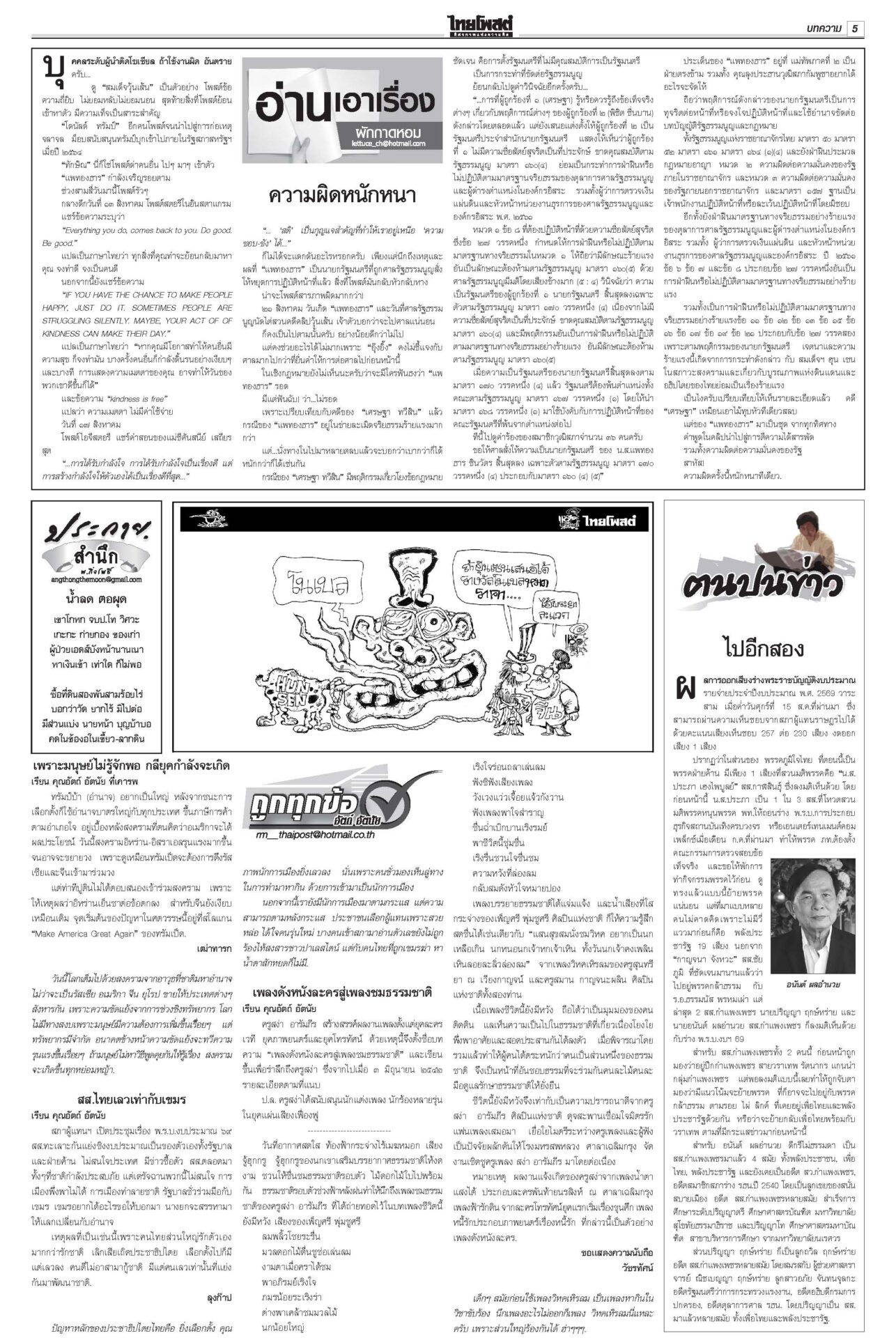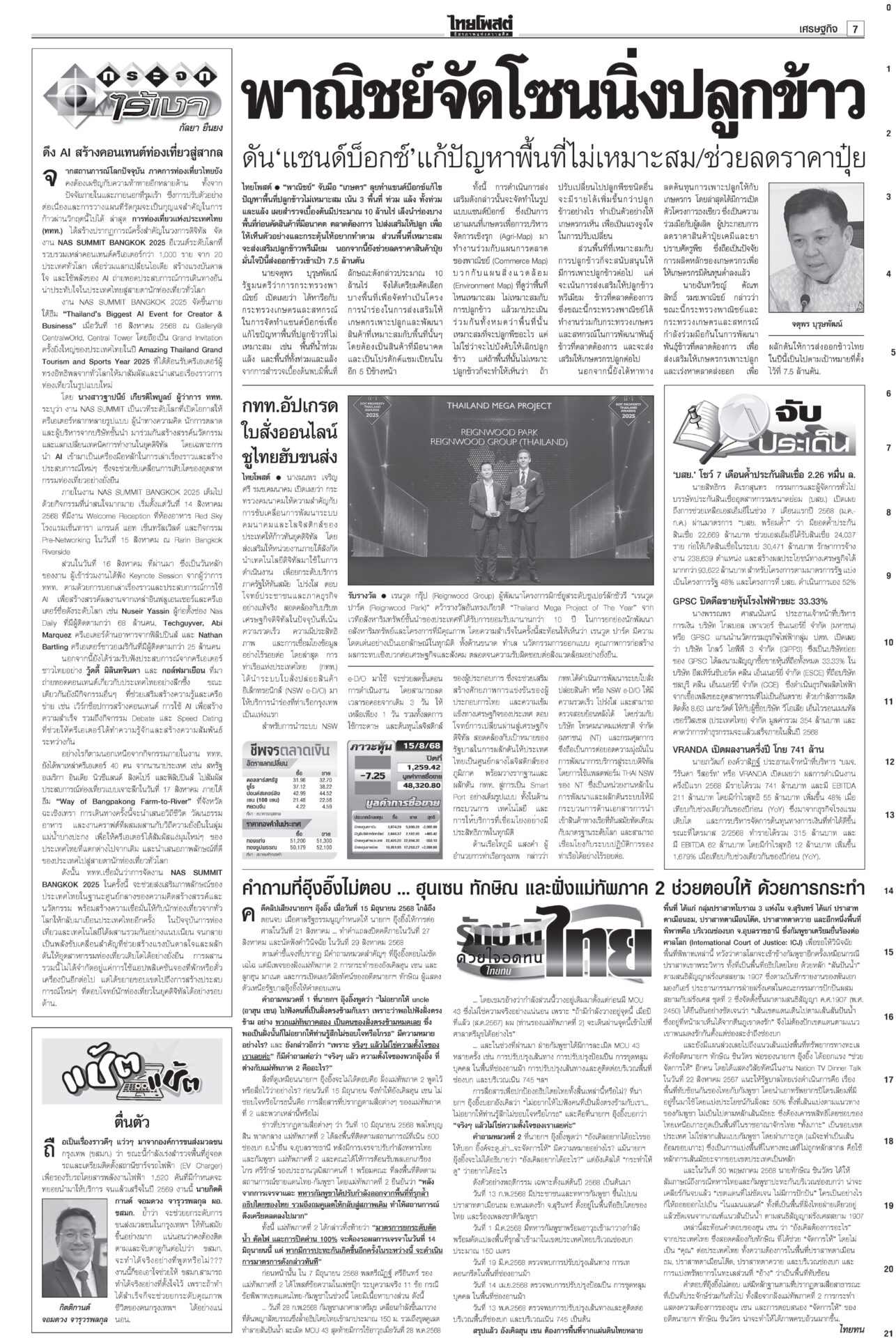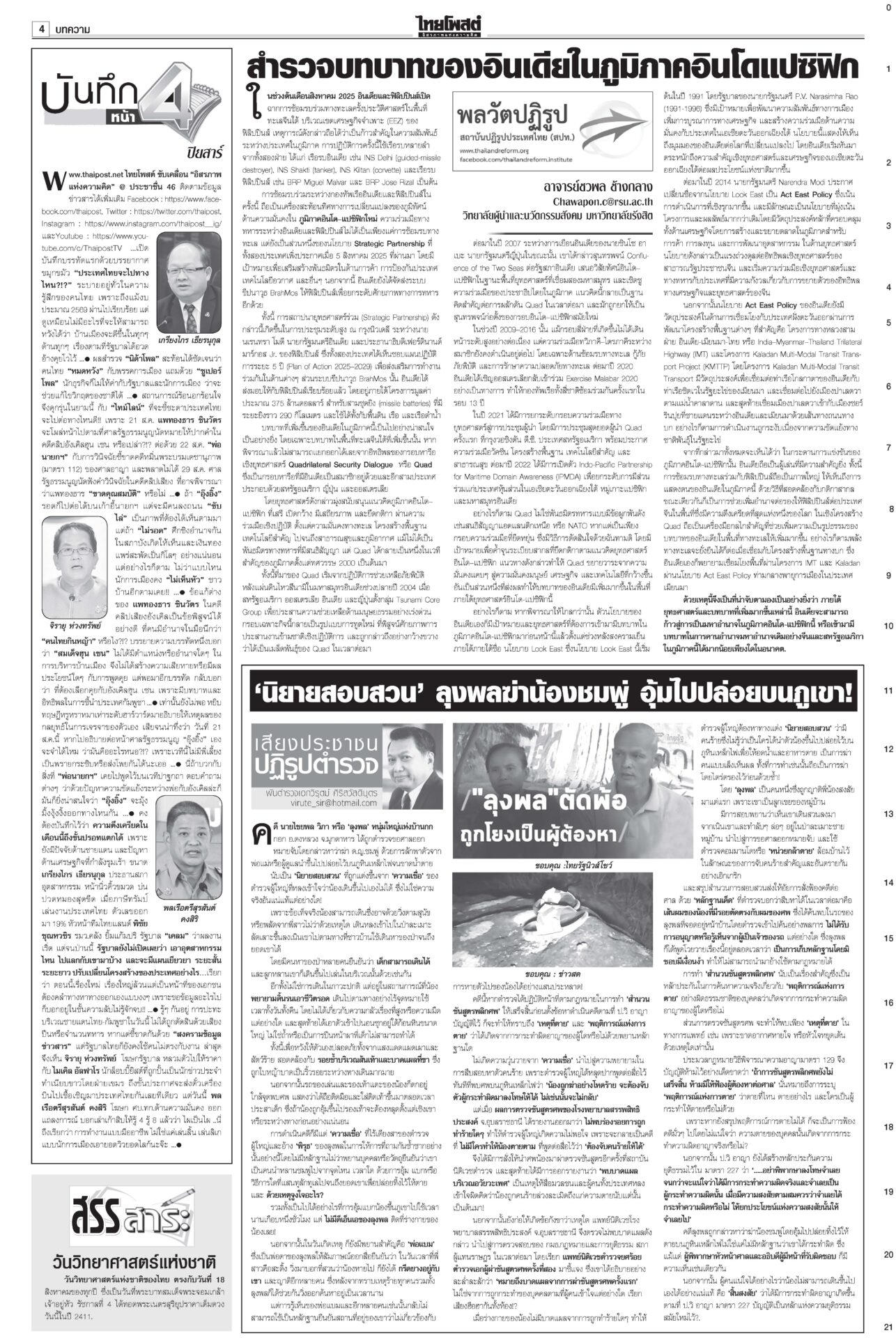 หนังสือพิมพ์ ฉบับวันที่ 18 สิงหาคม 2568ข่าวหน้าหนึ่งเขมรซุกทุ่นระเบิดอื้อ ทบ.งัดข้อมูลออตตาวาประจาน/ไทยเล็งพา8ชาติทัวร์3วัน“พล.อ.ณัฐพล” แจง “ศบ.ทก.” ไม่เคลื่อนไหวเหตุรอประชุม RBC-GBC ก่อนจ่อชง สมช.-ครม.กำหนดการทำงานระยะสั้น-ยาว ชาวบ้านหมดหวังผู้แทนยุคนี้!“อิ๊งค์” ยกคำสอนแม่ชีศันสนีย์อีกรอบ บอกการสร้างกำลังใจให้ตัวเองได้เป็นเรื่องดีที่สุด สภาสูงไฟเขียวงบ2569 เจี๊ยบเดือดอัดสส.ควายพท.ขอบคุณสภาผ่าน “พ.ร.บ.งบฯ 69” ลุยทำนโยบายทันที โต้ข่าวซื้อโหวต ผบ.ตร.เคาะโผนายพล ตำรวจชั้น14ชวดเก้าอี้“บิ๊กต่าย” นั่งหัวโต๊ะบอร์ดกลั่นกรอง แต่งตั้ง “นายพล” วาระปี 2568 ทำบุญ22ปีไฟใต้ สูญเสียใกล้6พัน 2แสนชีวิตระทม“ทวี-แม่ทัพ 4-นิพัทธ์” ทำบุญอุทิศส่วนกุศลให้ผู้เสียชีวิตจากเหตุไฟใต้ เผย 22 ปีเสียชีวิตรวม 5,989 ราย
